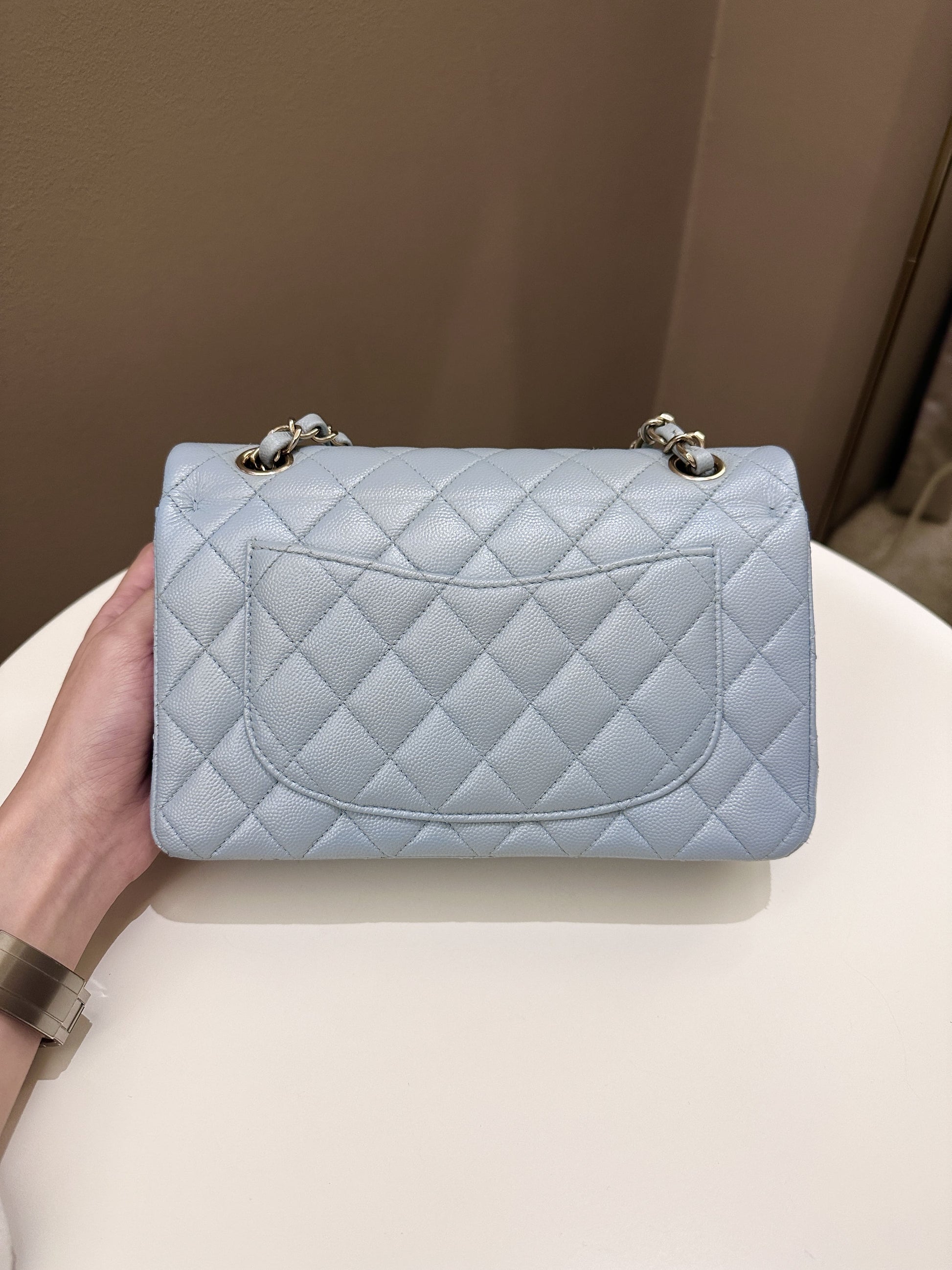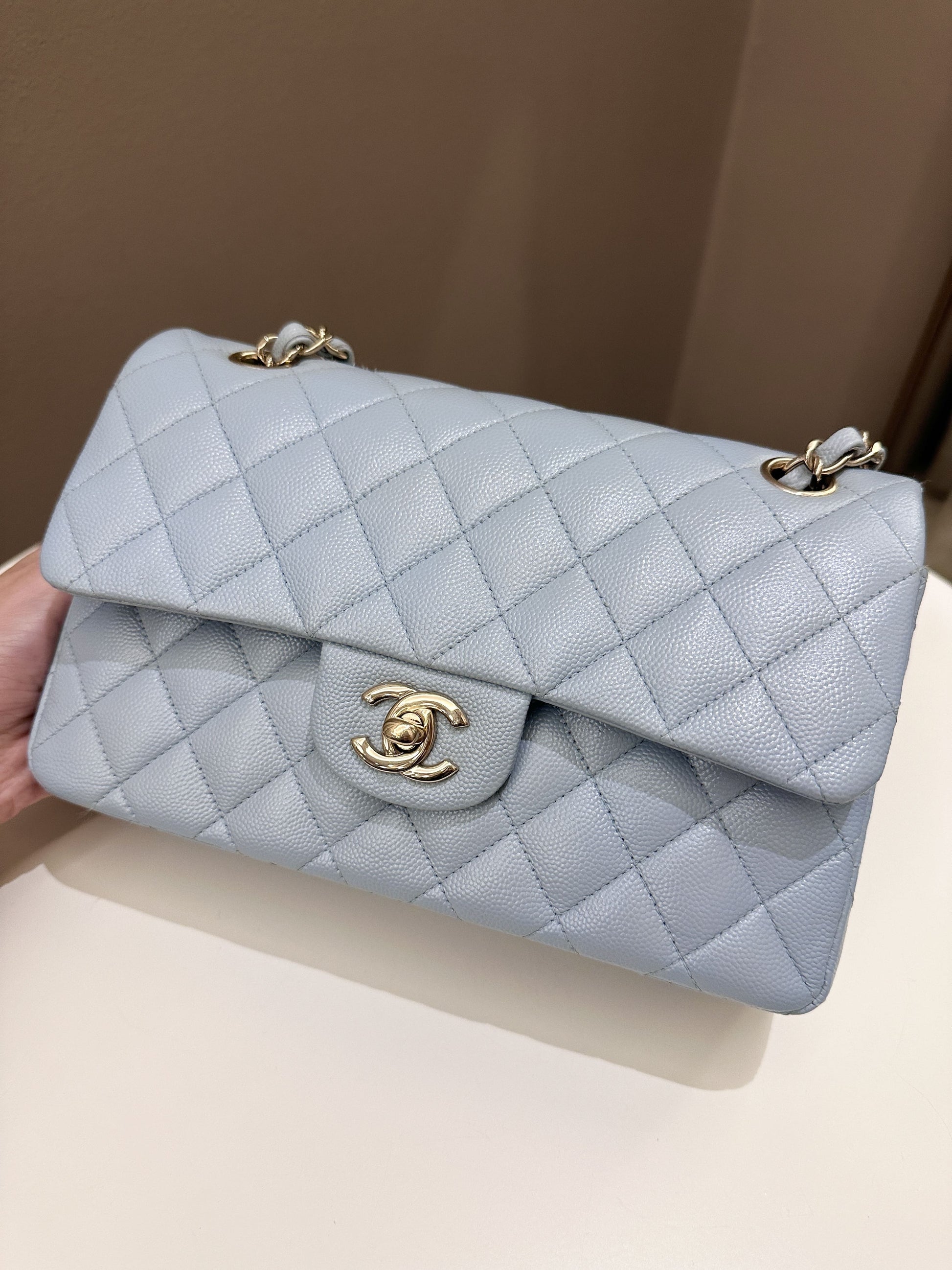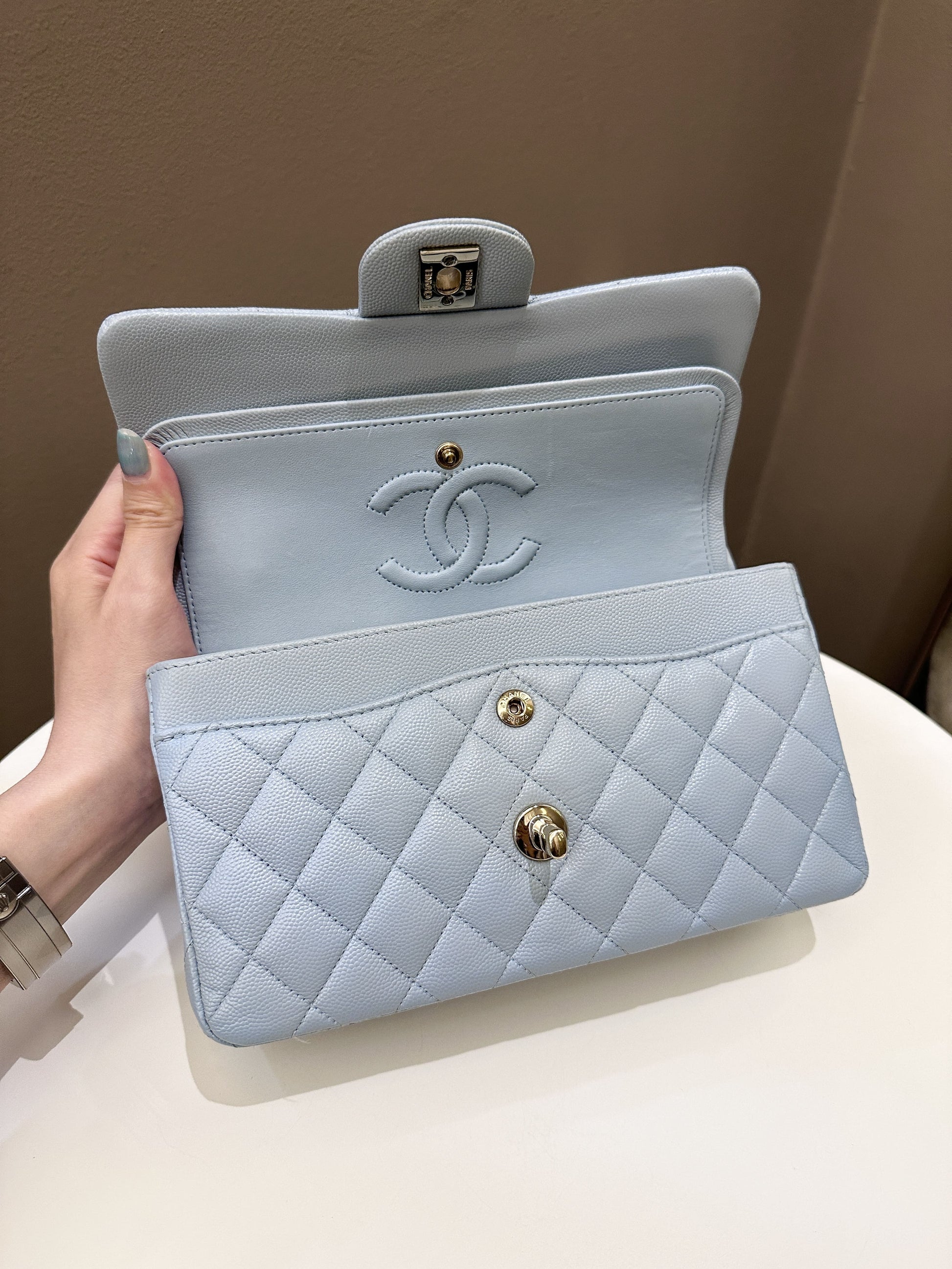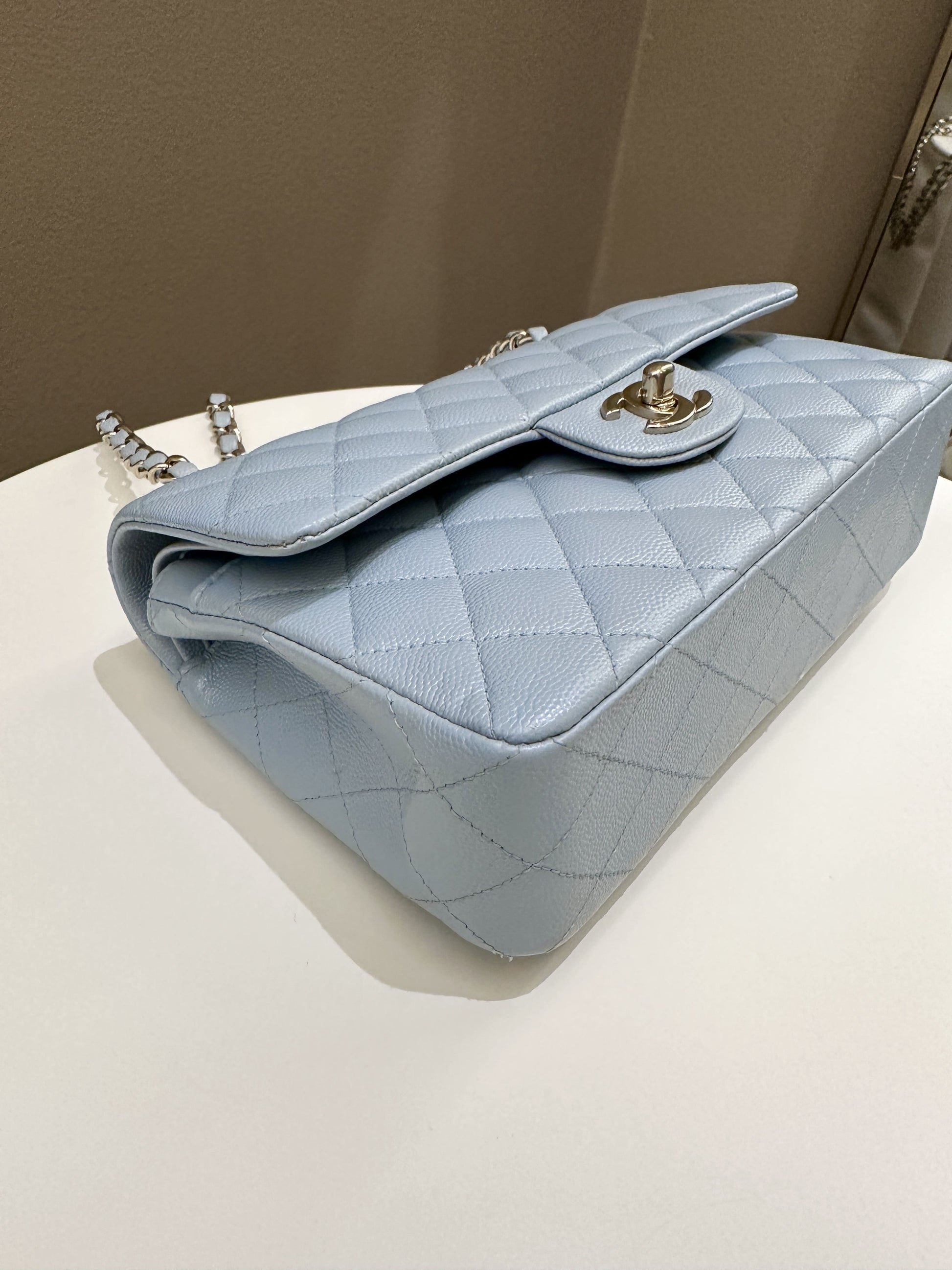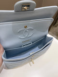 Chanel 22P Classic Quilted Small Double Flap Light Blue Caviar