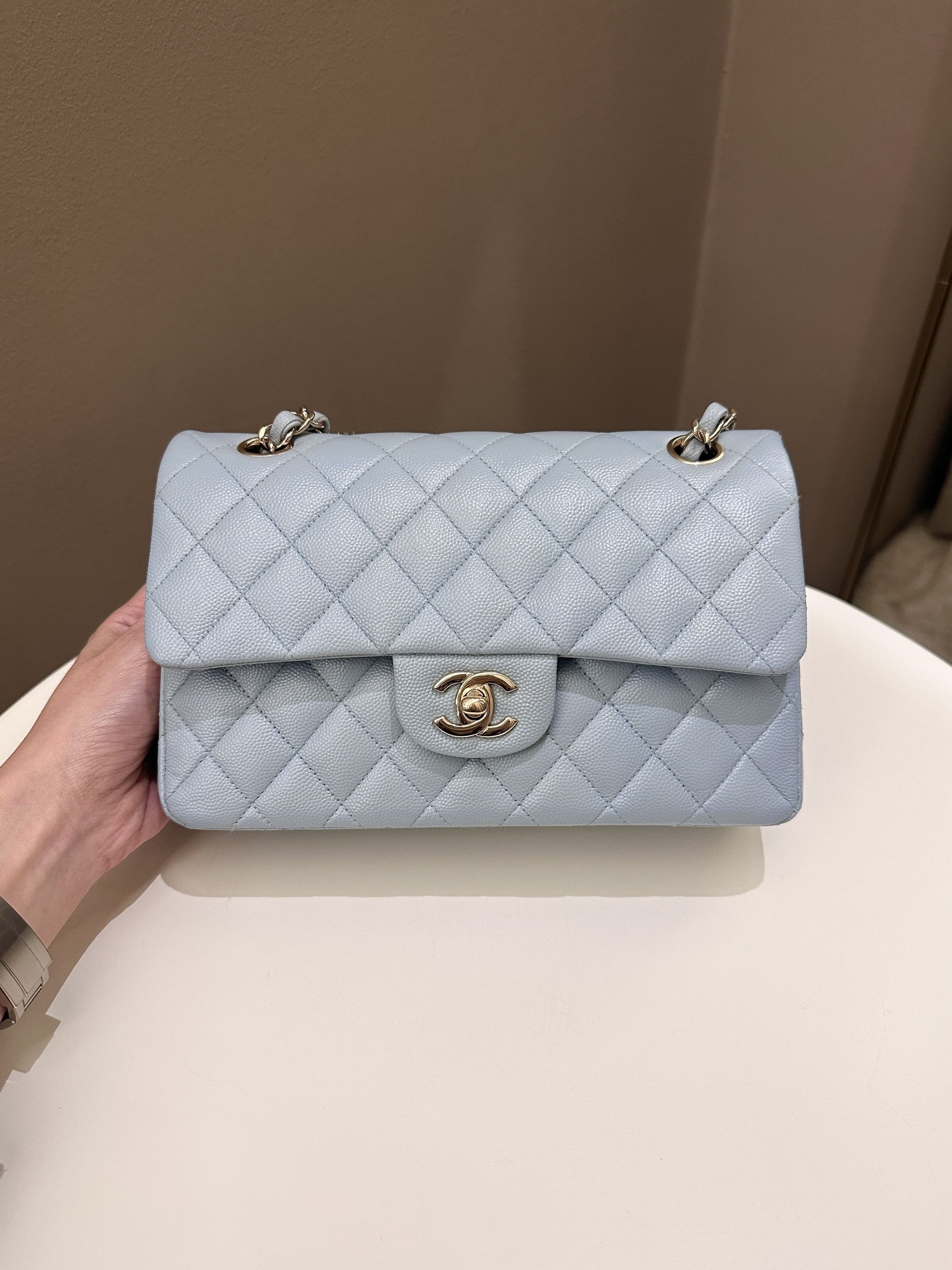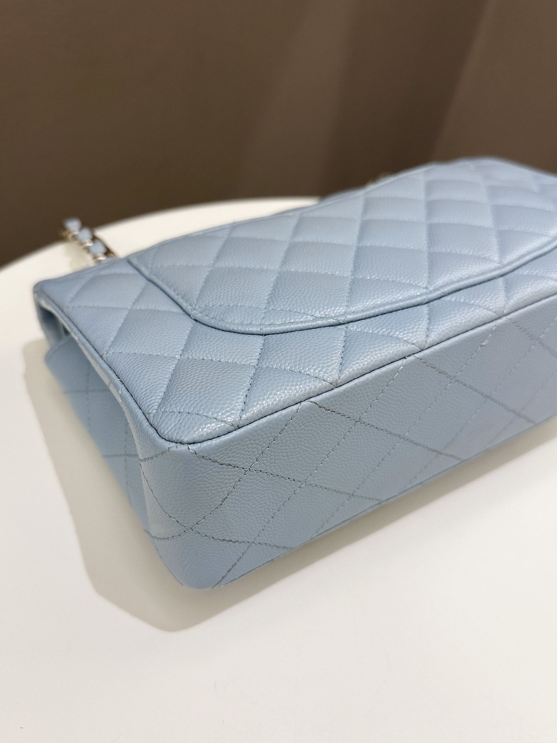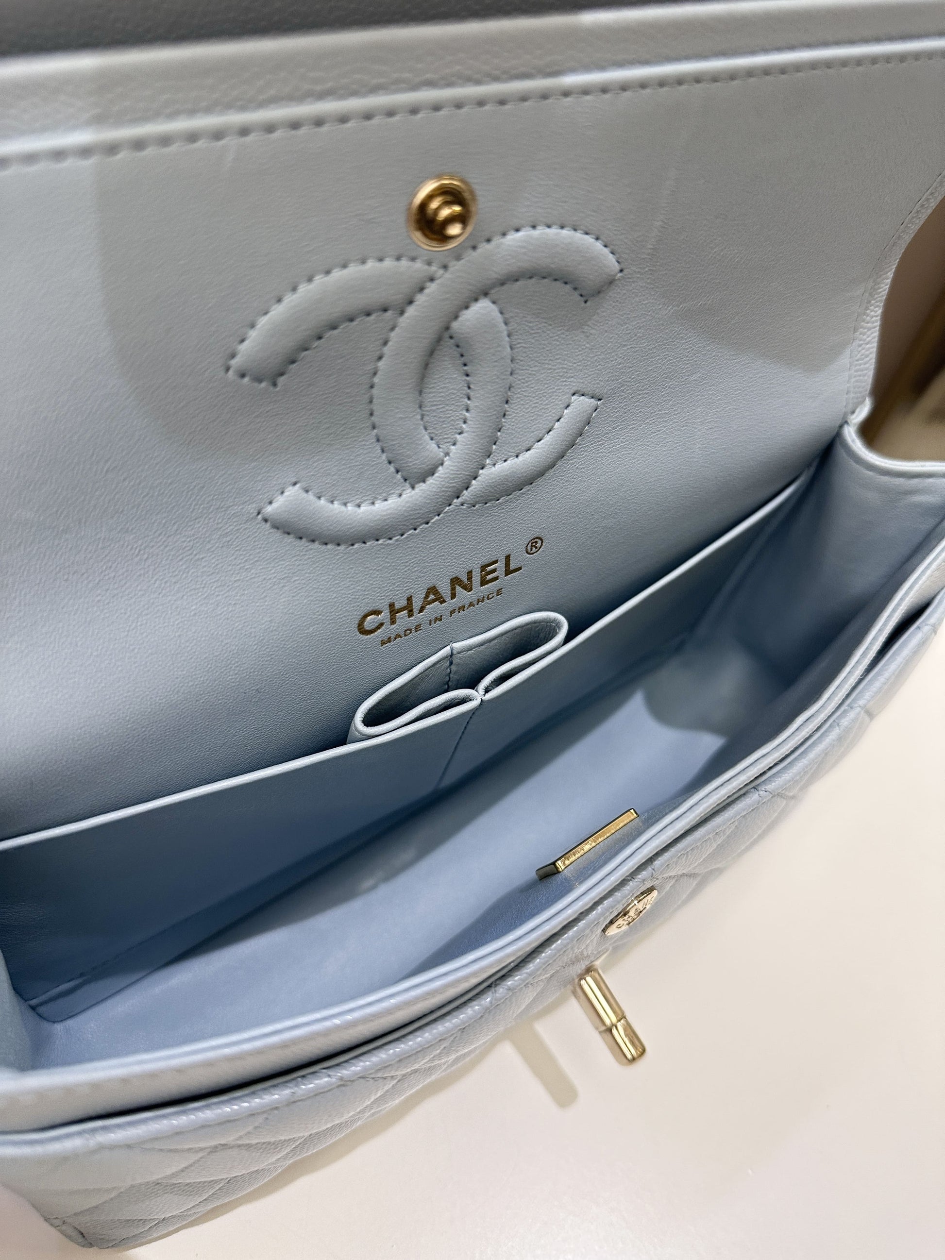 Chanel 22P Classic Quilted Small Double Flap Light Blue Caviar