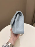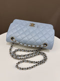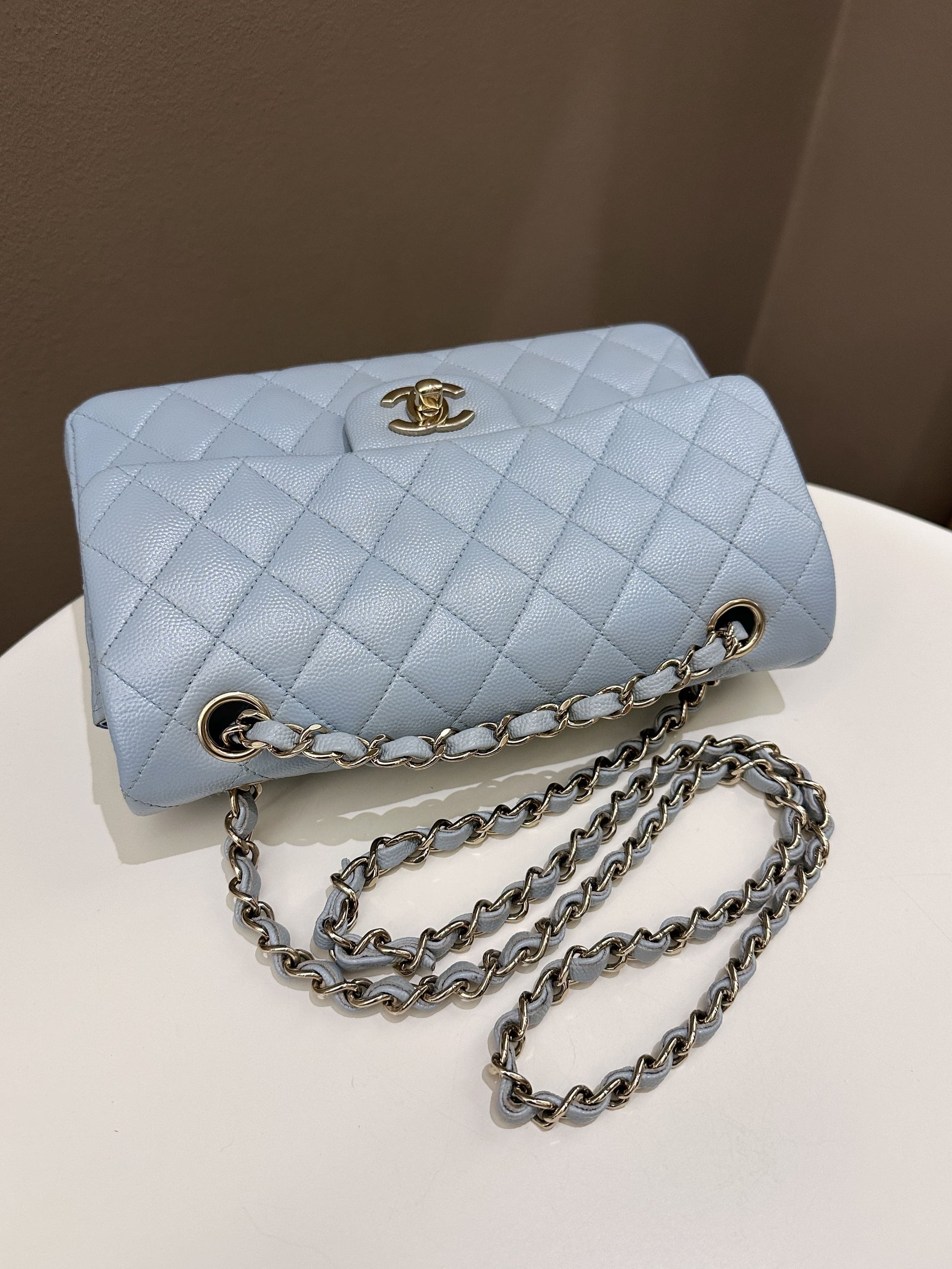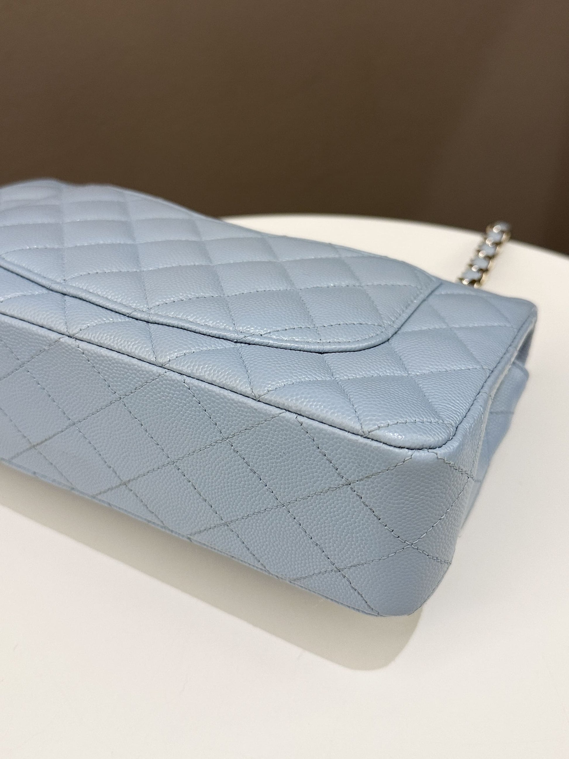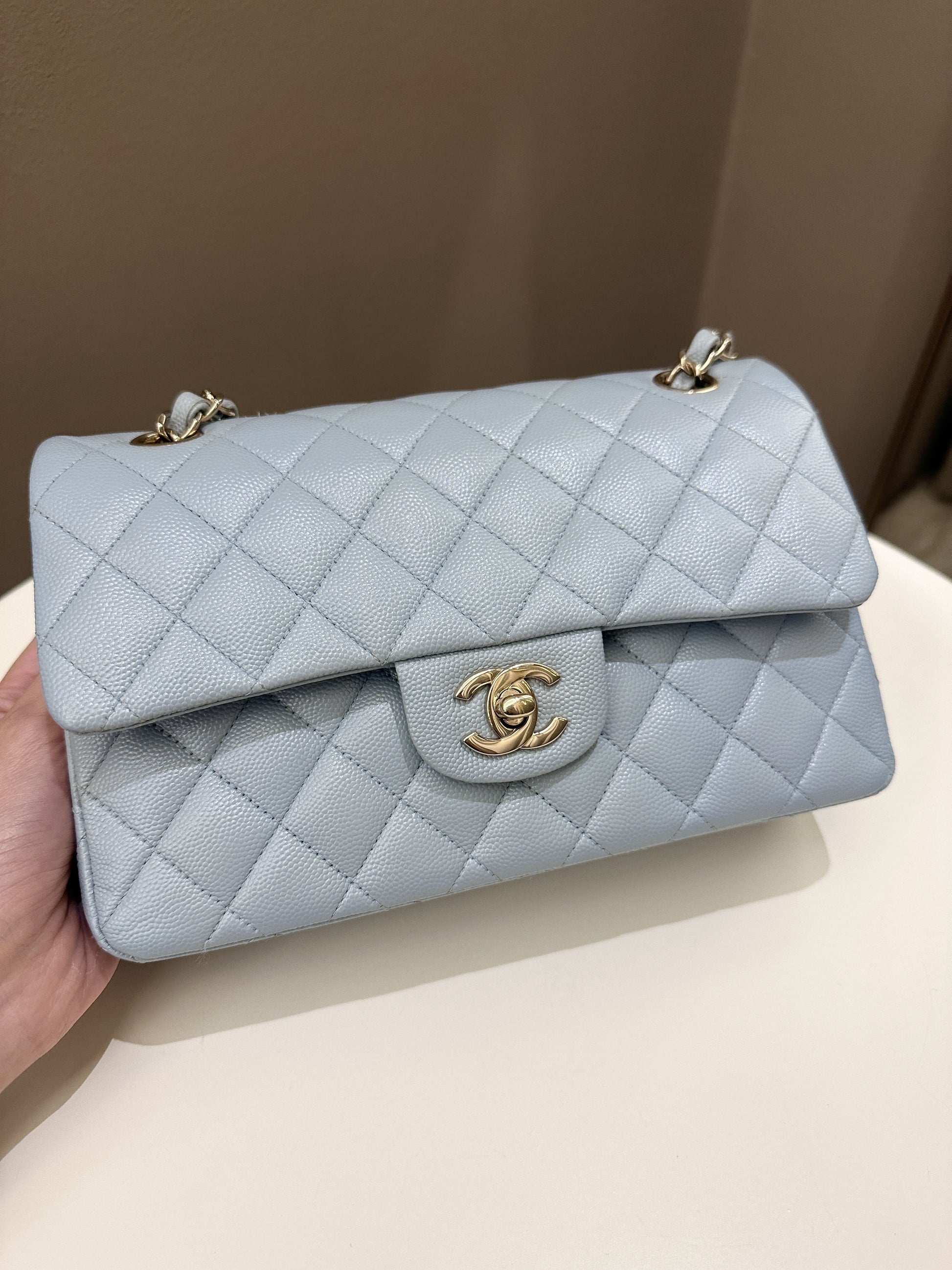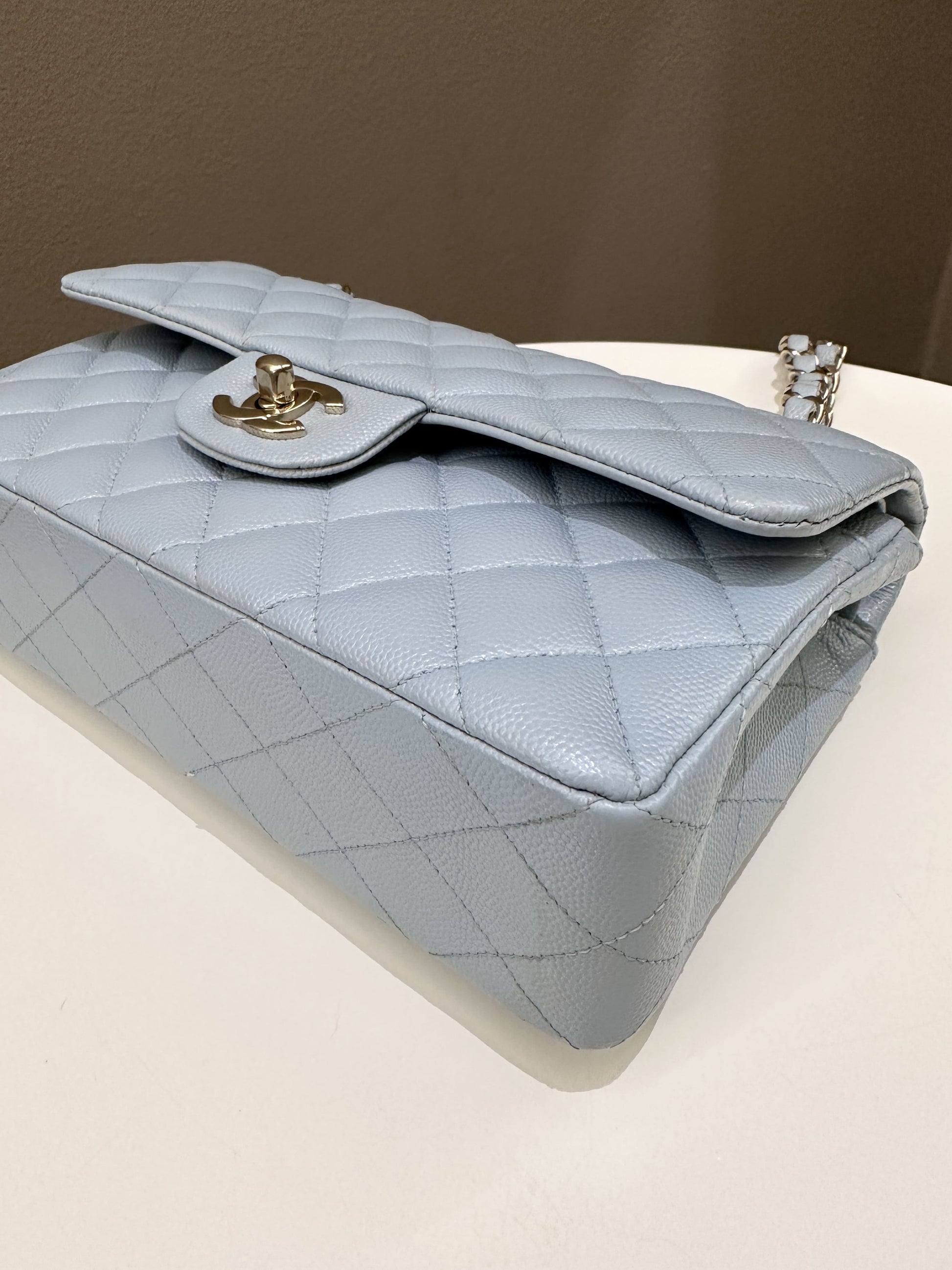 Chanel 22P Classic Quilted Small Double Flap Light Blue Caviar