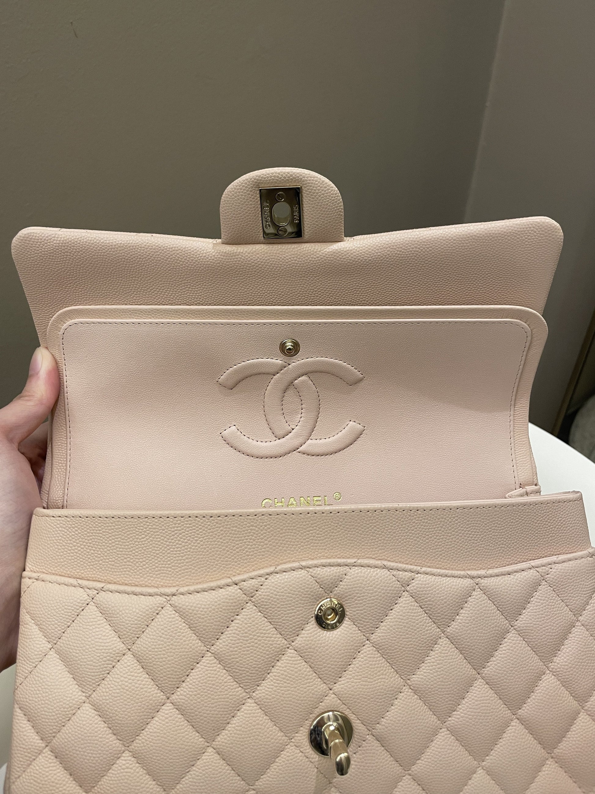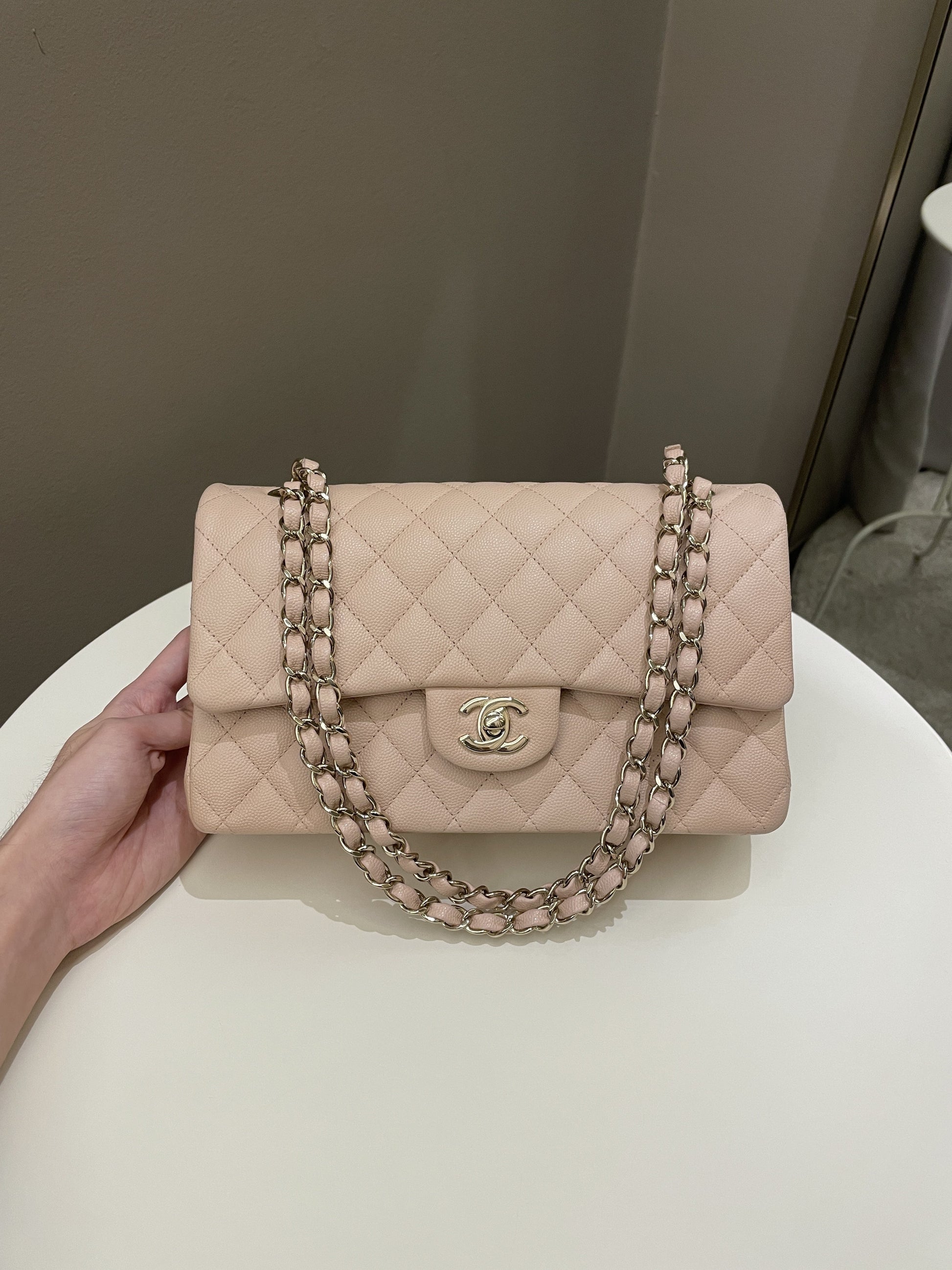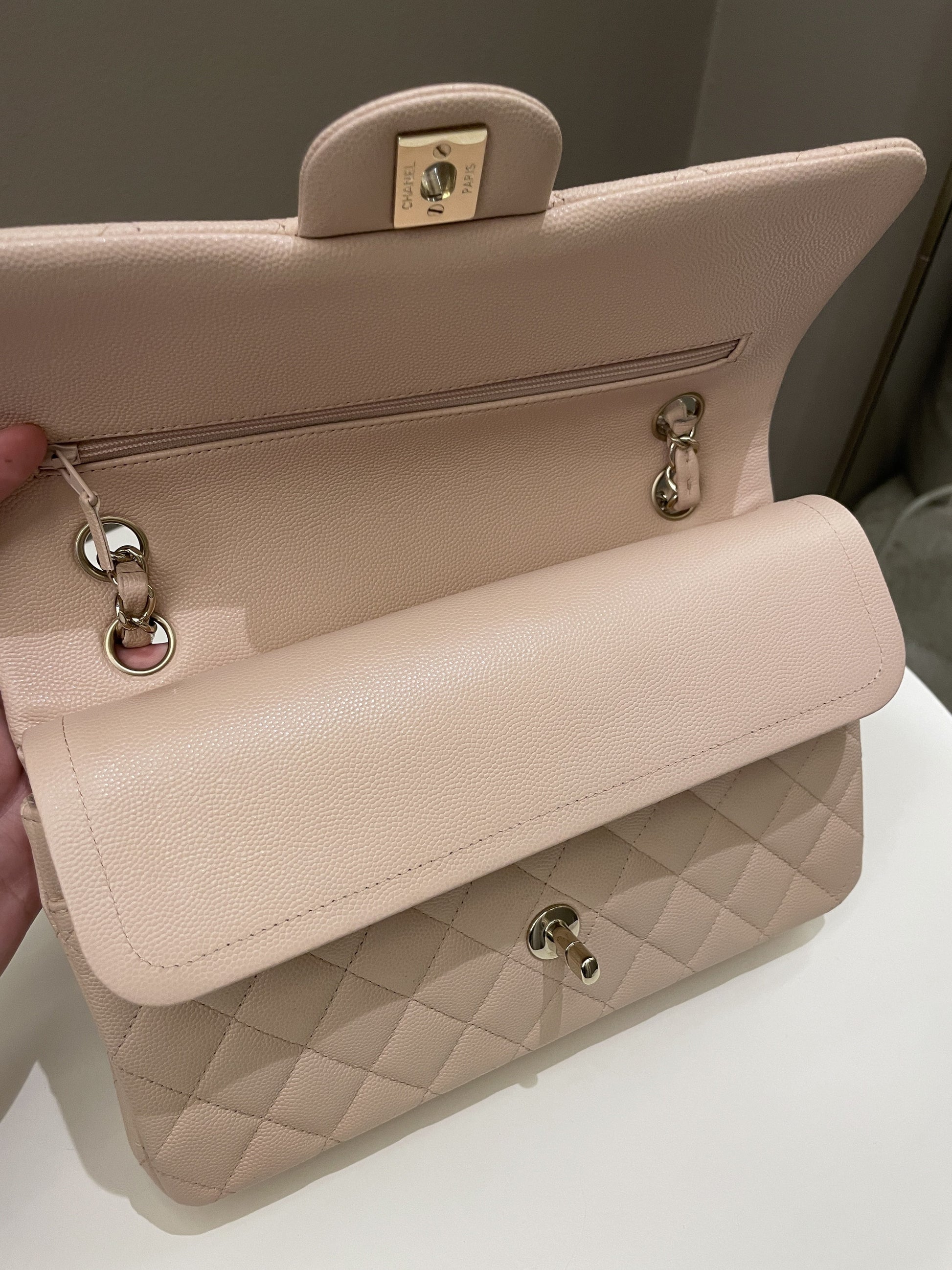 Chanel Classic Quilted Medium Double Flap Beige Caviar