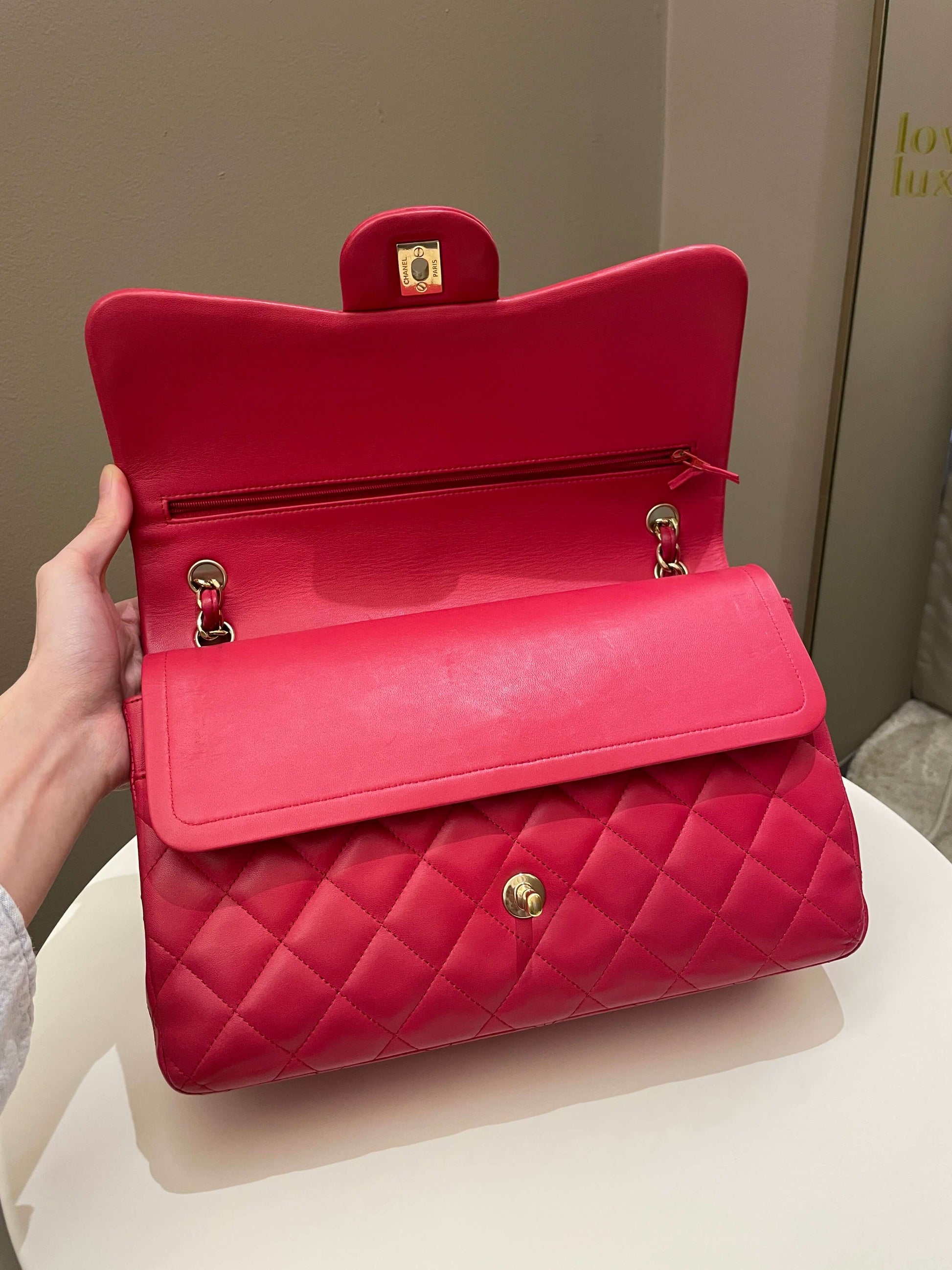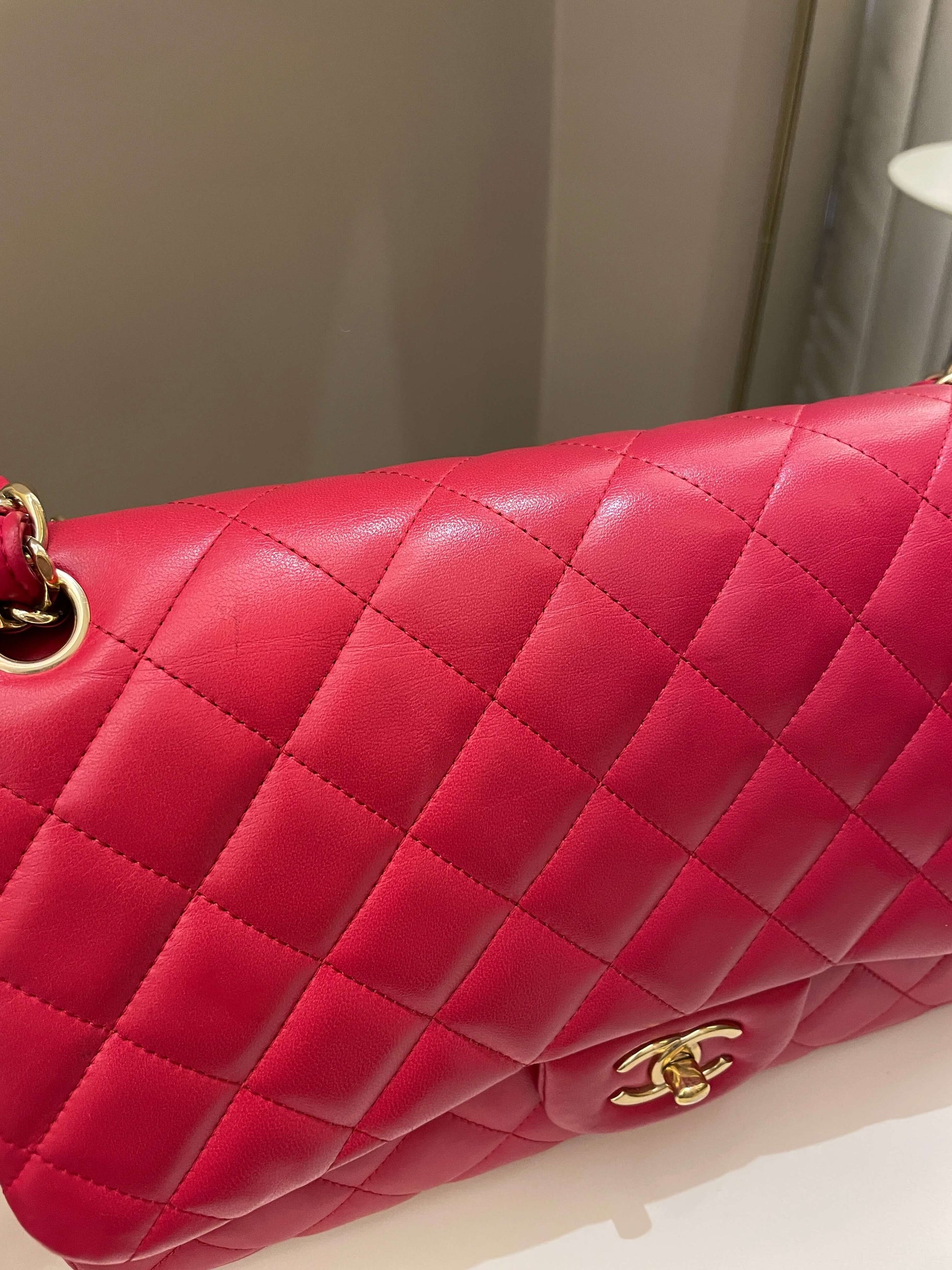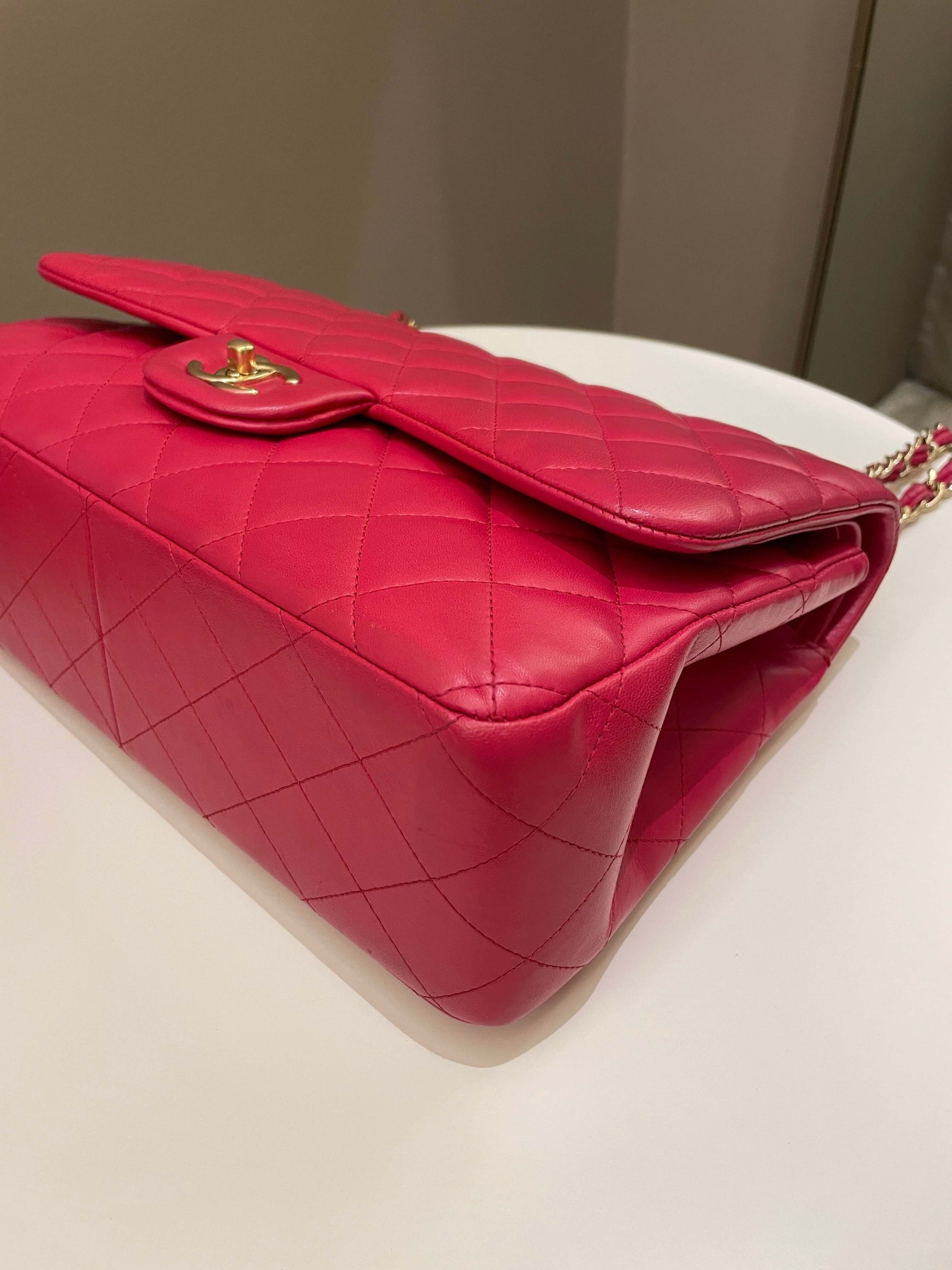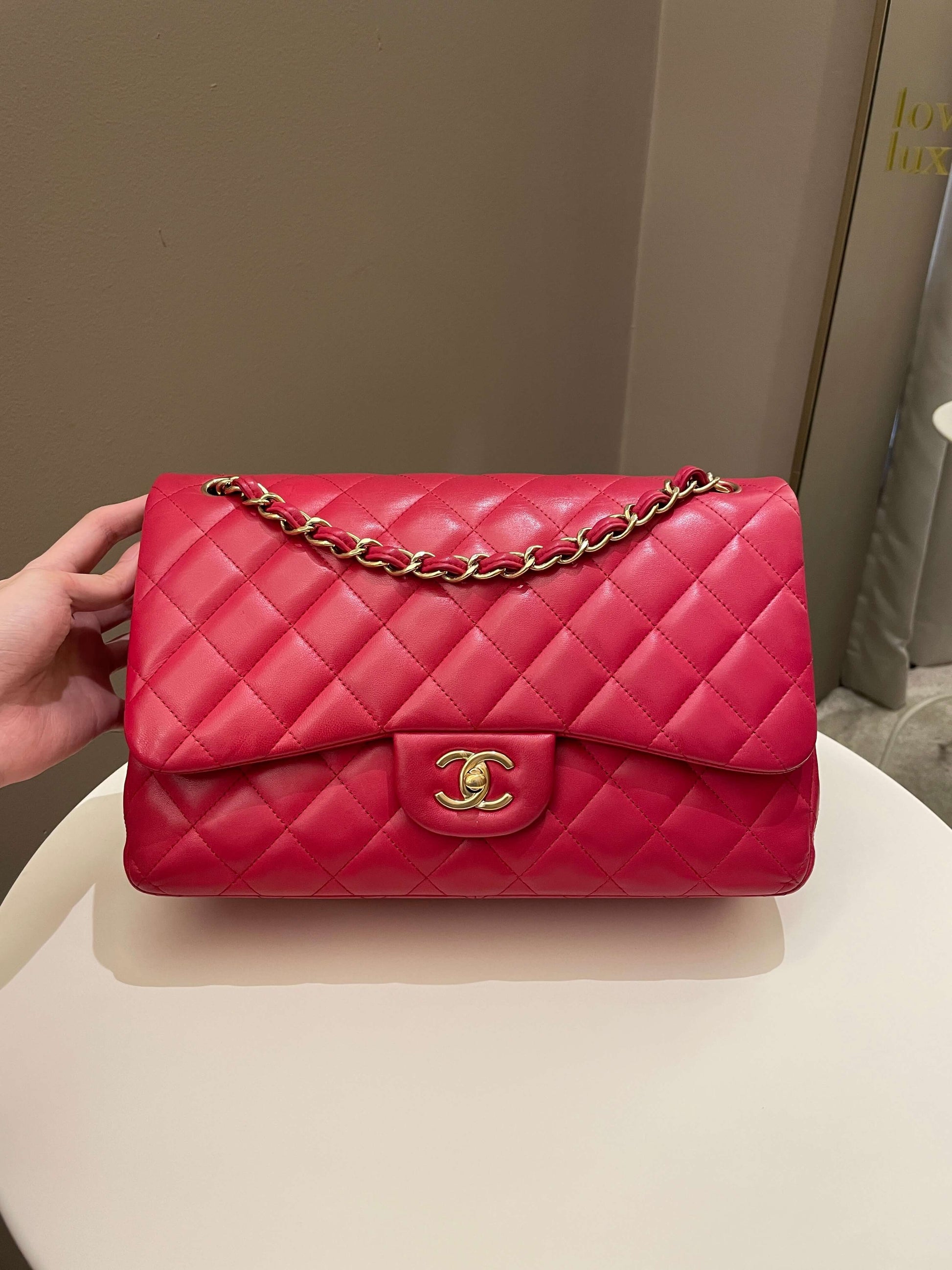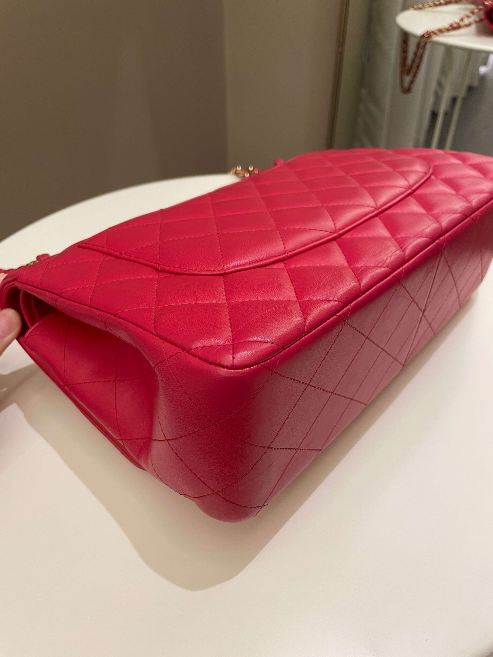 Chanel Classic Quilted Jumbo Double Flap Red Lambskin