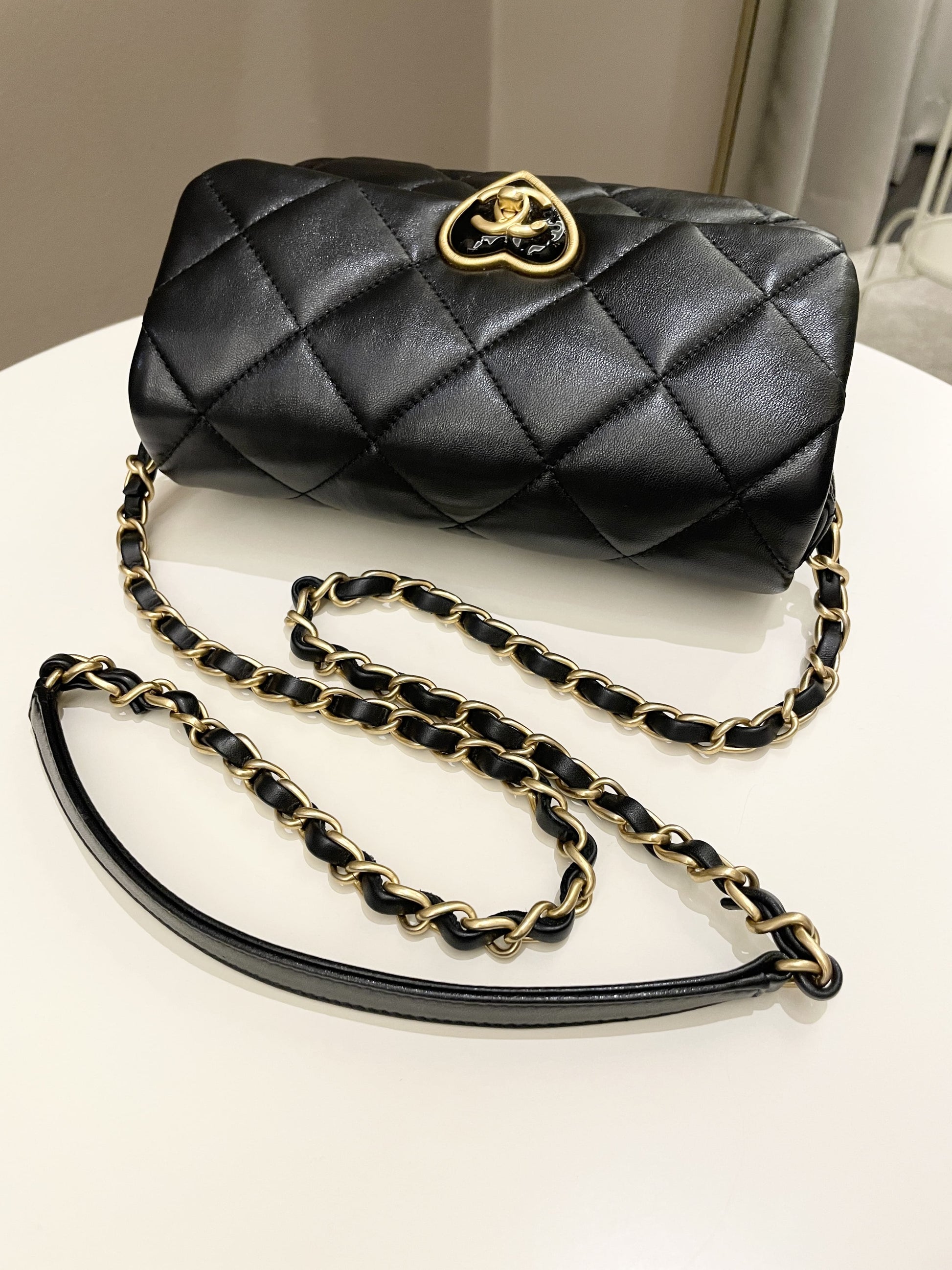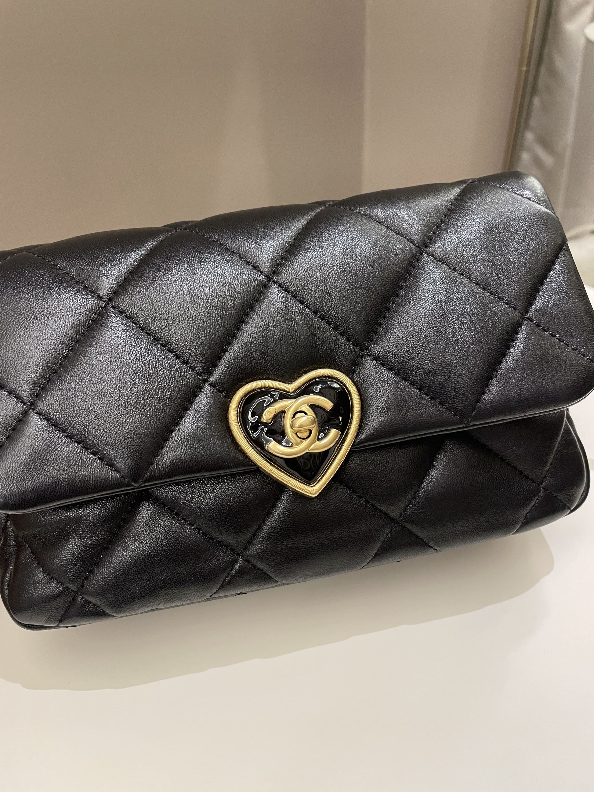 Chanel 23S Heart Flap Bag Black Lambskin