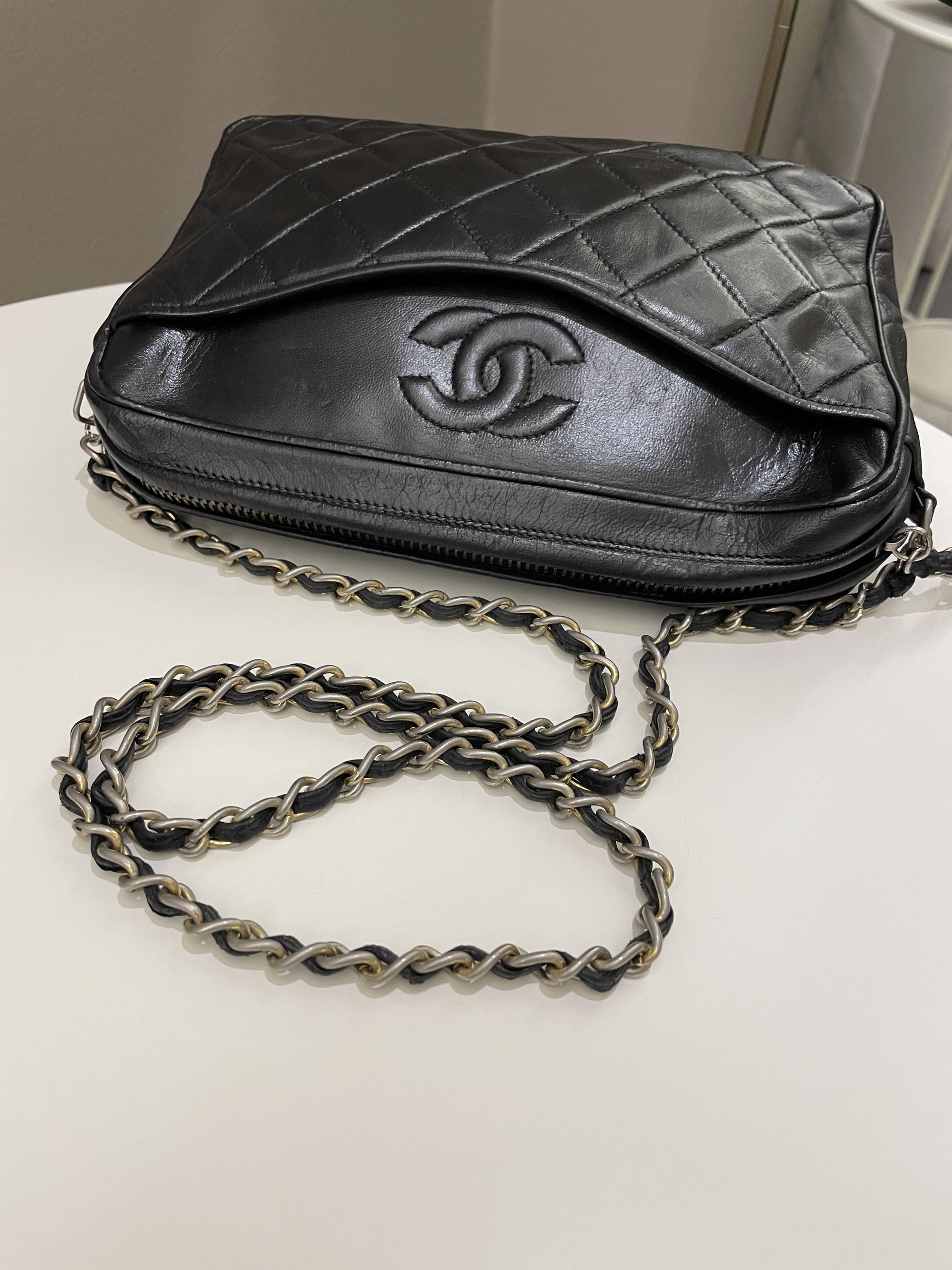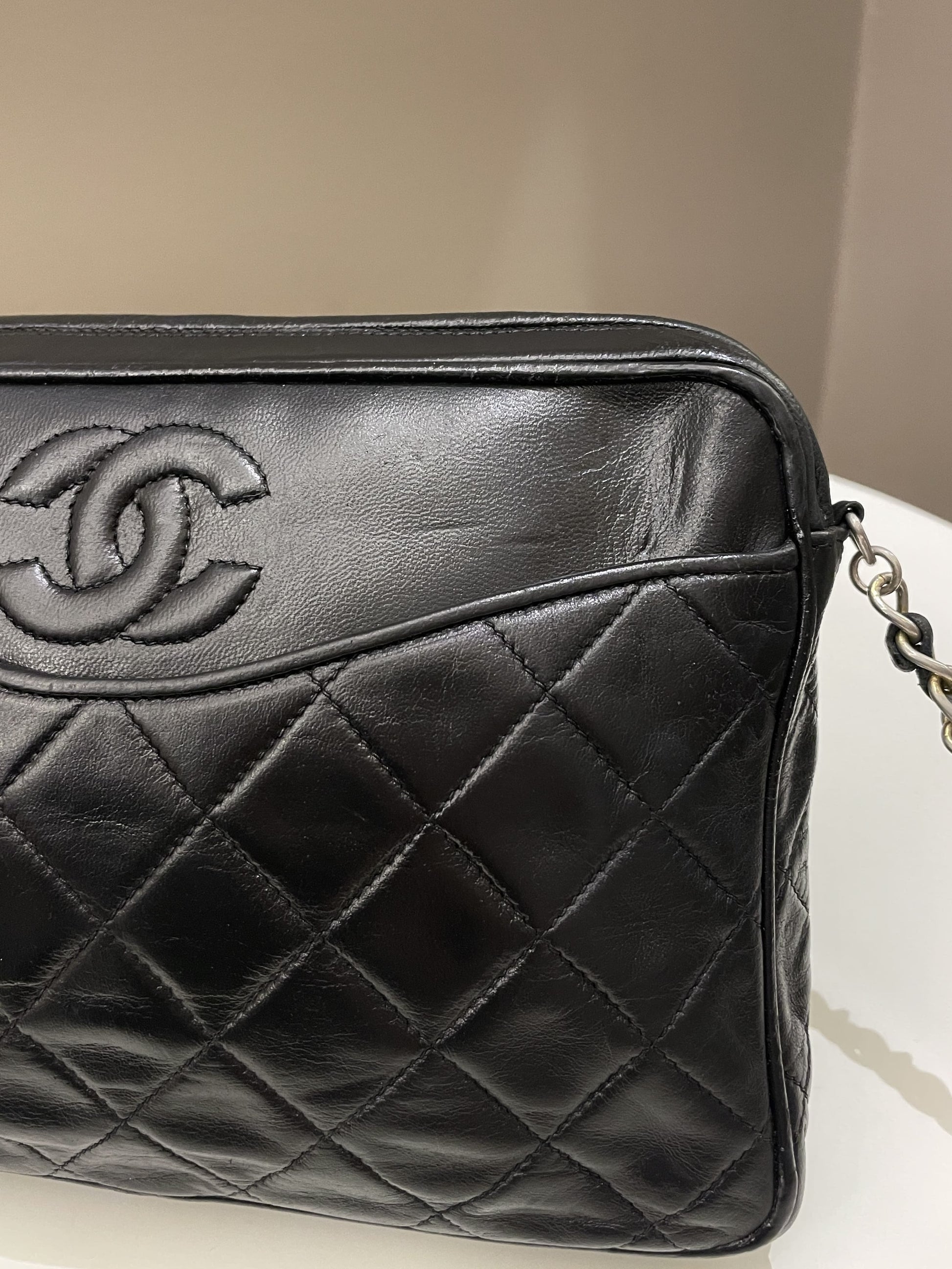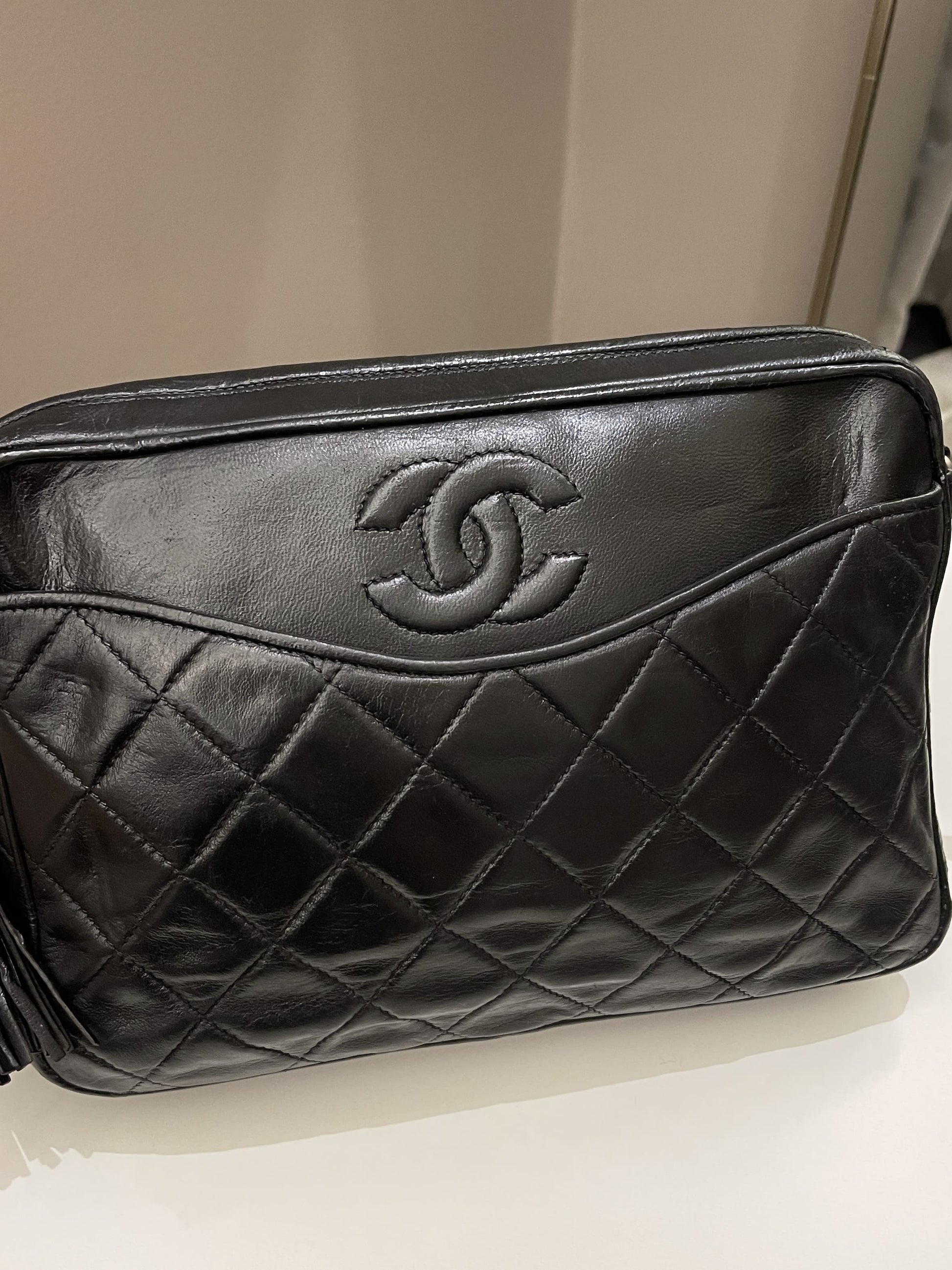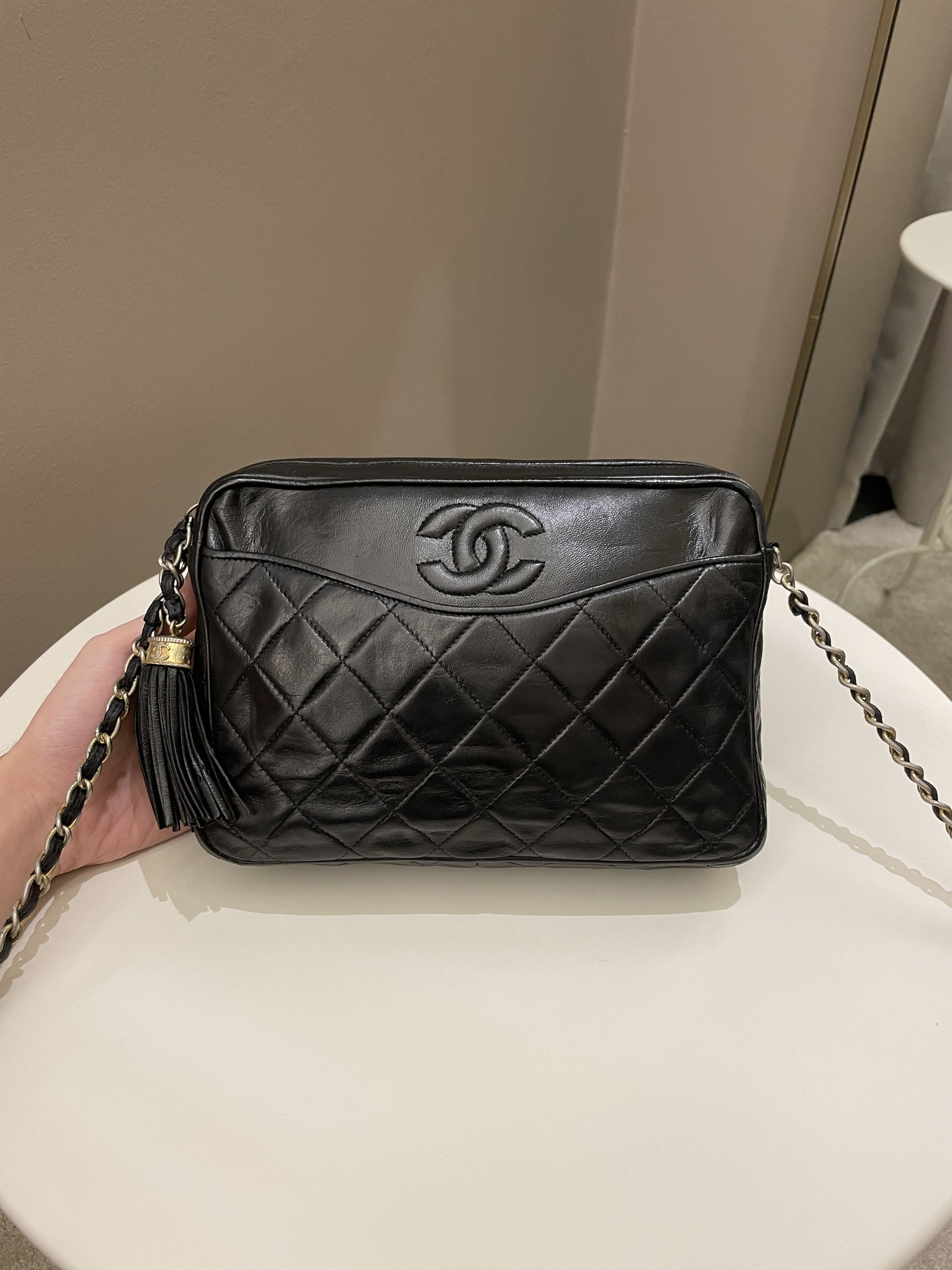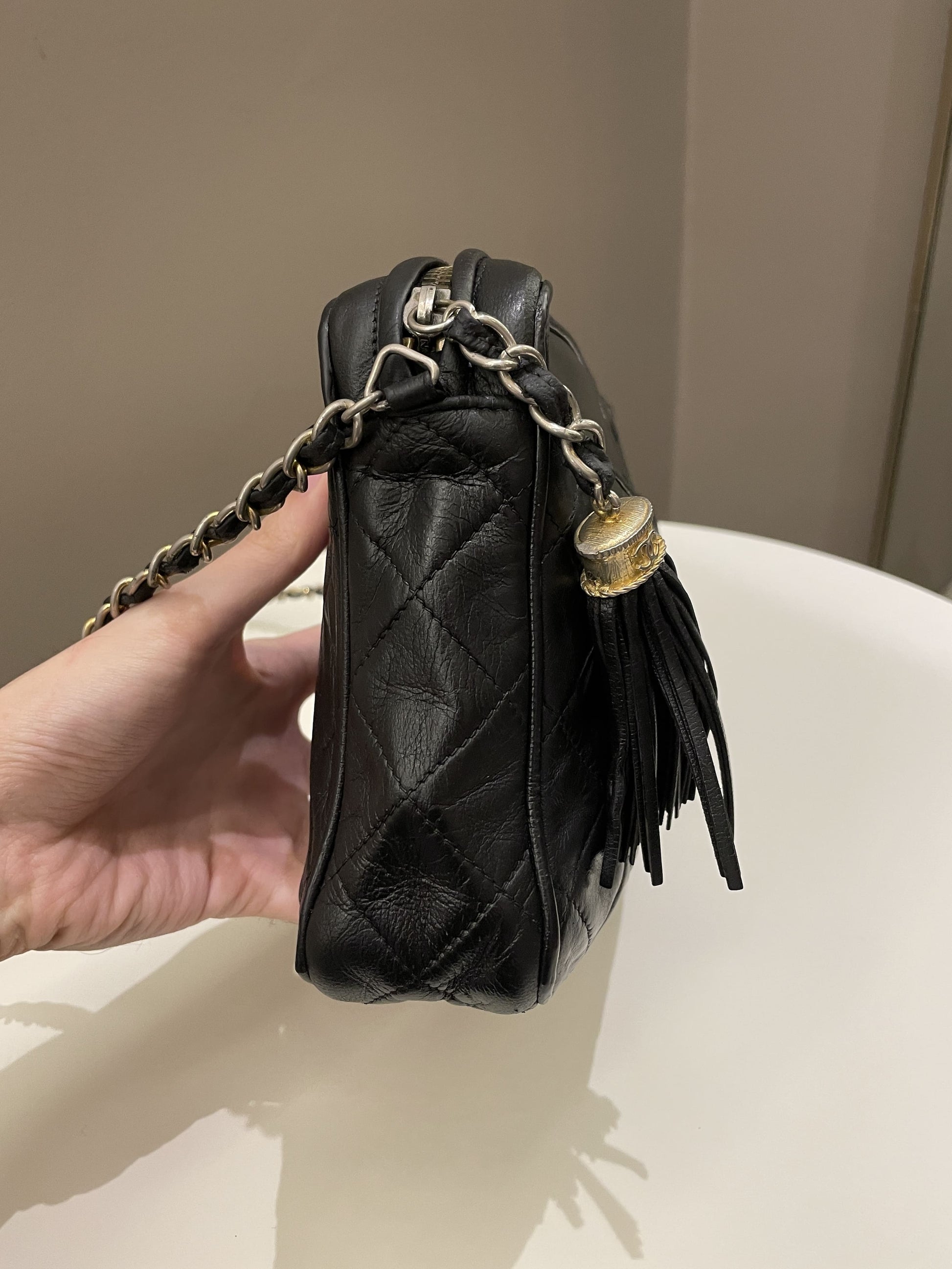 ??Chanel Vintage Camera Bag Tassle Black Lambskin