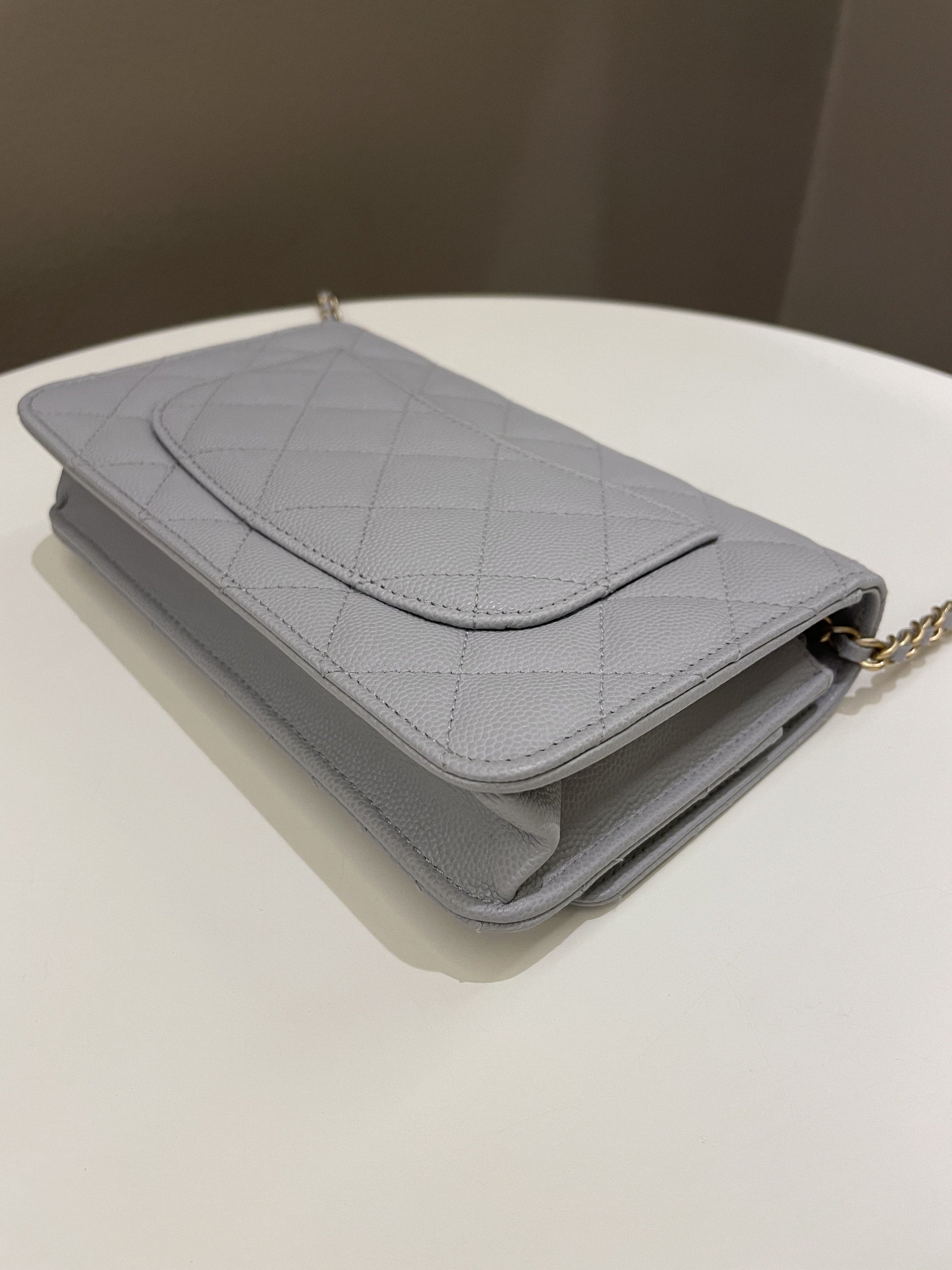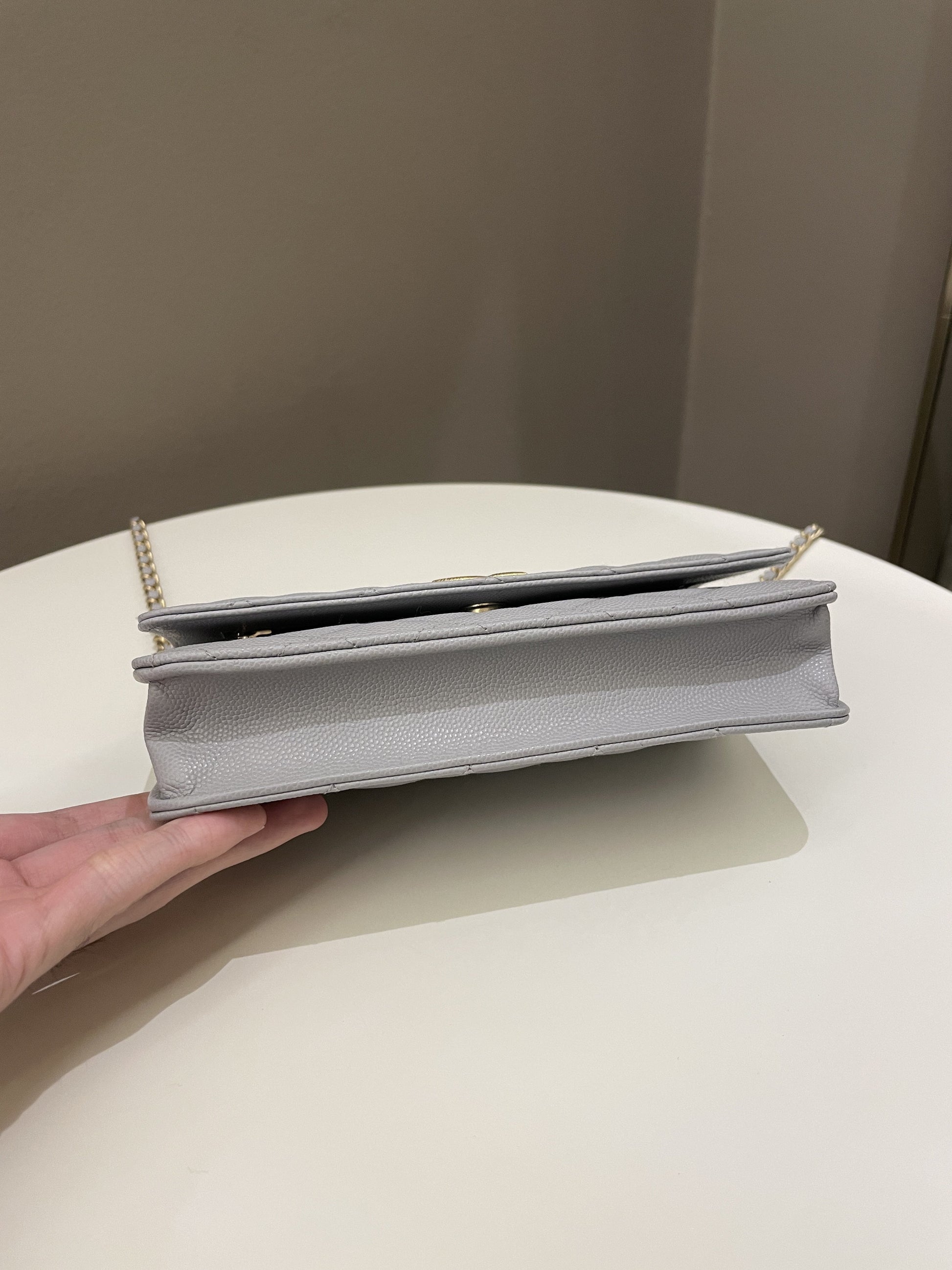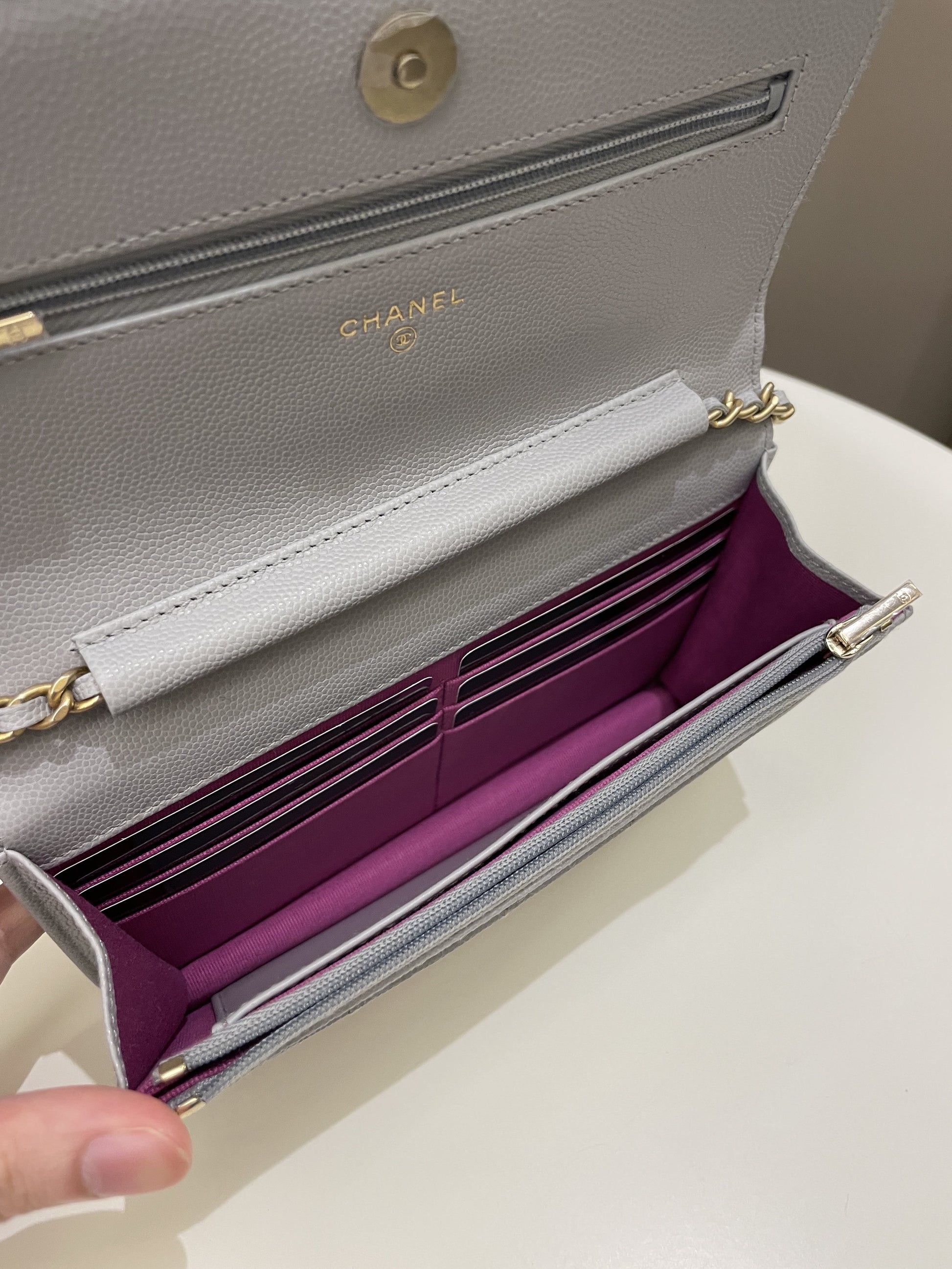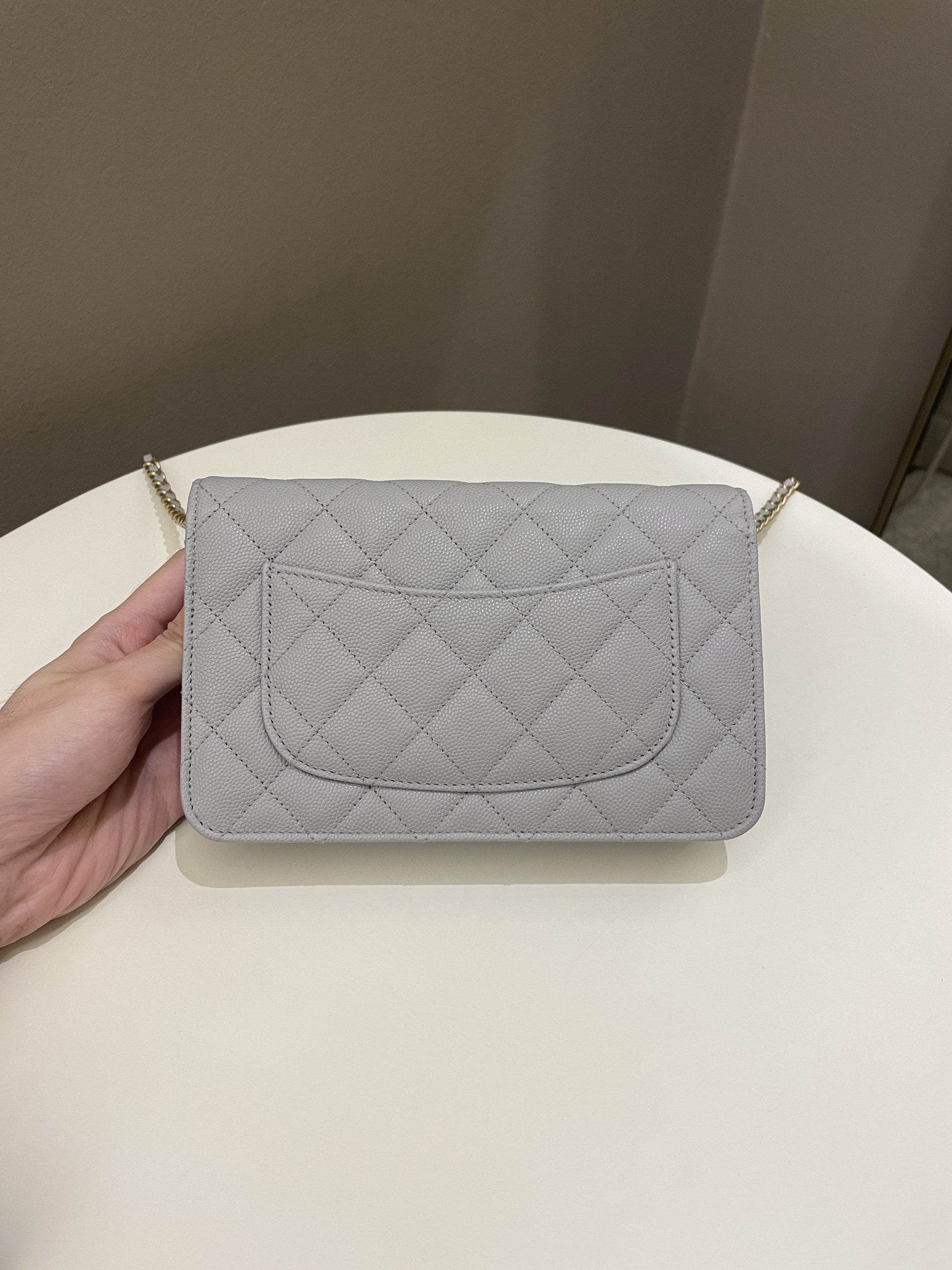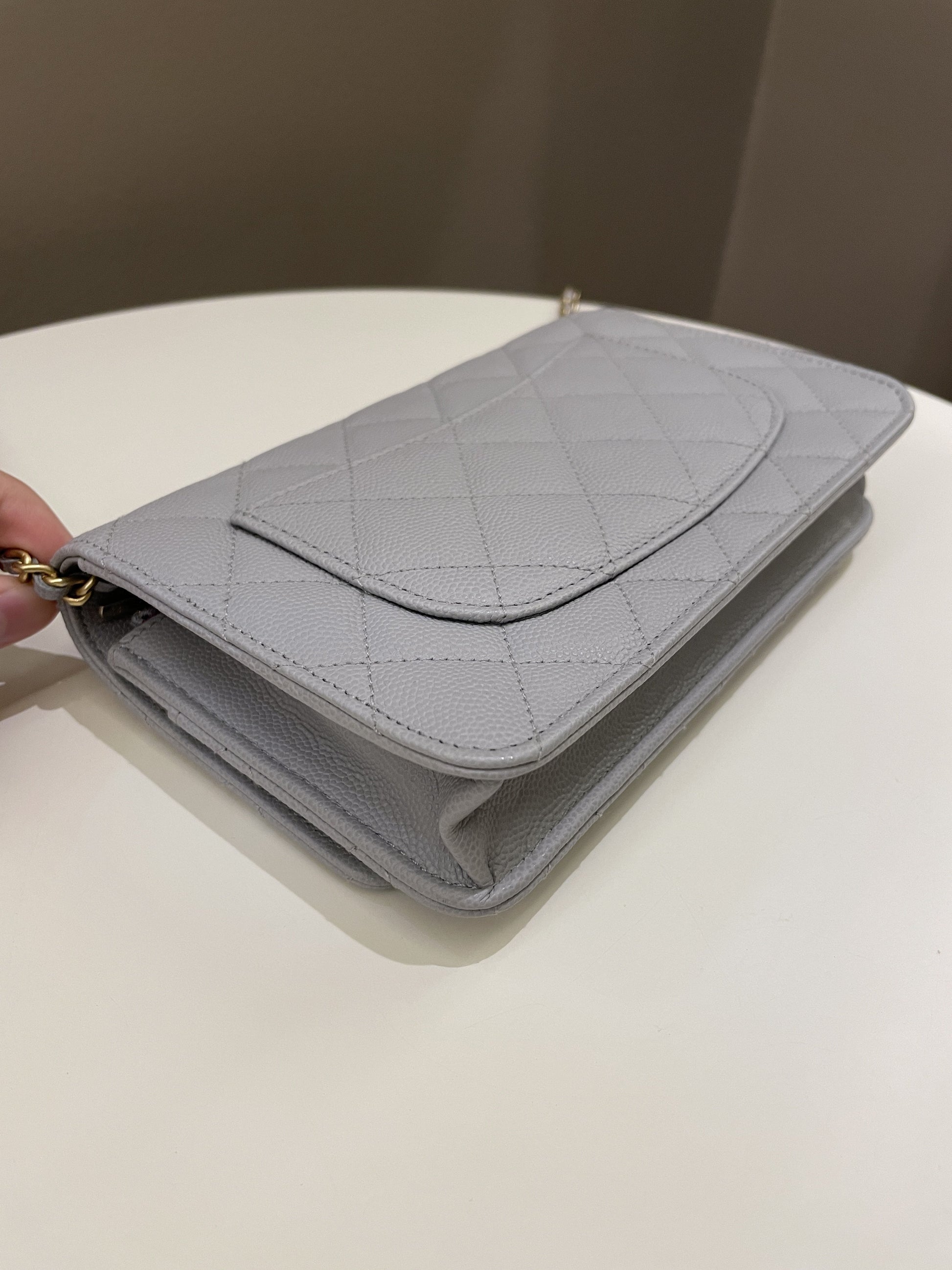 Chanel Gold Cc Classic Wallet on Chain Grey Caviar