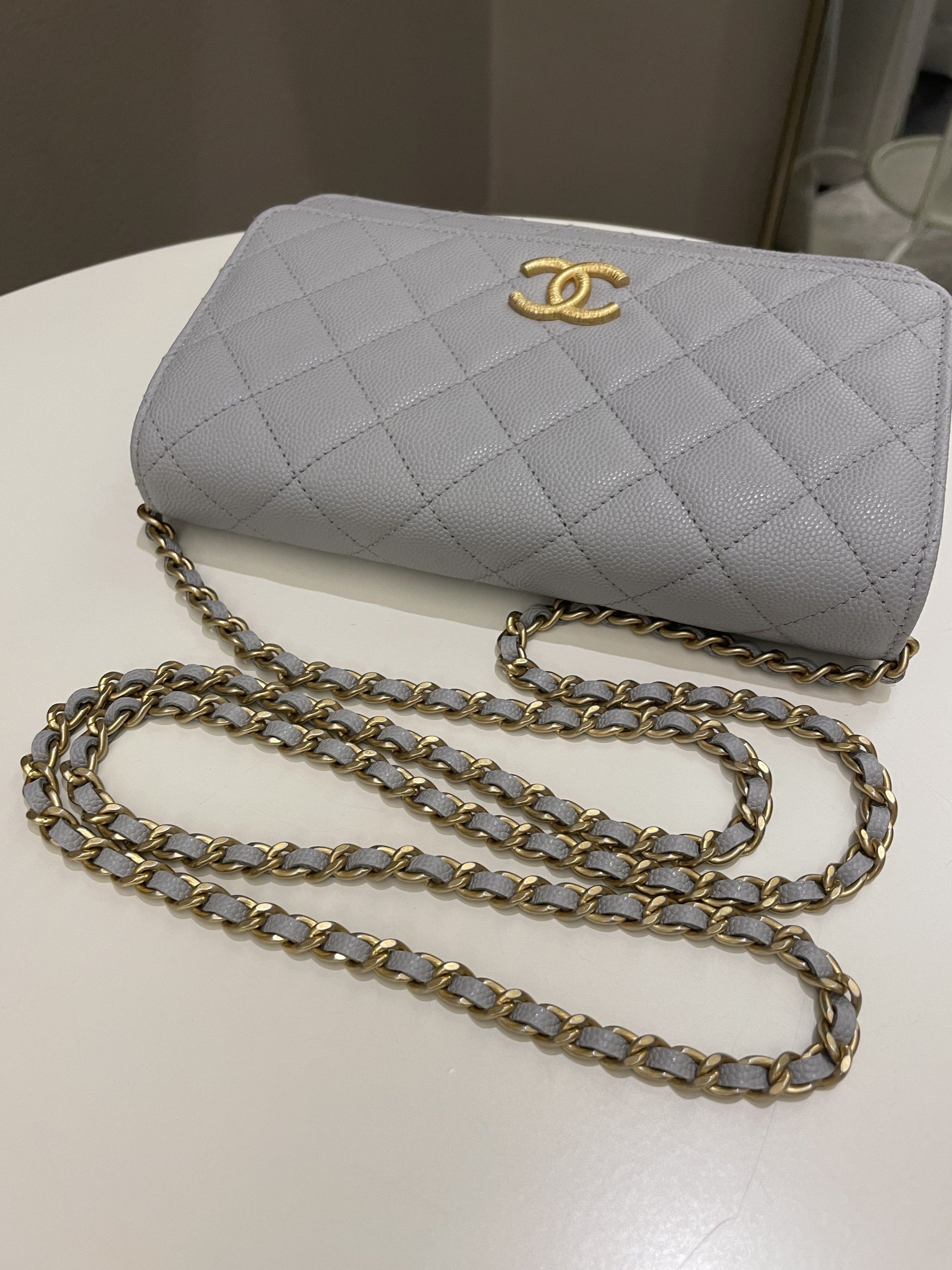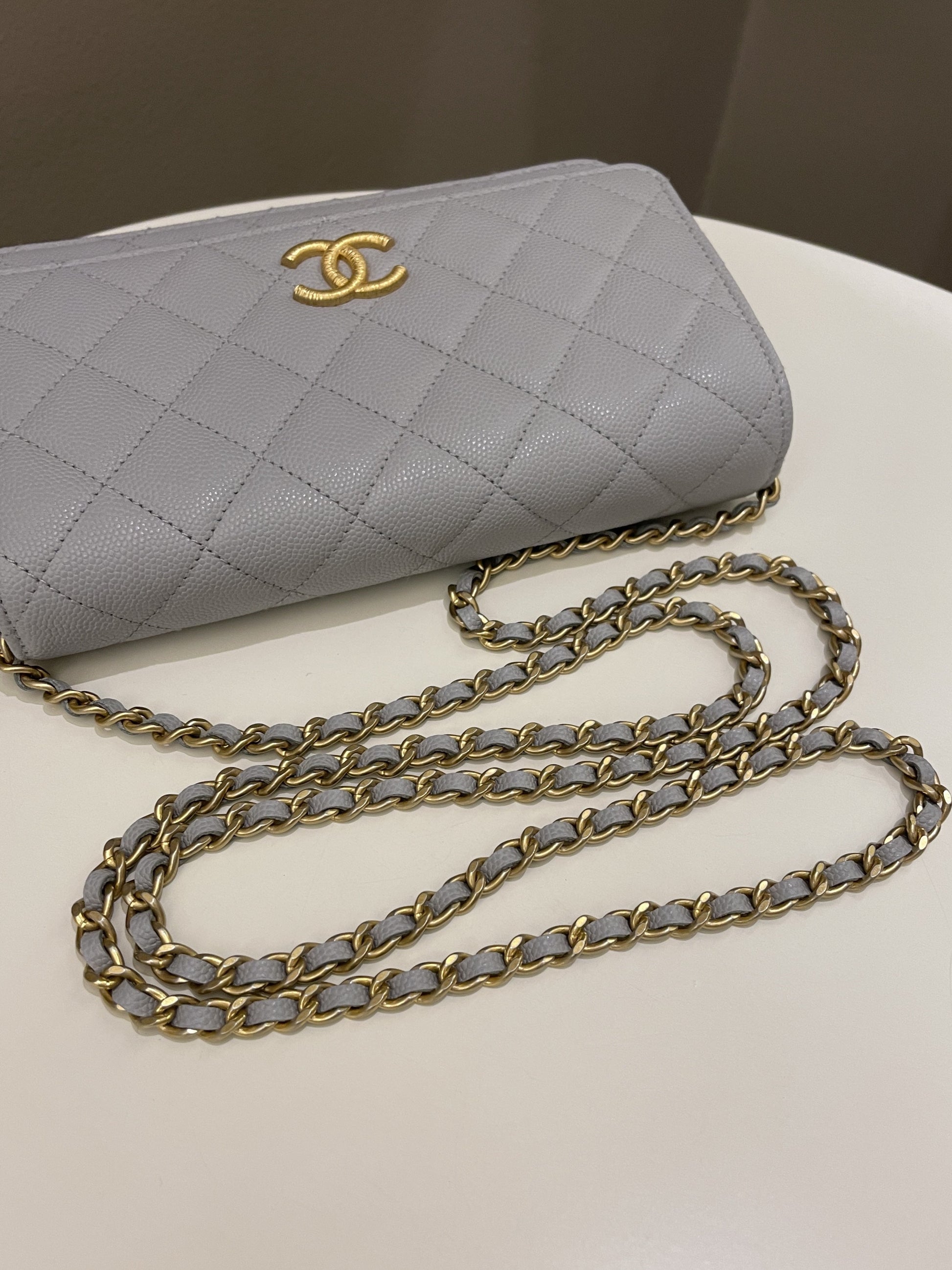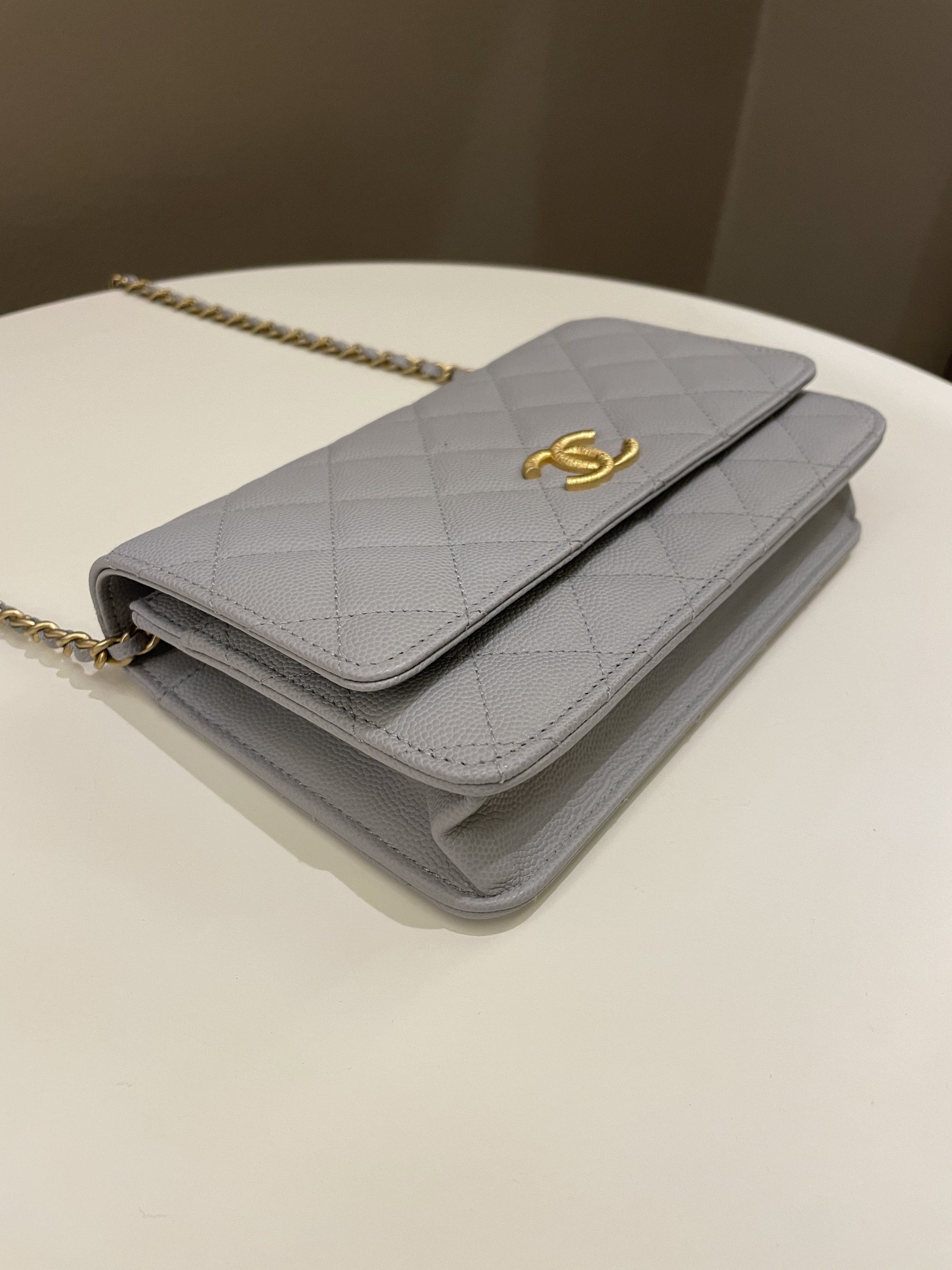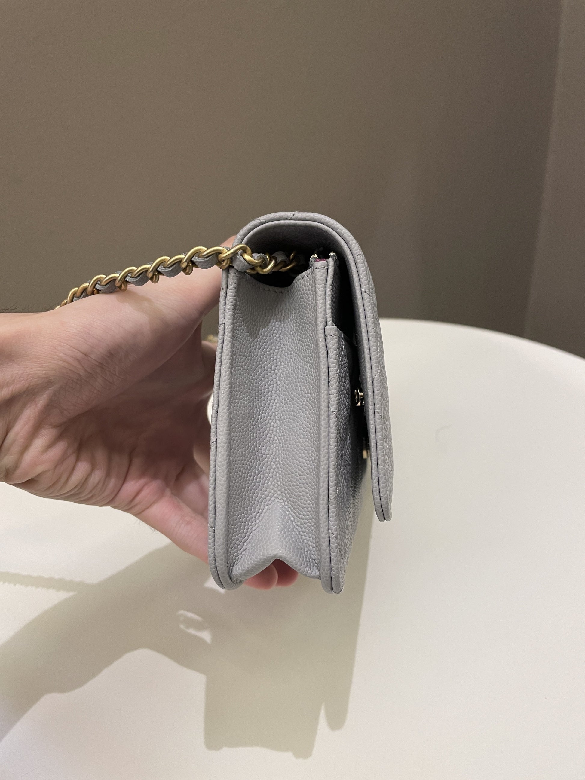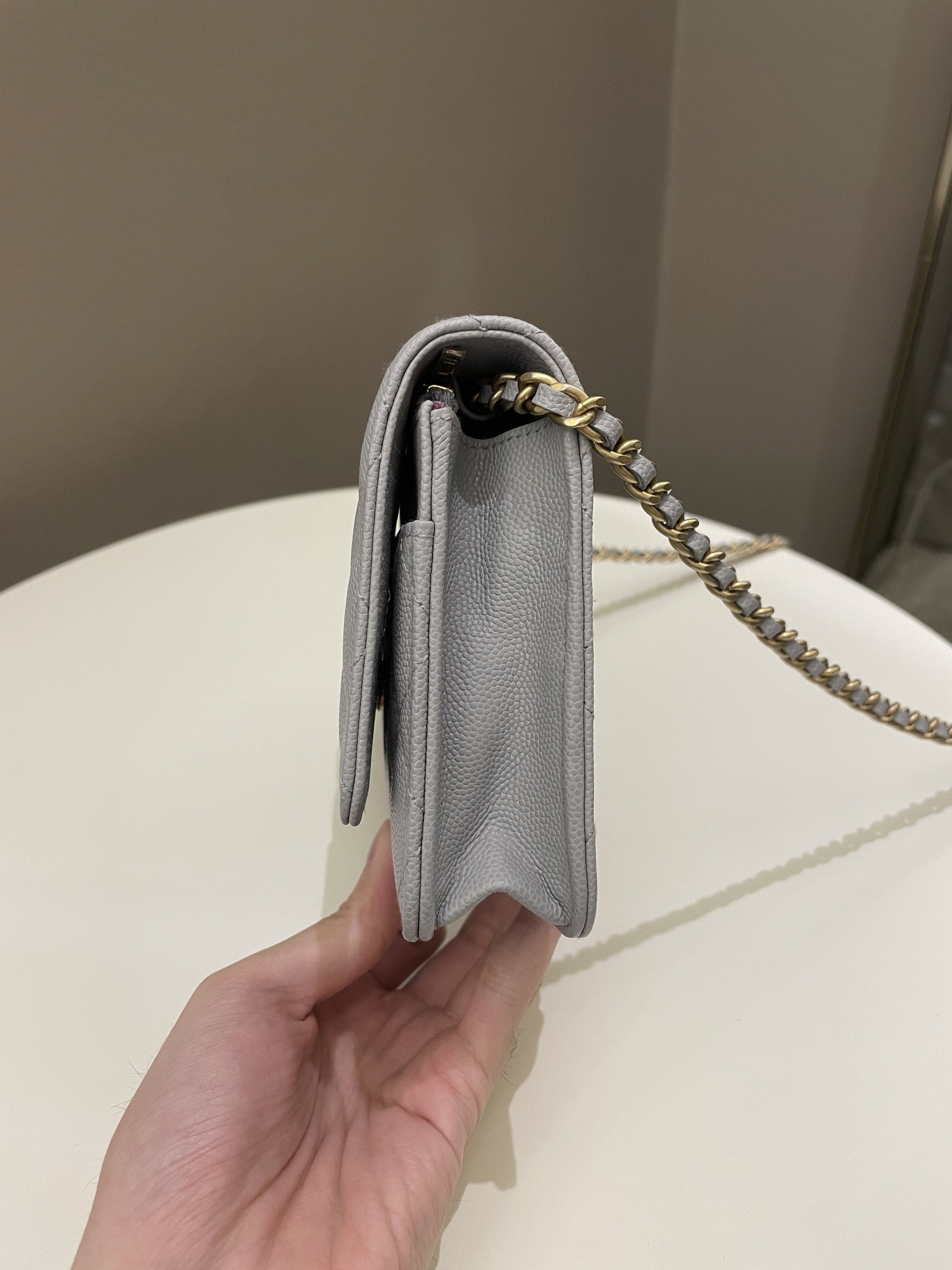 Chanel Gold Cc Classic Wallet on Chain Grey Caviar