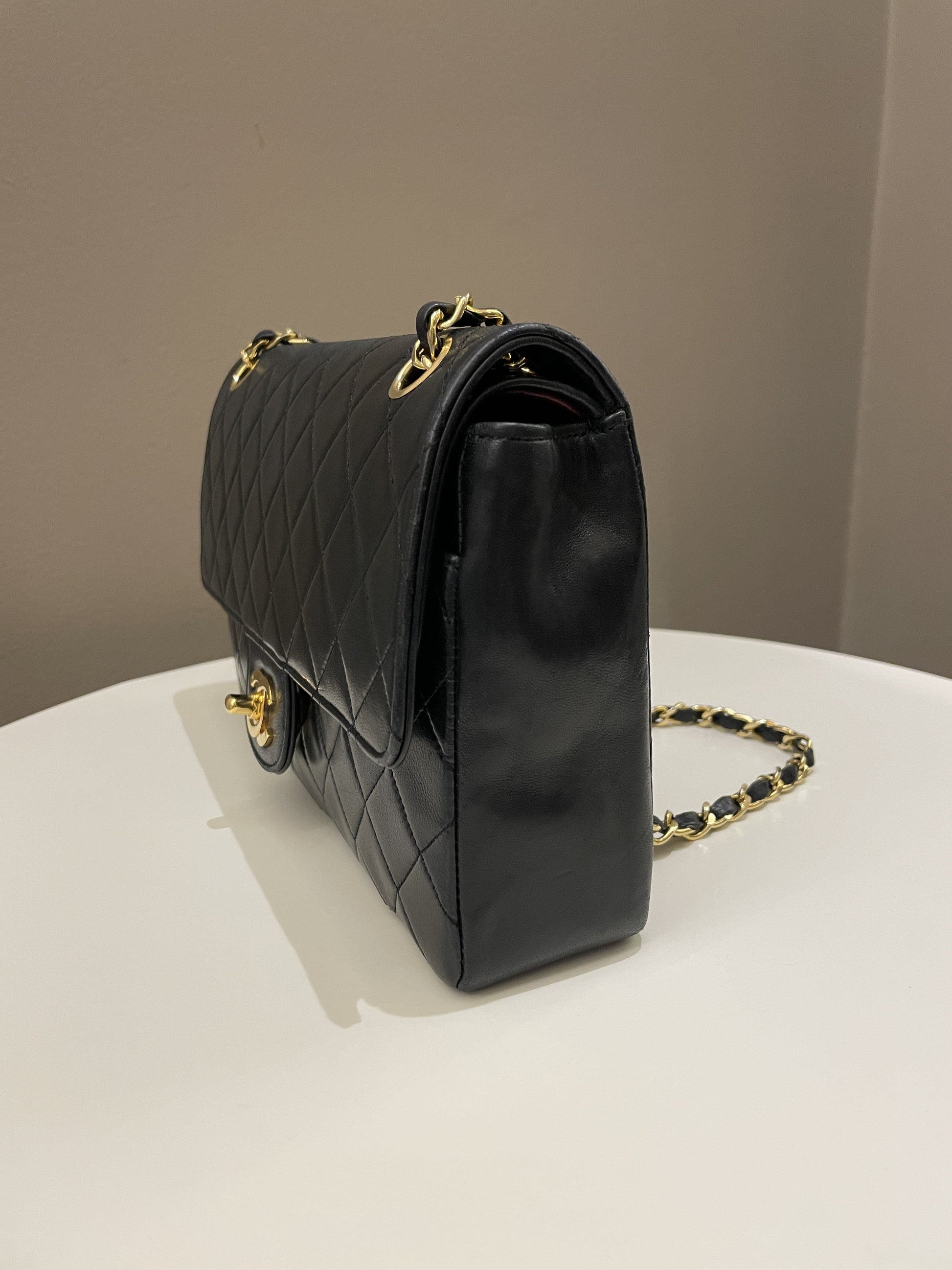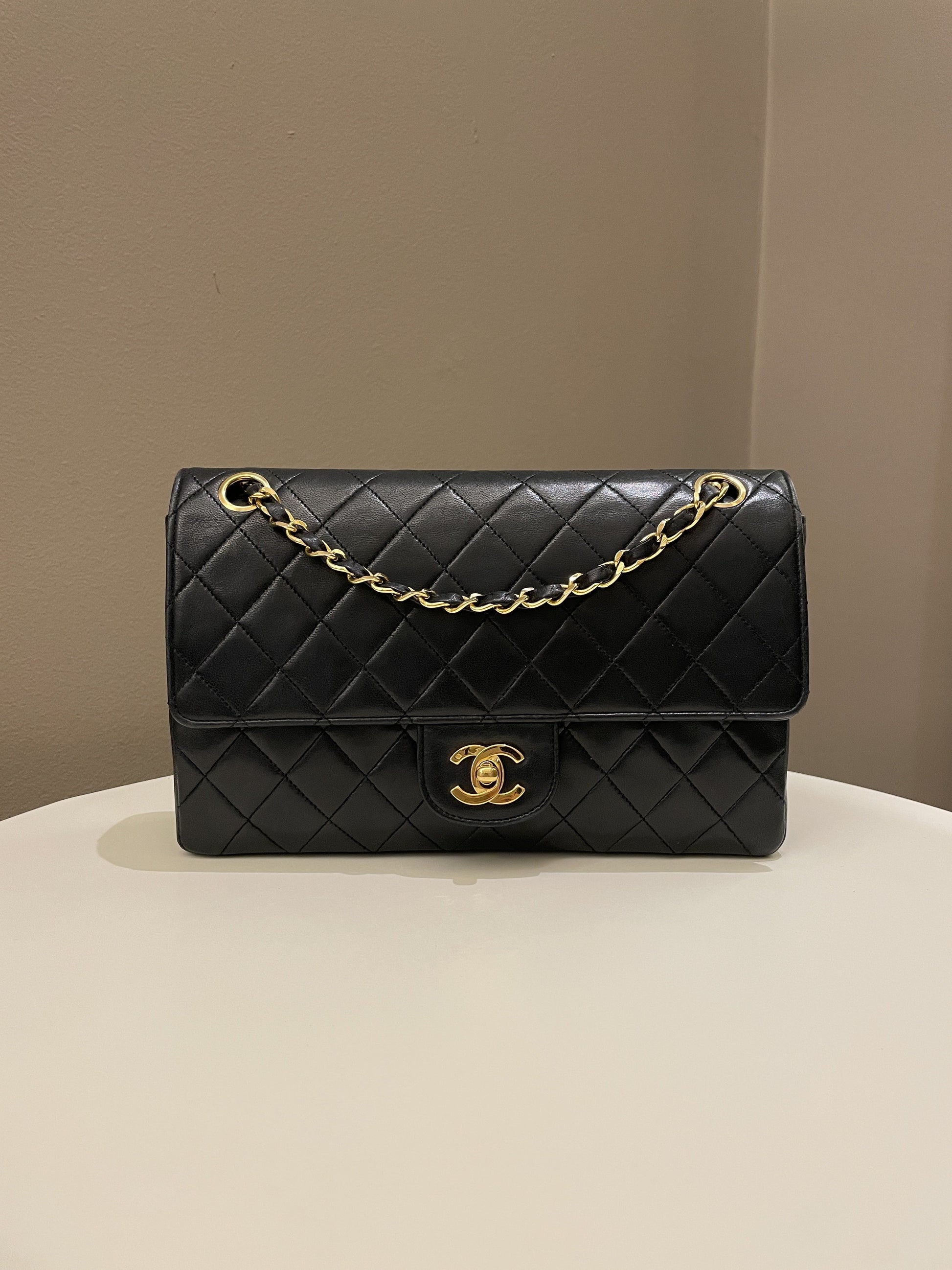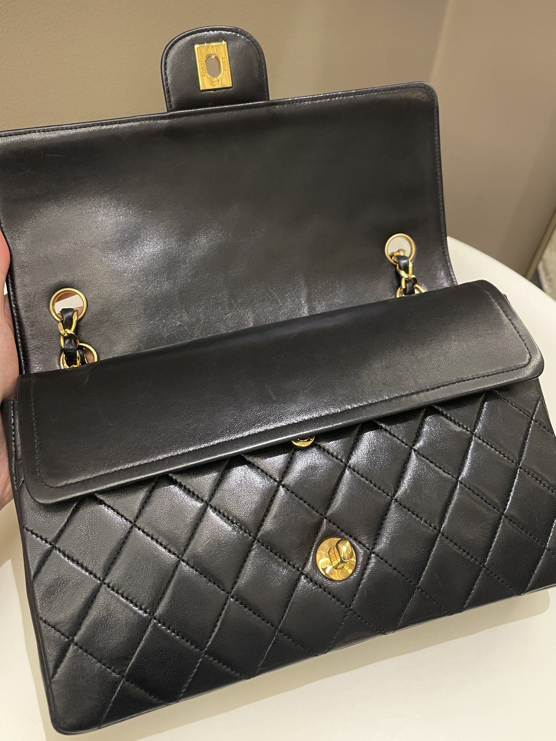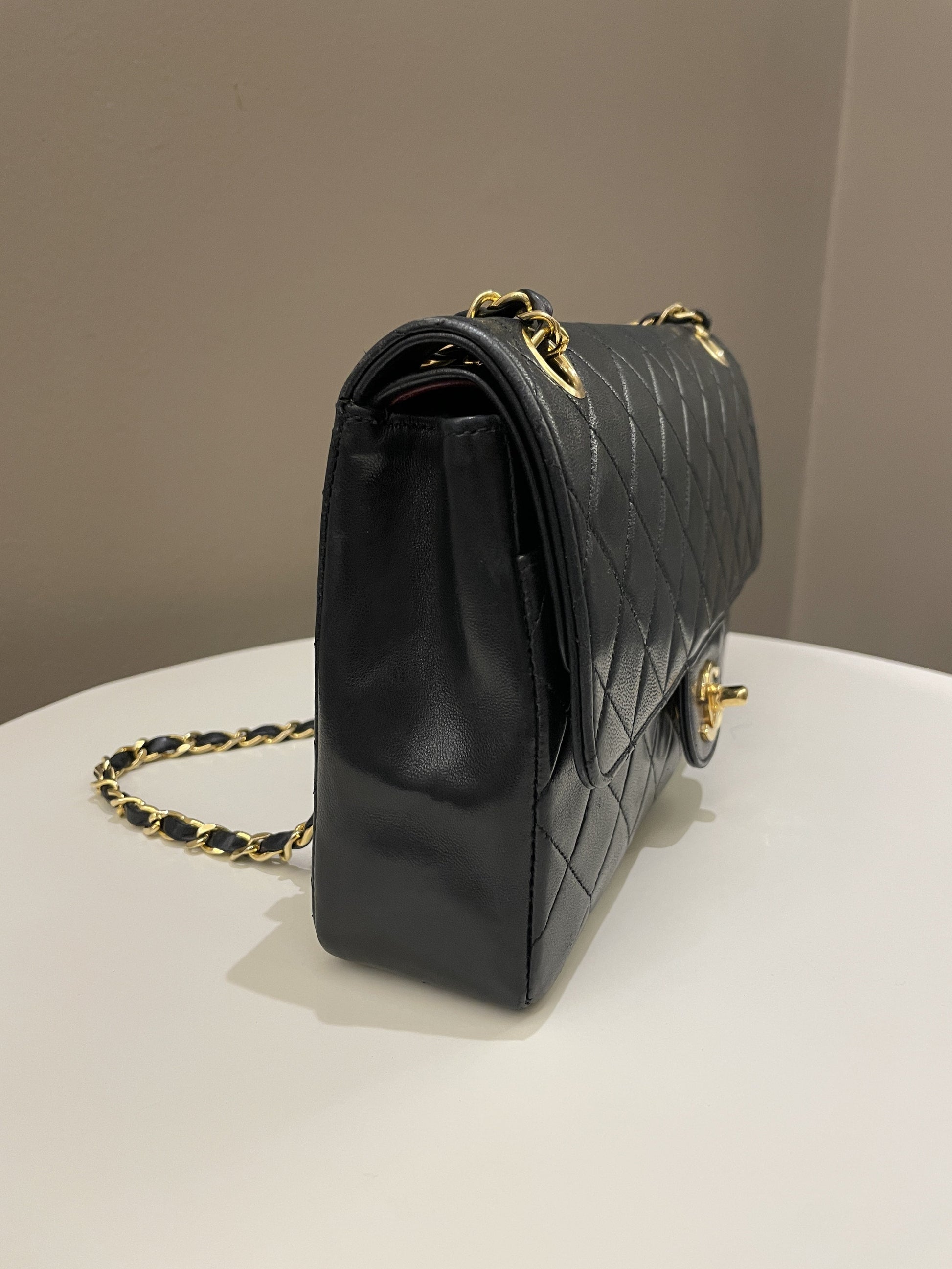 Chanel Vintage Classic Quilted Medium Double Flap Black Lambskin