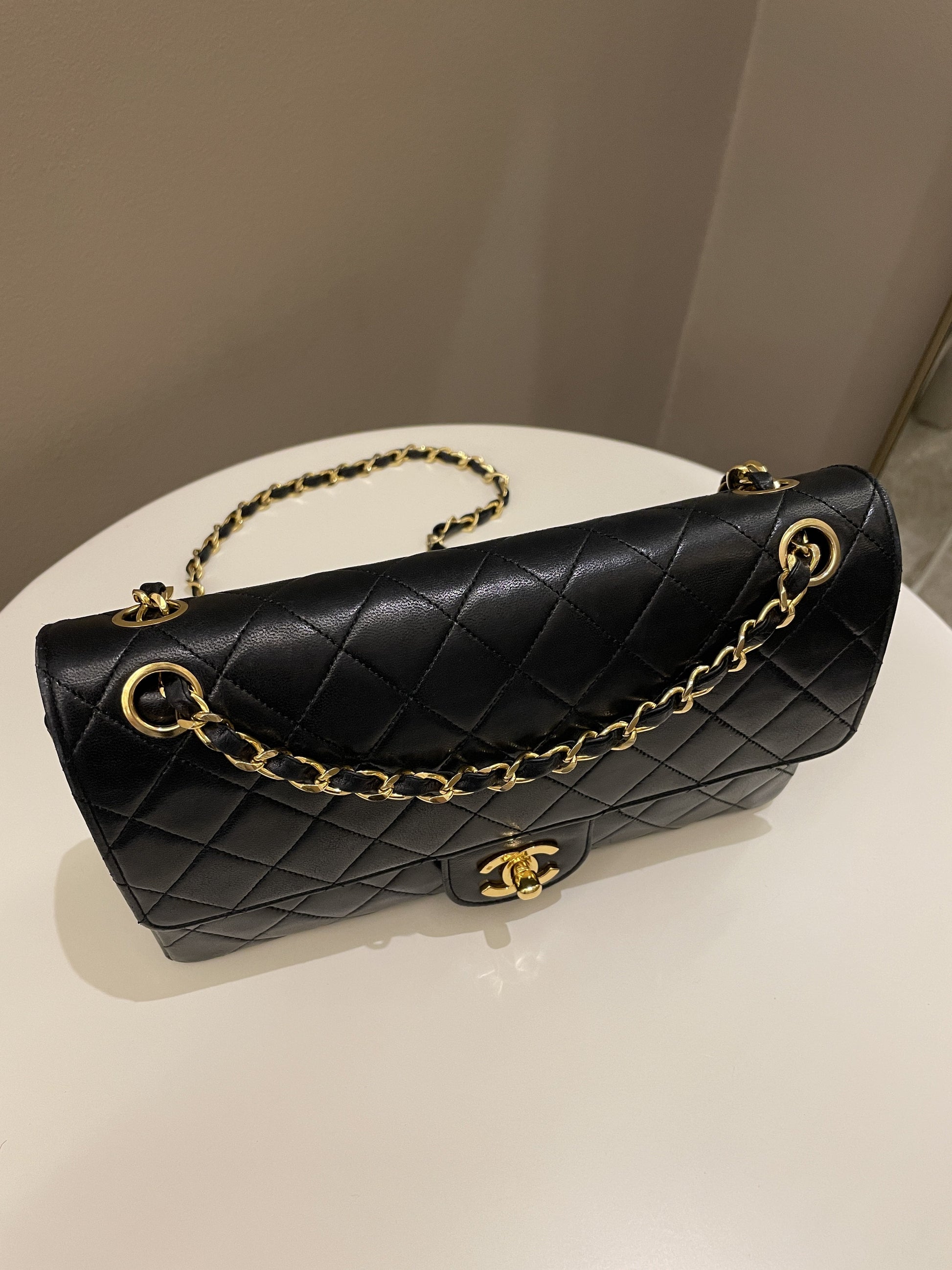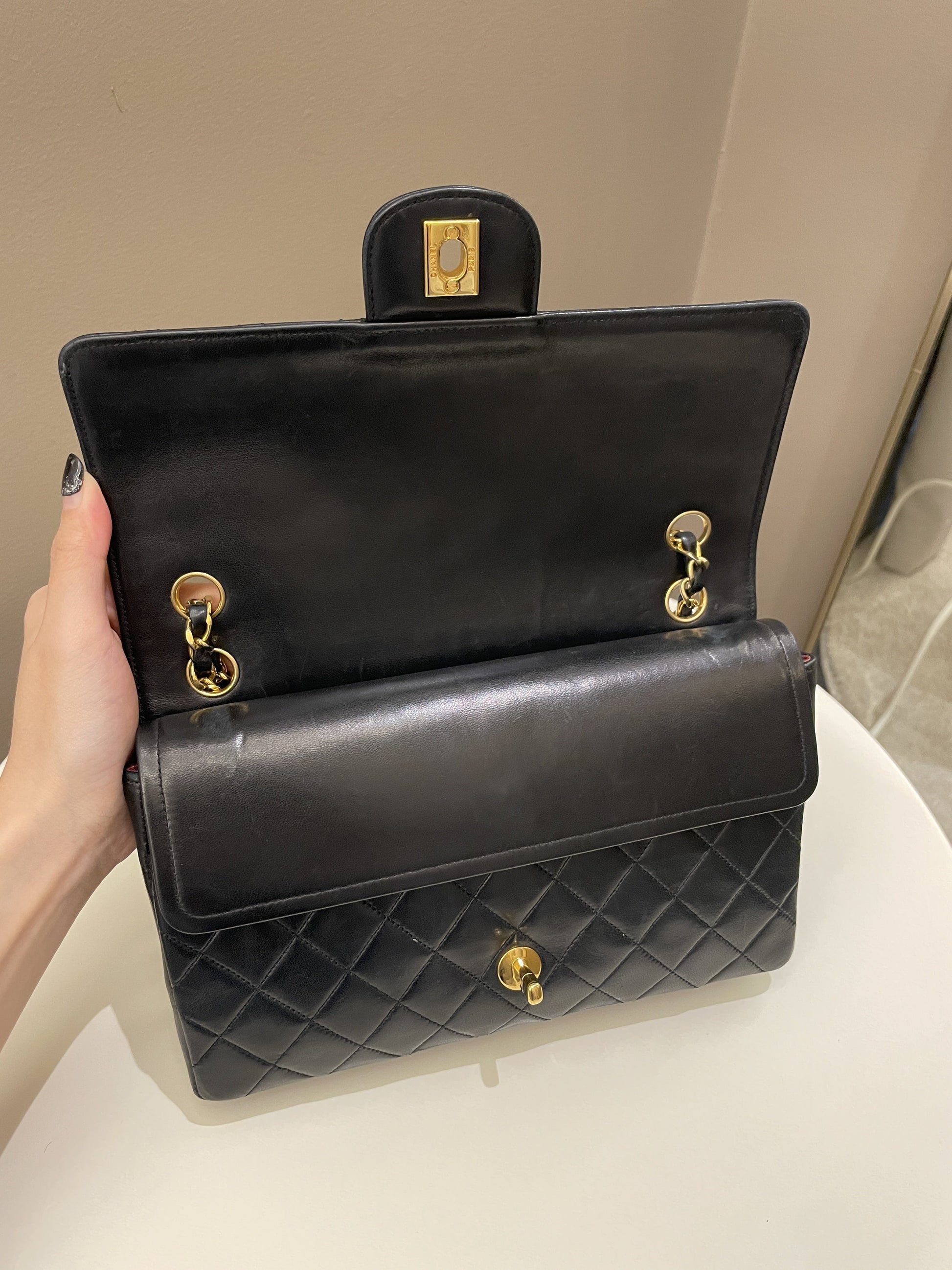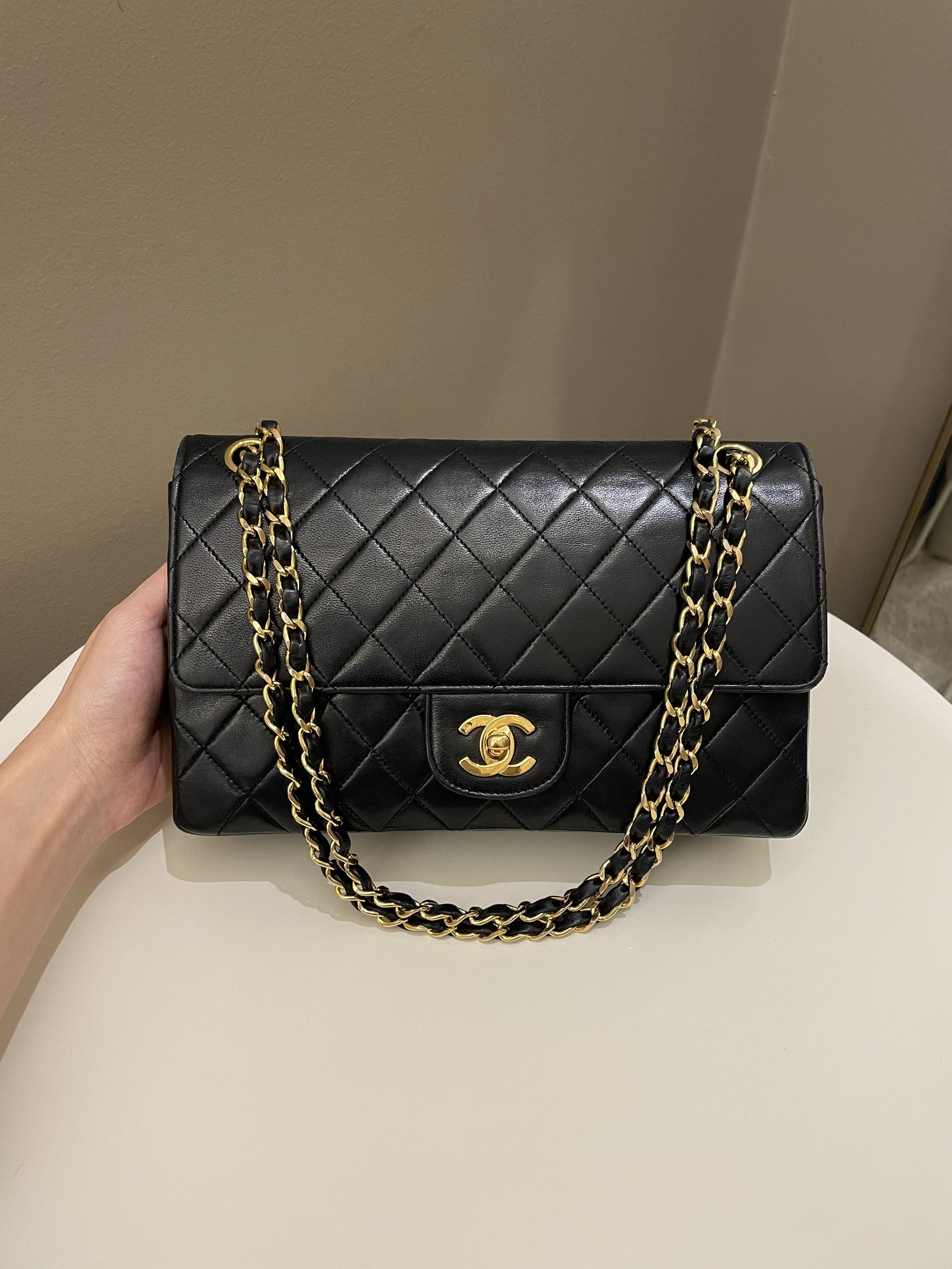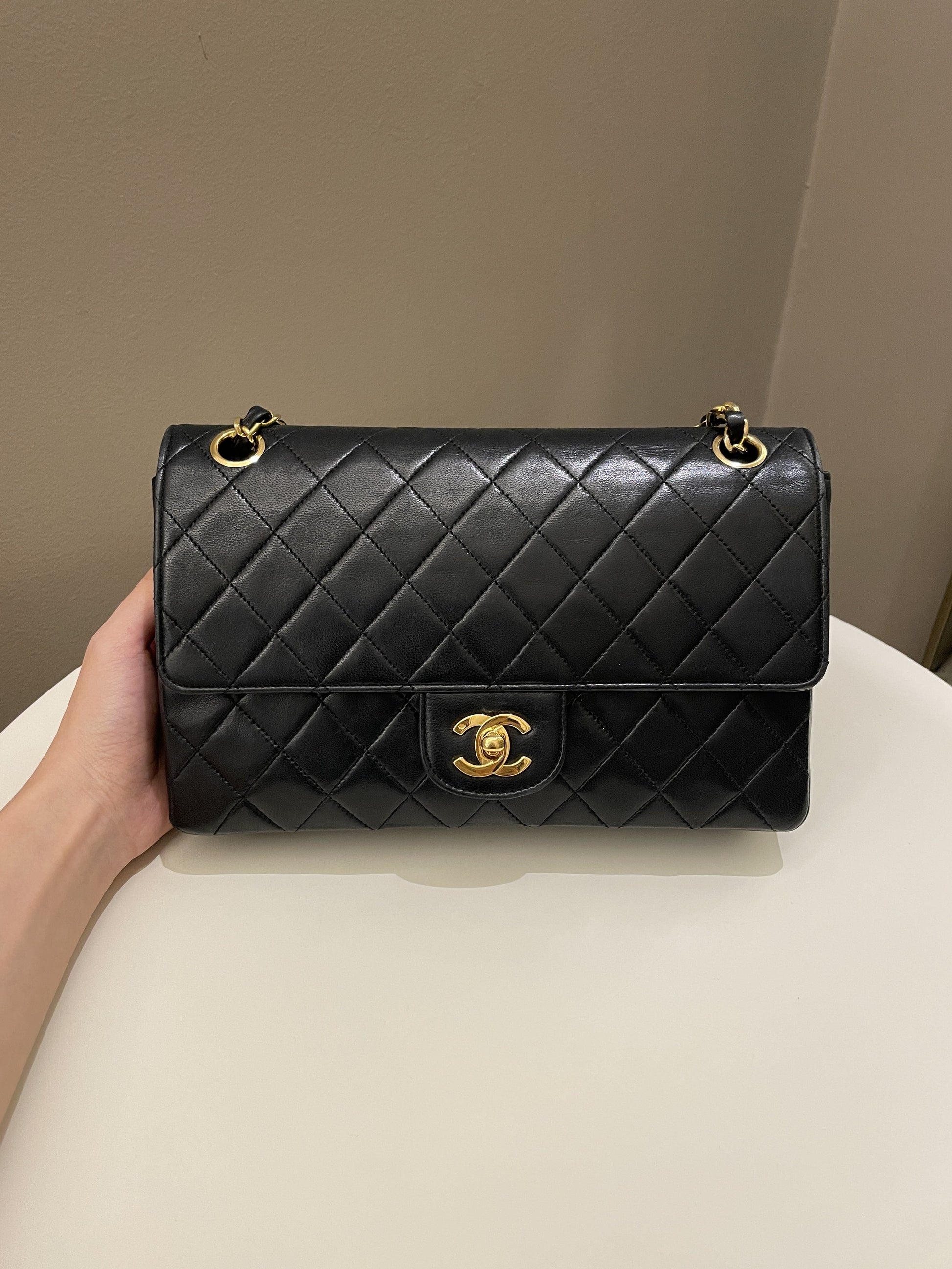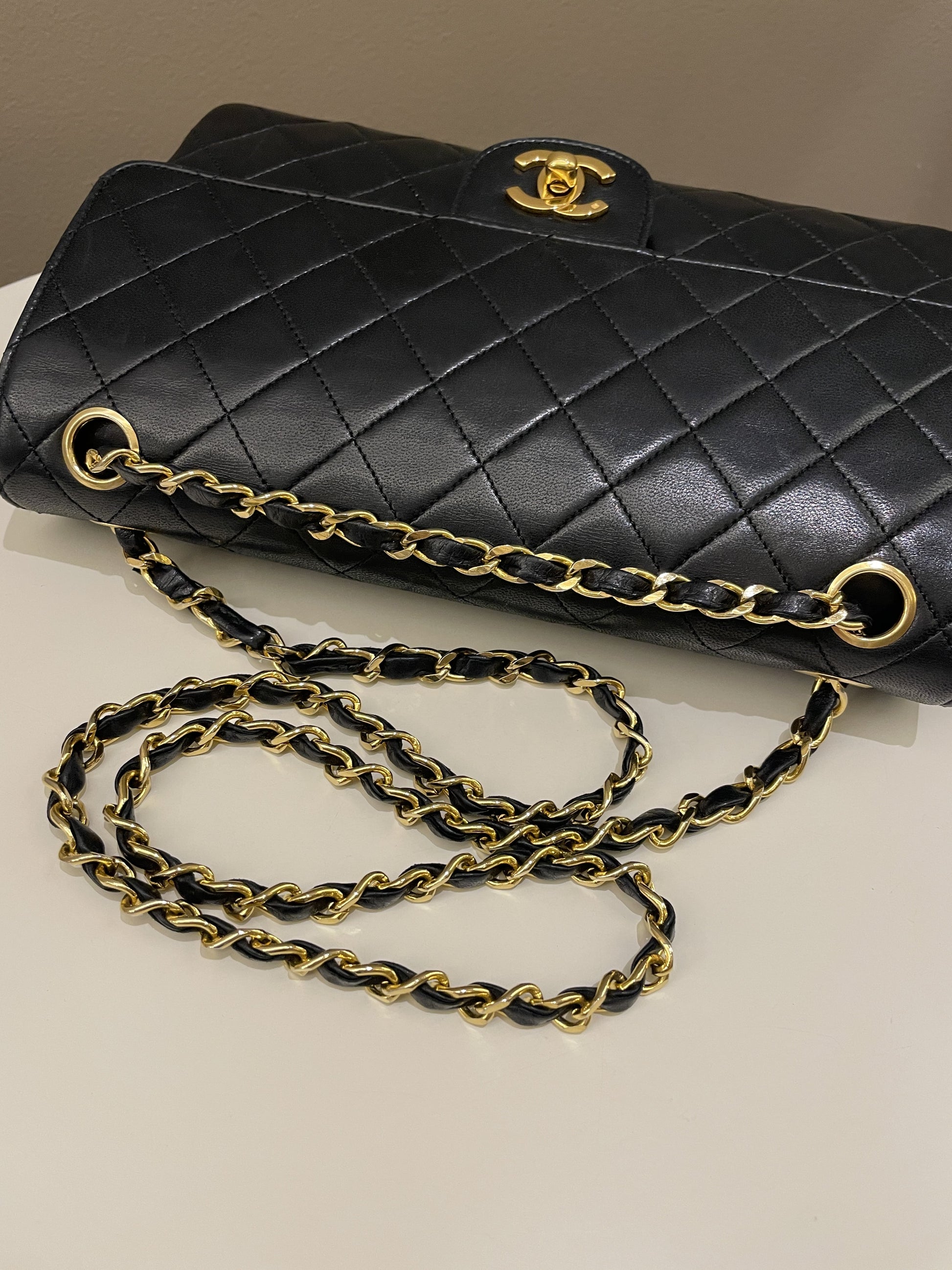 Chanel Vintage Classic Quilted Medium Double Flap Black Lambskin