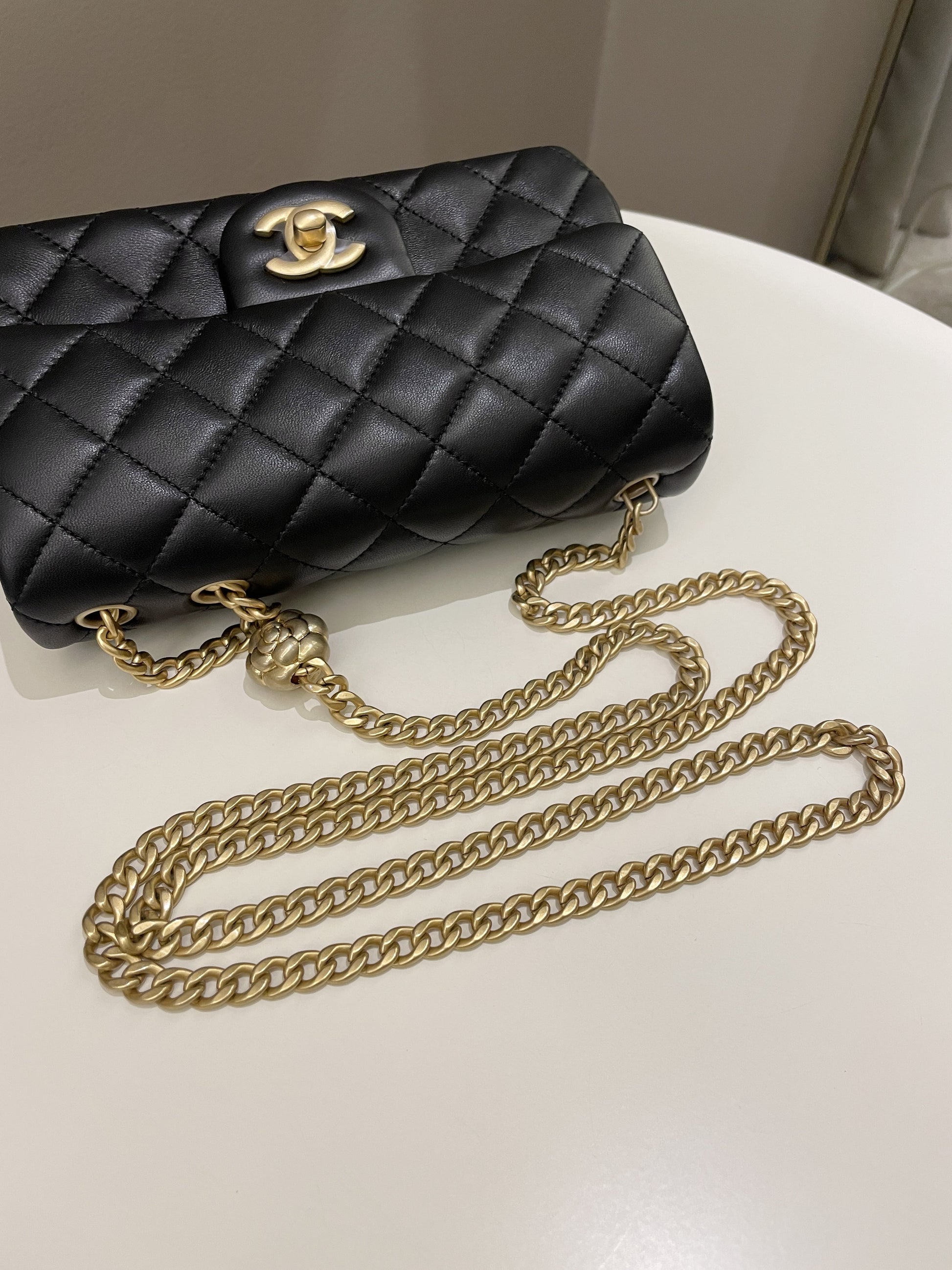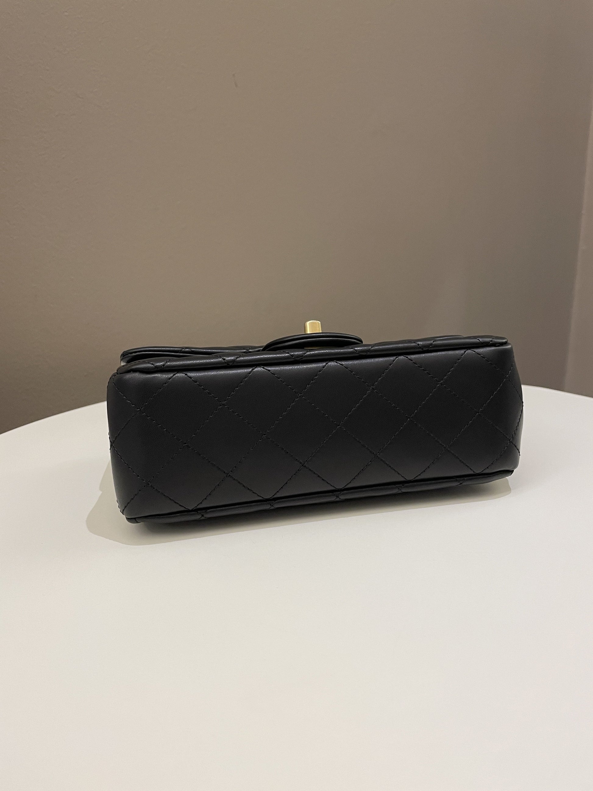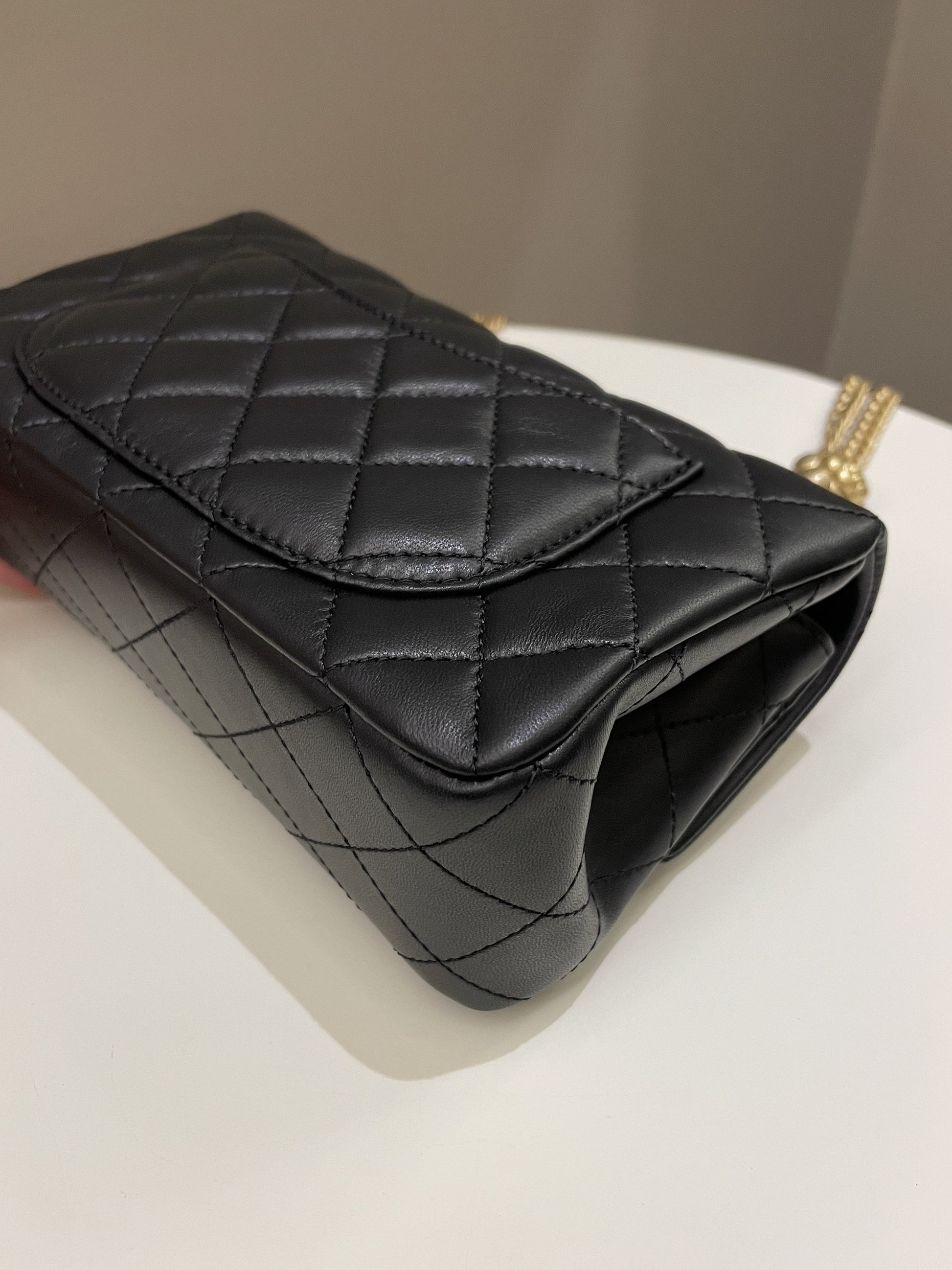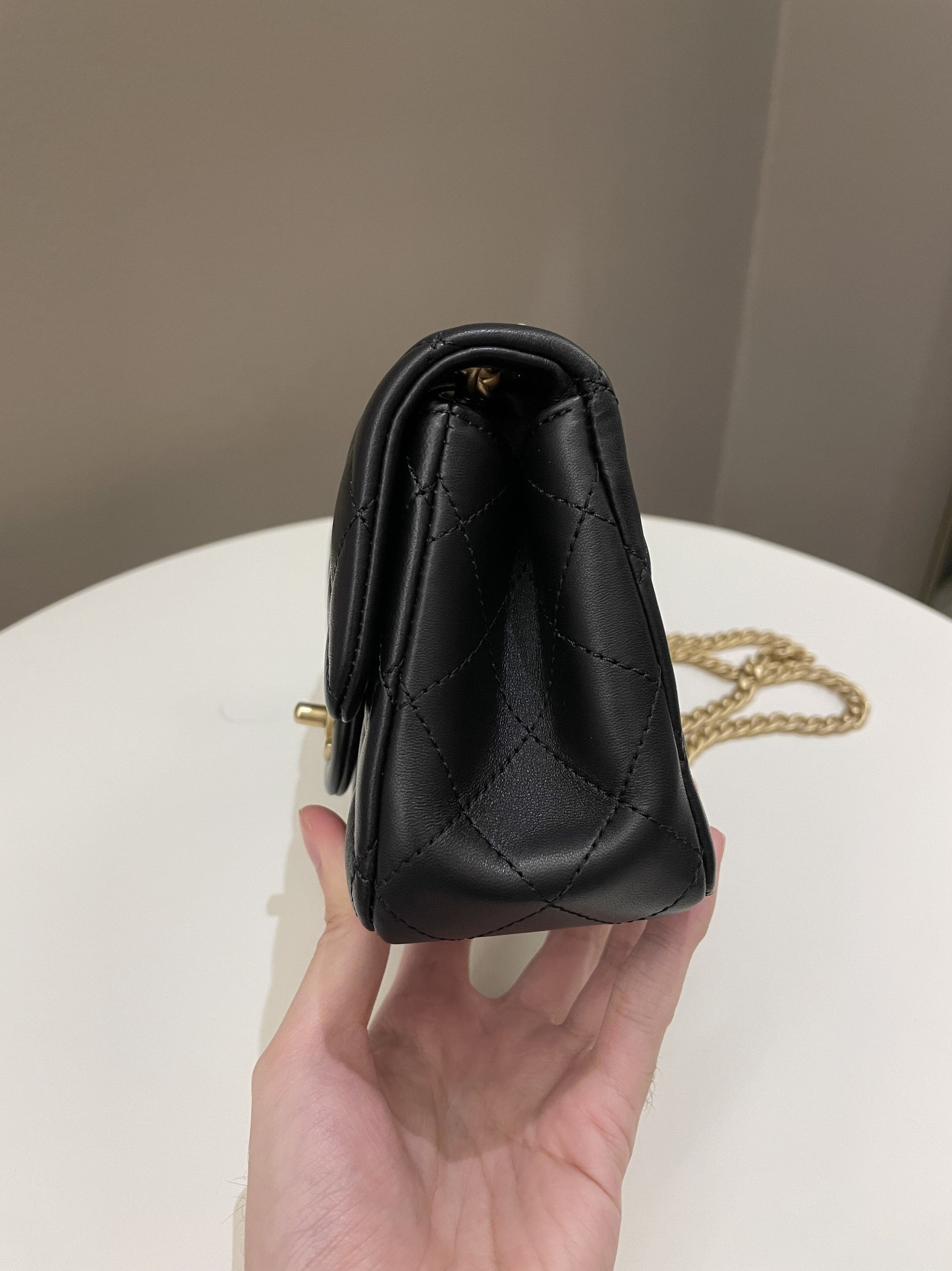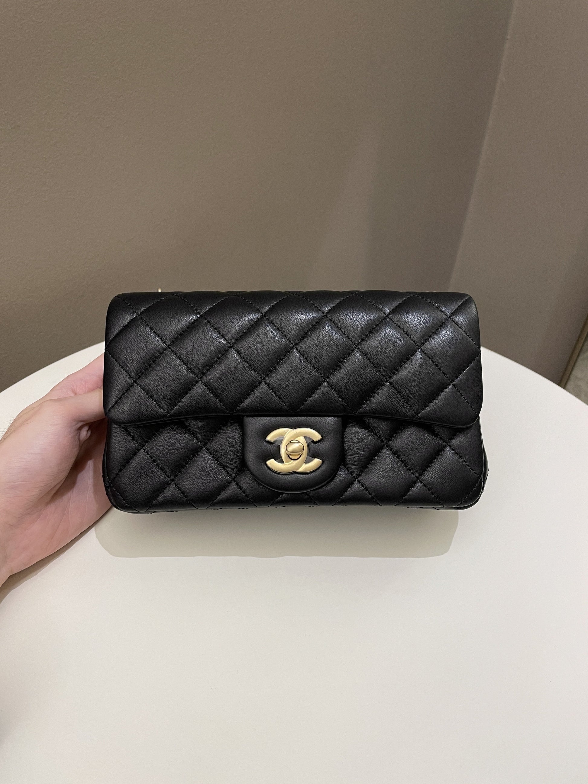 Chanel 23S Camilla Crush Quilted Mini Rectangular Black Stiff Lambskin