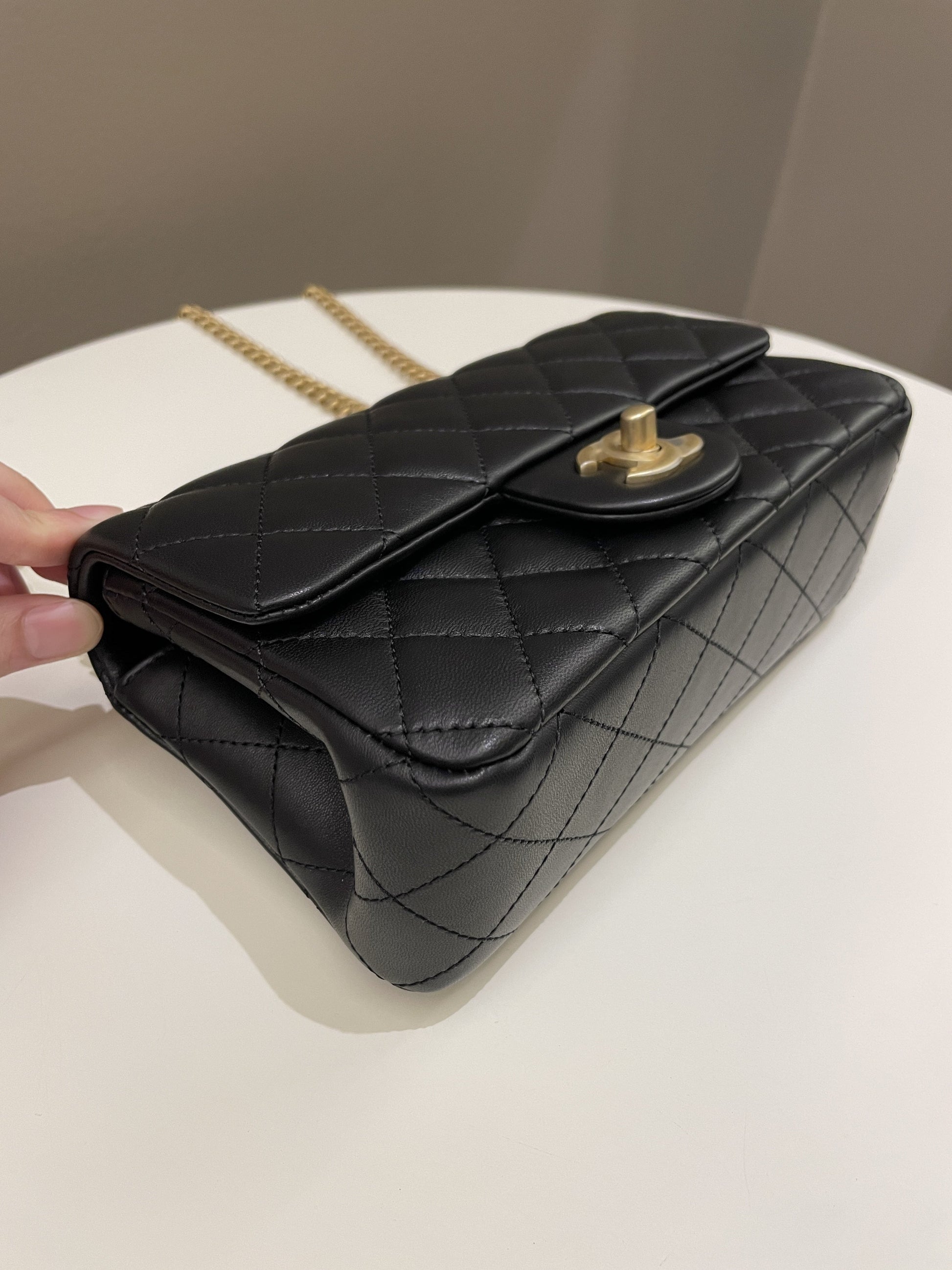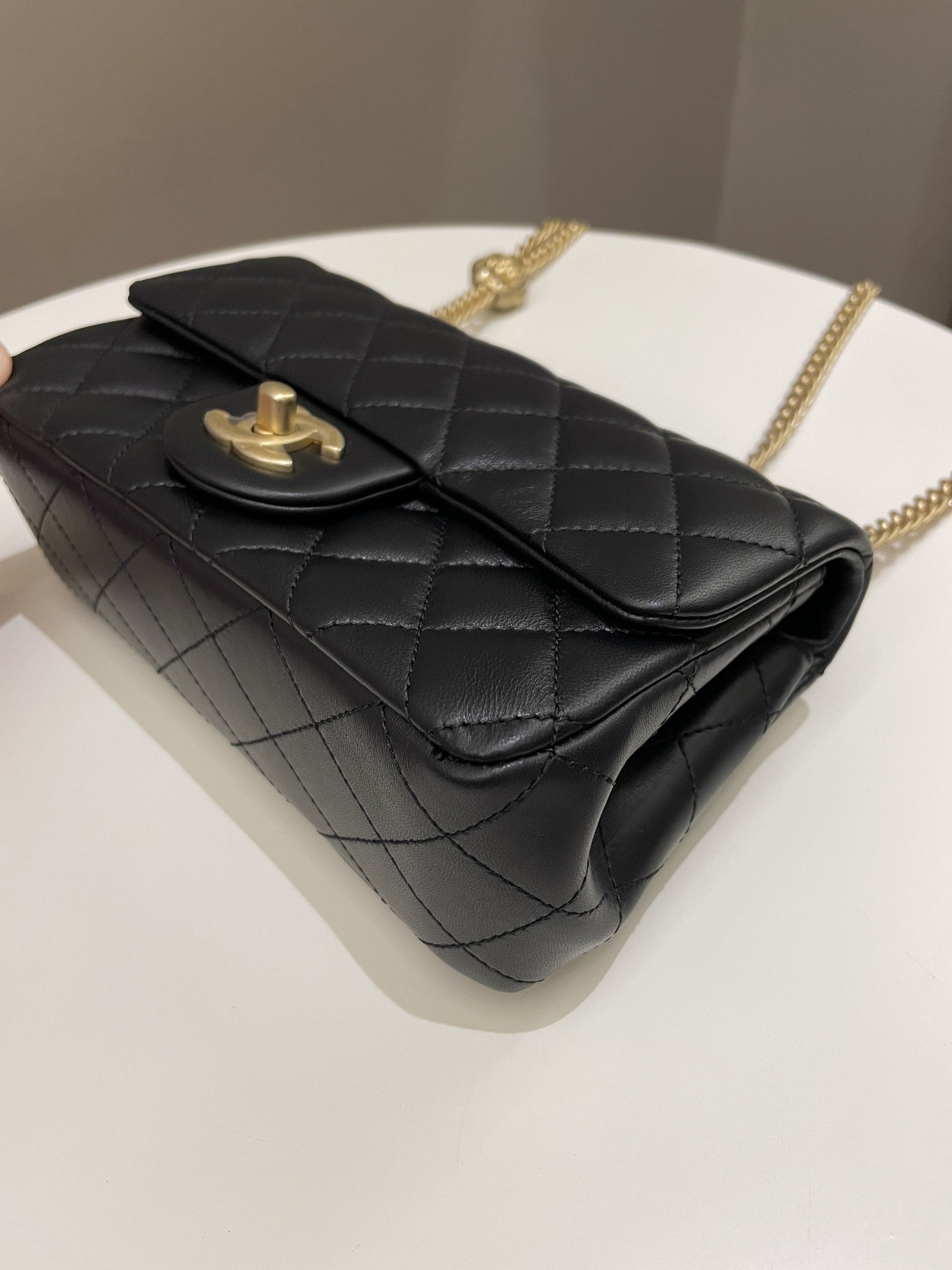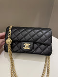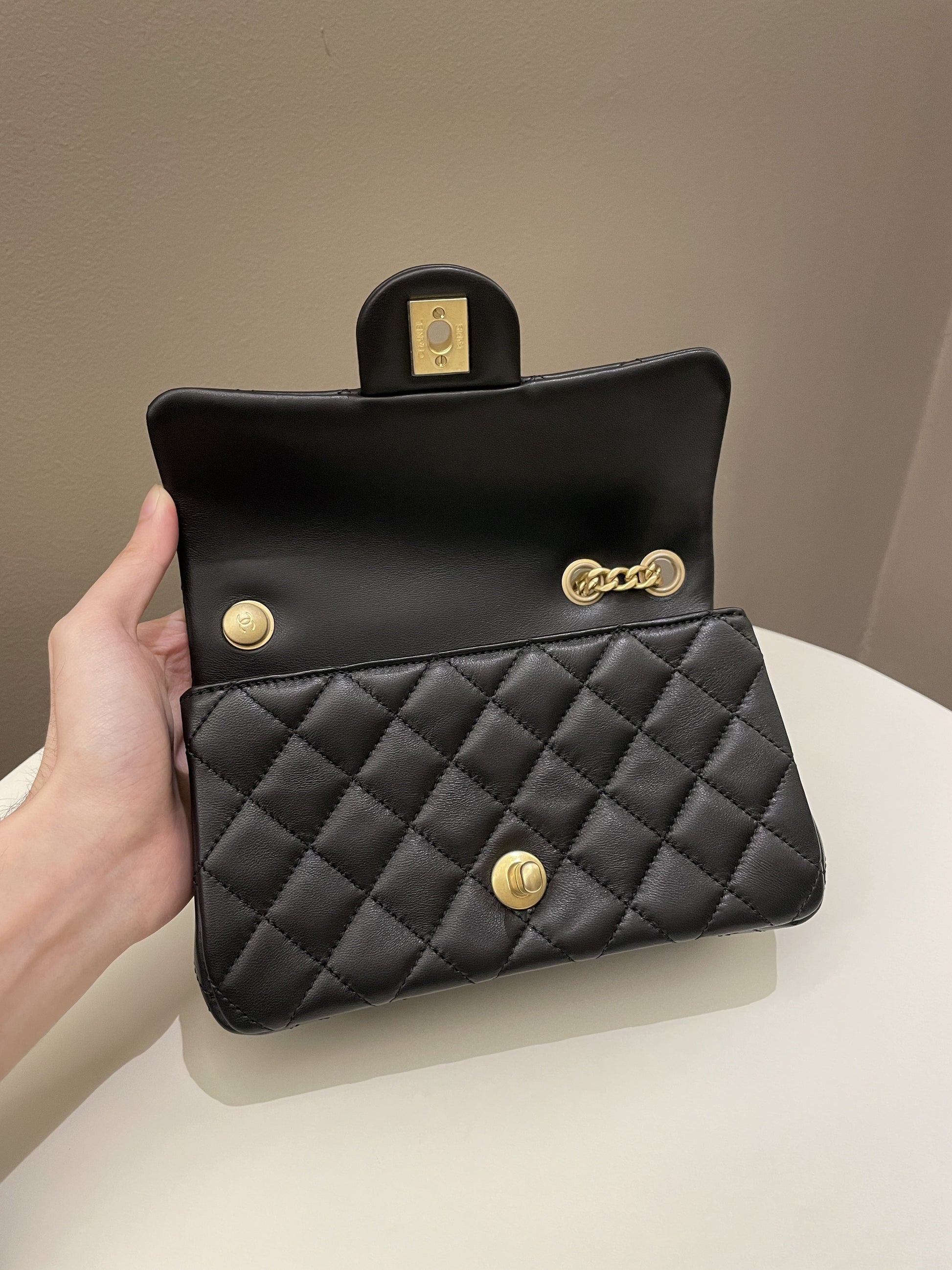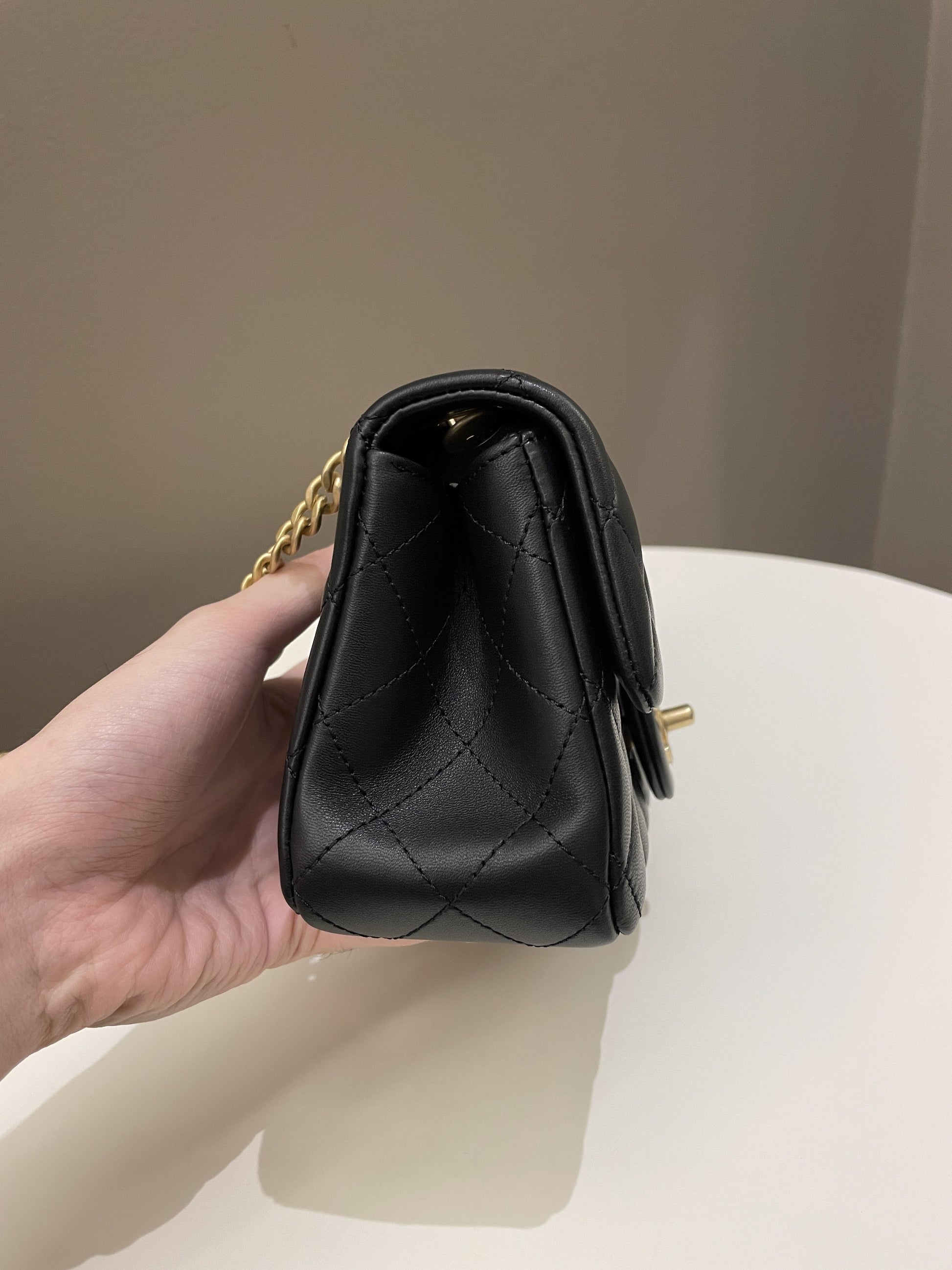 Chanel 23S Camilla Crush Quilted Mini Rectangular Black Stiff Lambskin