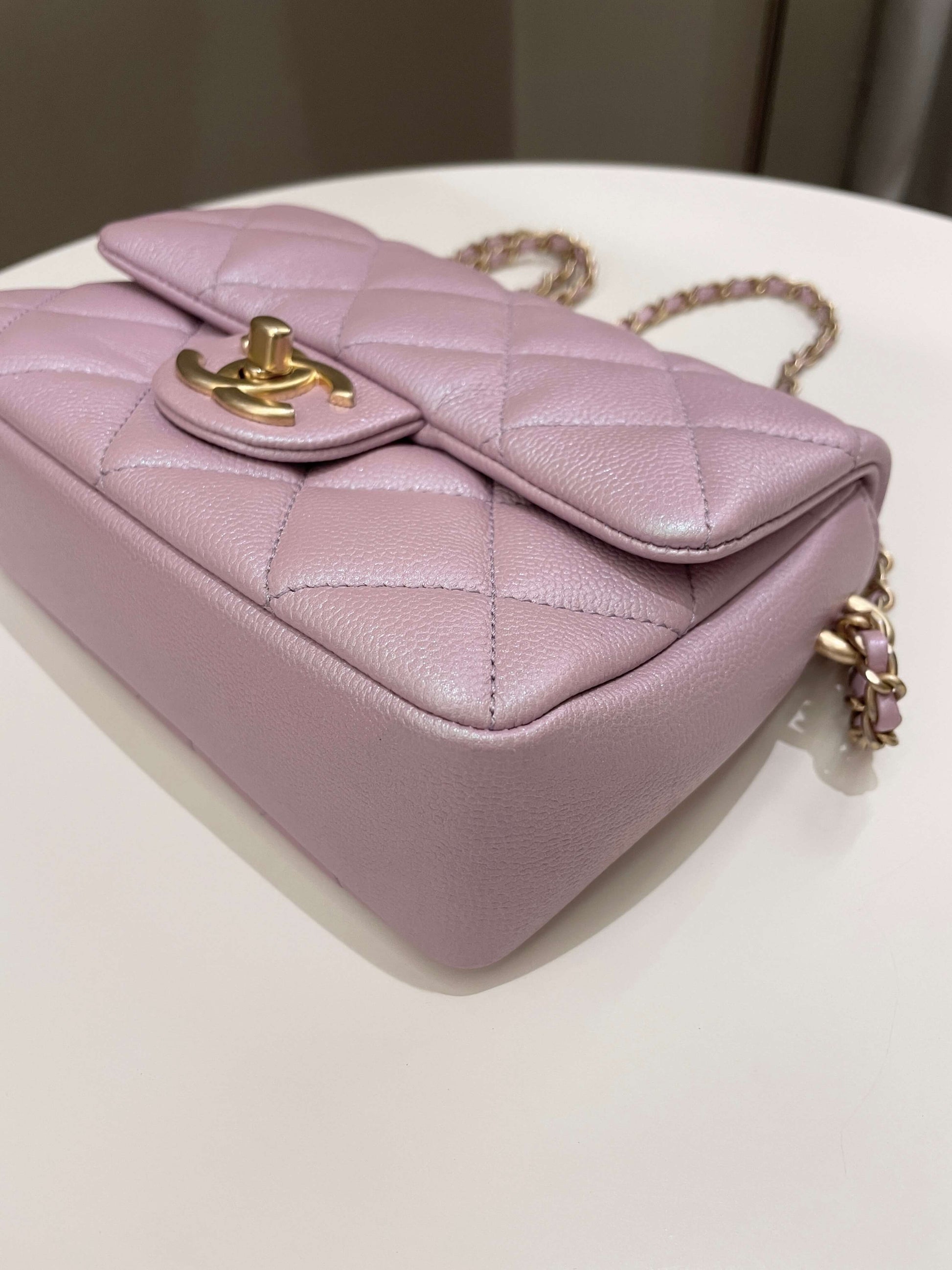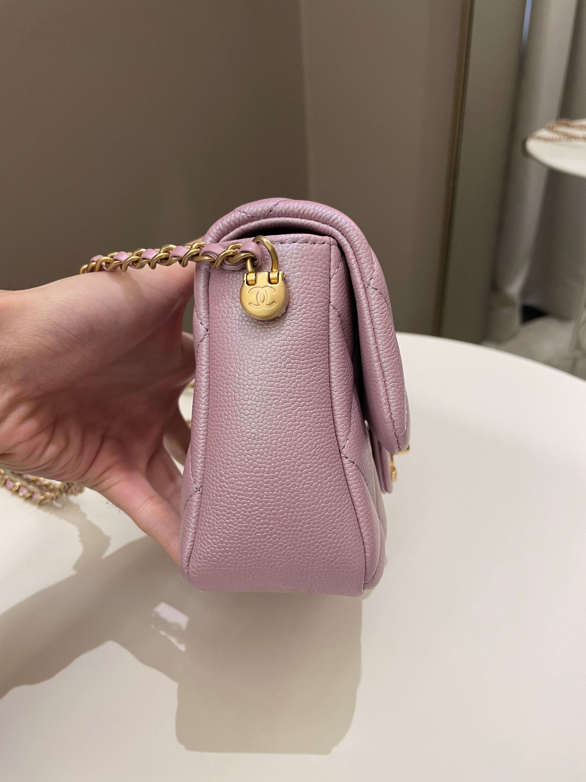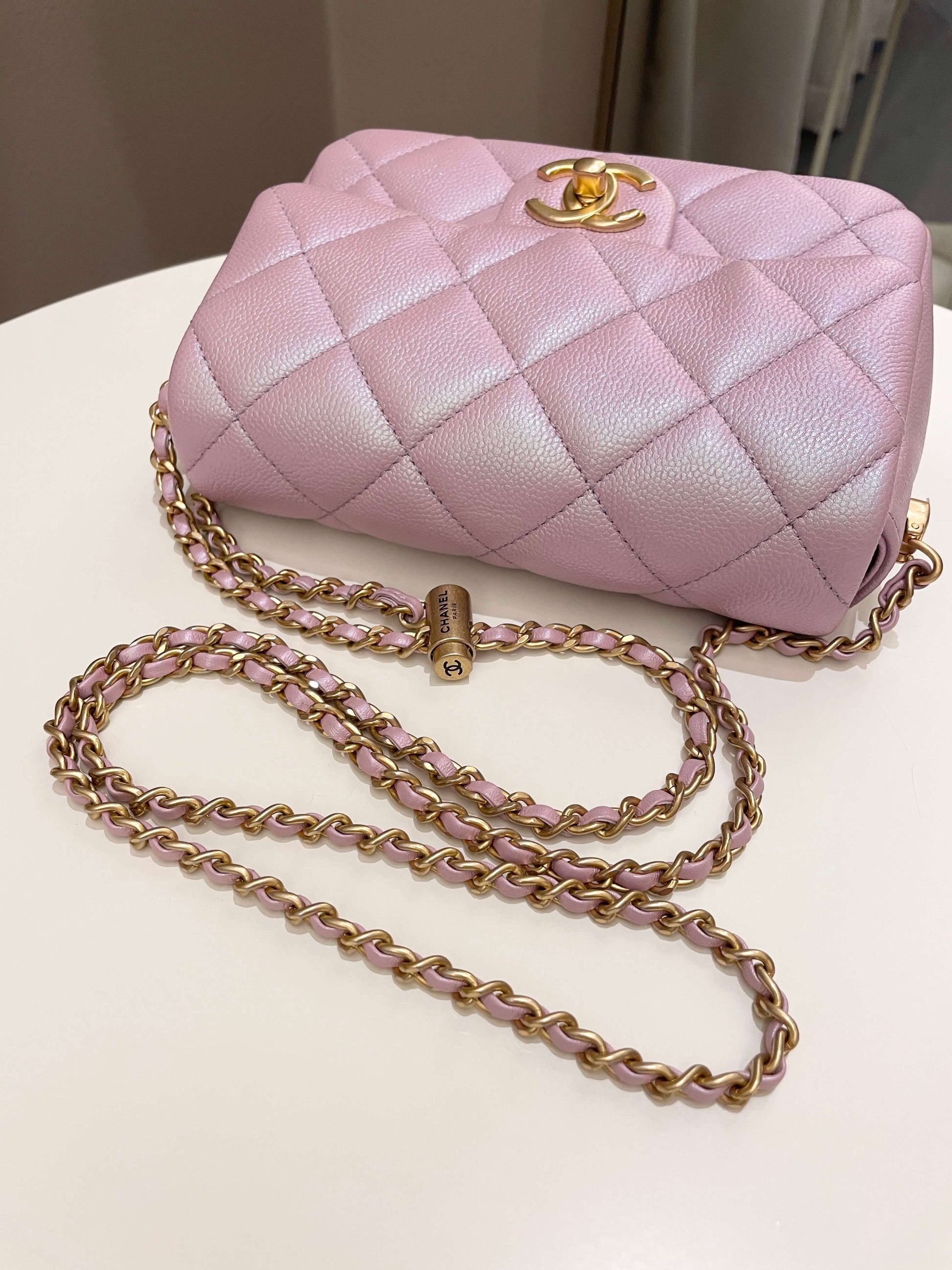 Chanel 21K My Perfect Mini Flap Bag Iridescent Pink Lilac Caviar