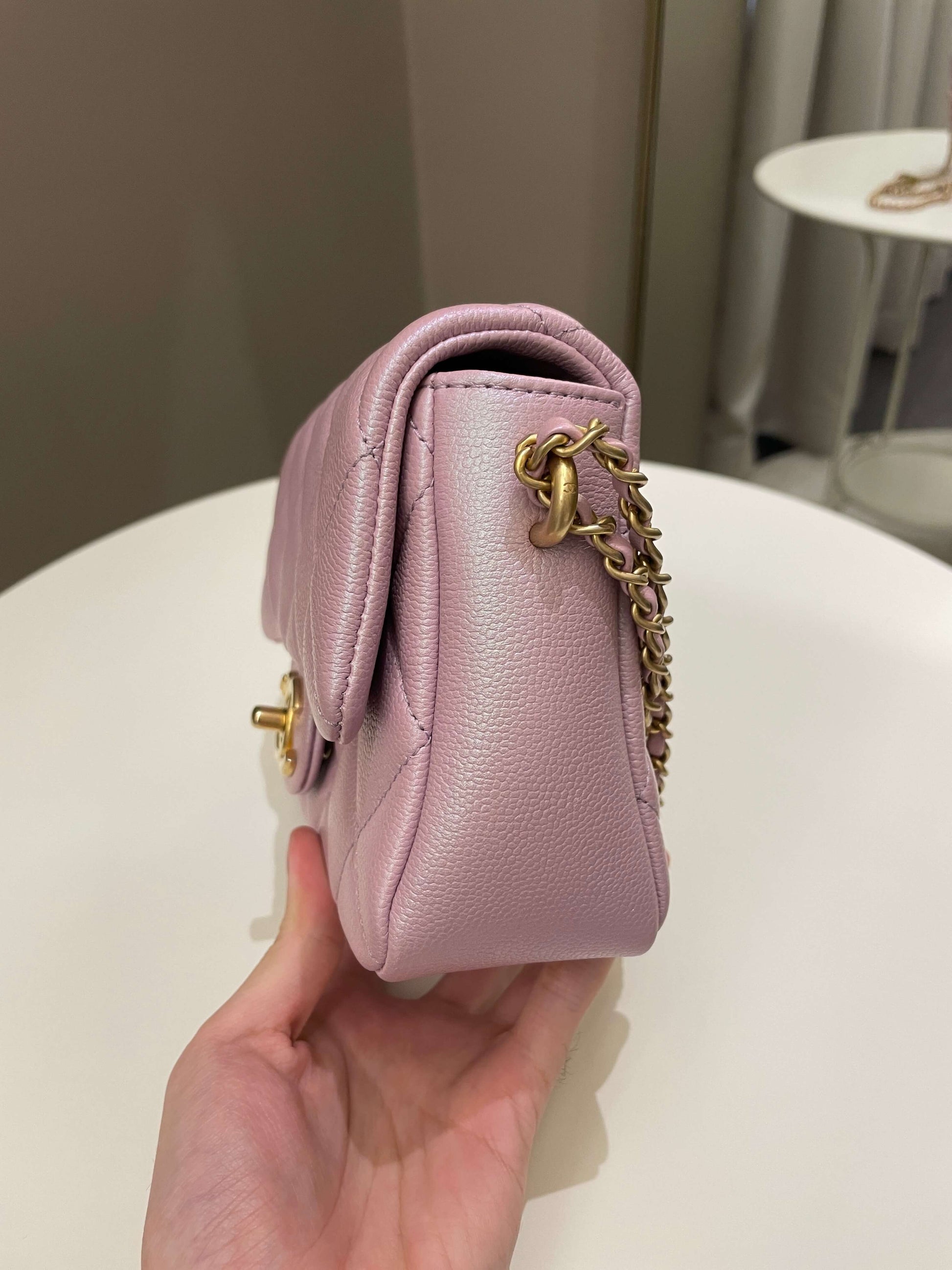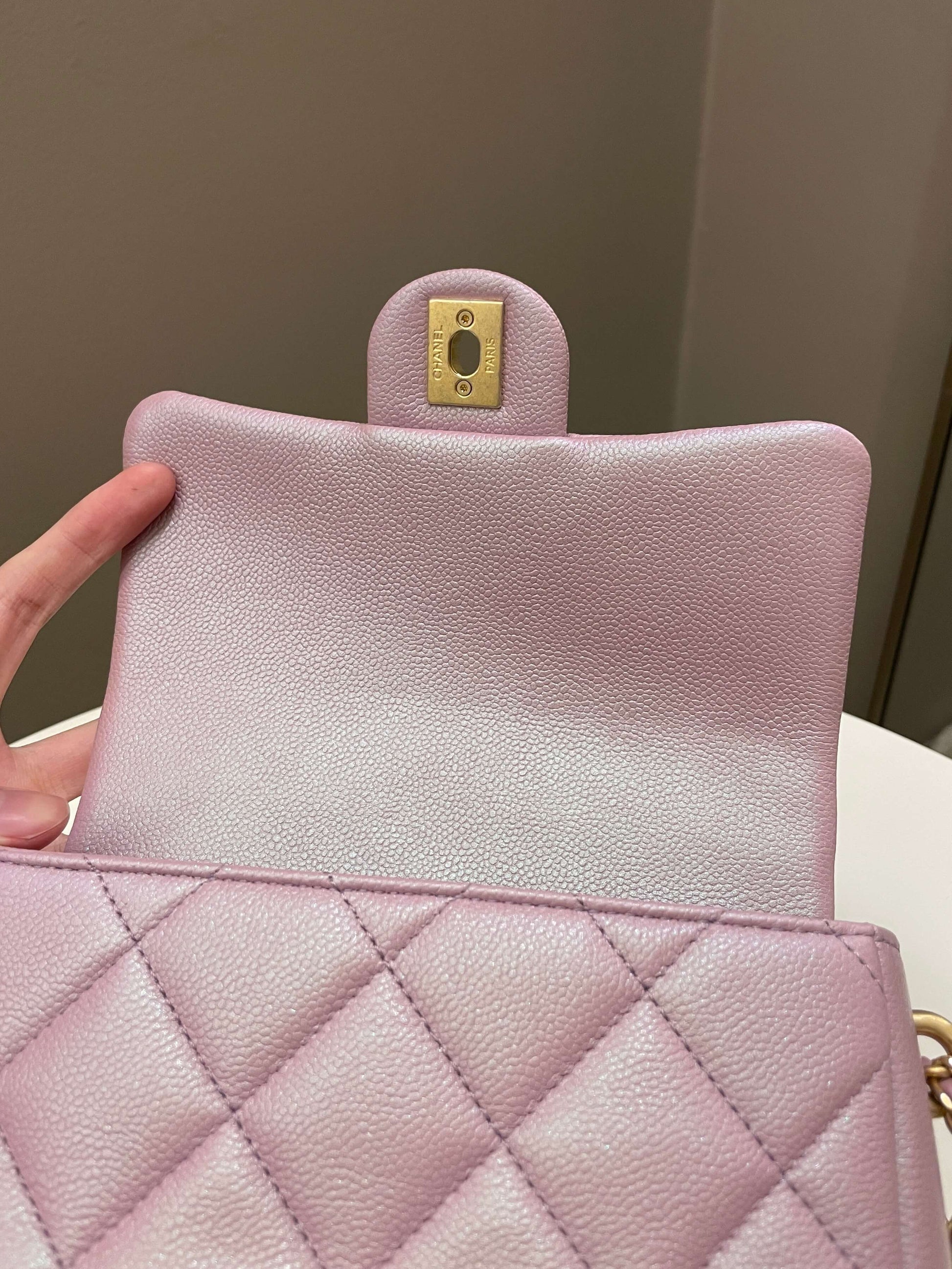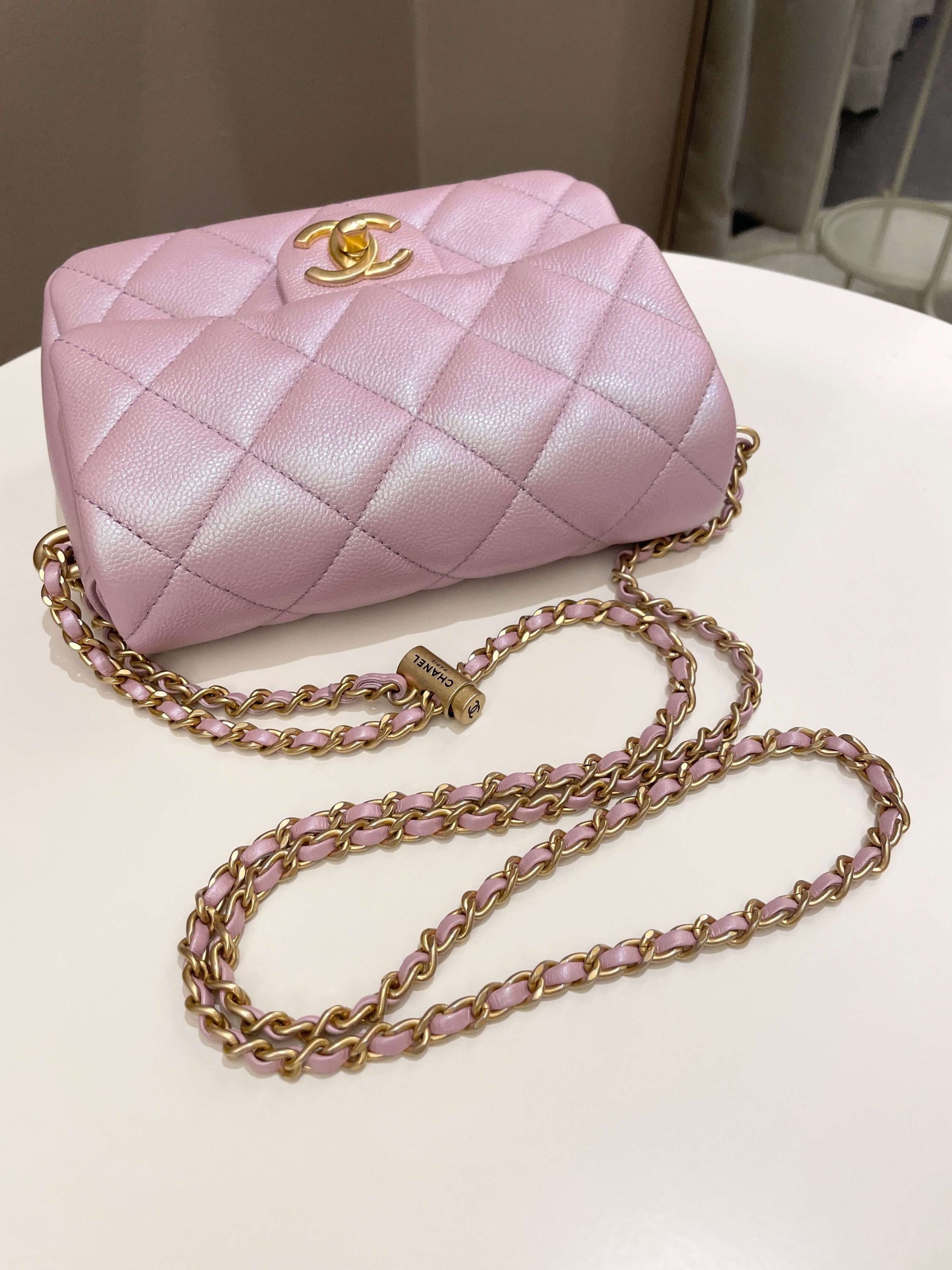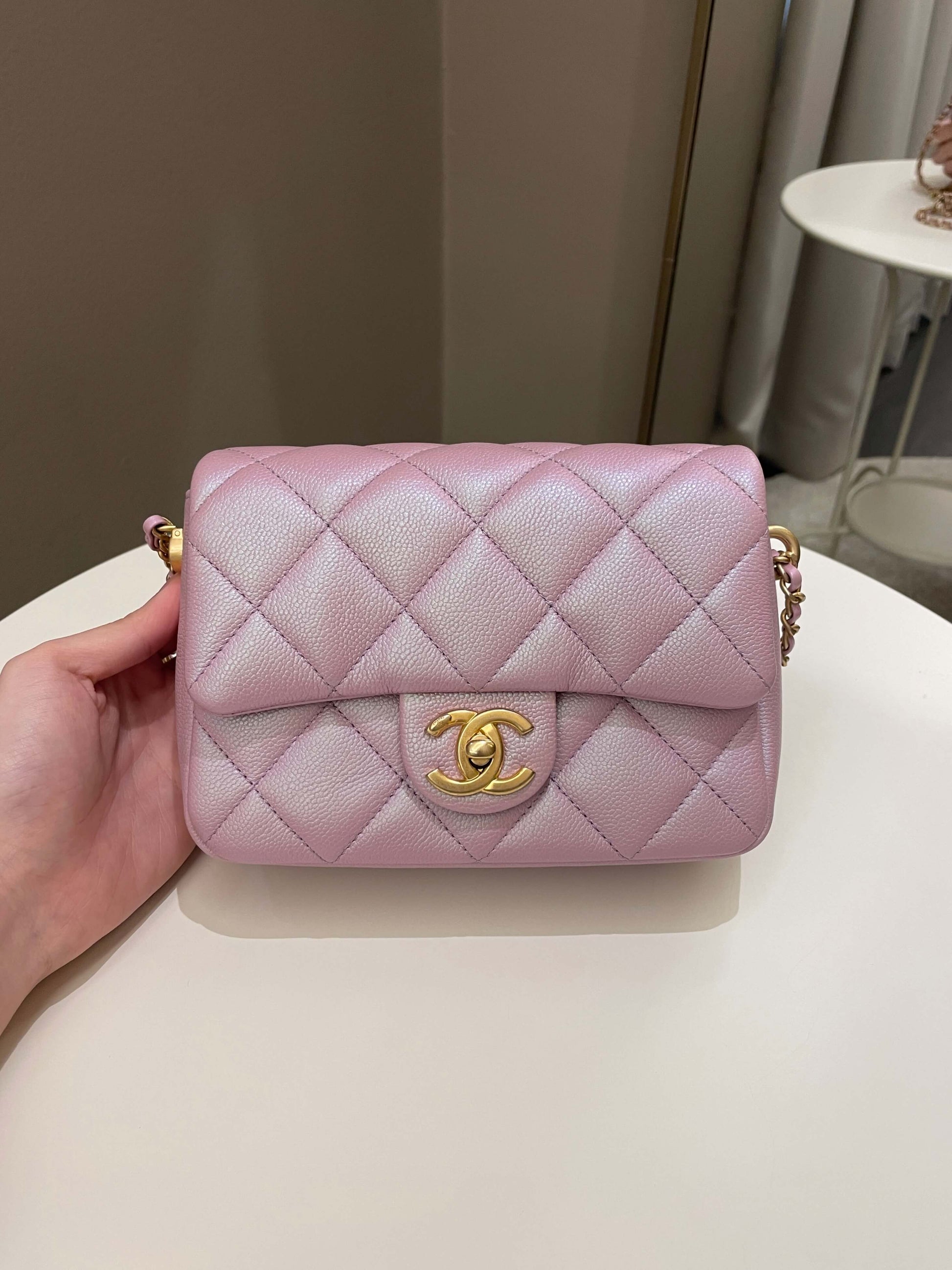 Chanel 21K My Perfect Mini Flap Bag Iridescent Pink Lilac Caviar