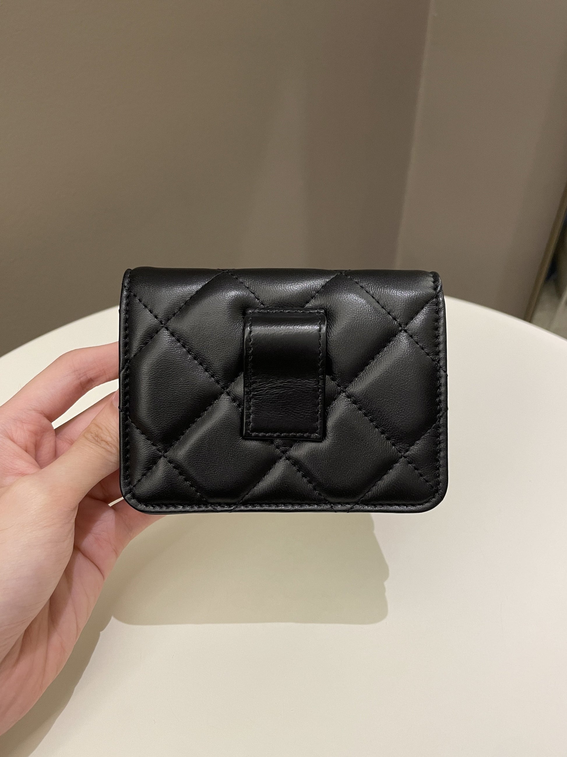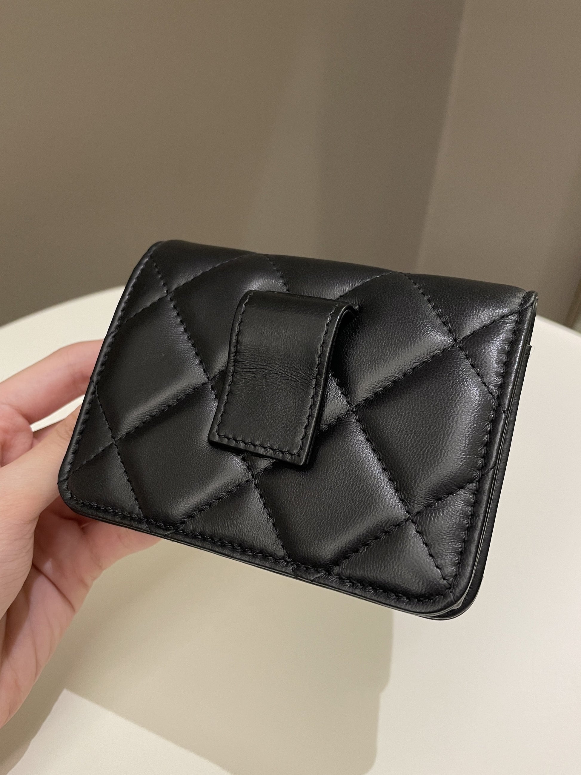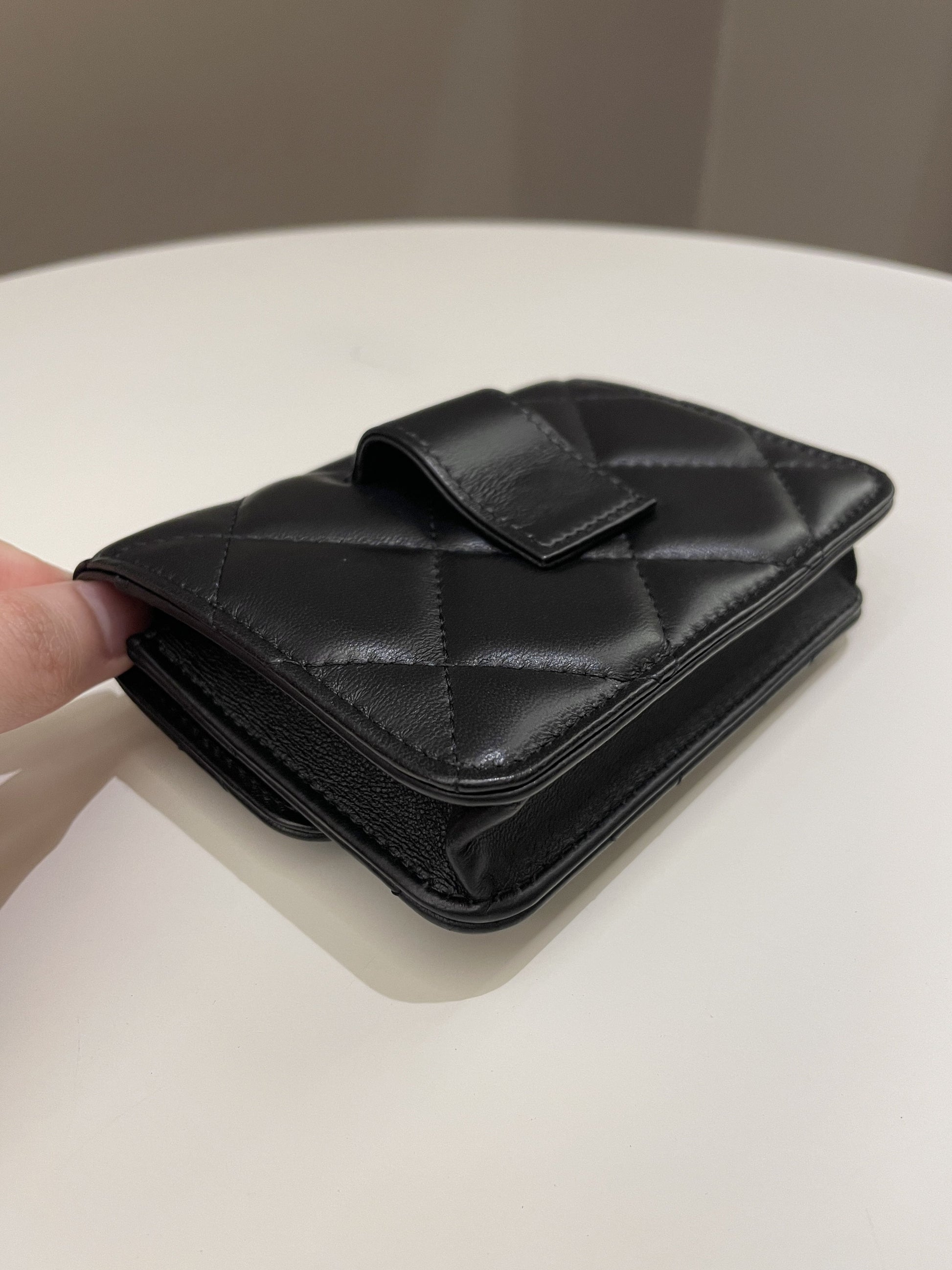 Chanel 22P Pending Belt Clutch Chain Black Lambskin