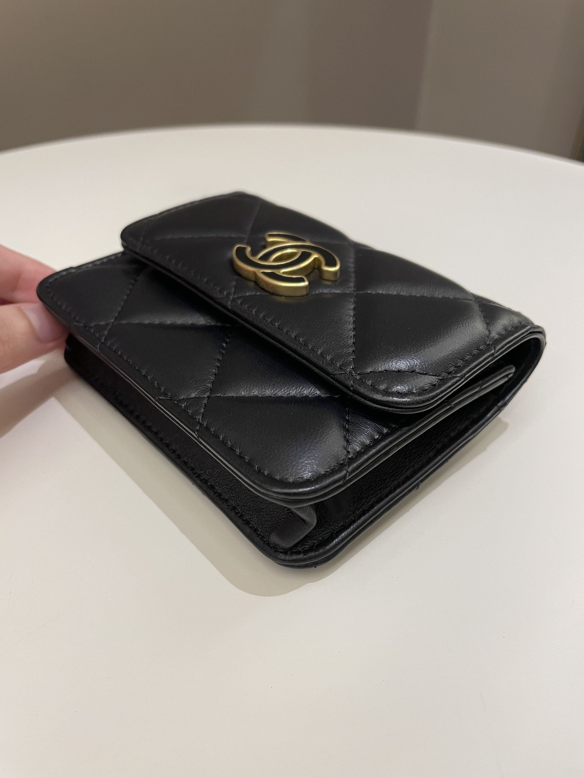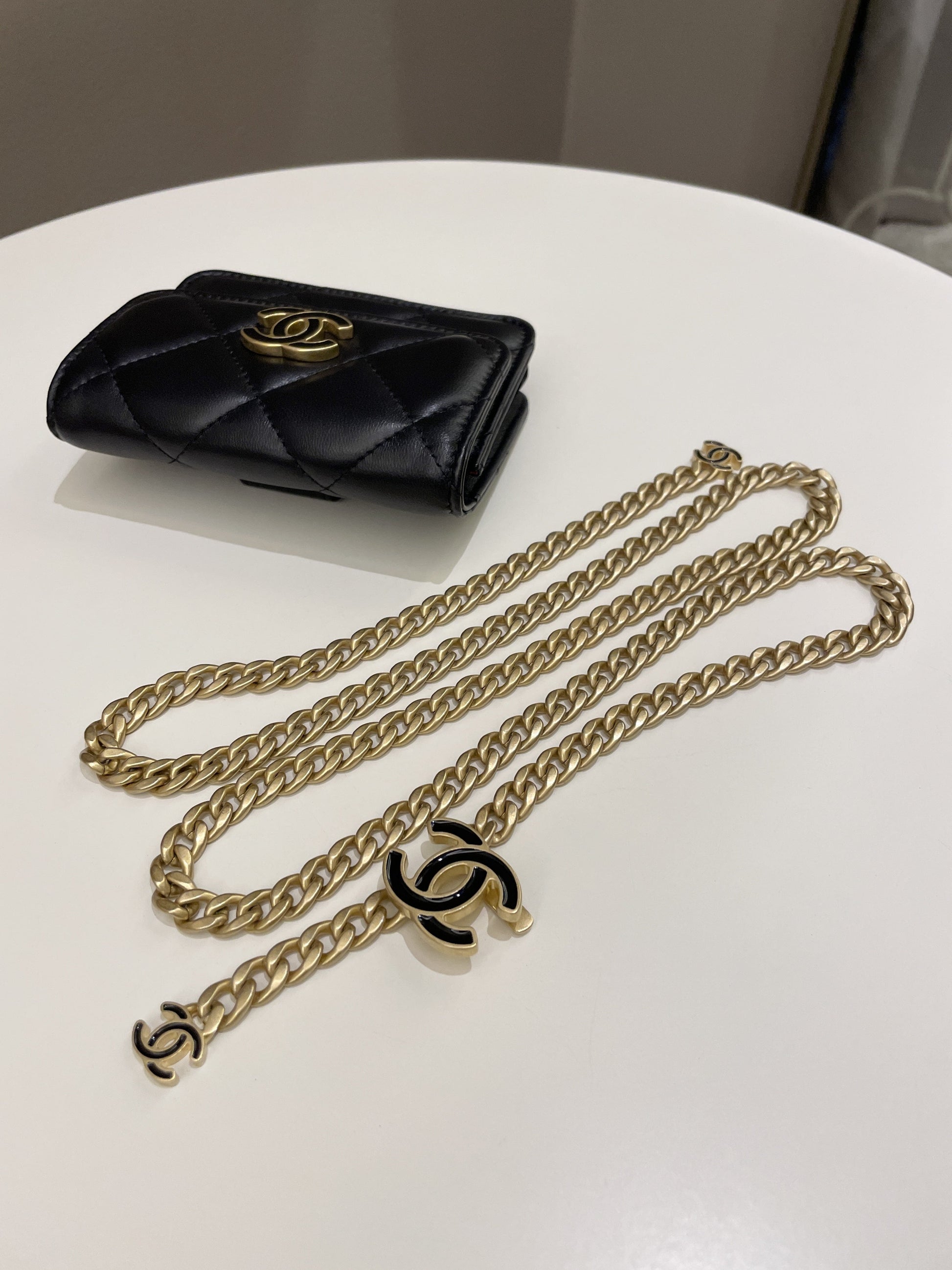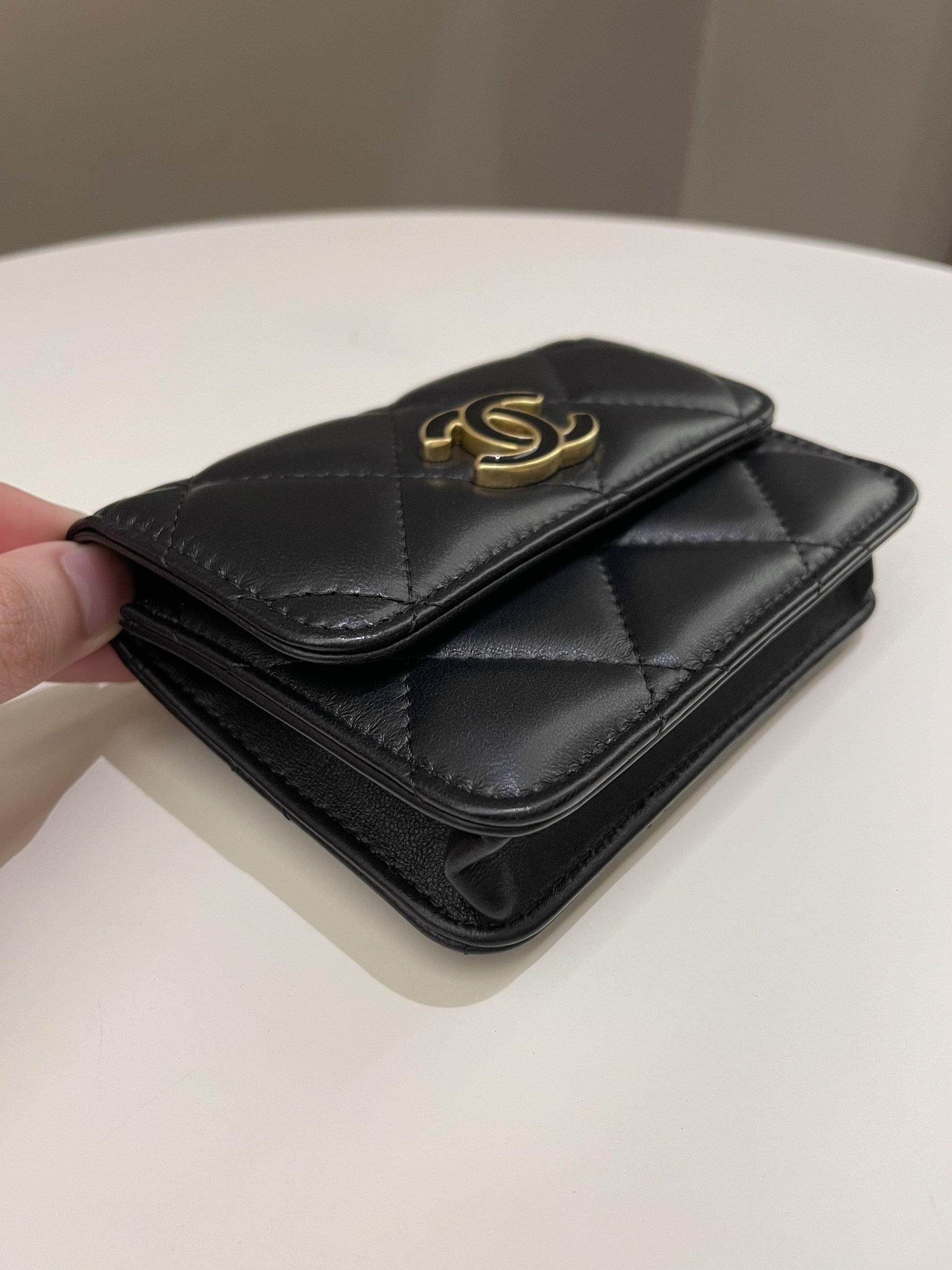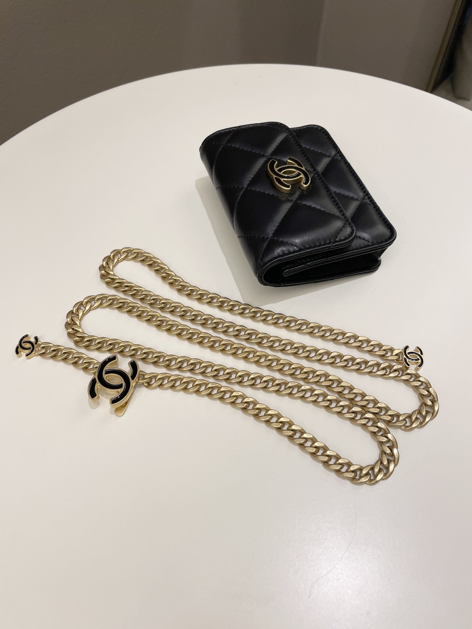 Chanel 22P Pending Belt Clutch Chain Black Lambskin