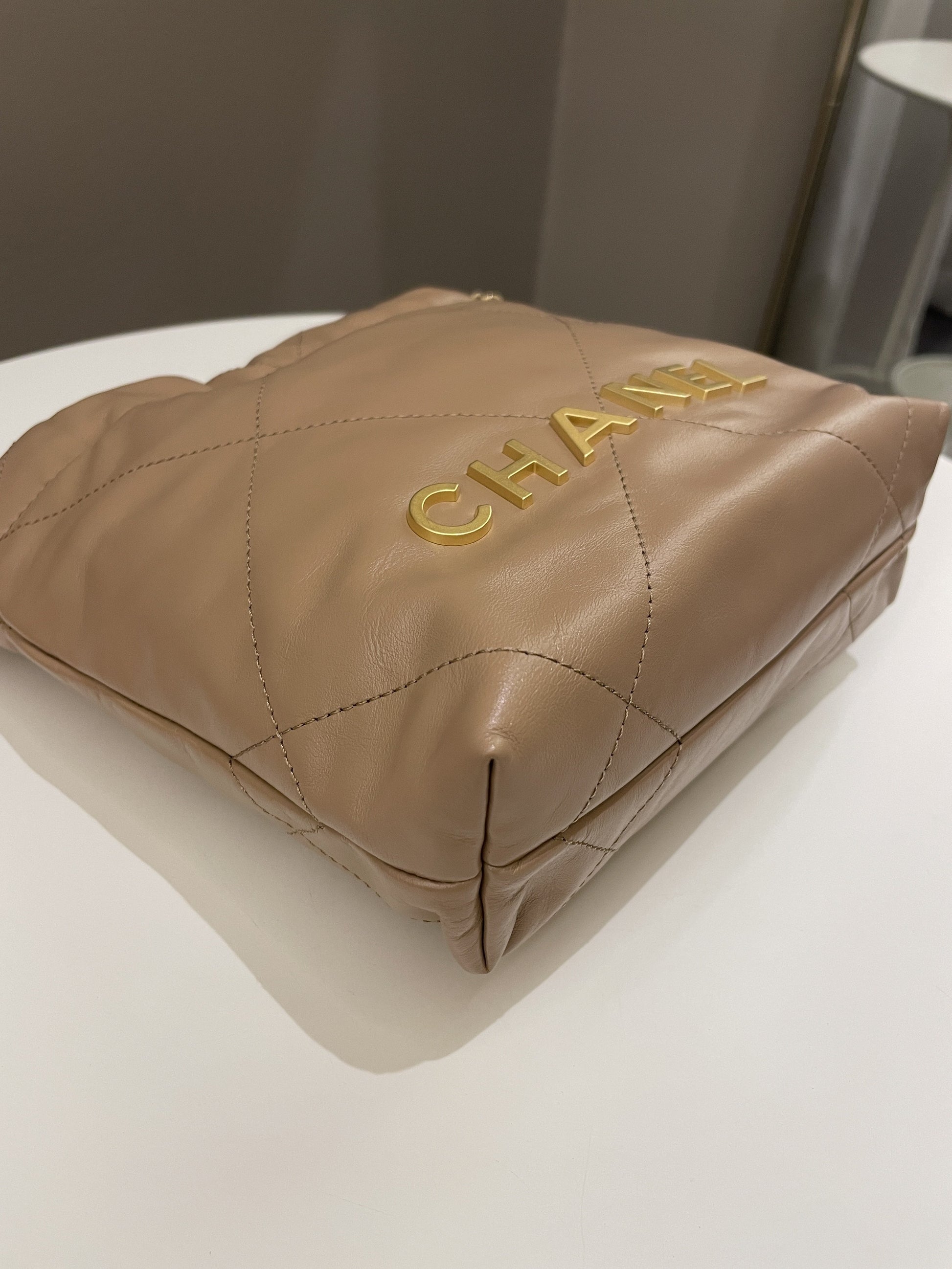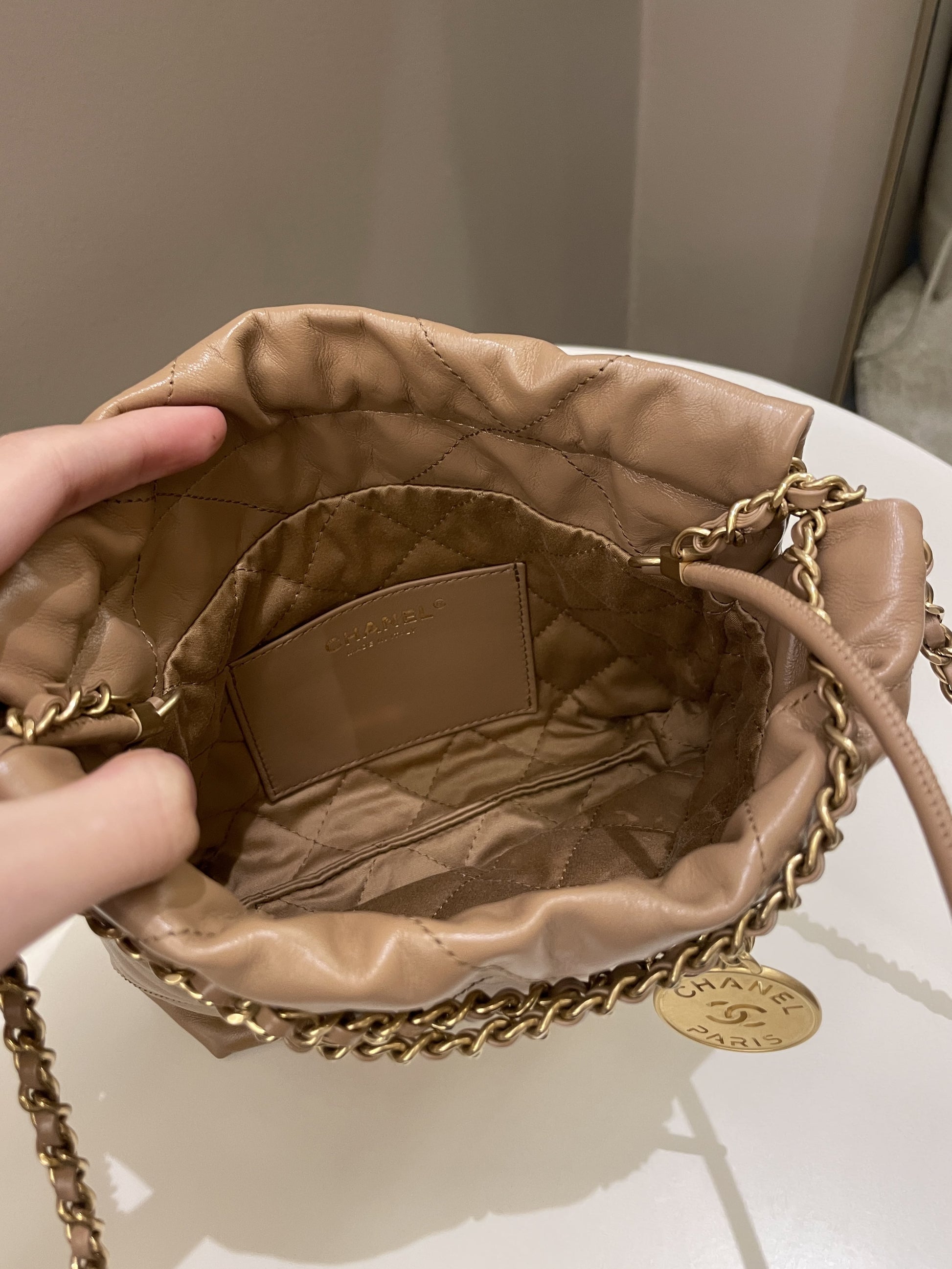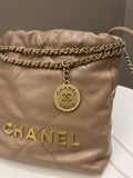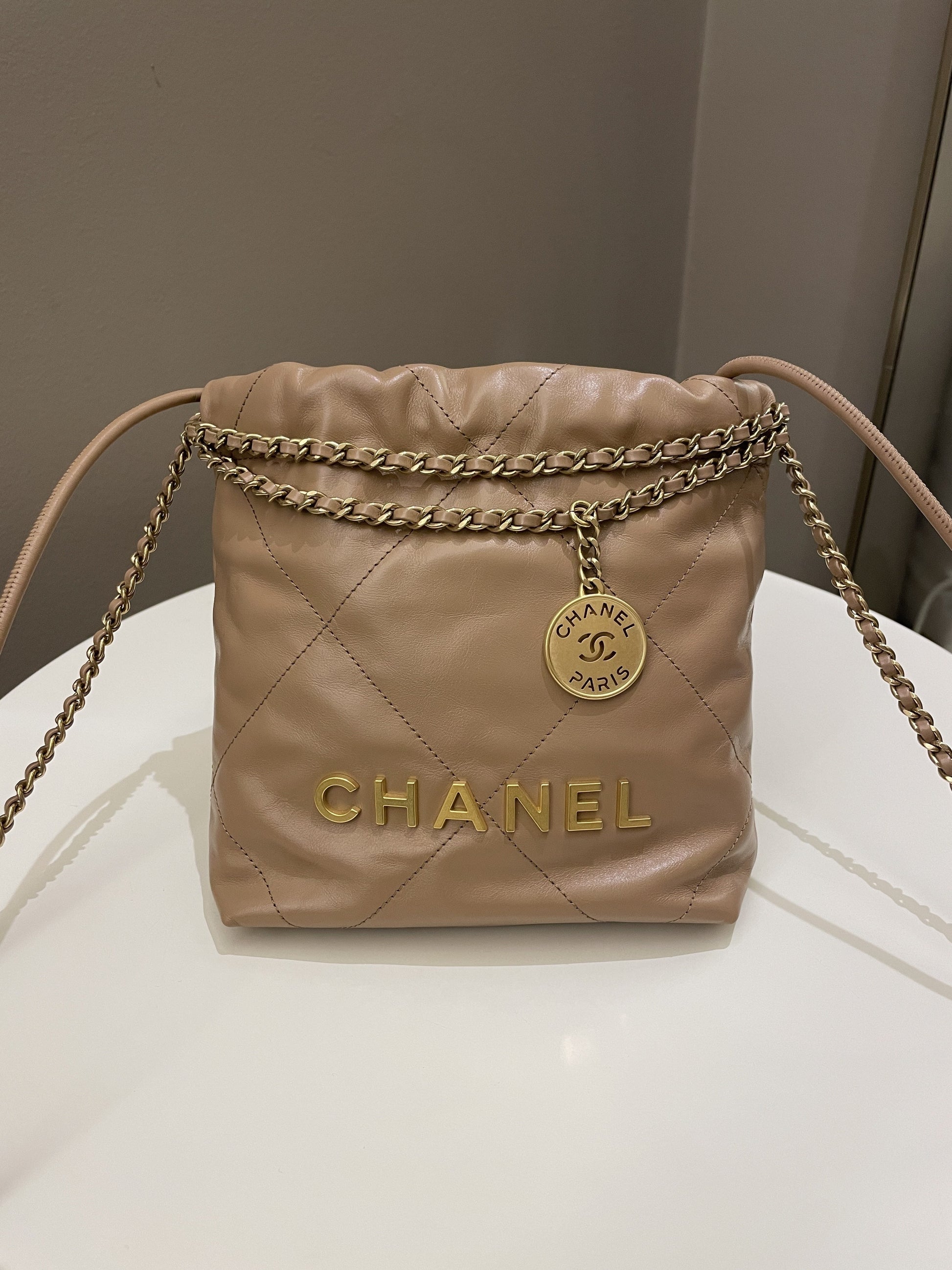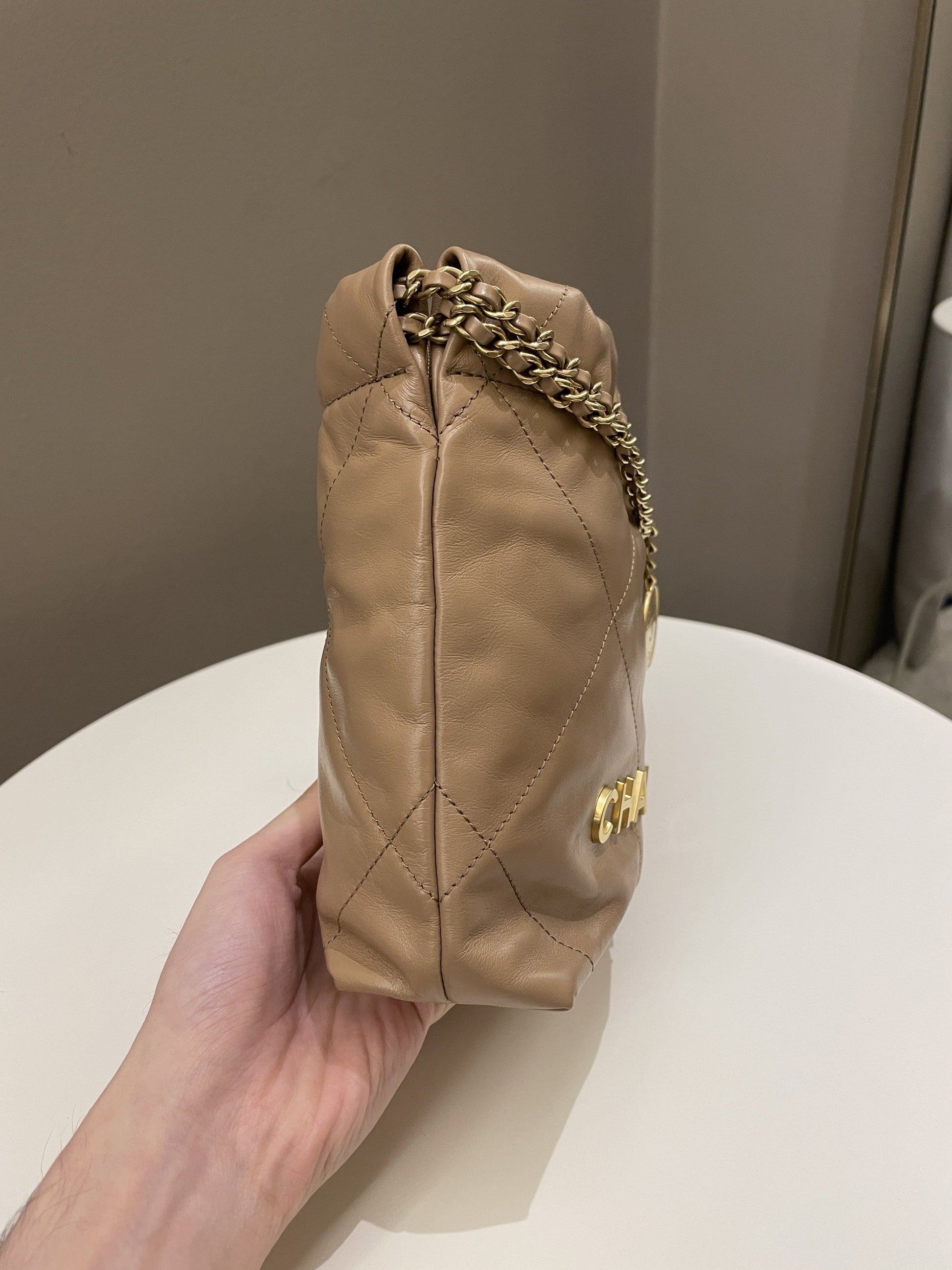 Chanel 23B 22 Mini Hobo Beige Calfskin