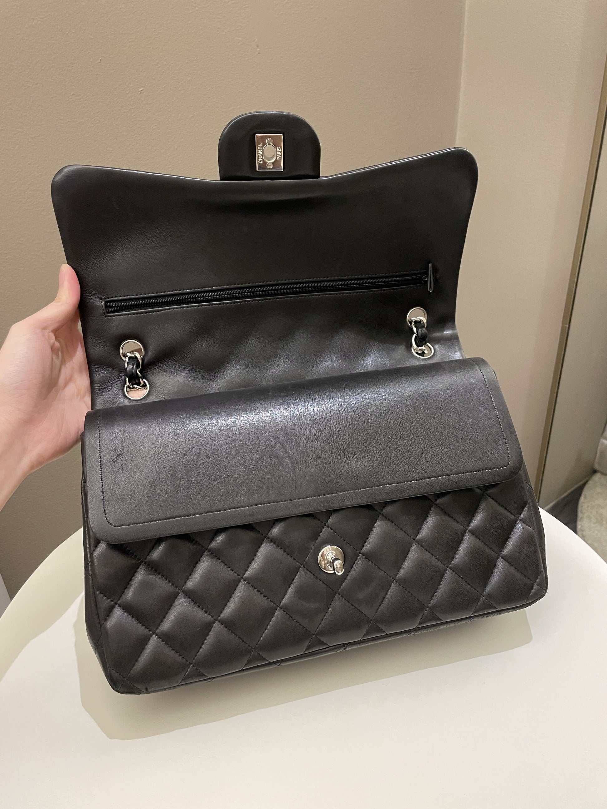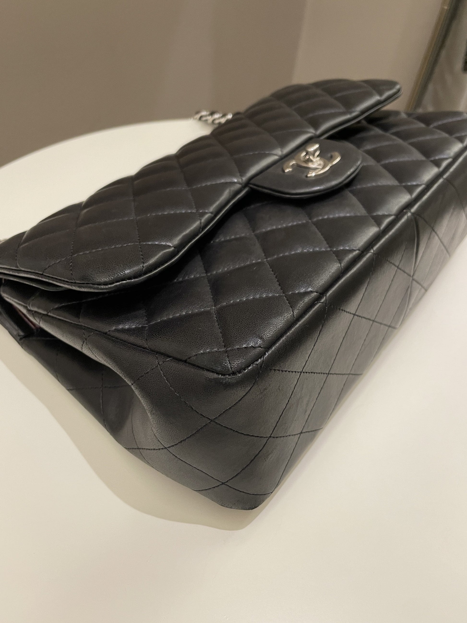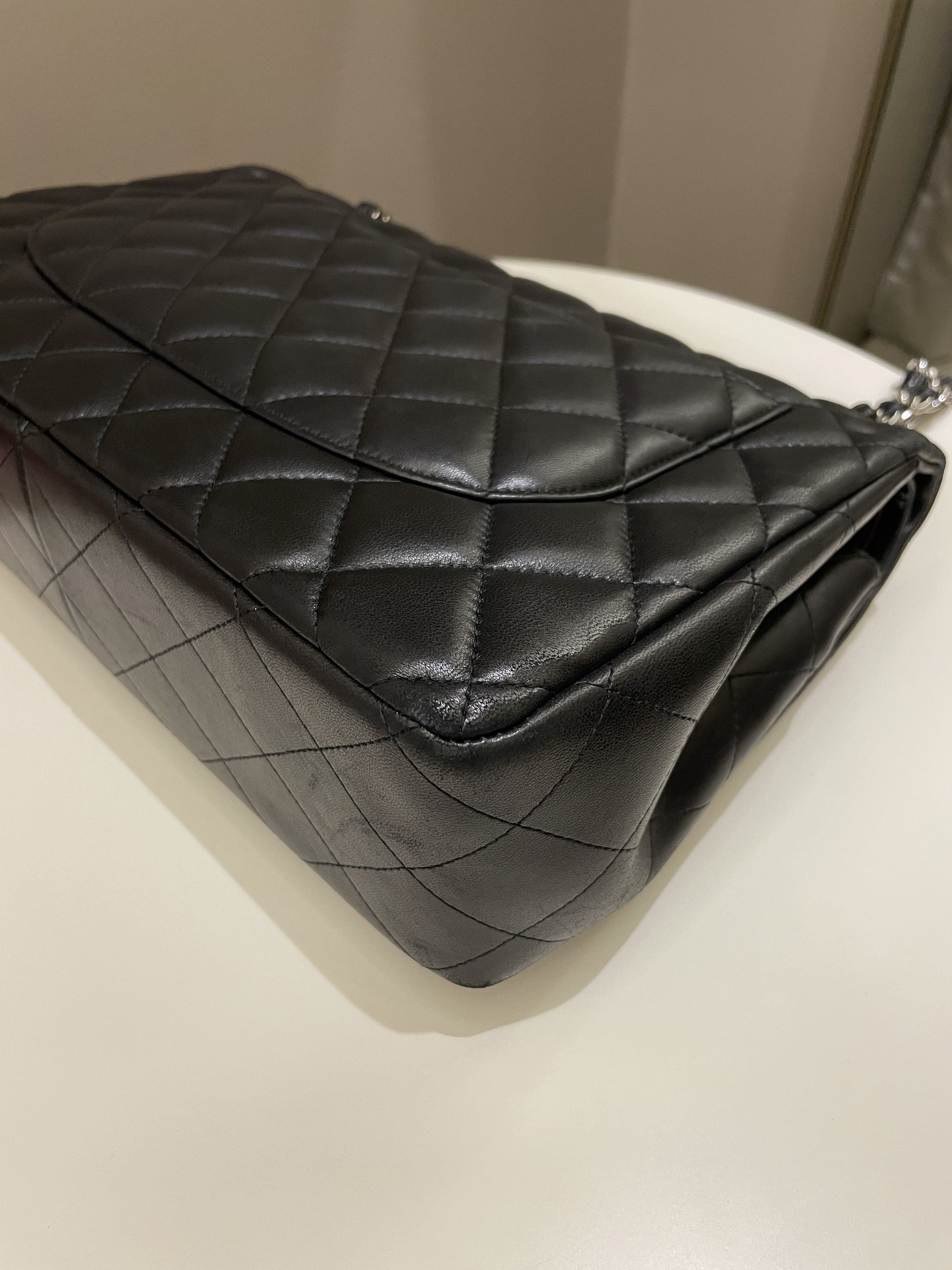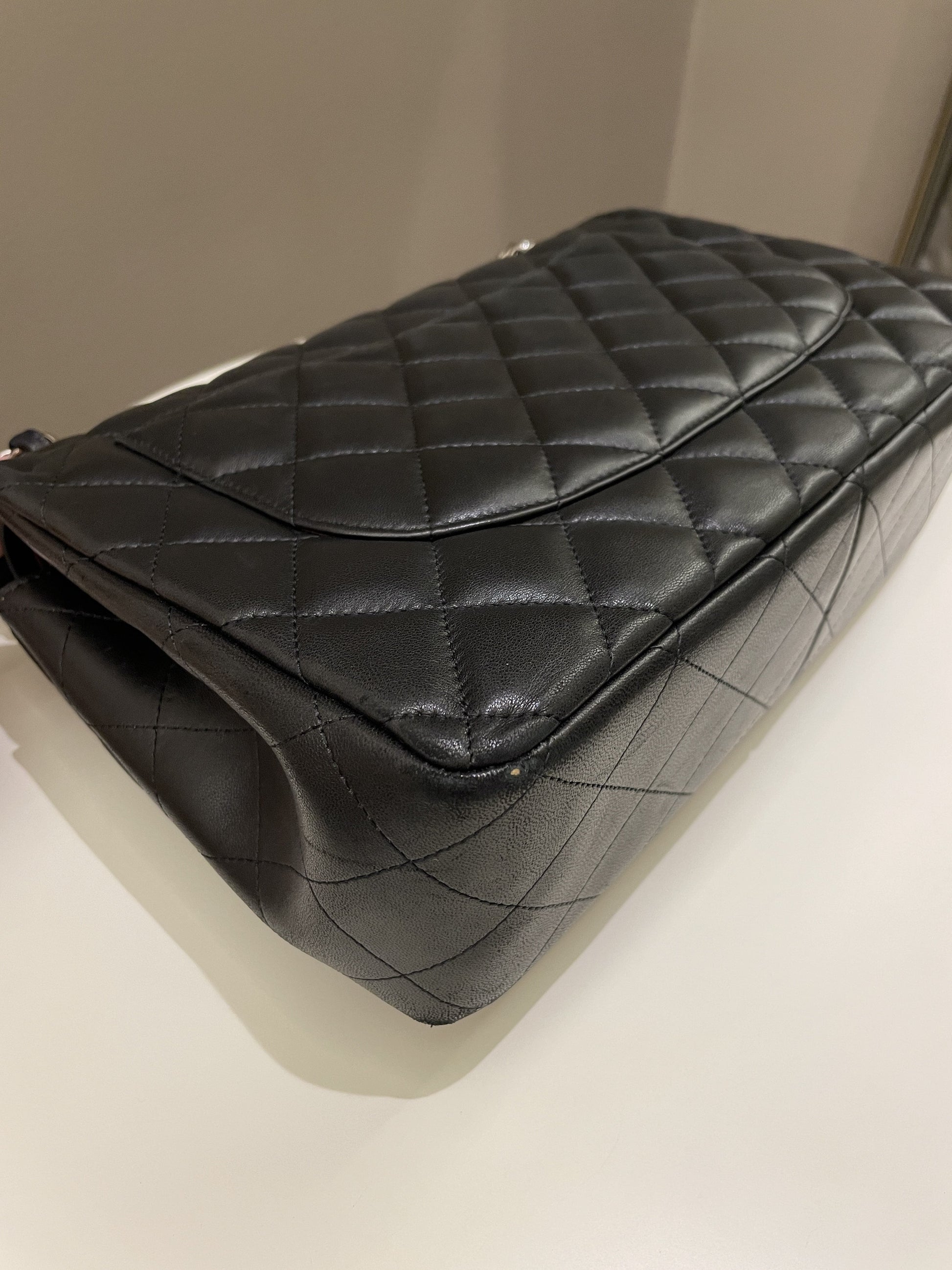 Chanel Classic Quilted Jumbo Double Flap Black Lambskin