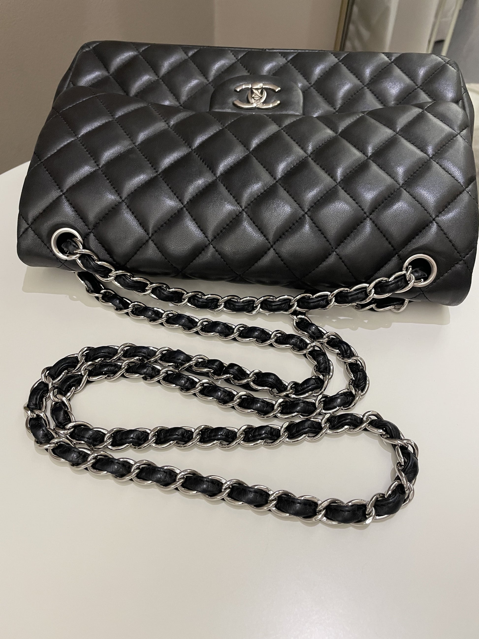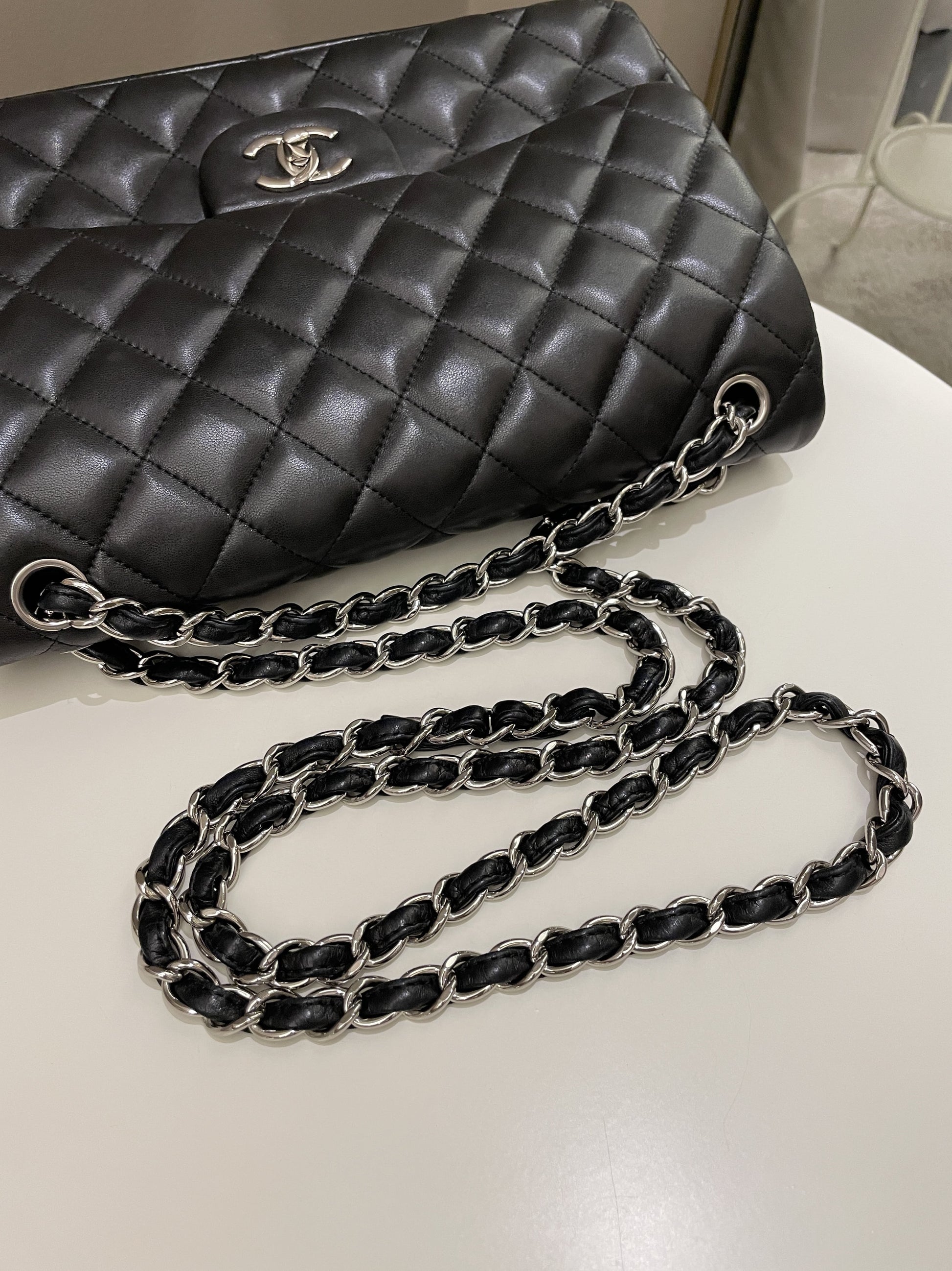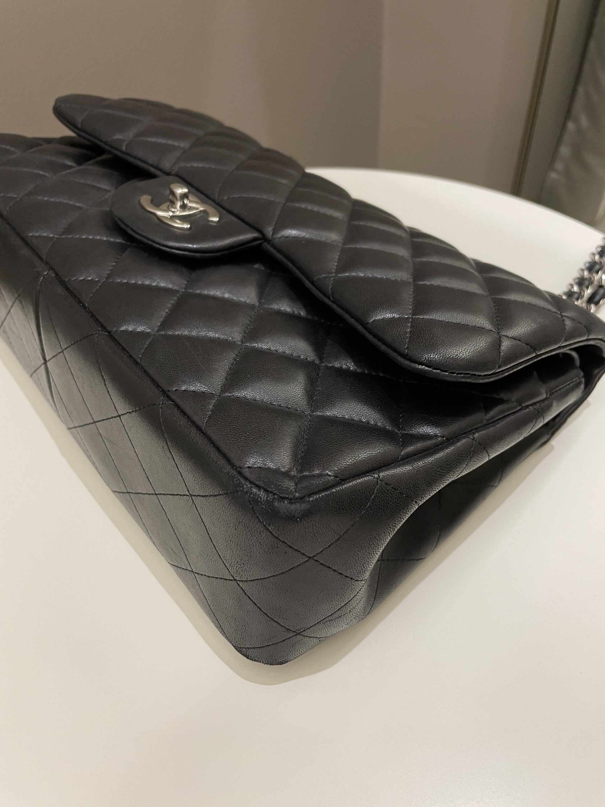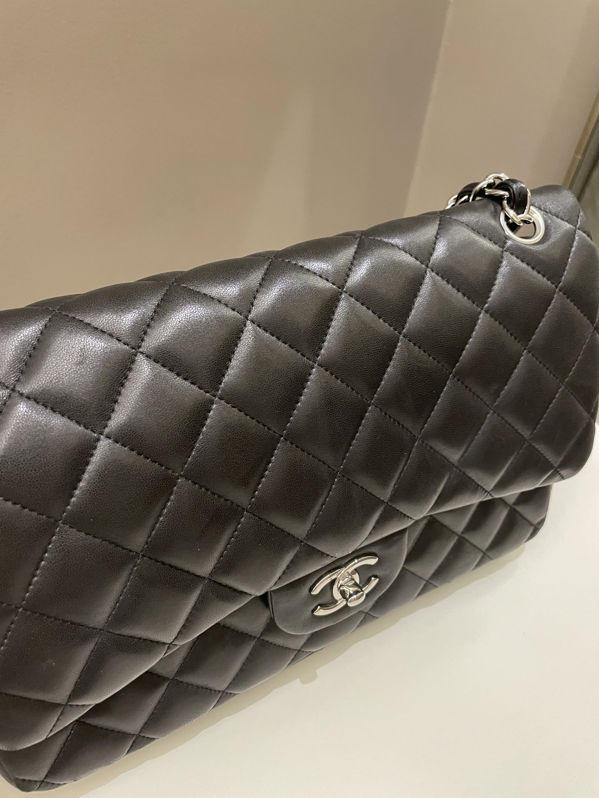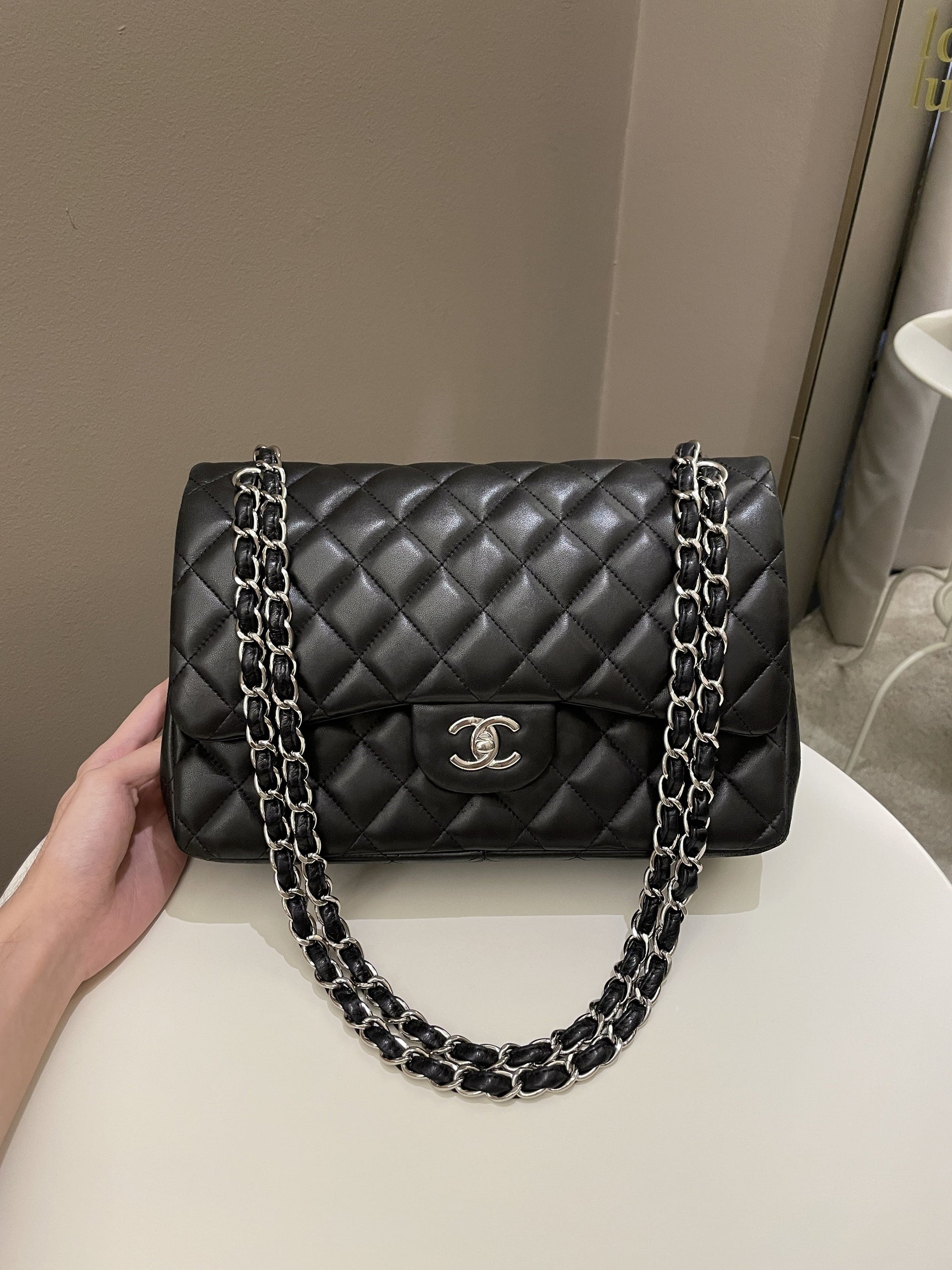 Chanel Classic Quilted Jumbo Double Flap Black Lambskin