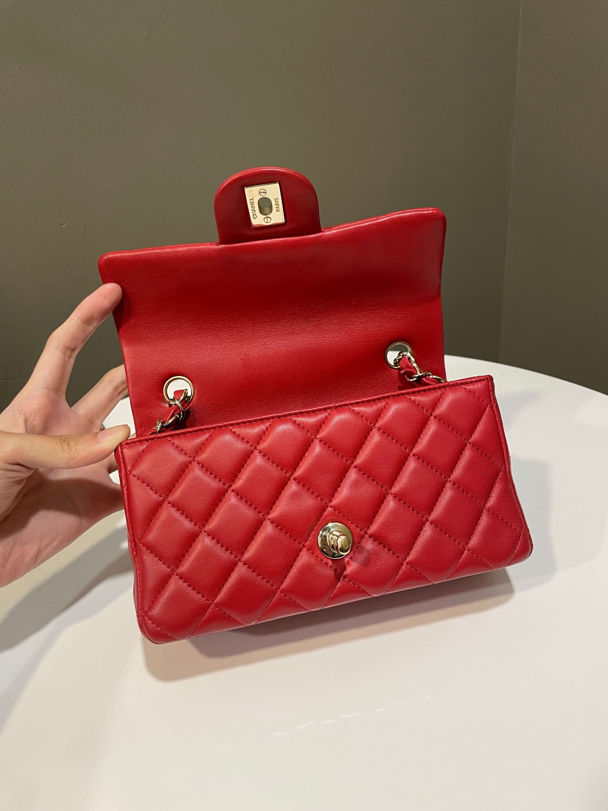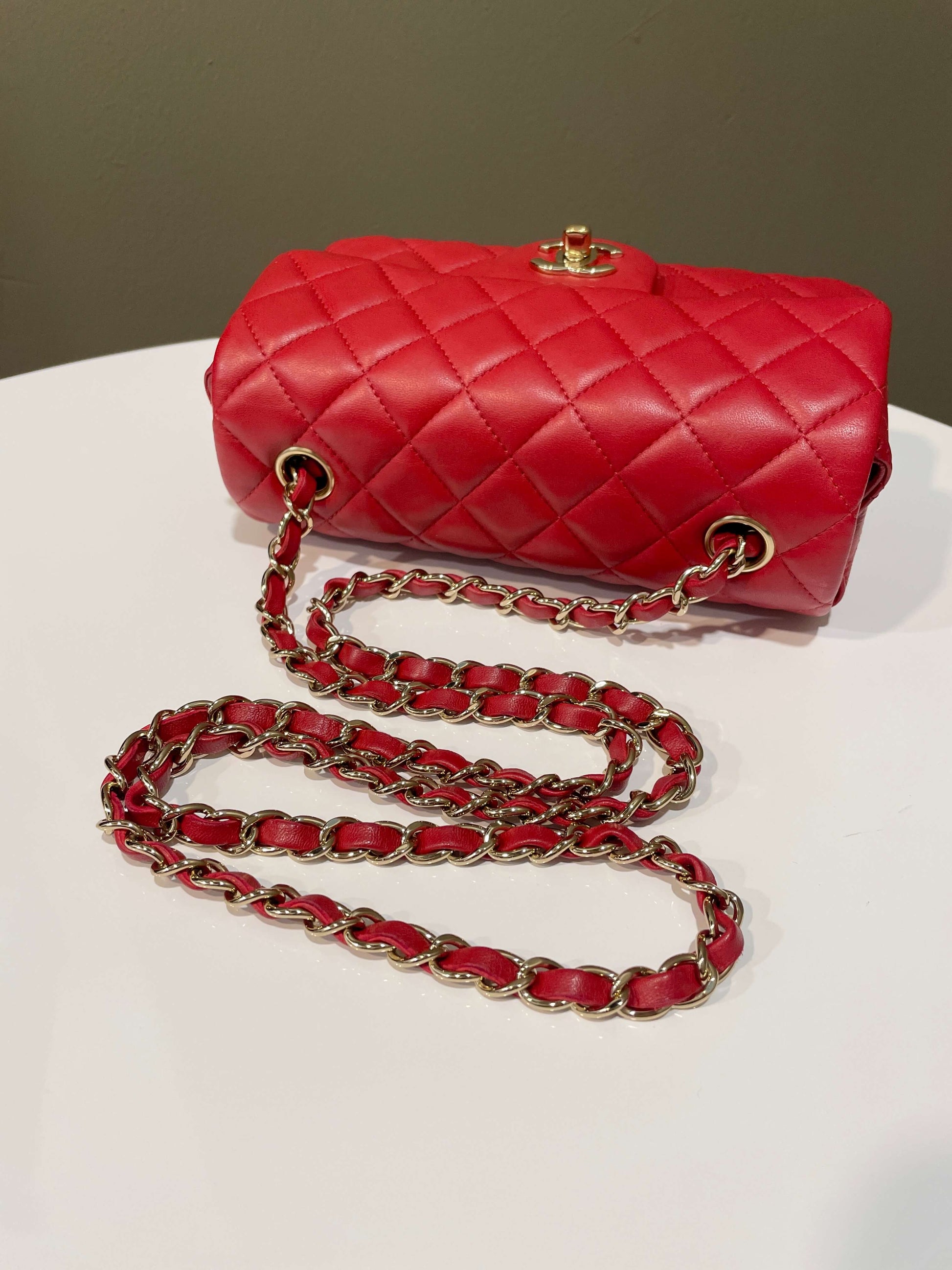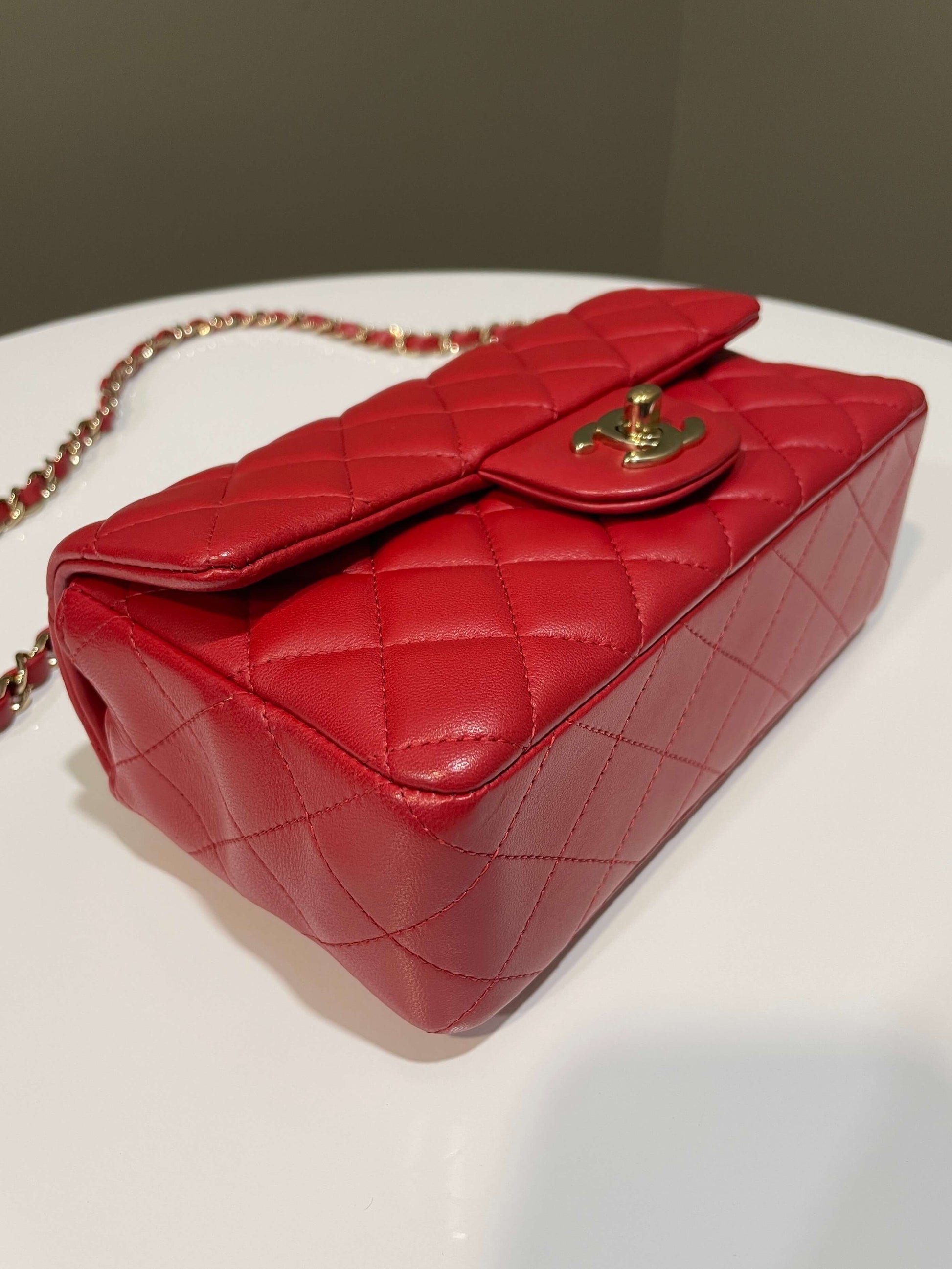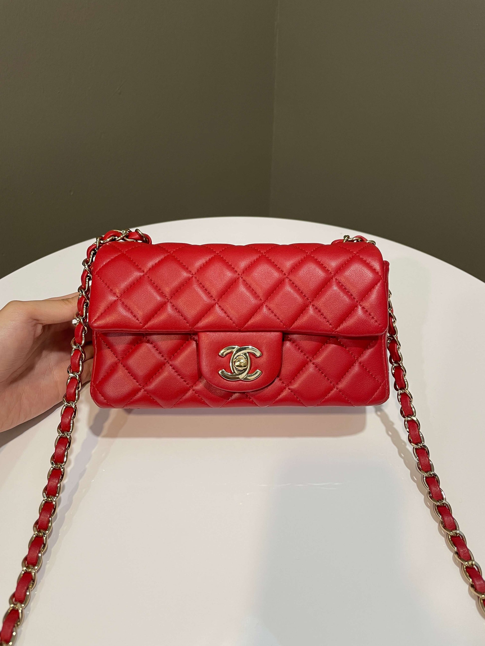 Chanel 20S Classic Quilted Mini Rectangular Dark Red Lambskin