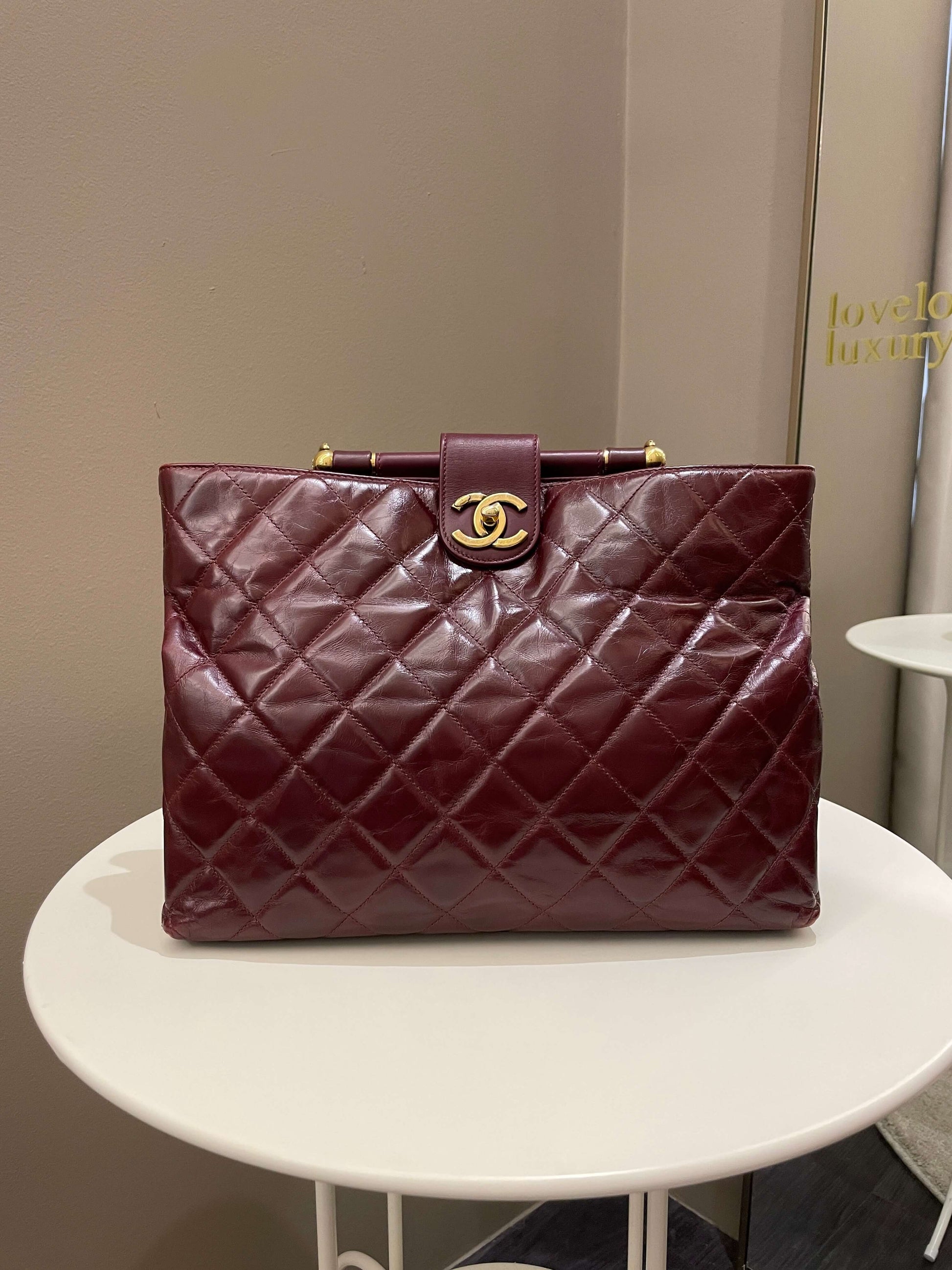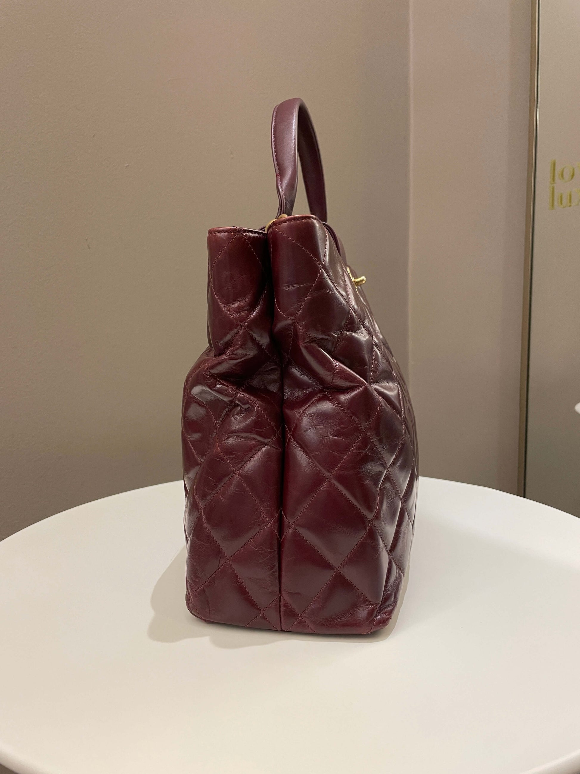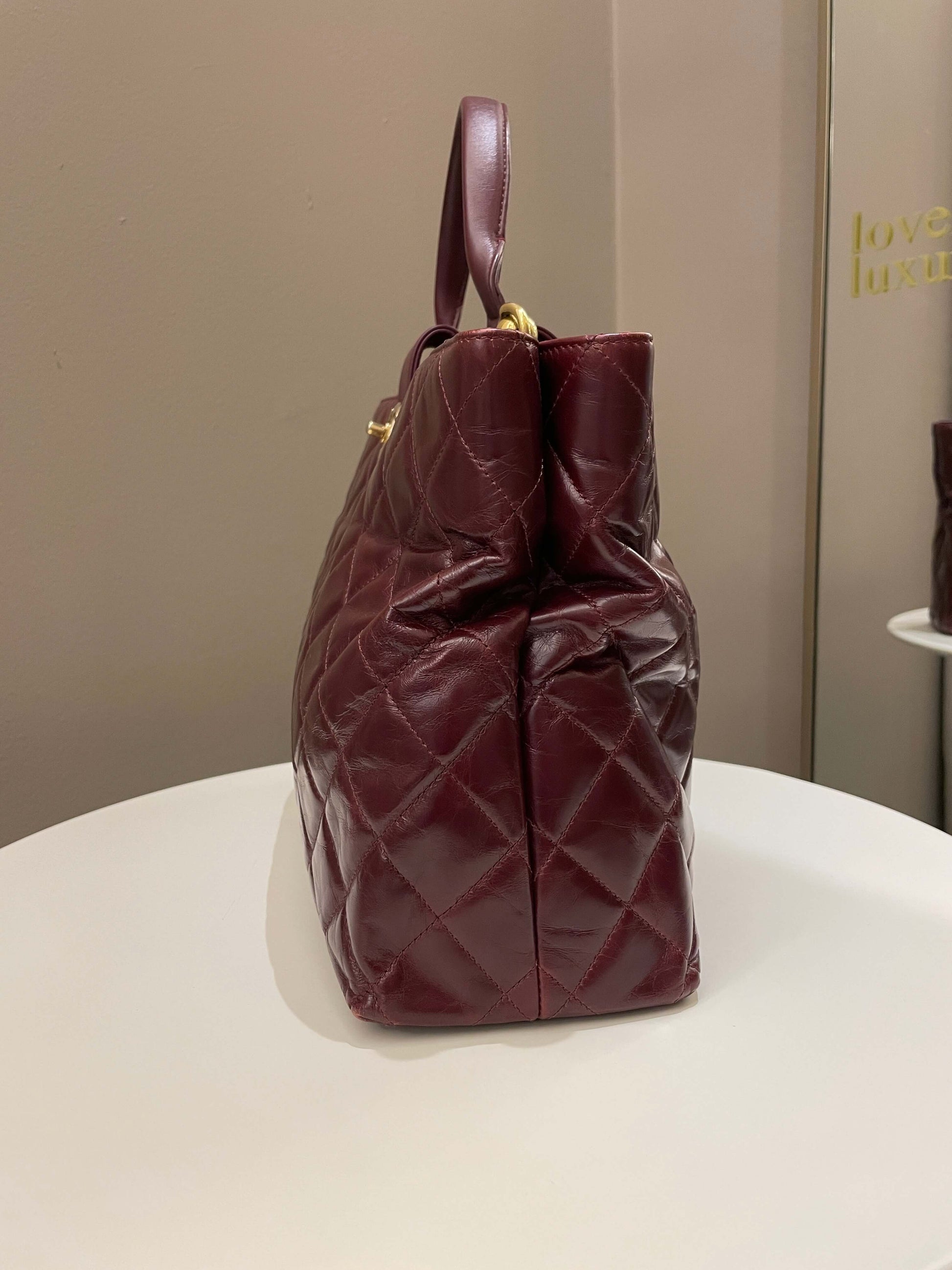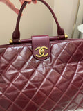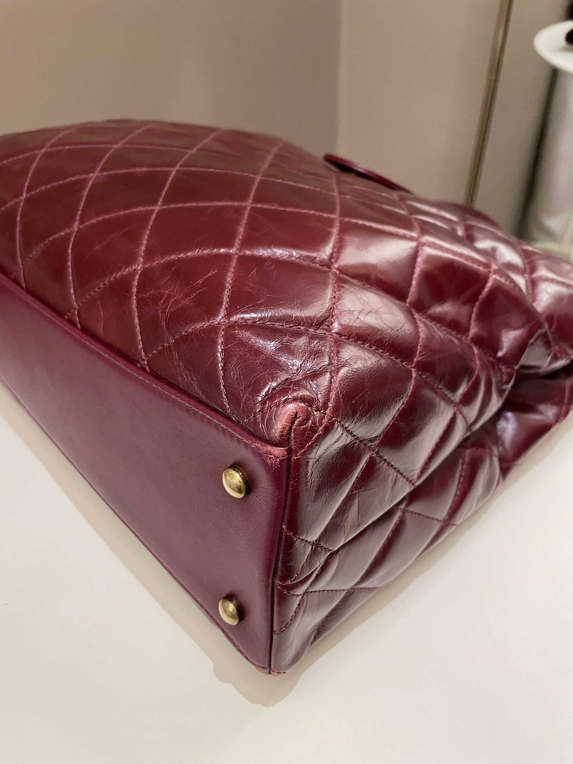 Chanel Quilted CC Portobello Tote Burgundy Distressed Leather