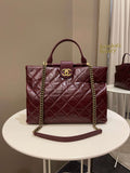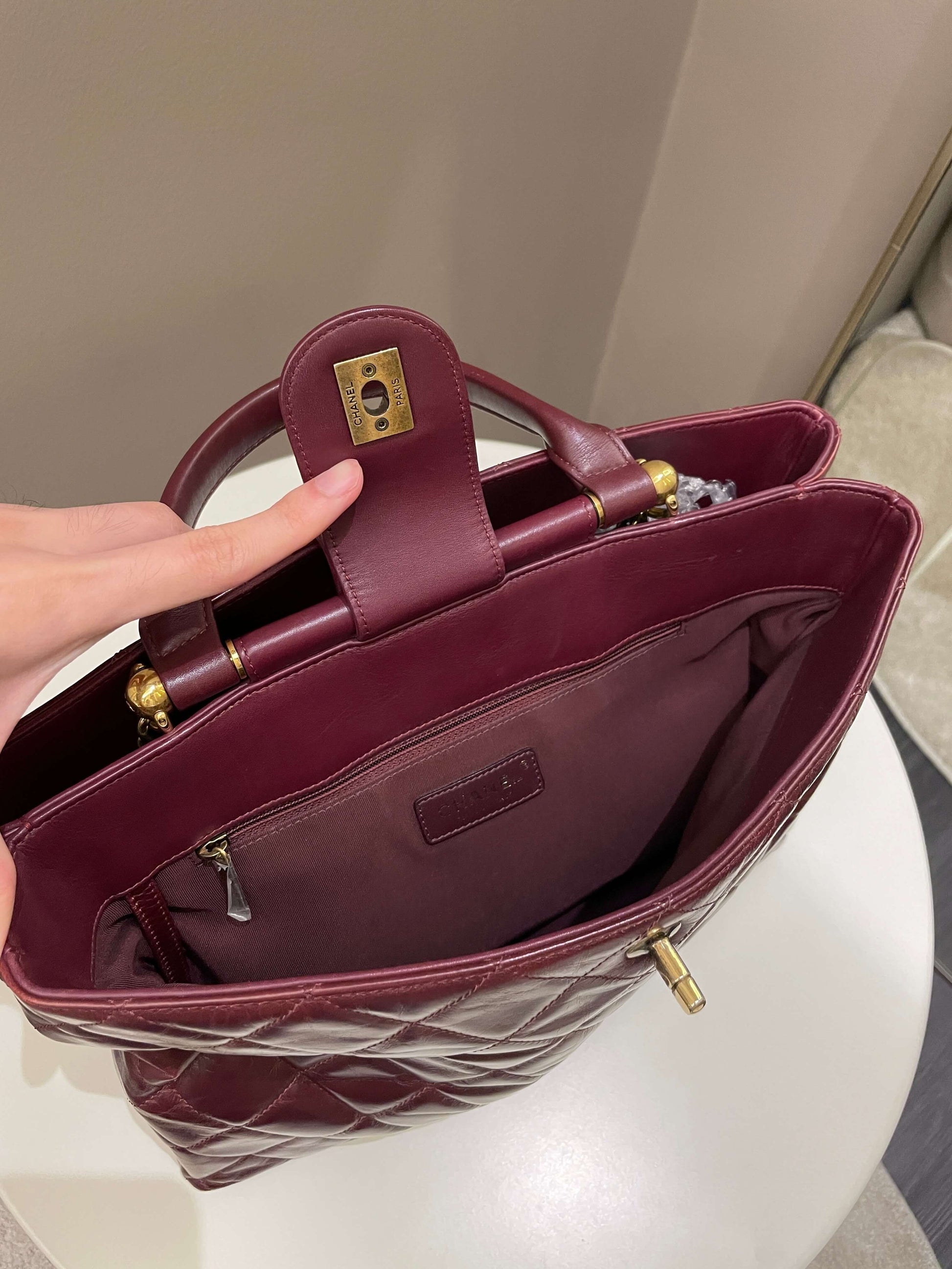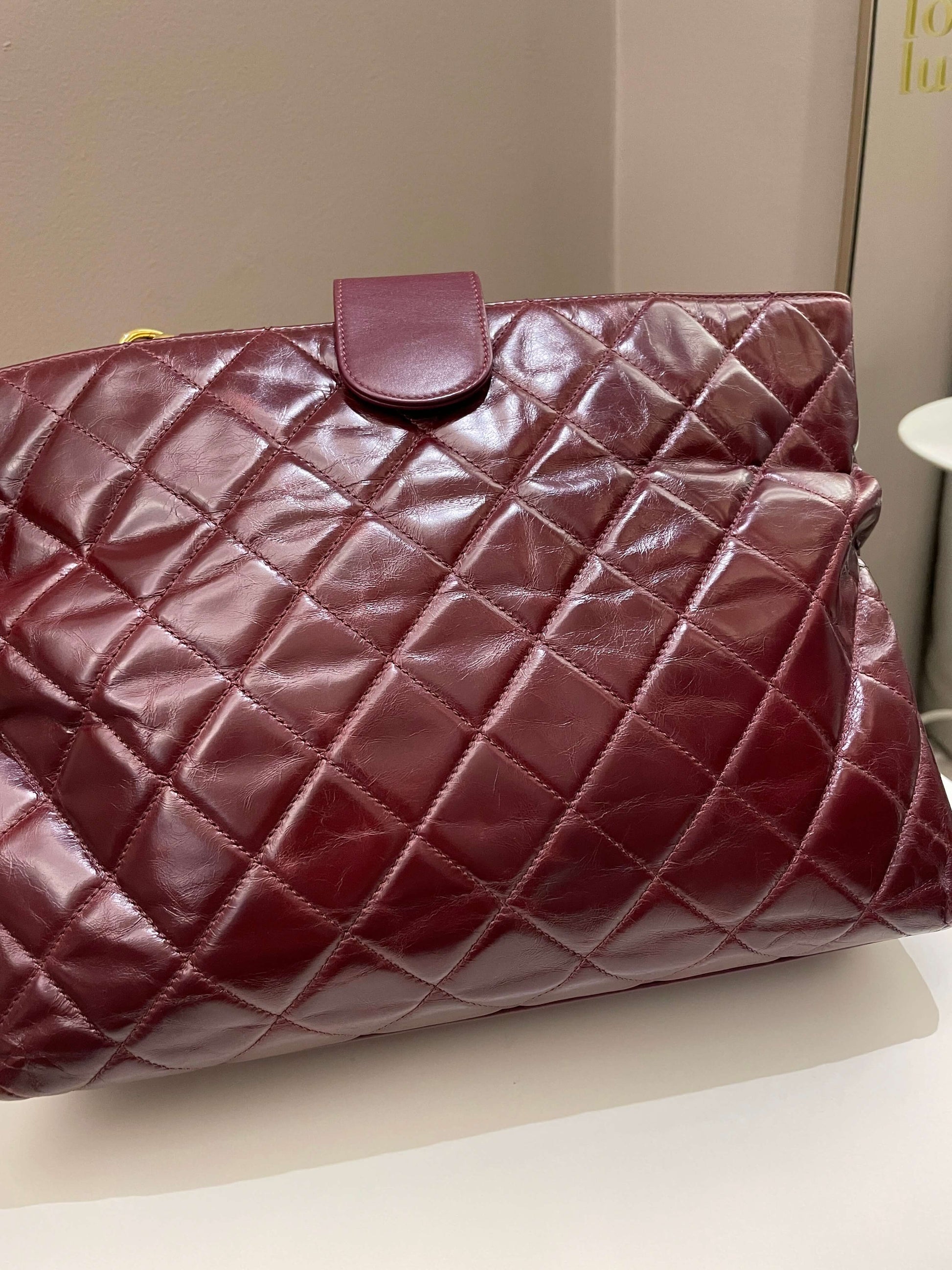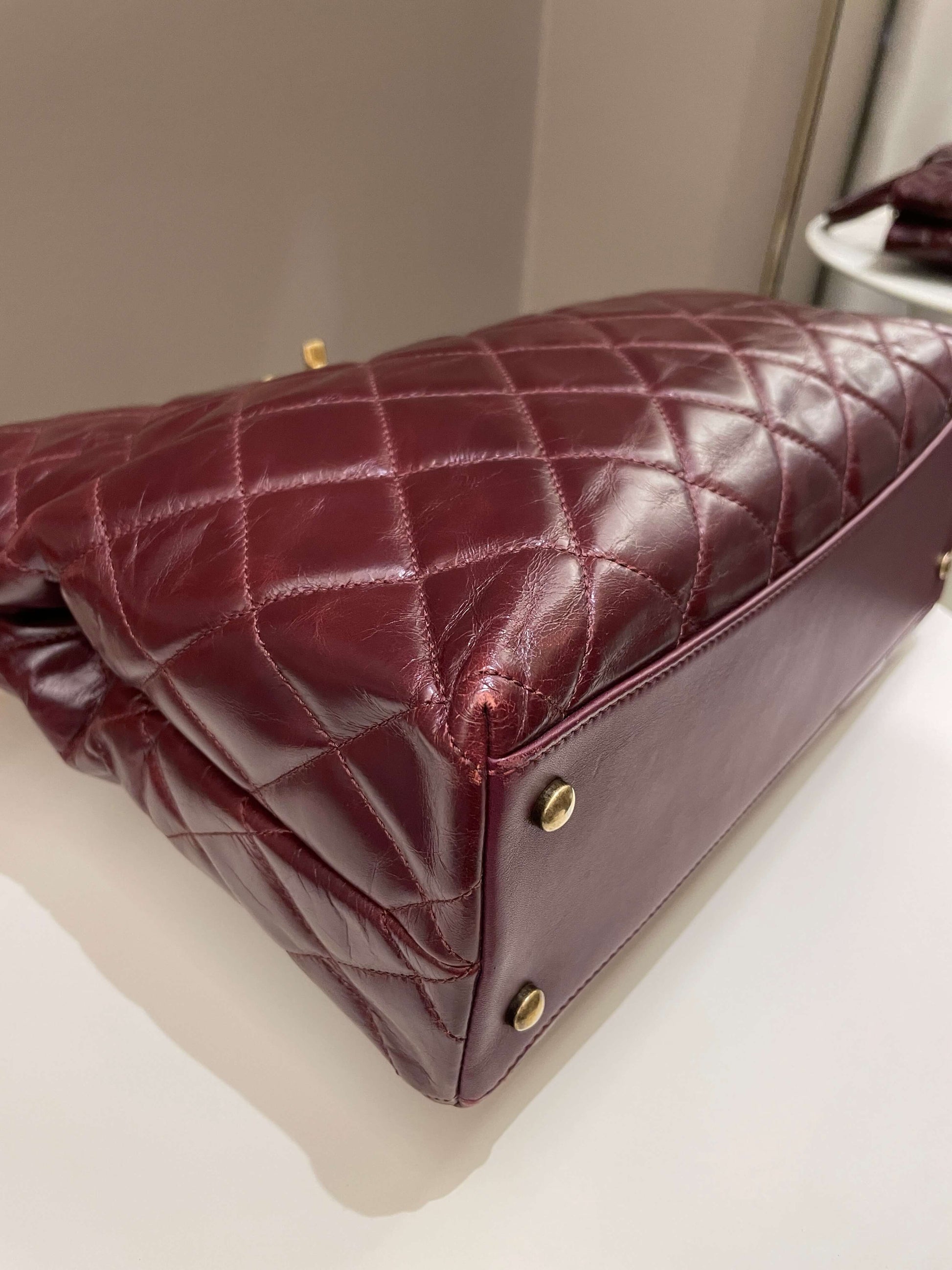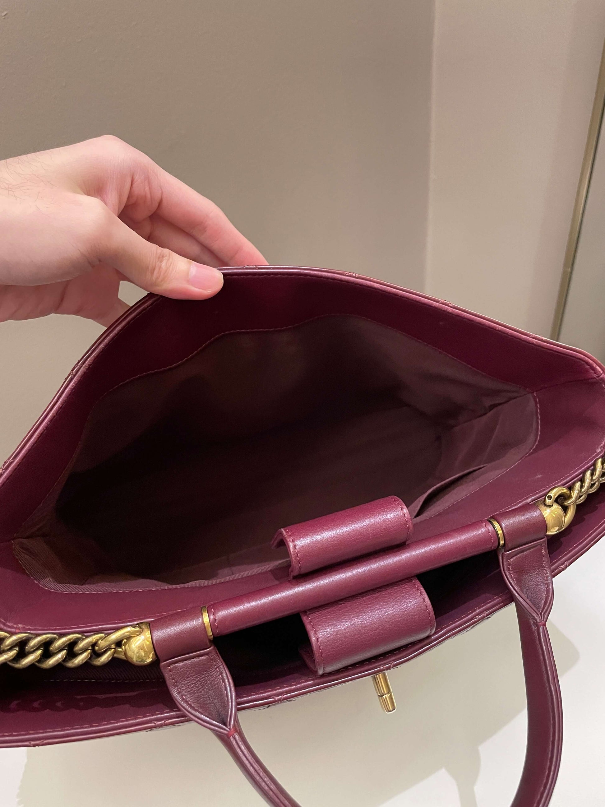 Chanel Quilted CC Portobello Tote Burgundy Distressed Leather