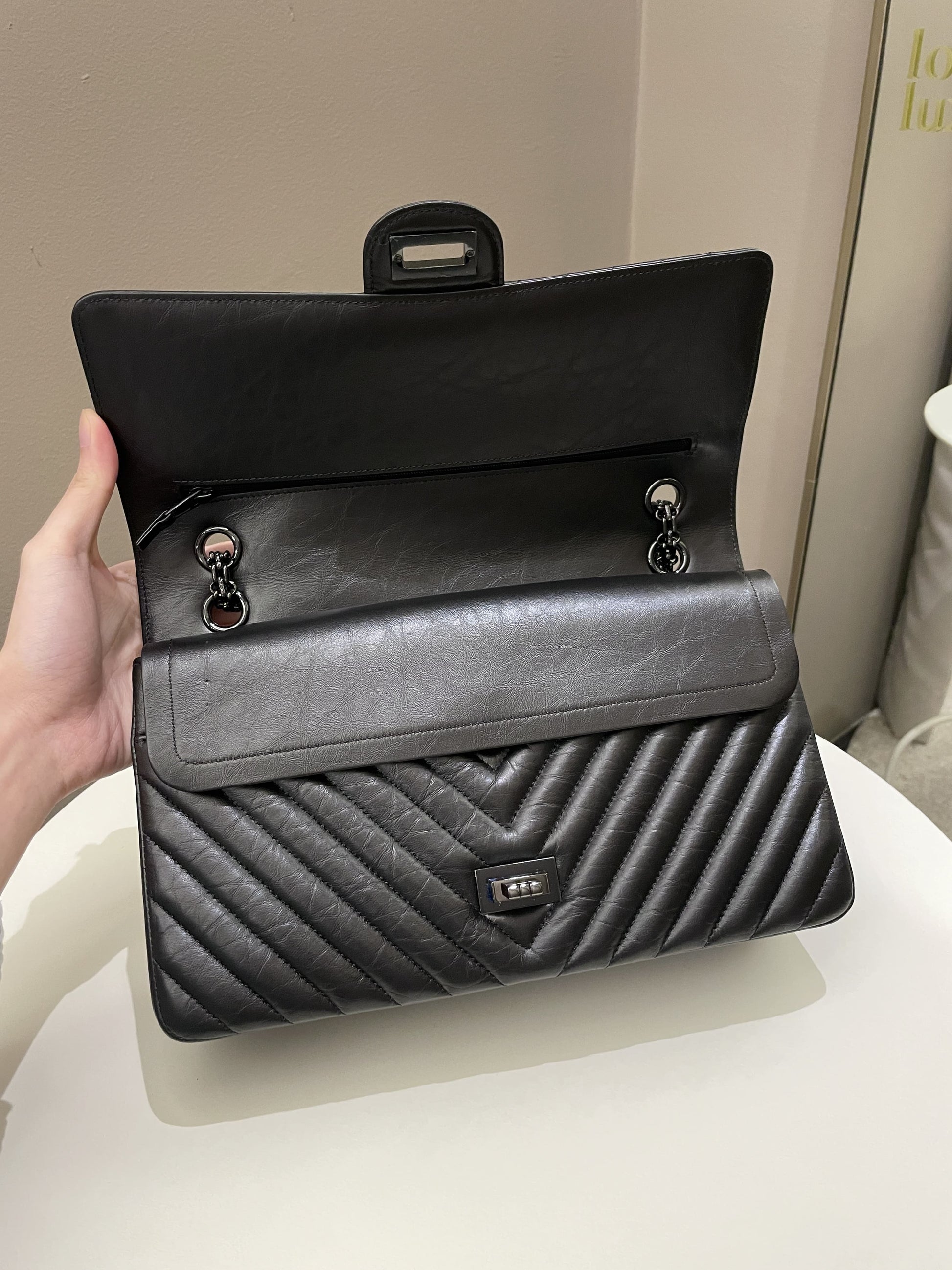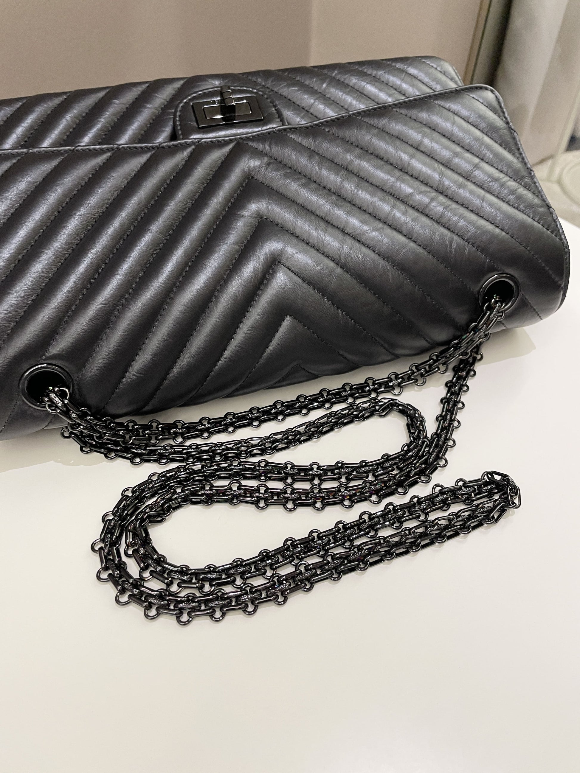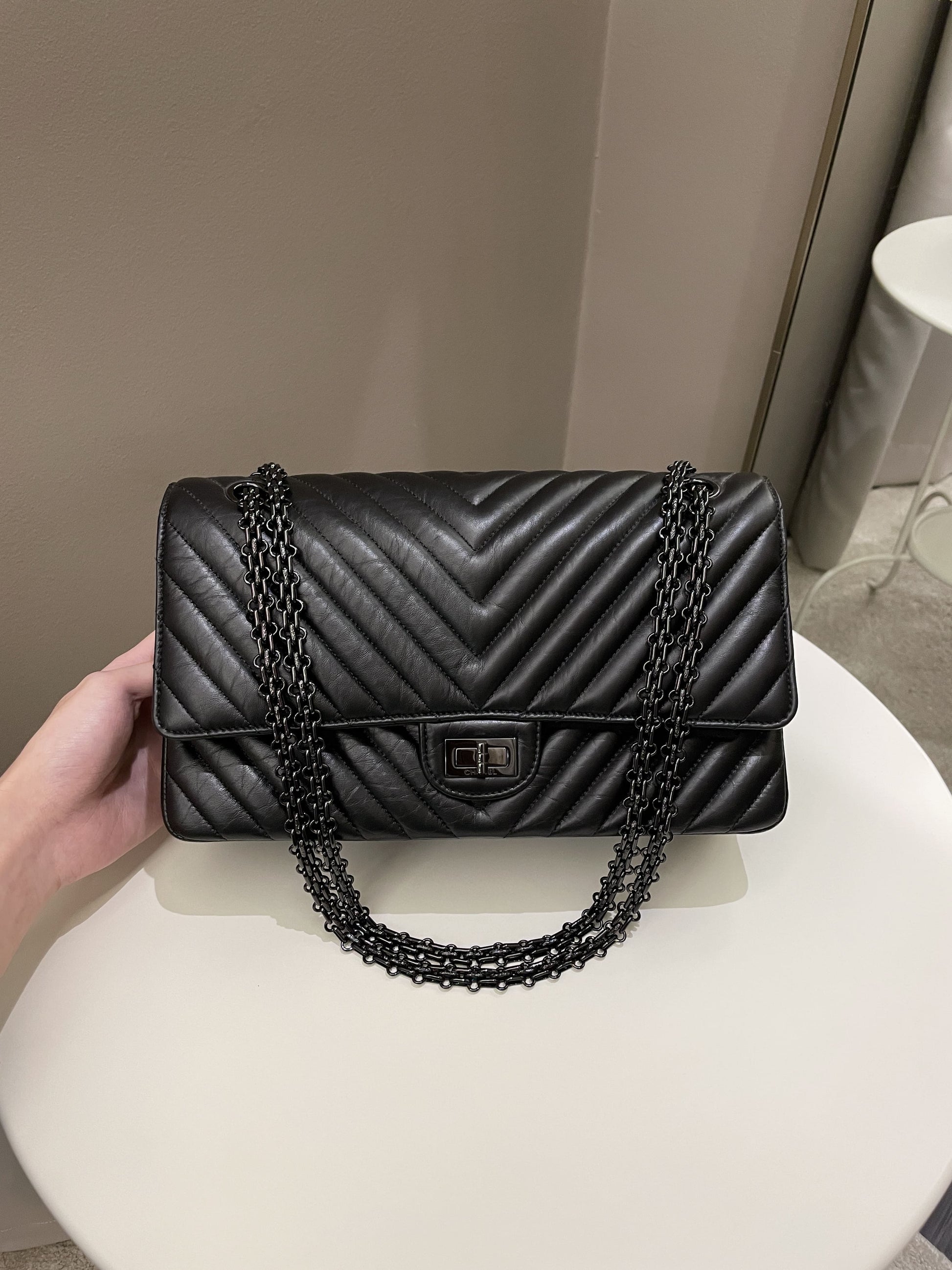 Chanel 2.55 226 So Black Chevron Reissue Double Flap