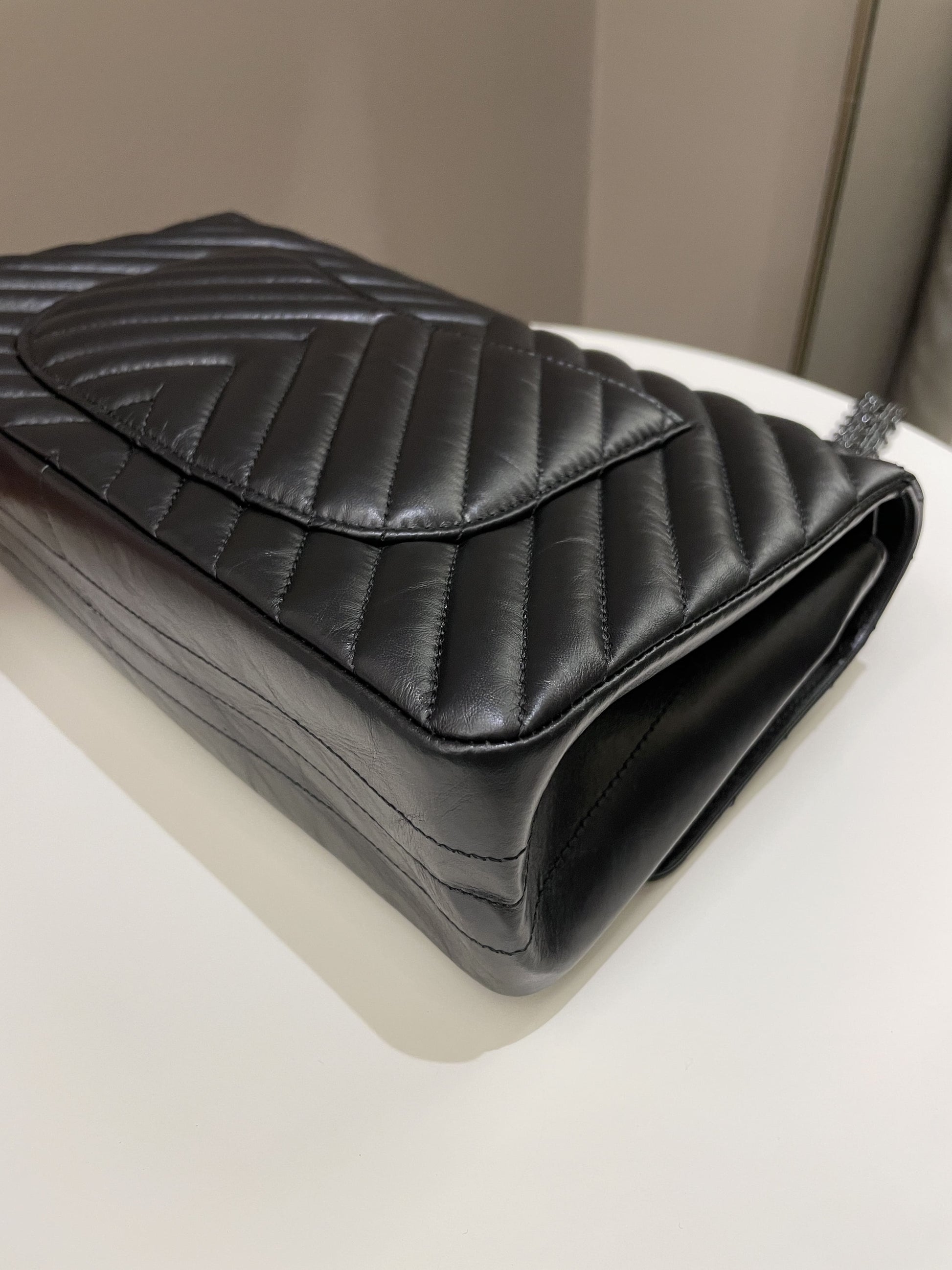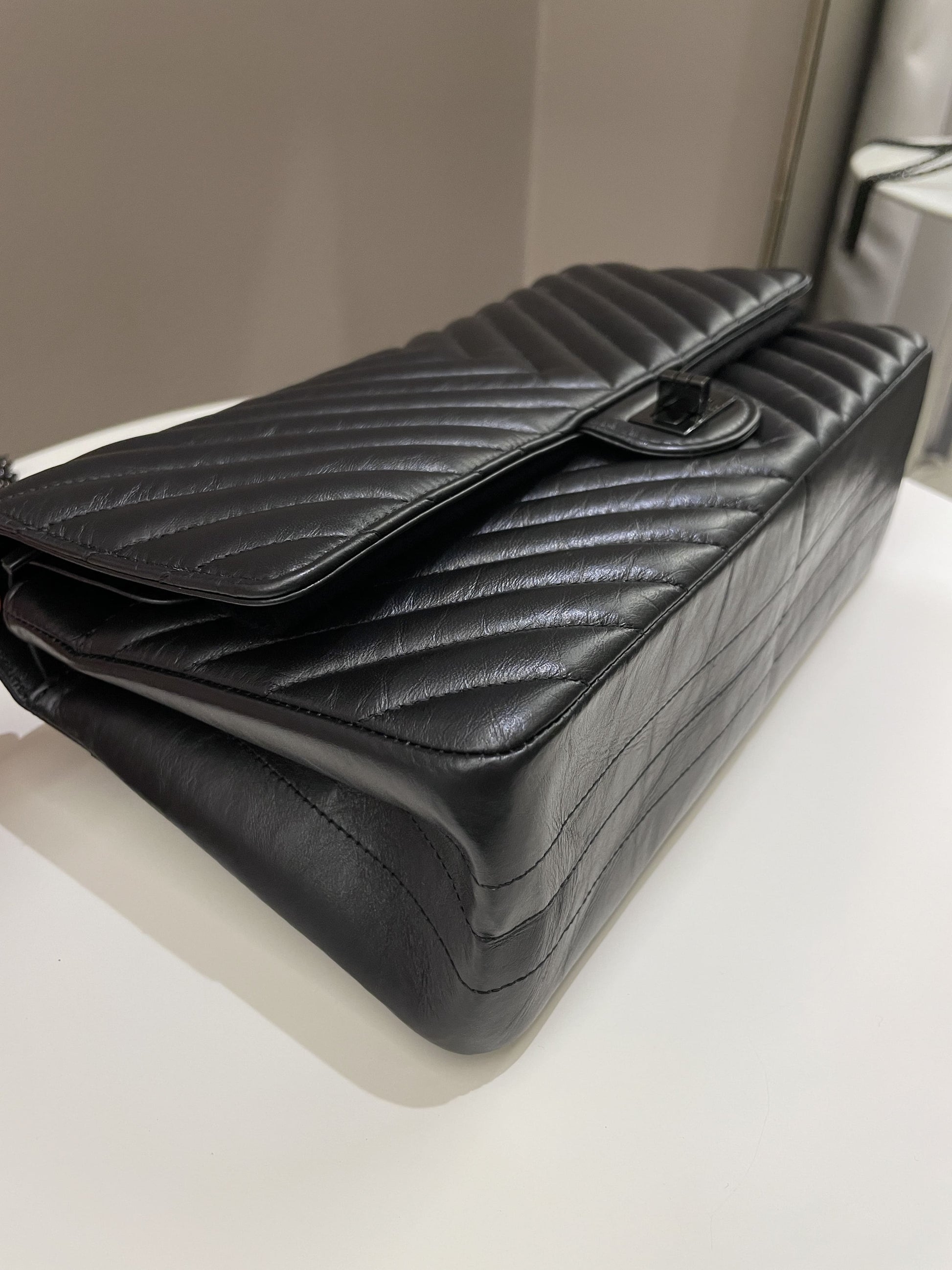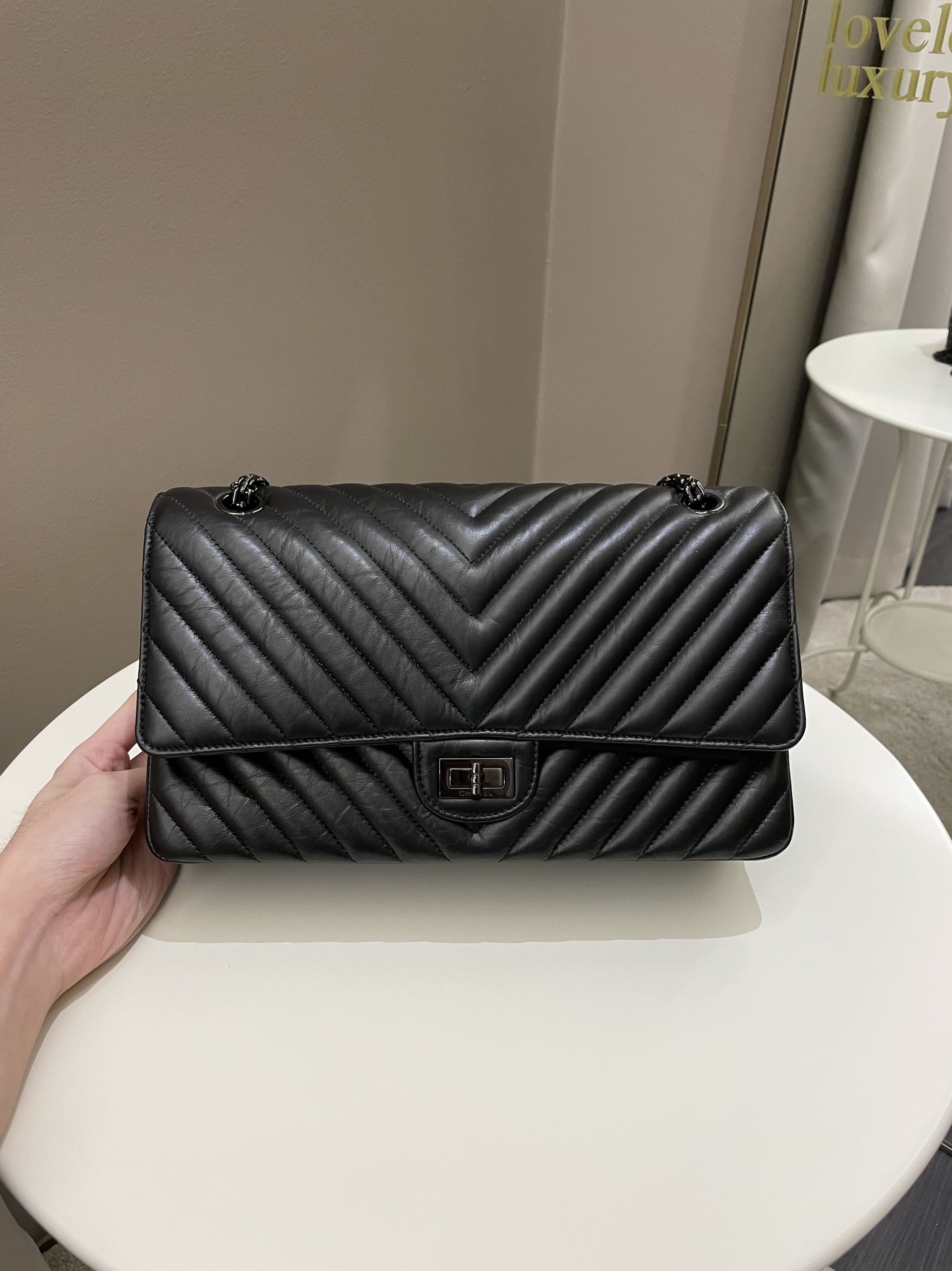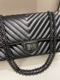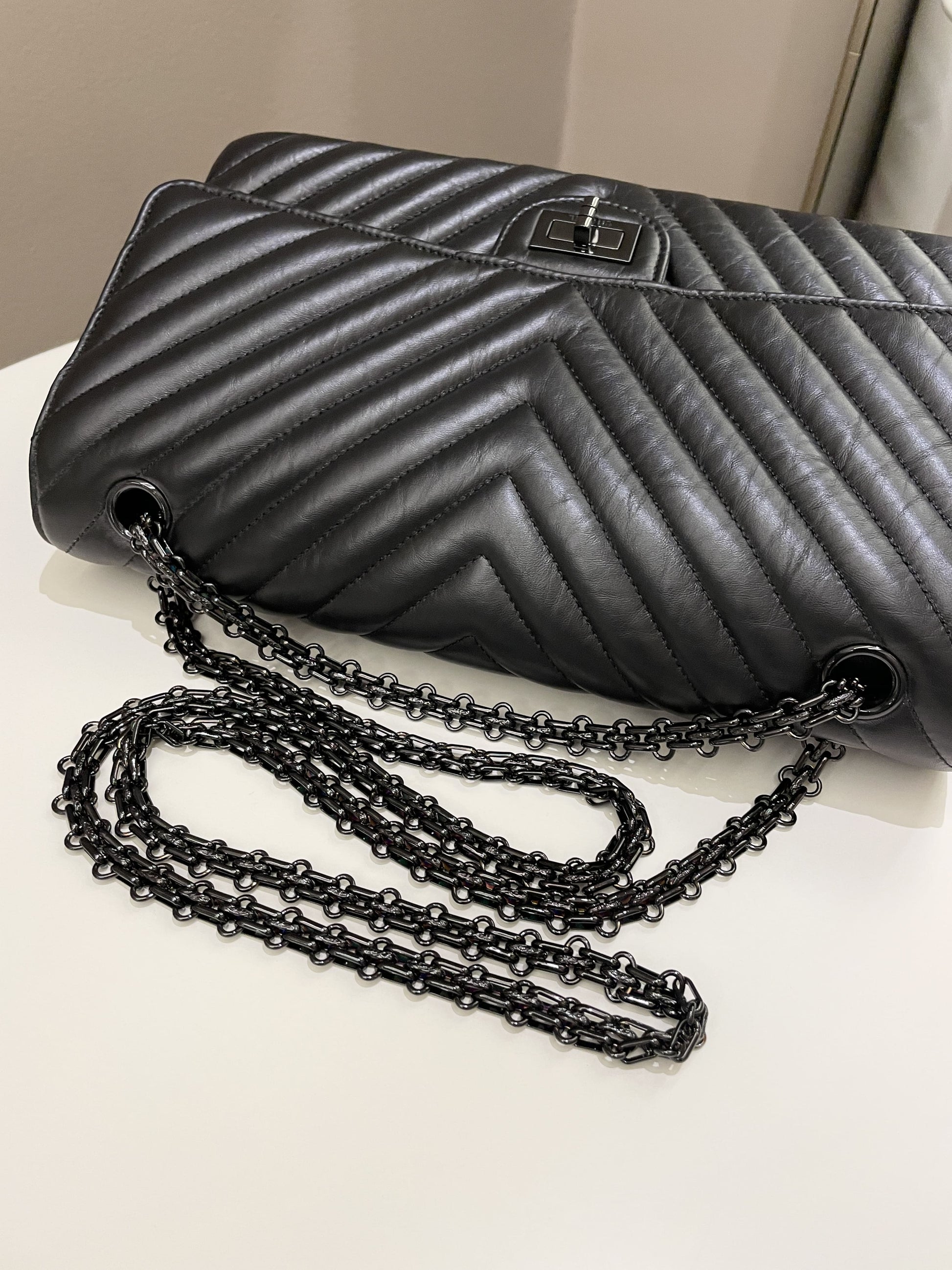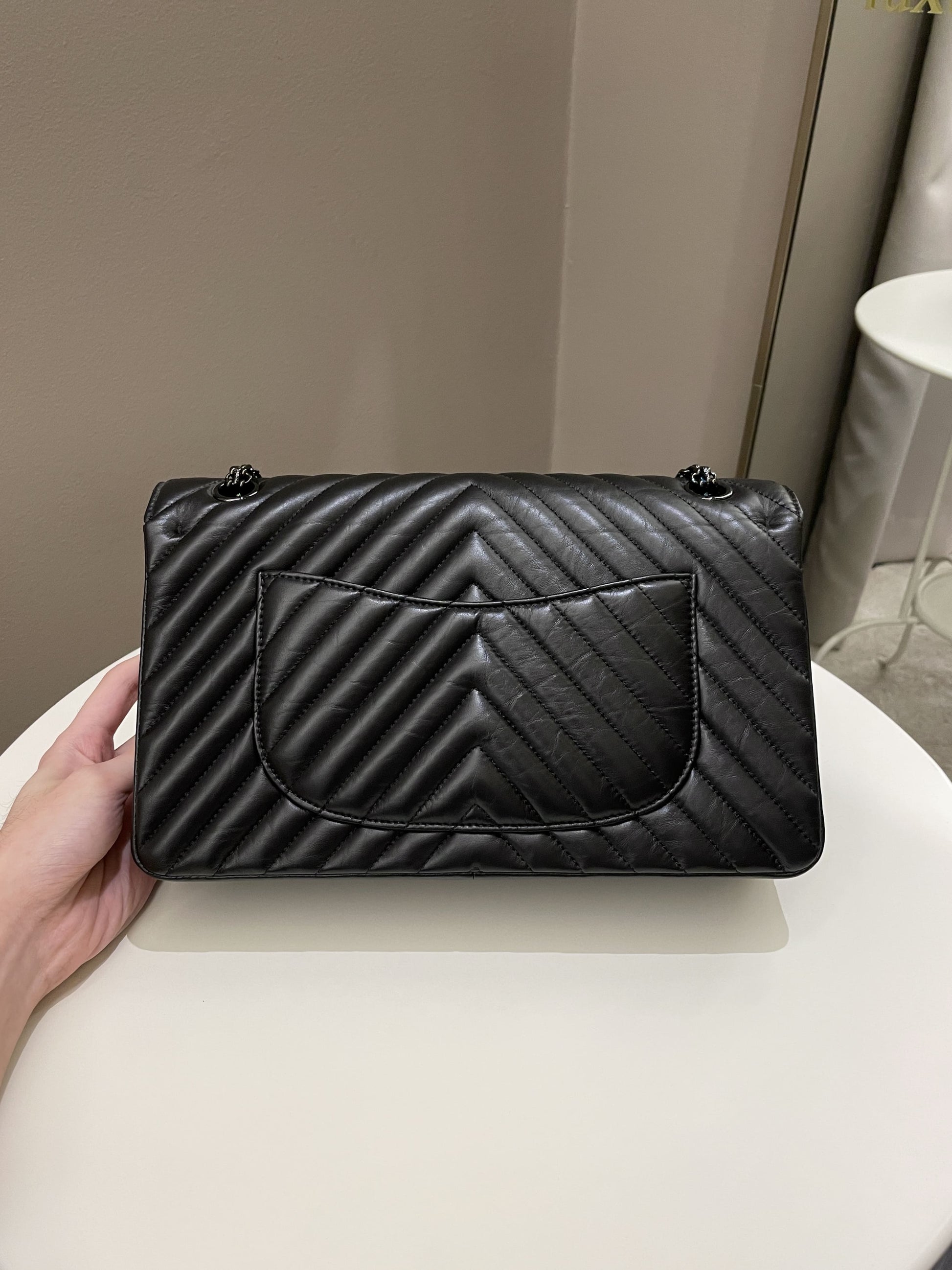 Chanel 2.55 226 So Black Chevron Reissue Double Flap Black Aged Calfskin