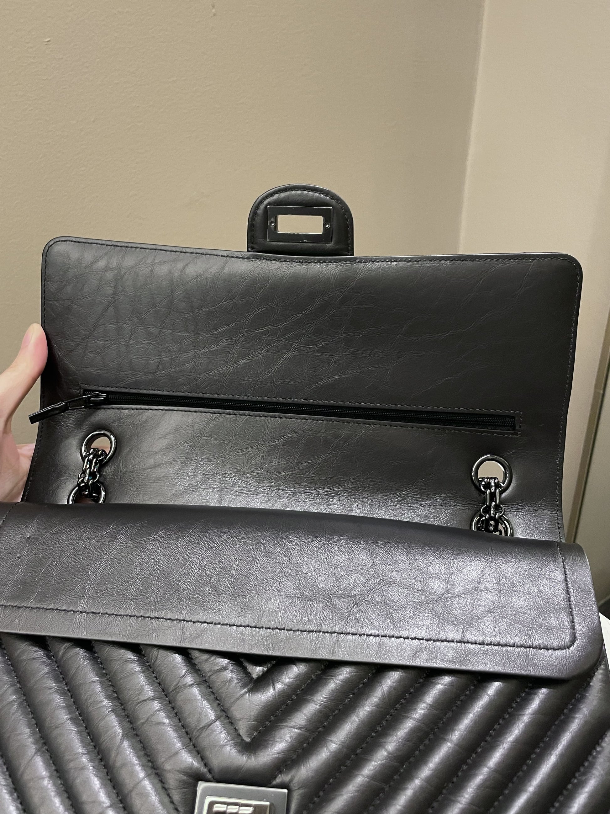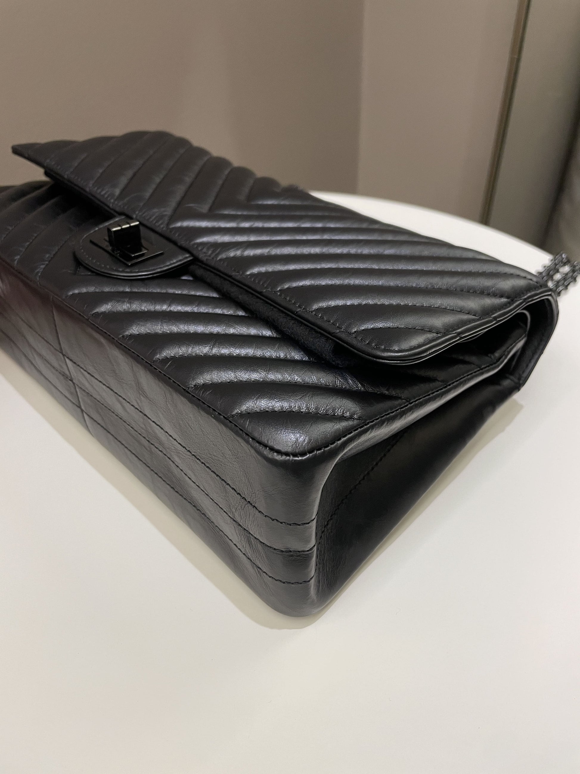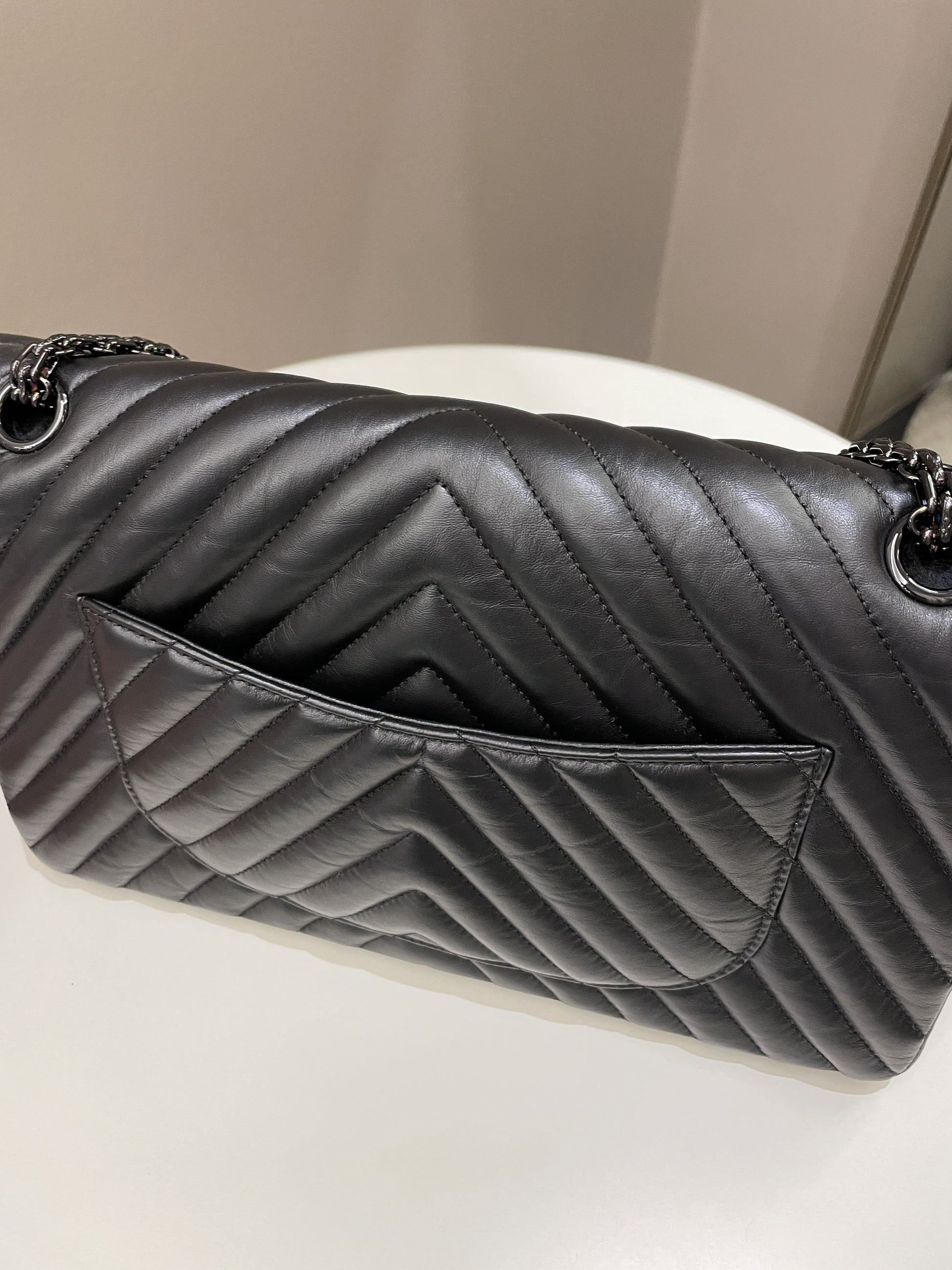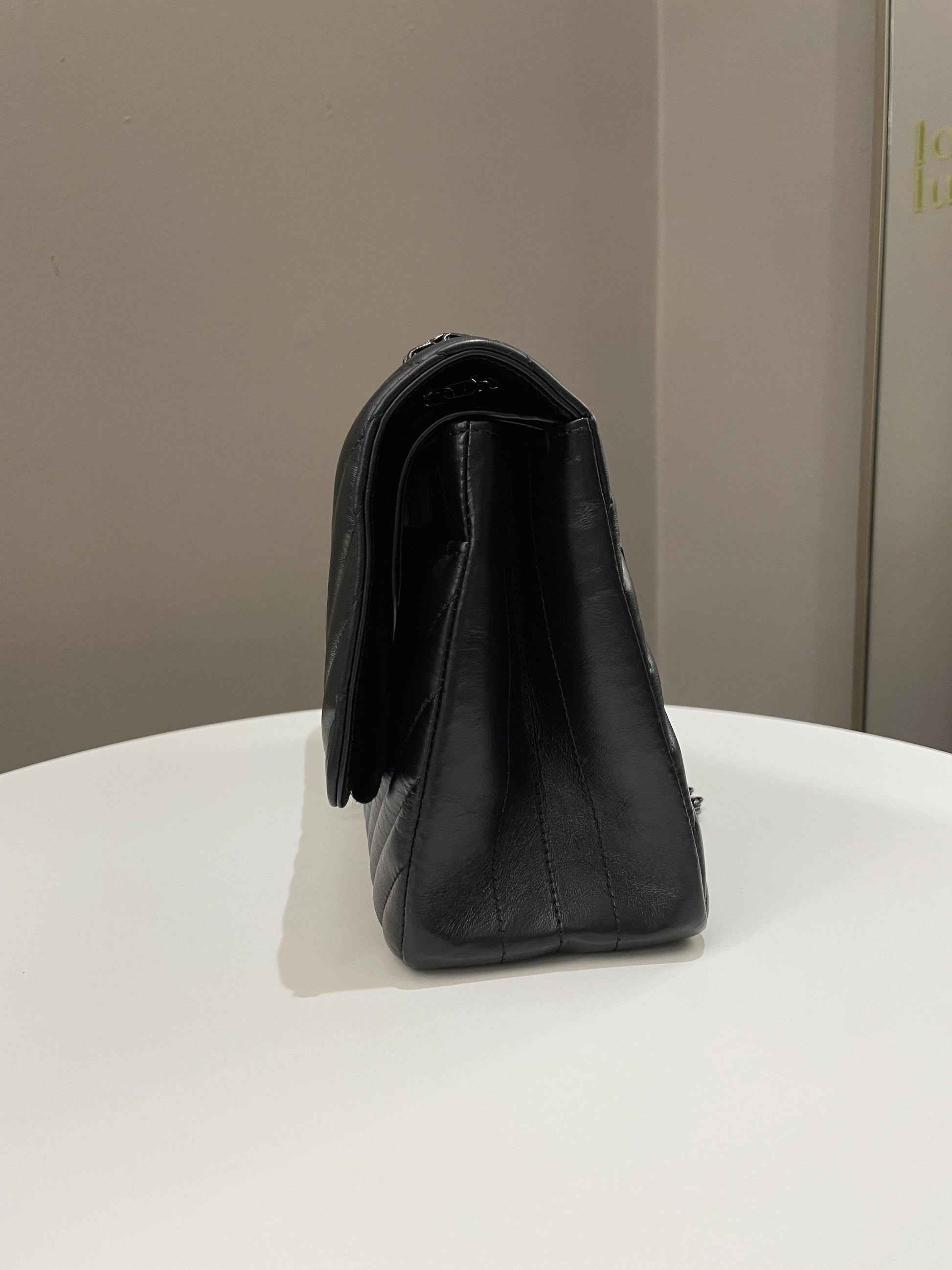 Chanel 2.55 226 So Black Chevron Reissue Double Flap Black Aged Calfskin