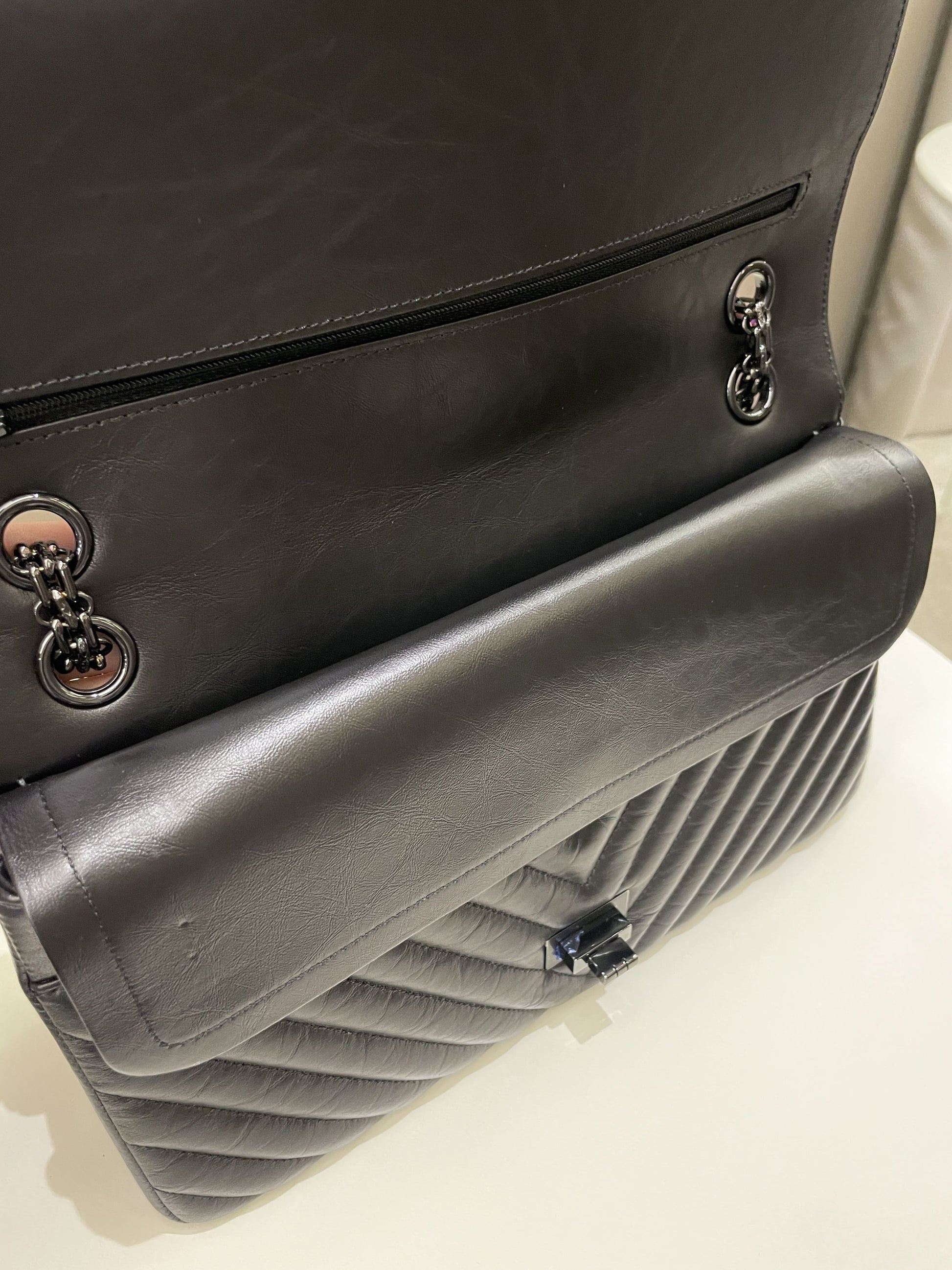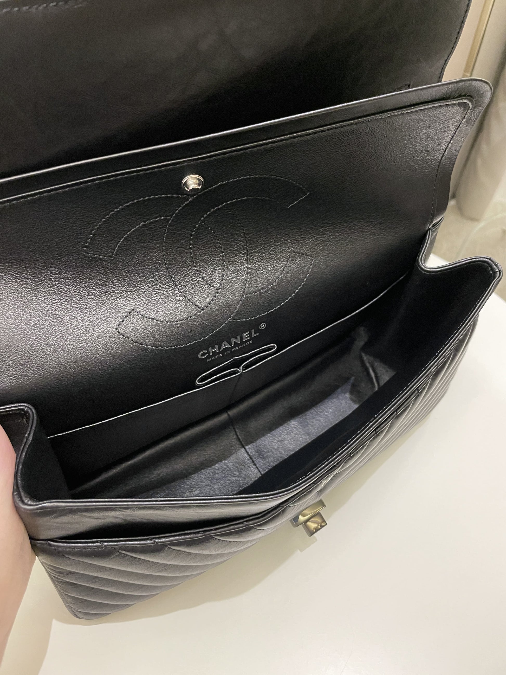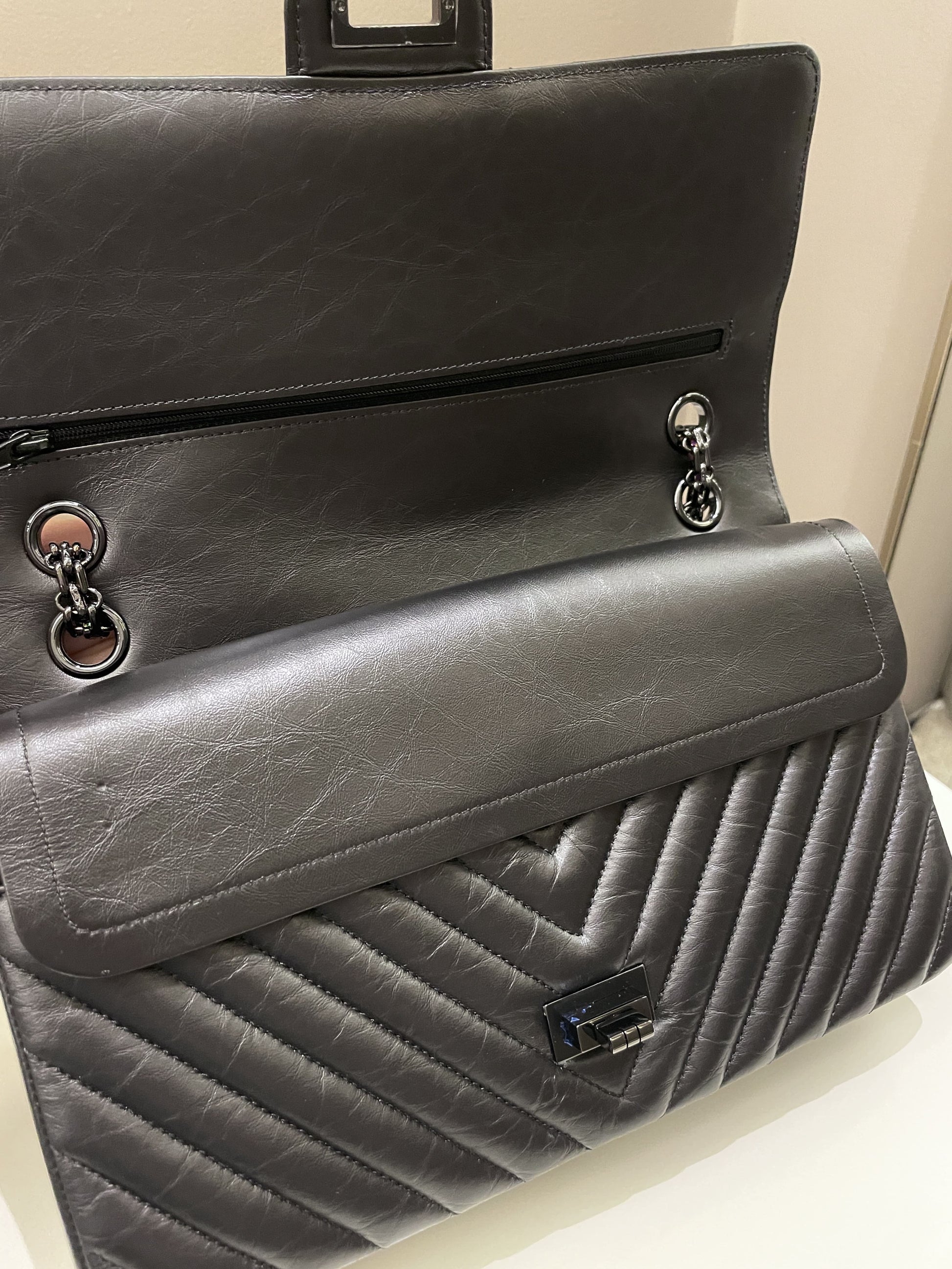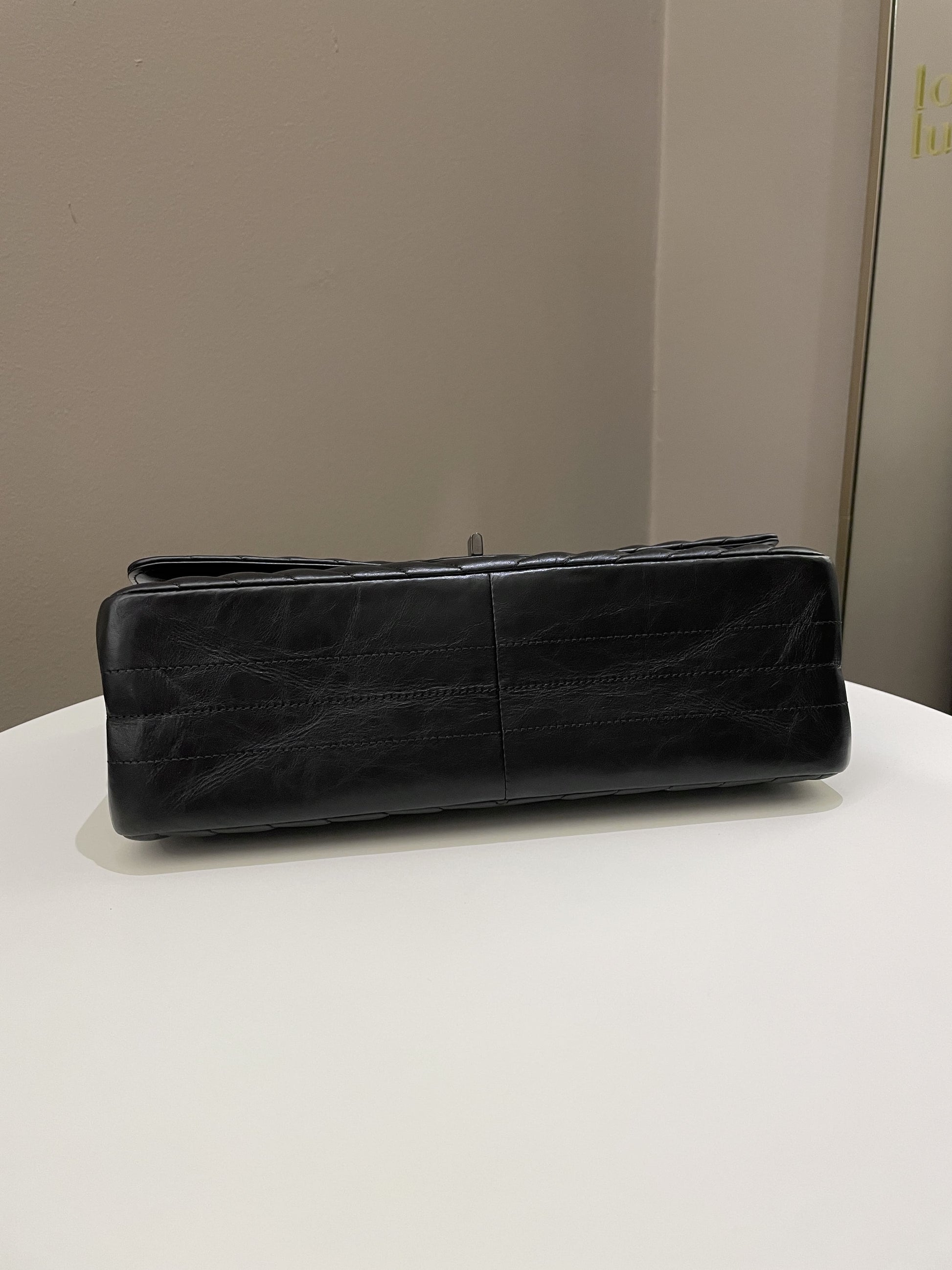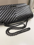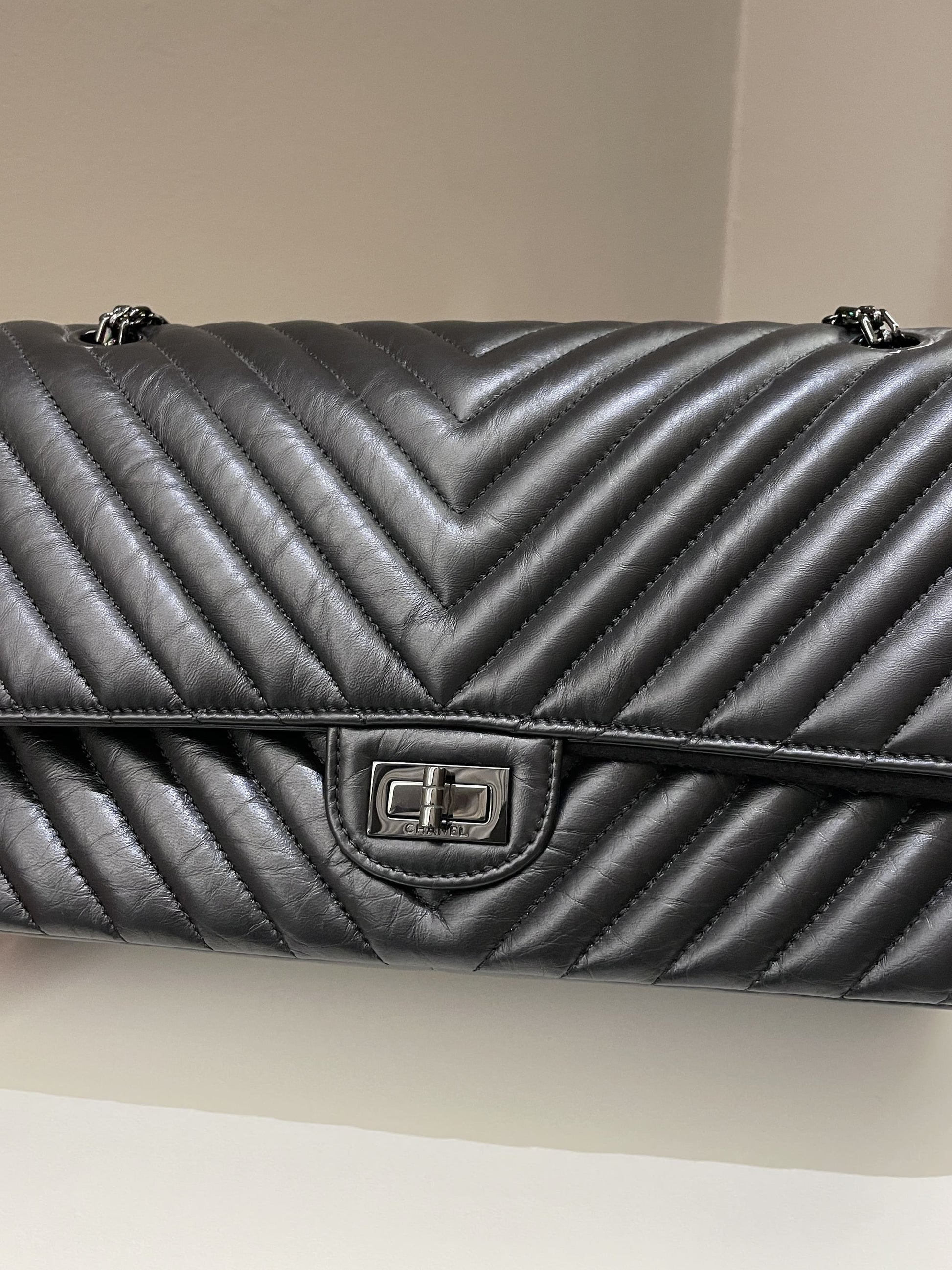 Chanel 2.55 226 So Black Chevron Reissue Double Flap Black Aged Calfskin