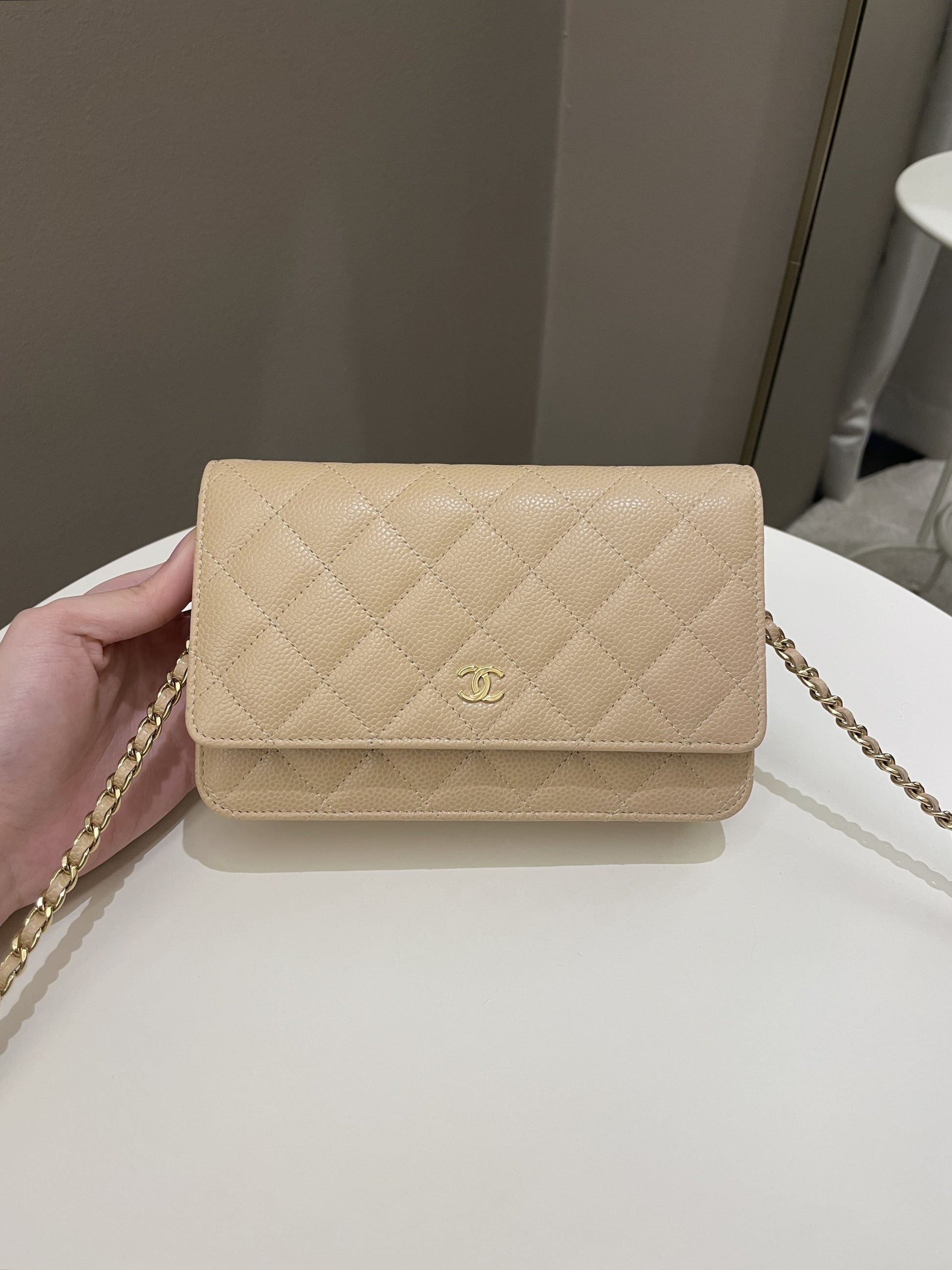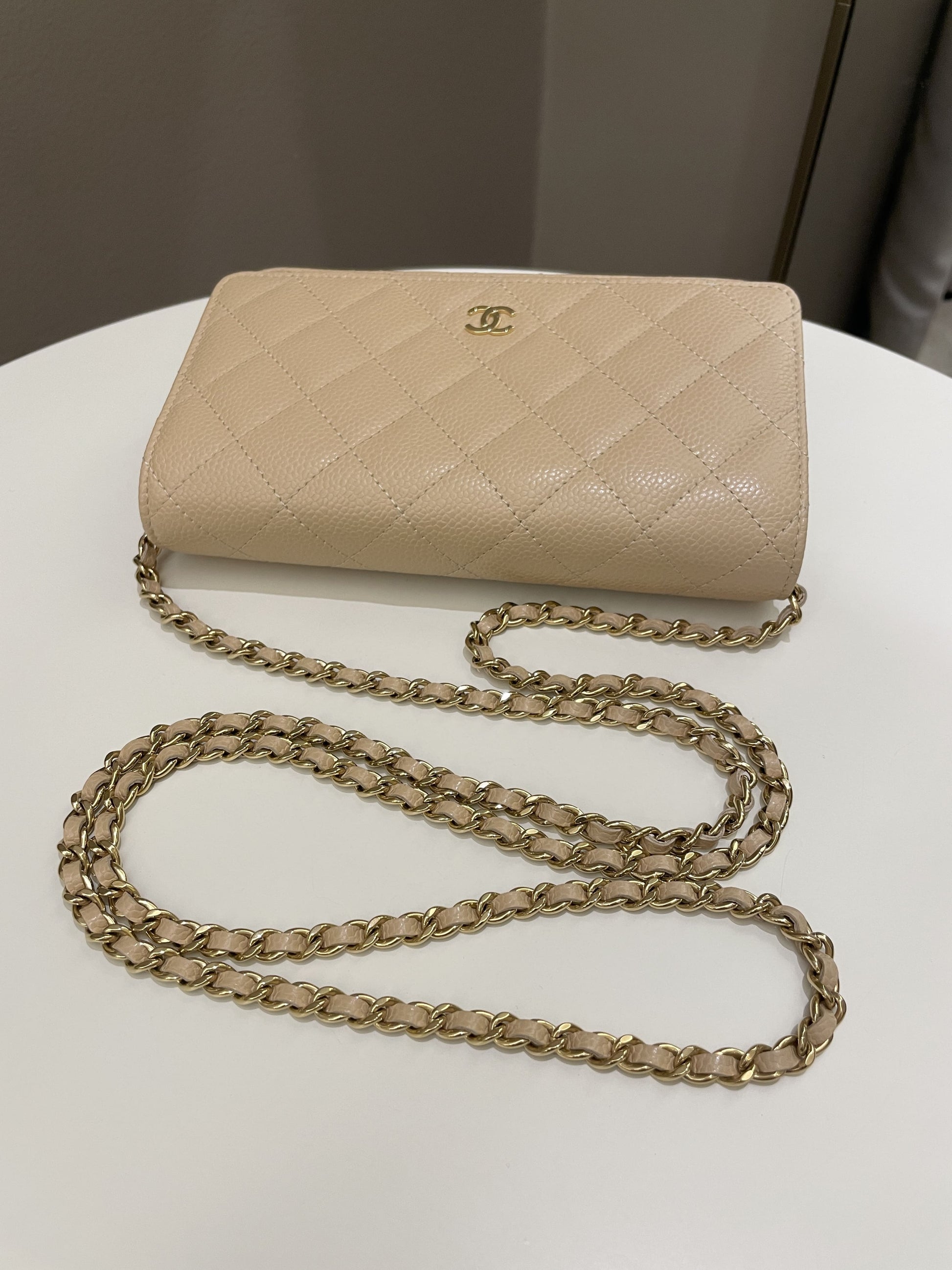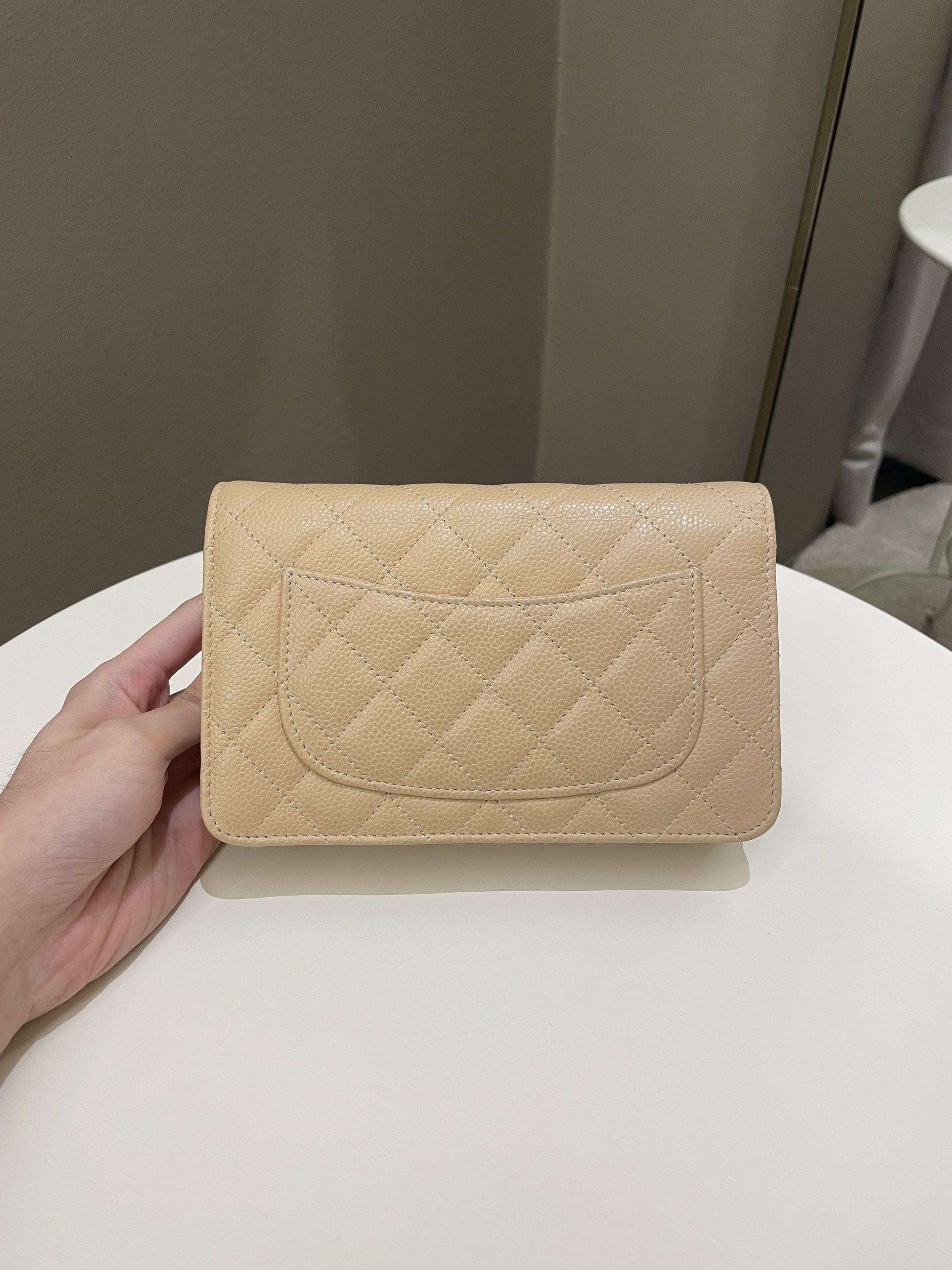 Chanel Classic Quilted Wallet on Chain Beige Caviar