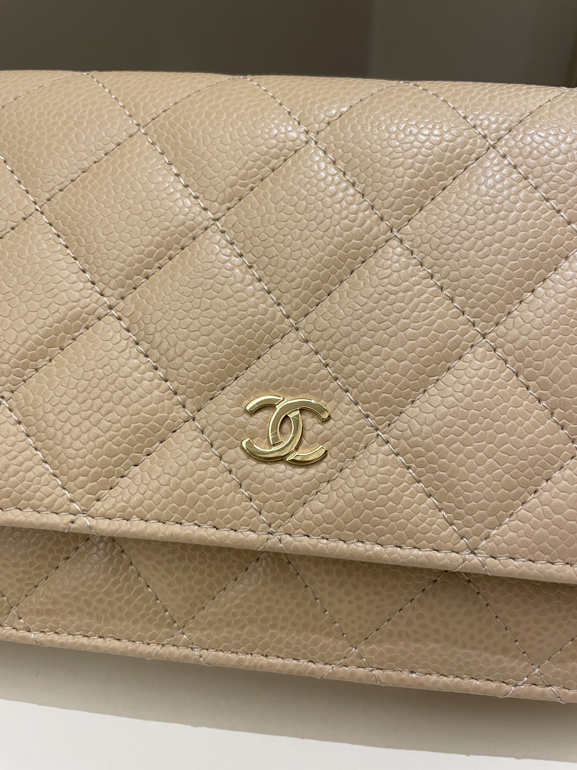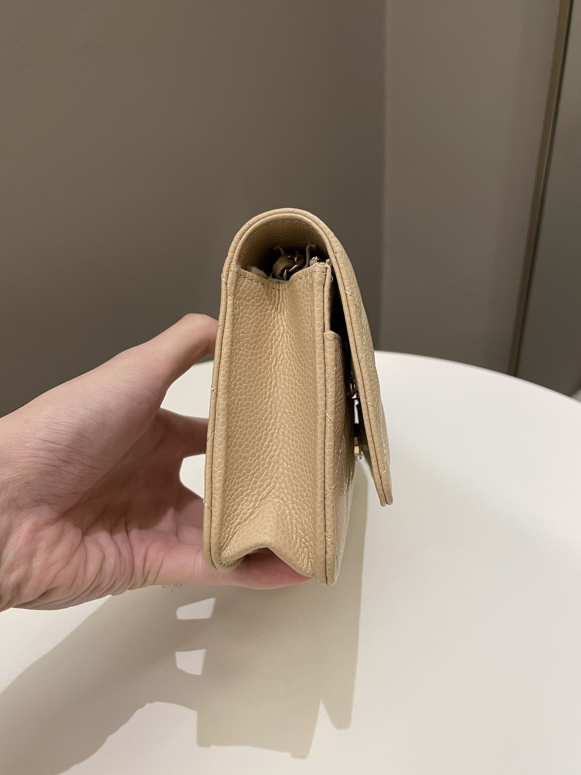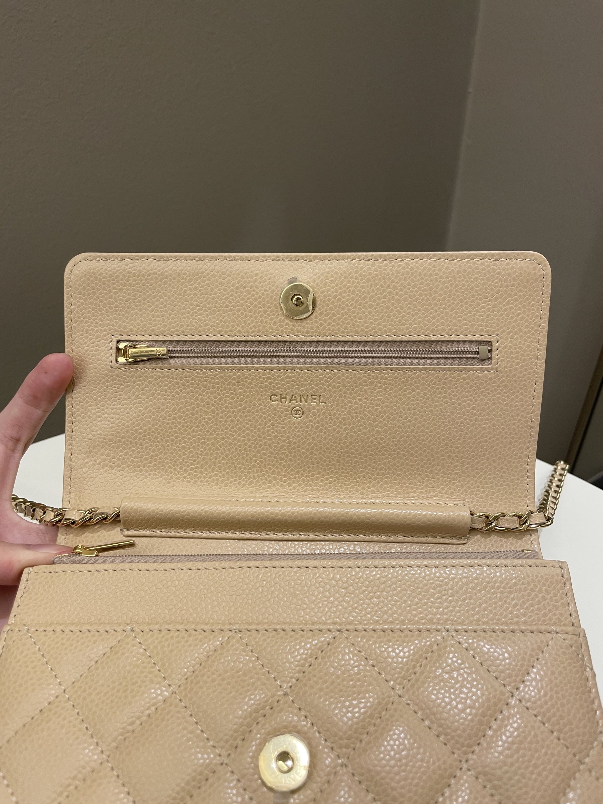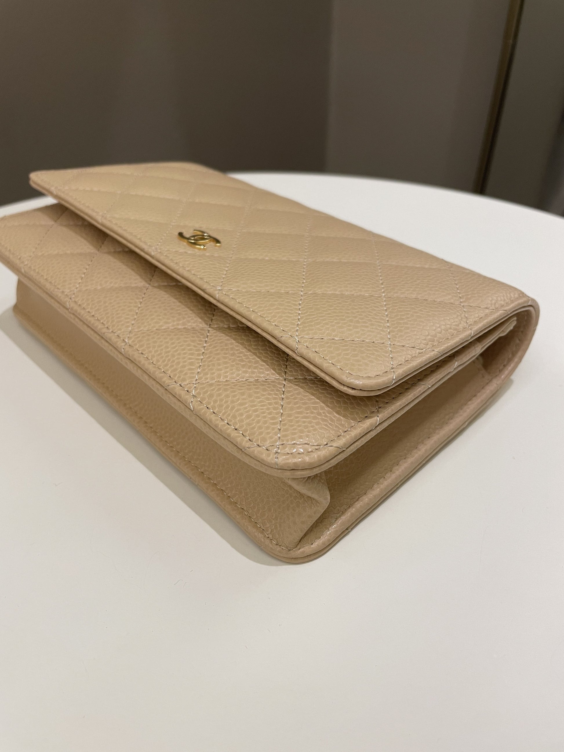 Chanel Classic Quilted Wallet on Chain Beige Caviar
