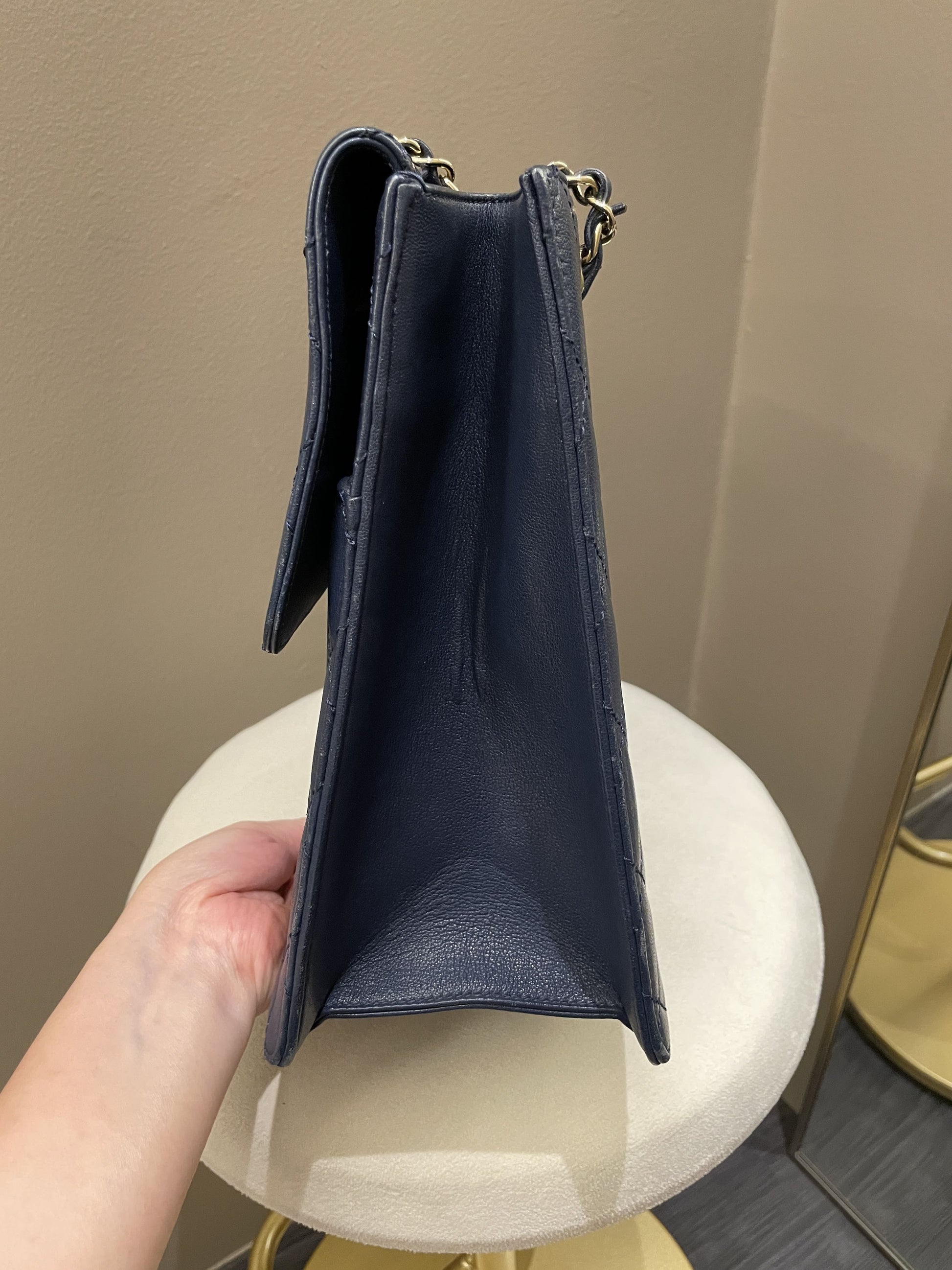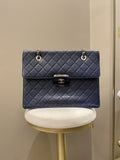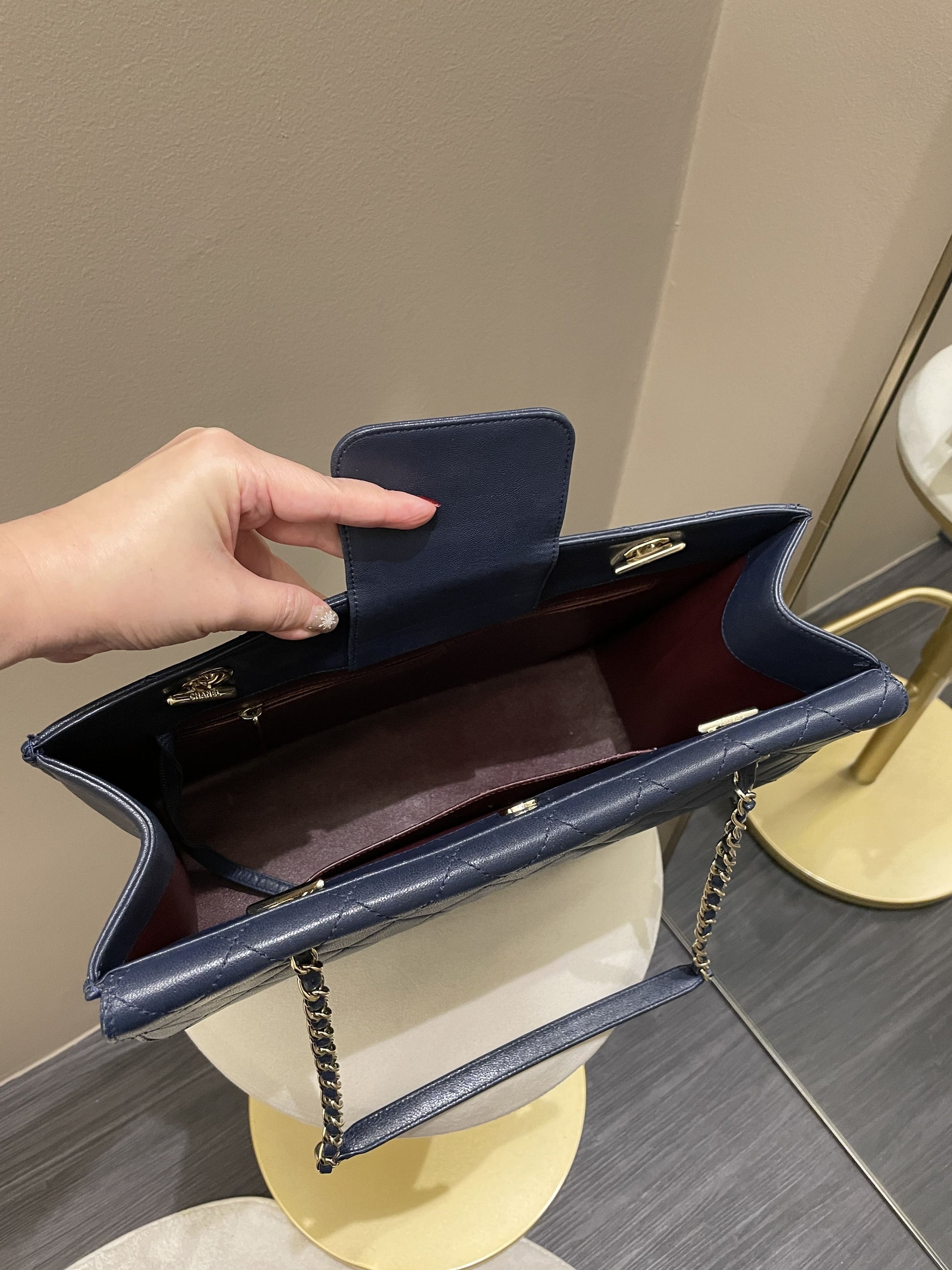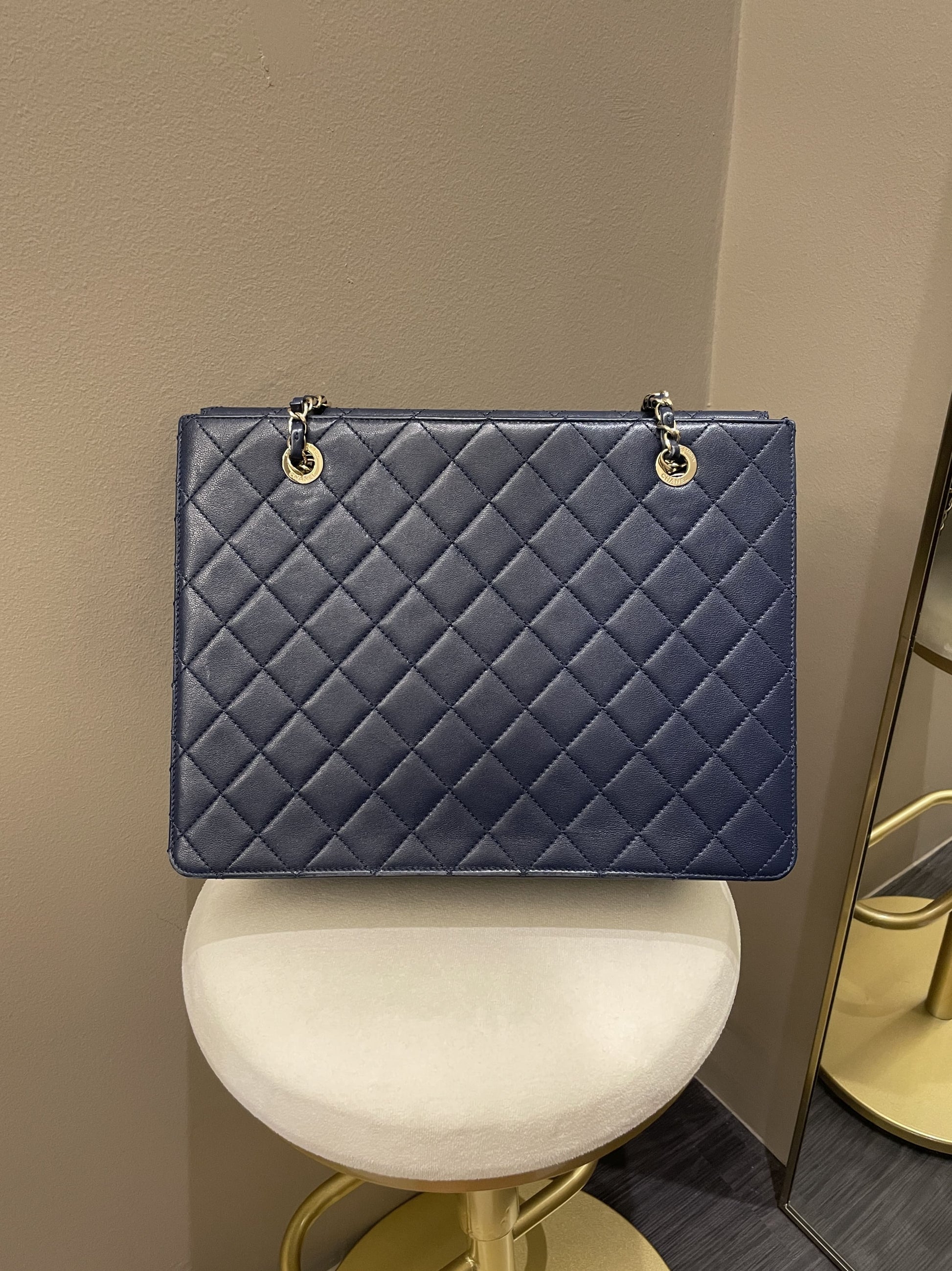 Chanel Quilted Large Shopper Tote Blue Grainy Goatskin