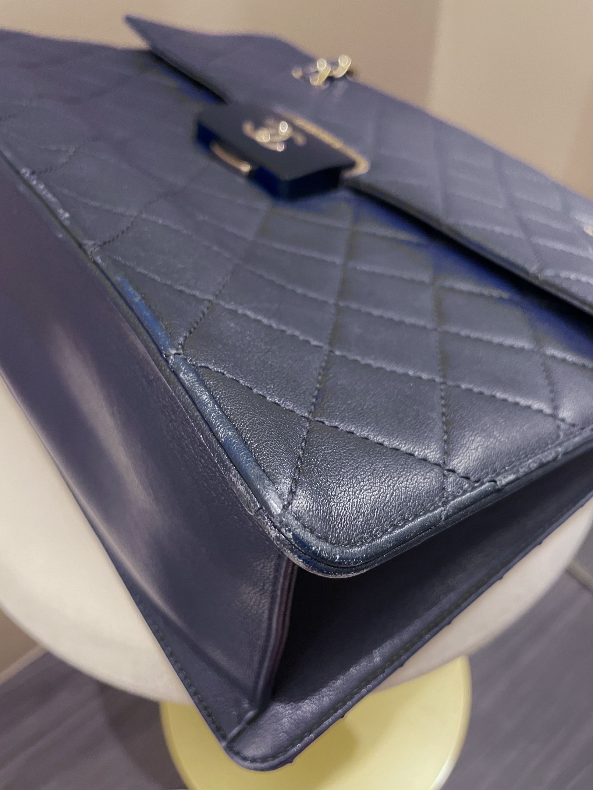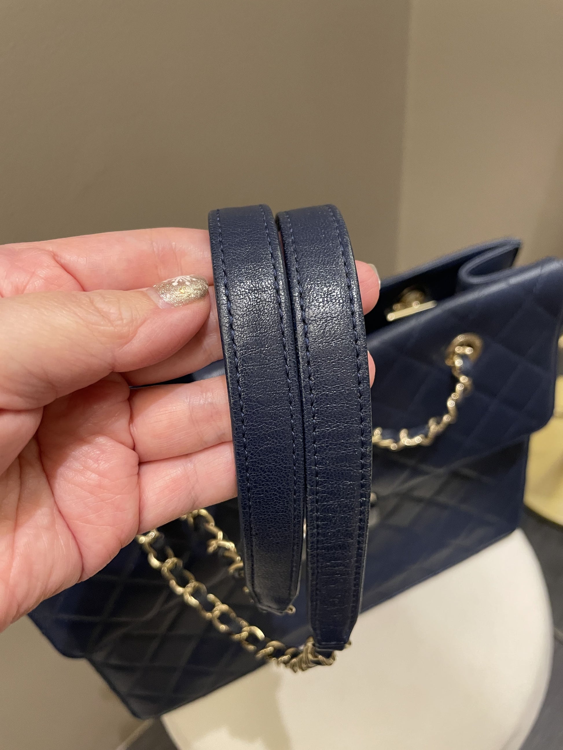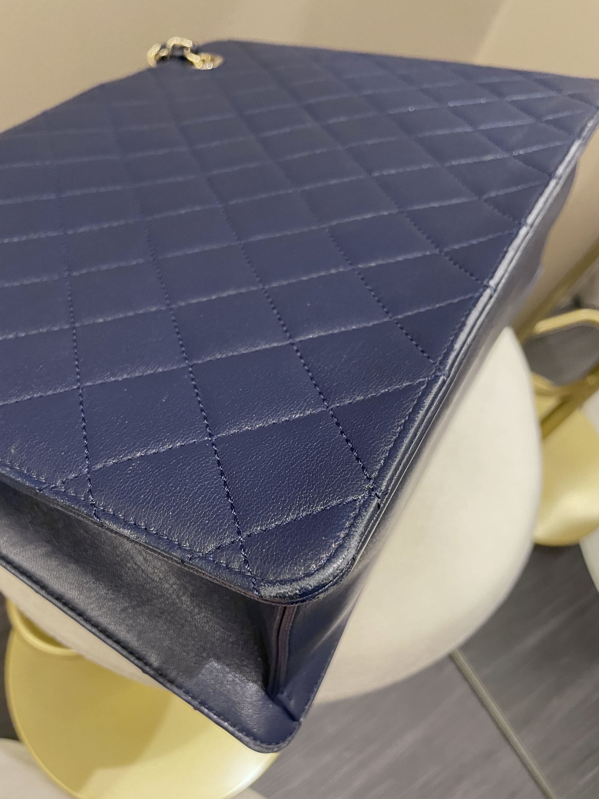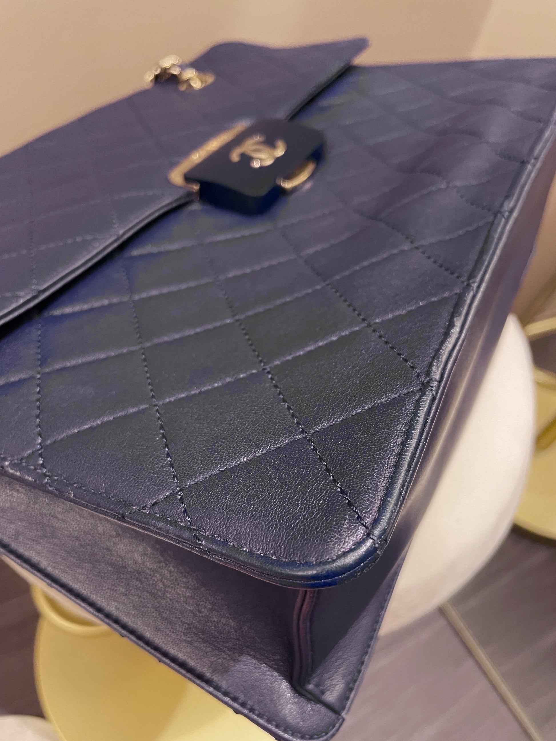 Chanel Quilted Large Shopper Tote Blue Grainy Goatskin