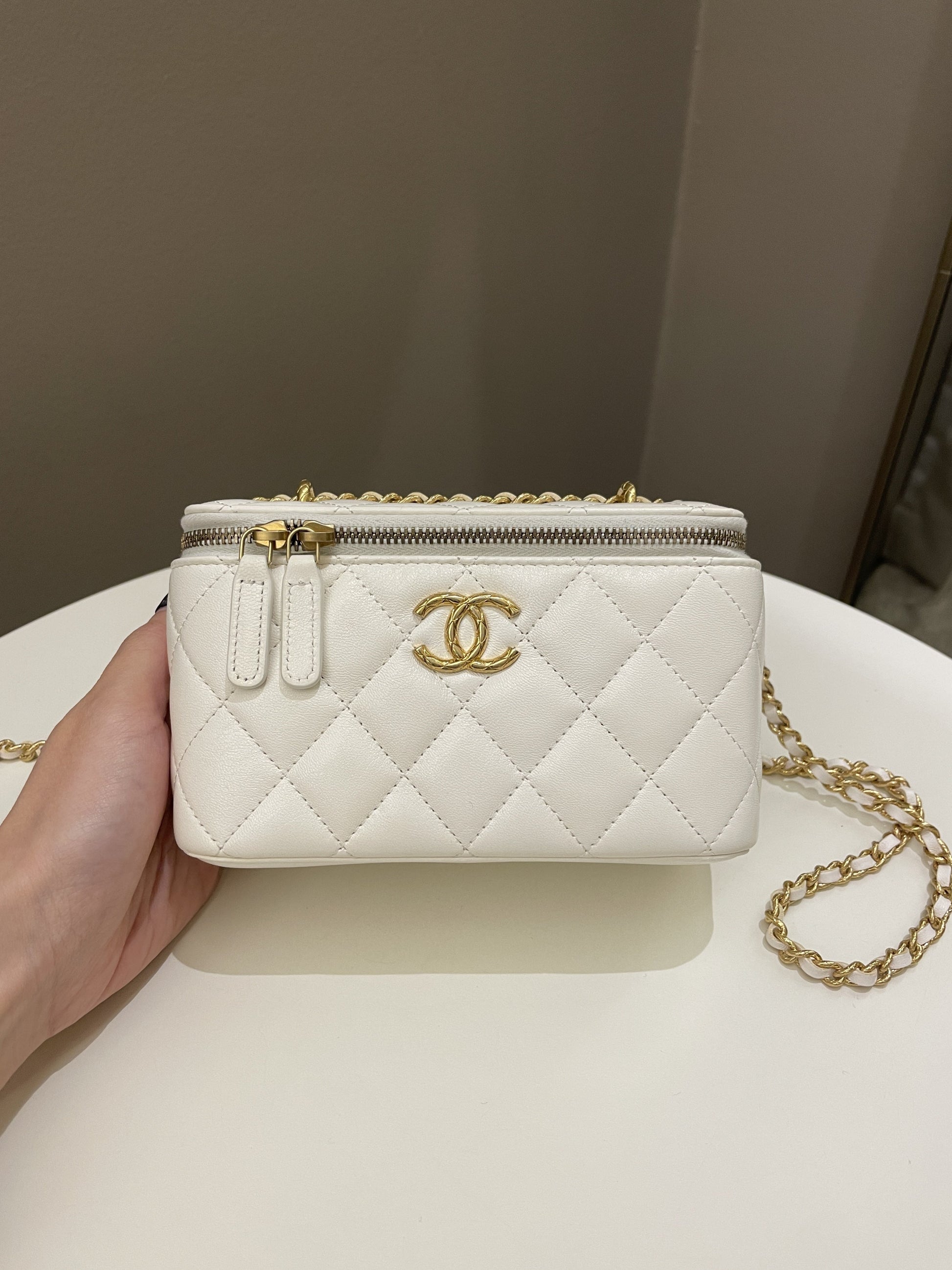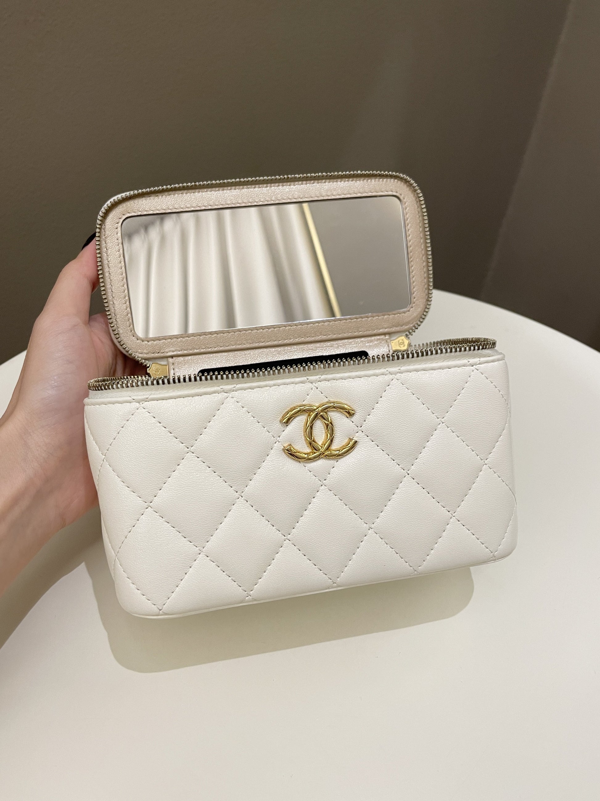 Chanel 23C Cc Mini Vanity Rectangular White Lambskin