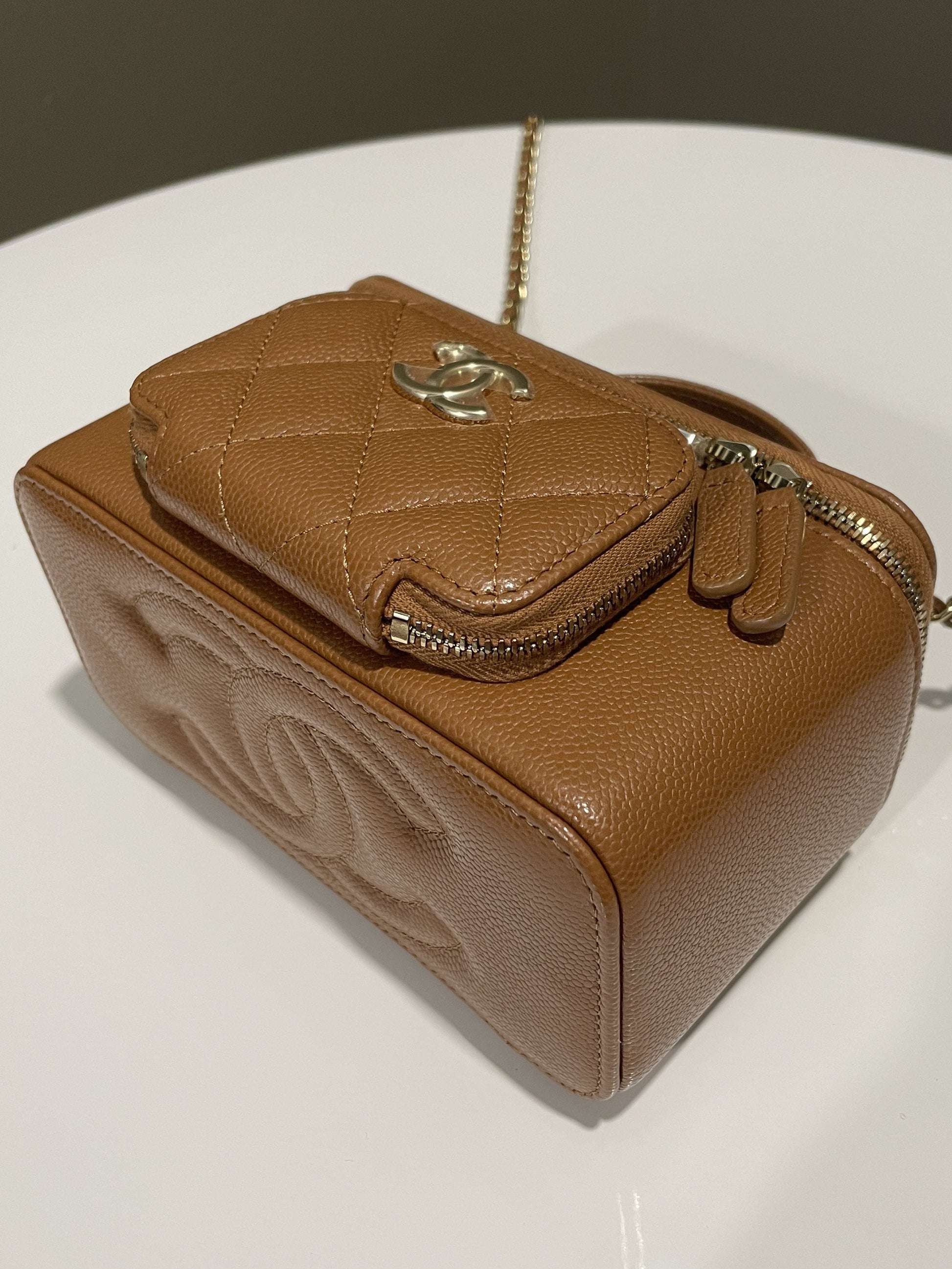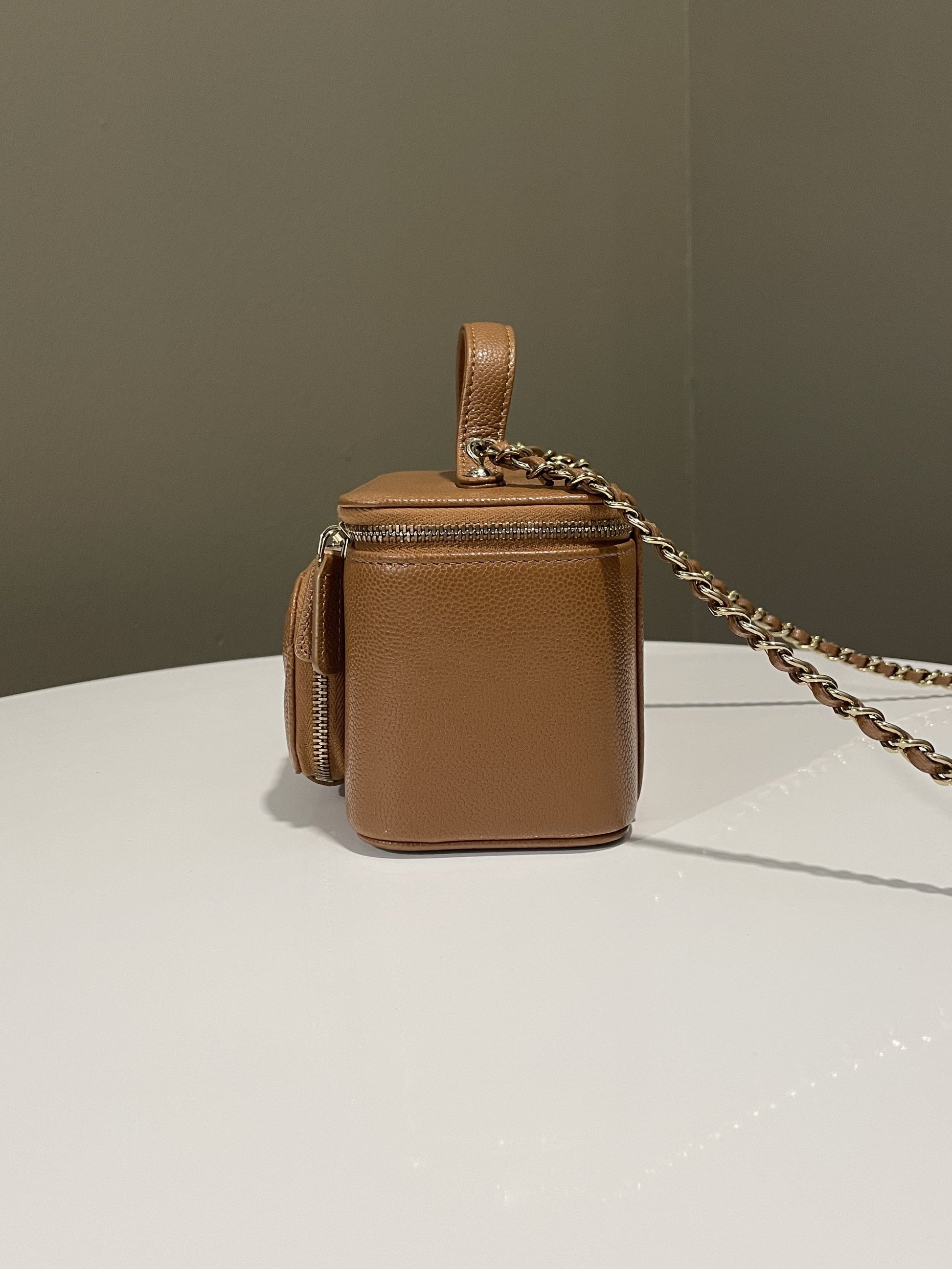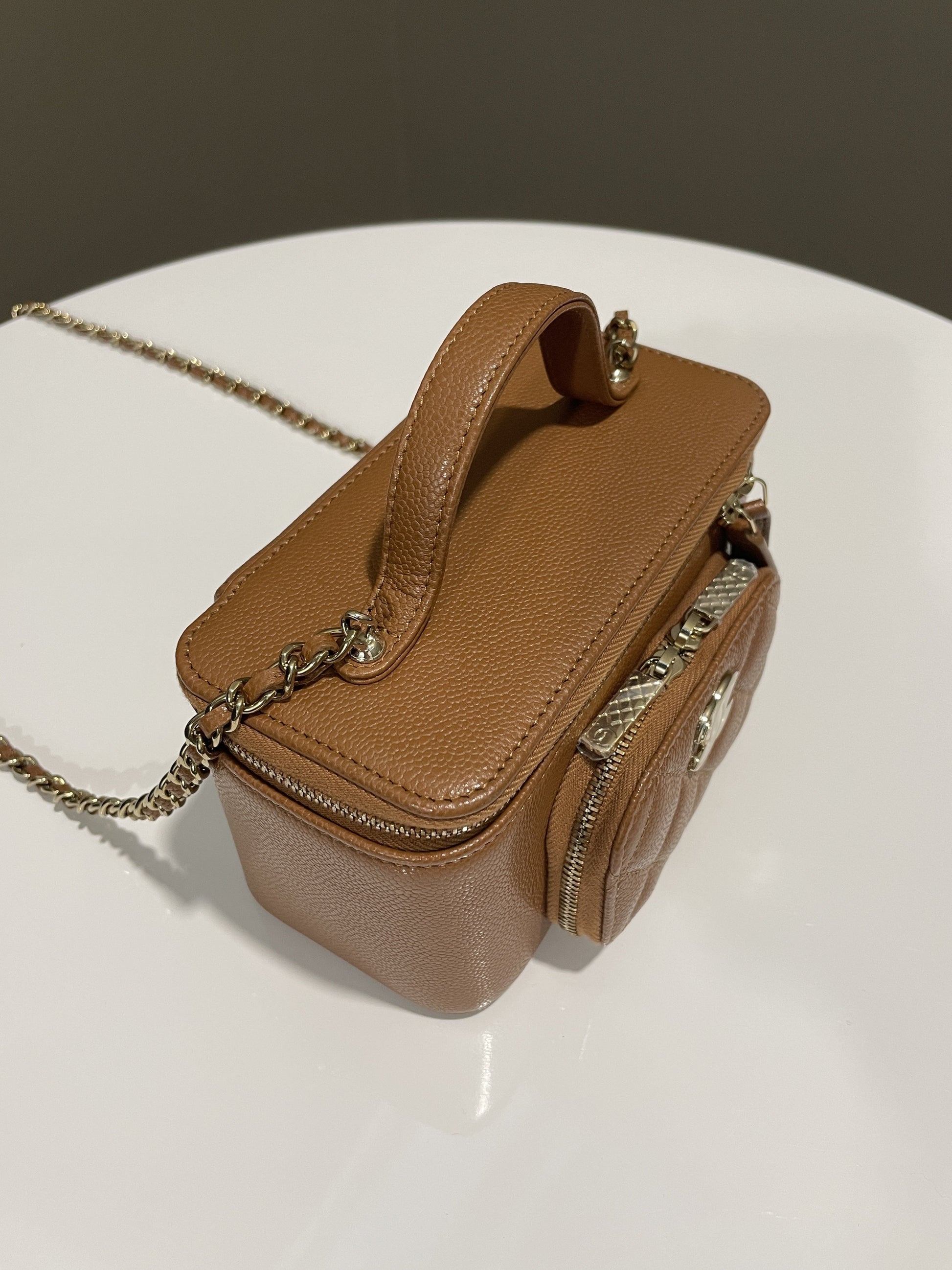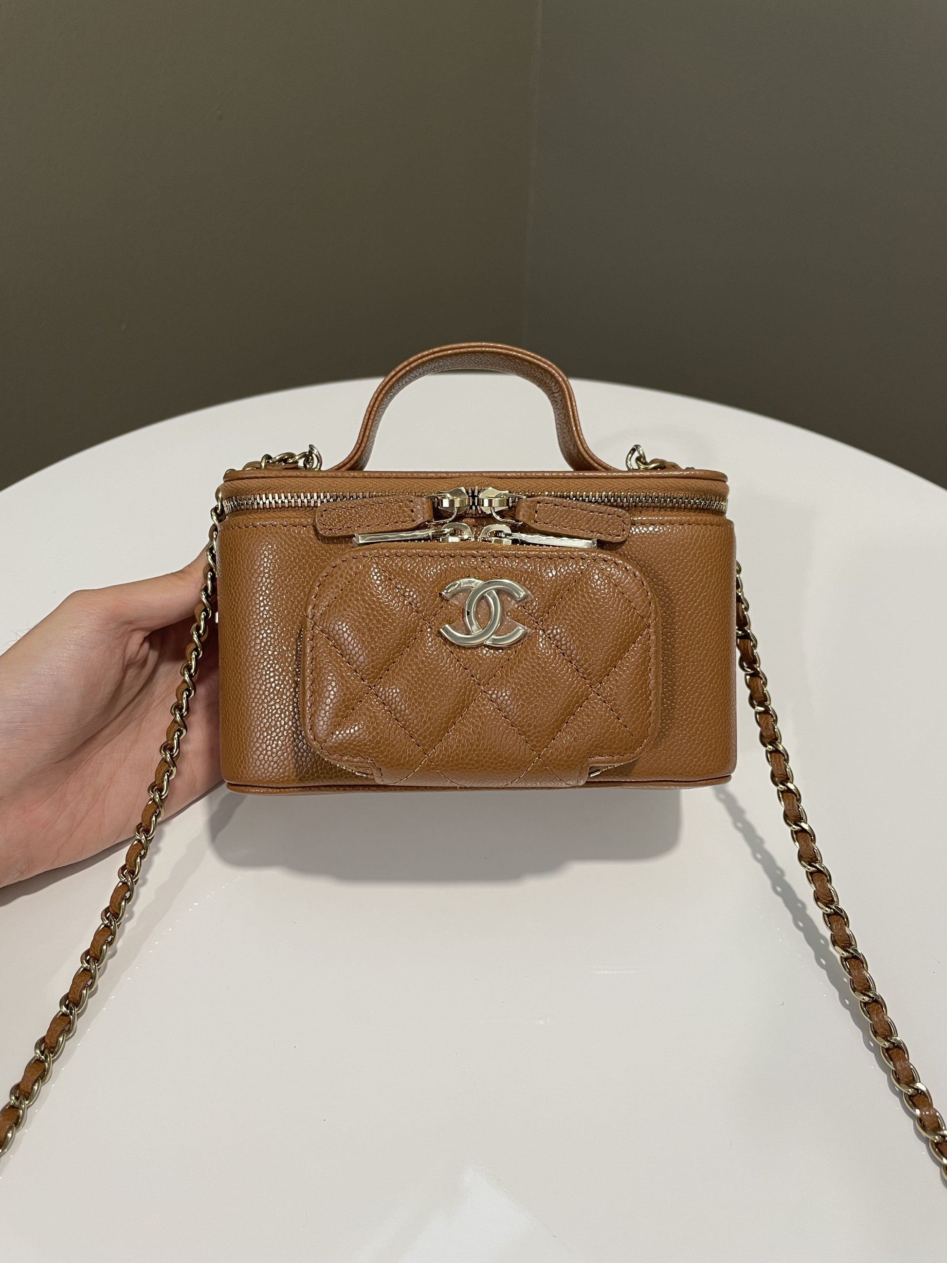 Chanel 23P Business Affinity Top Handle Vanity Rectangular Tan Caviar