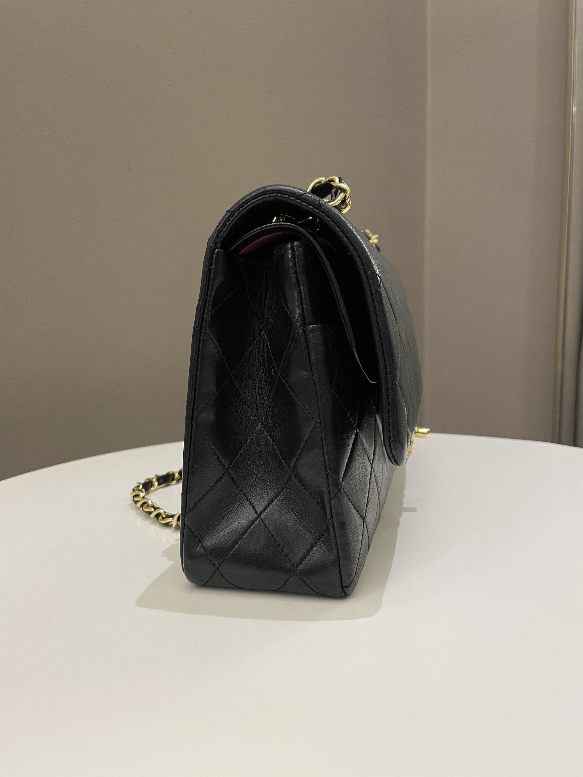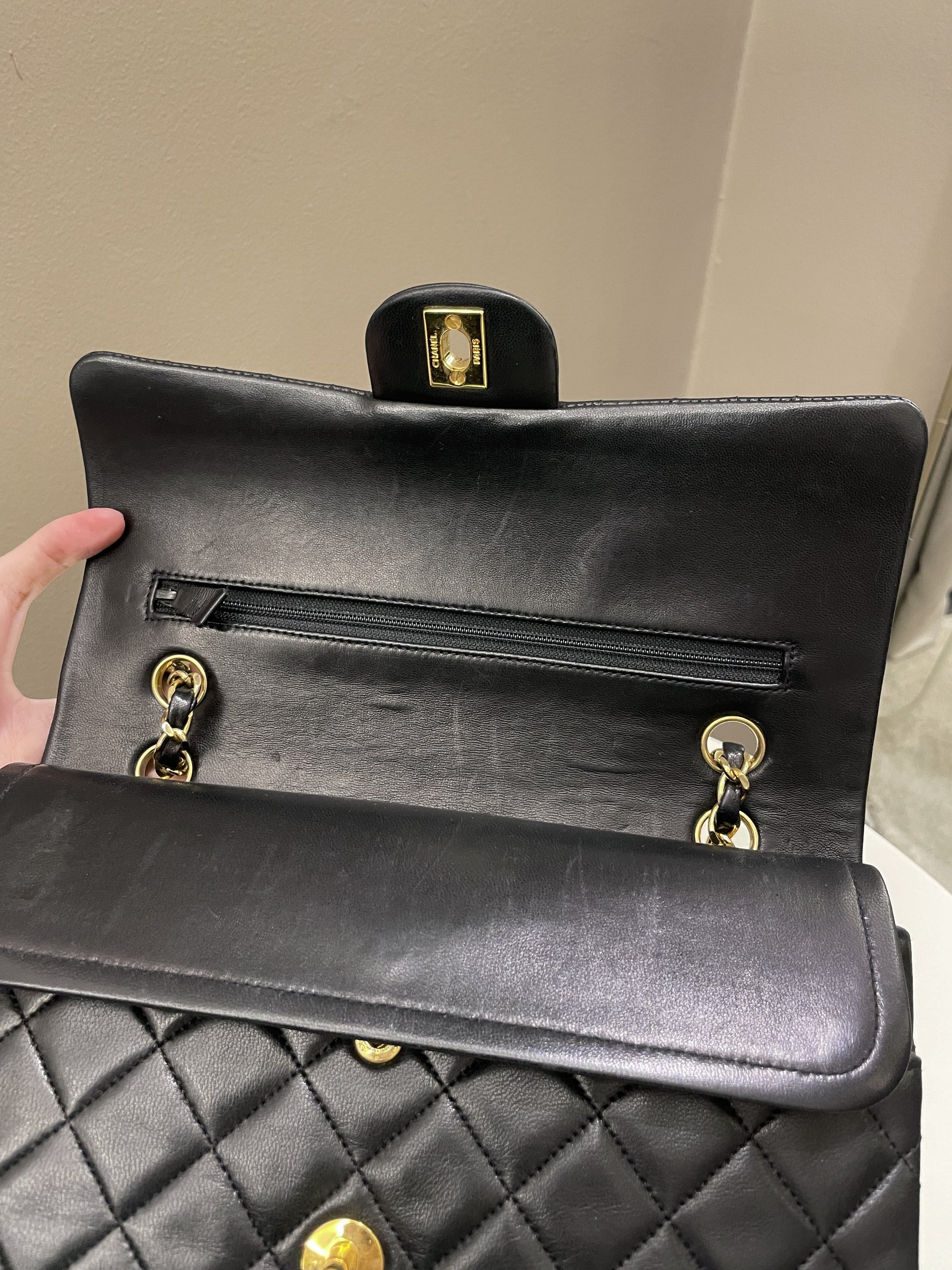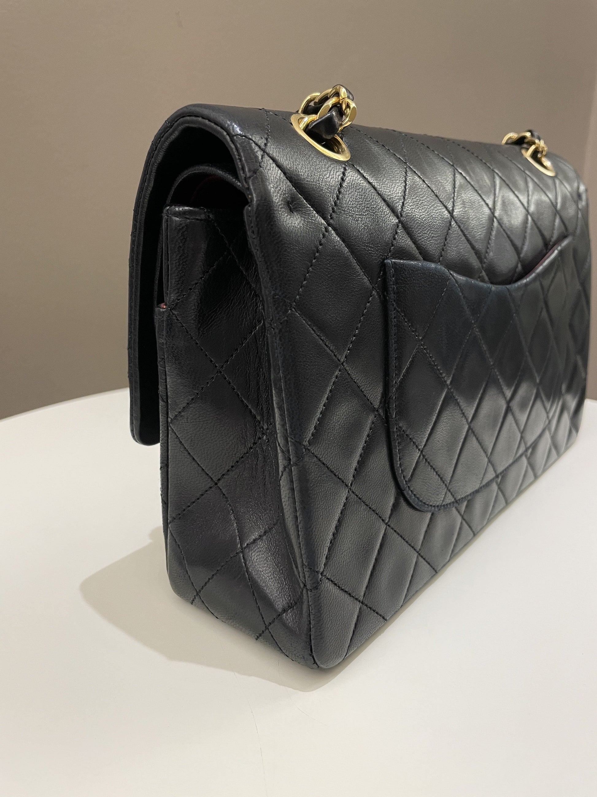 Chanel Vintage Classic Quilted Medium Double Flap Black Lambskin