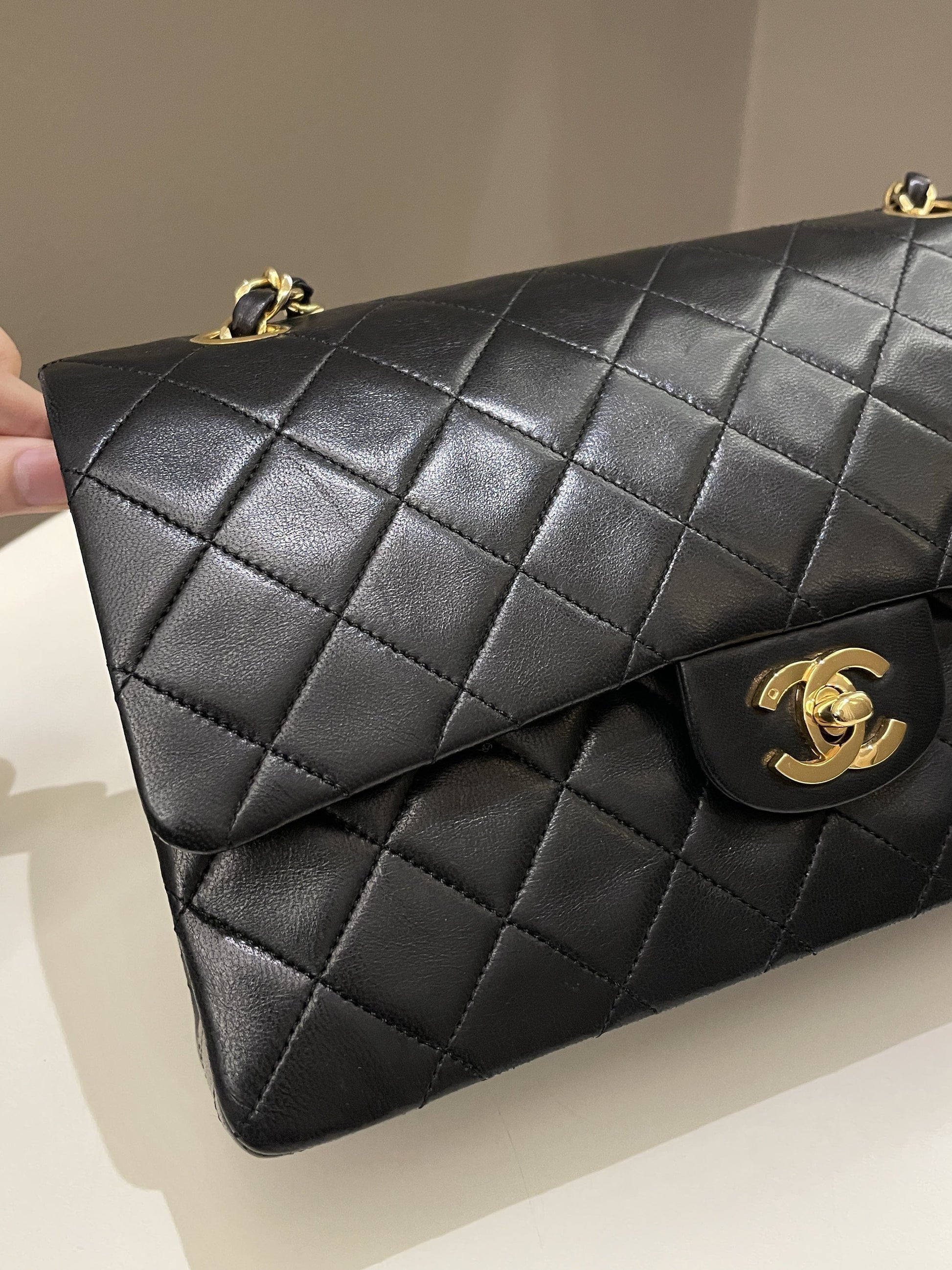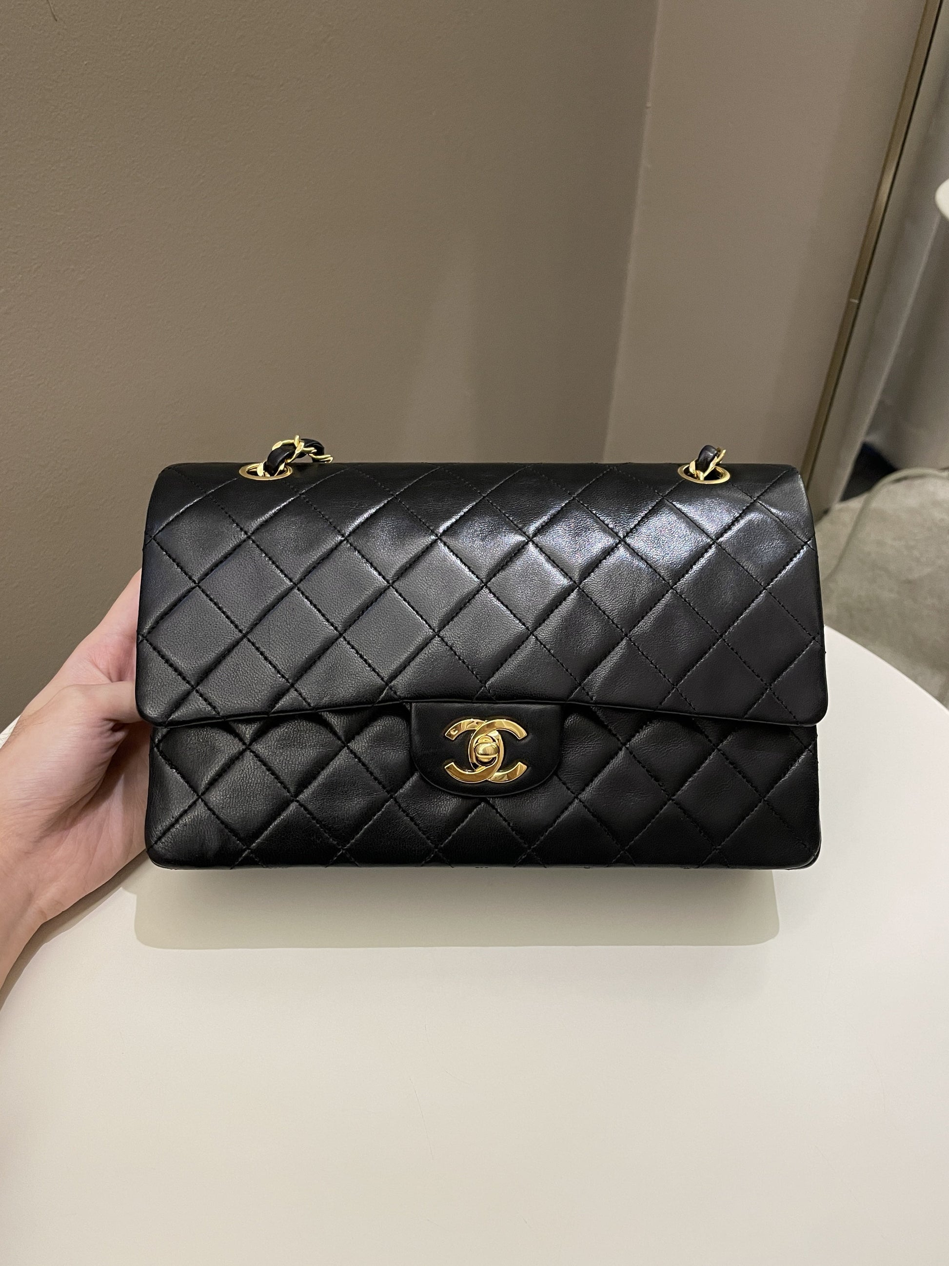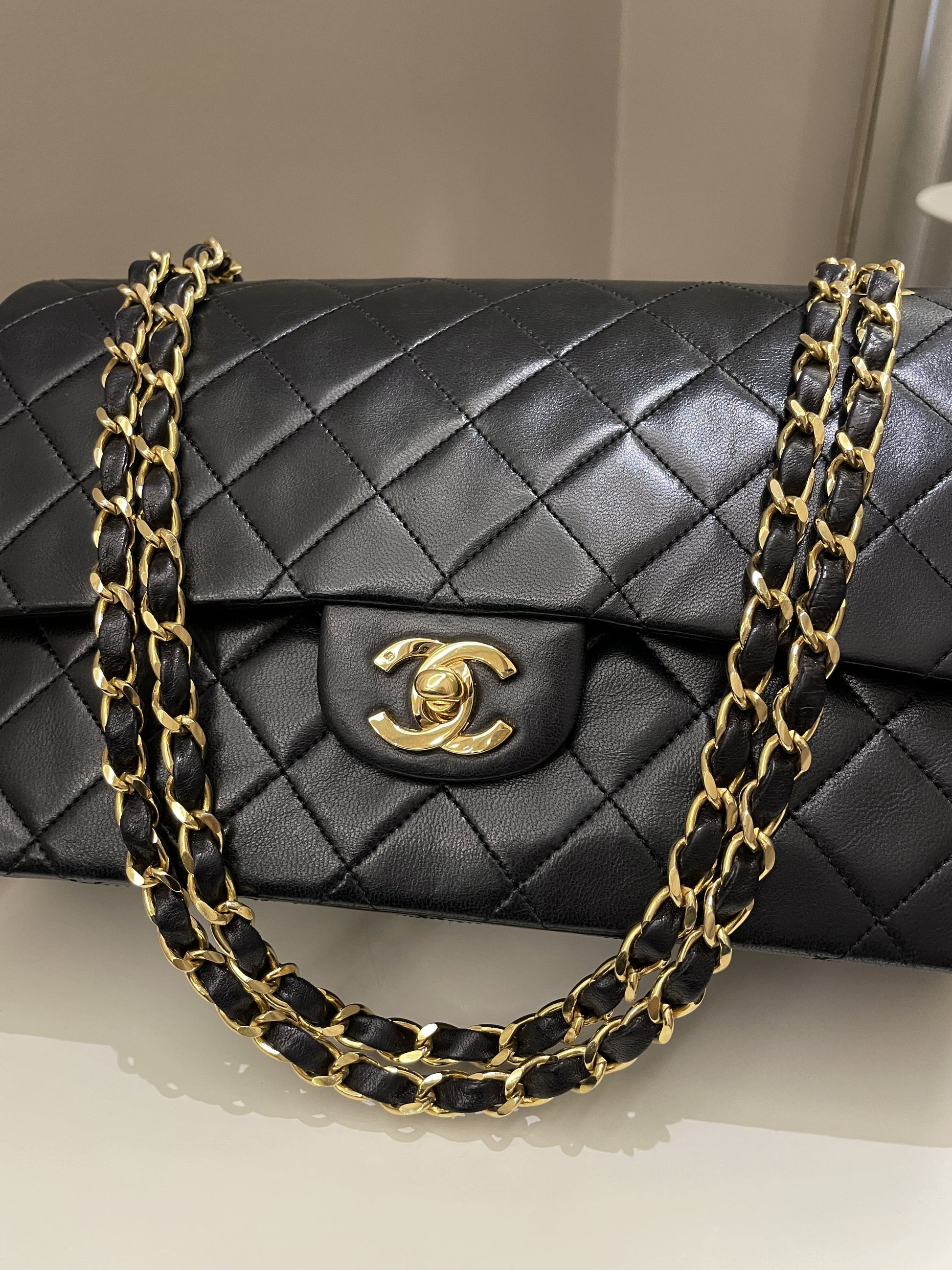 Chanel Vintage Classic Quilted Medium Double Flap Black Lambskin