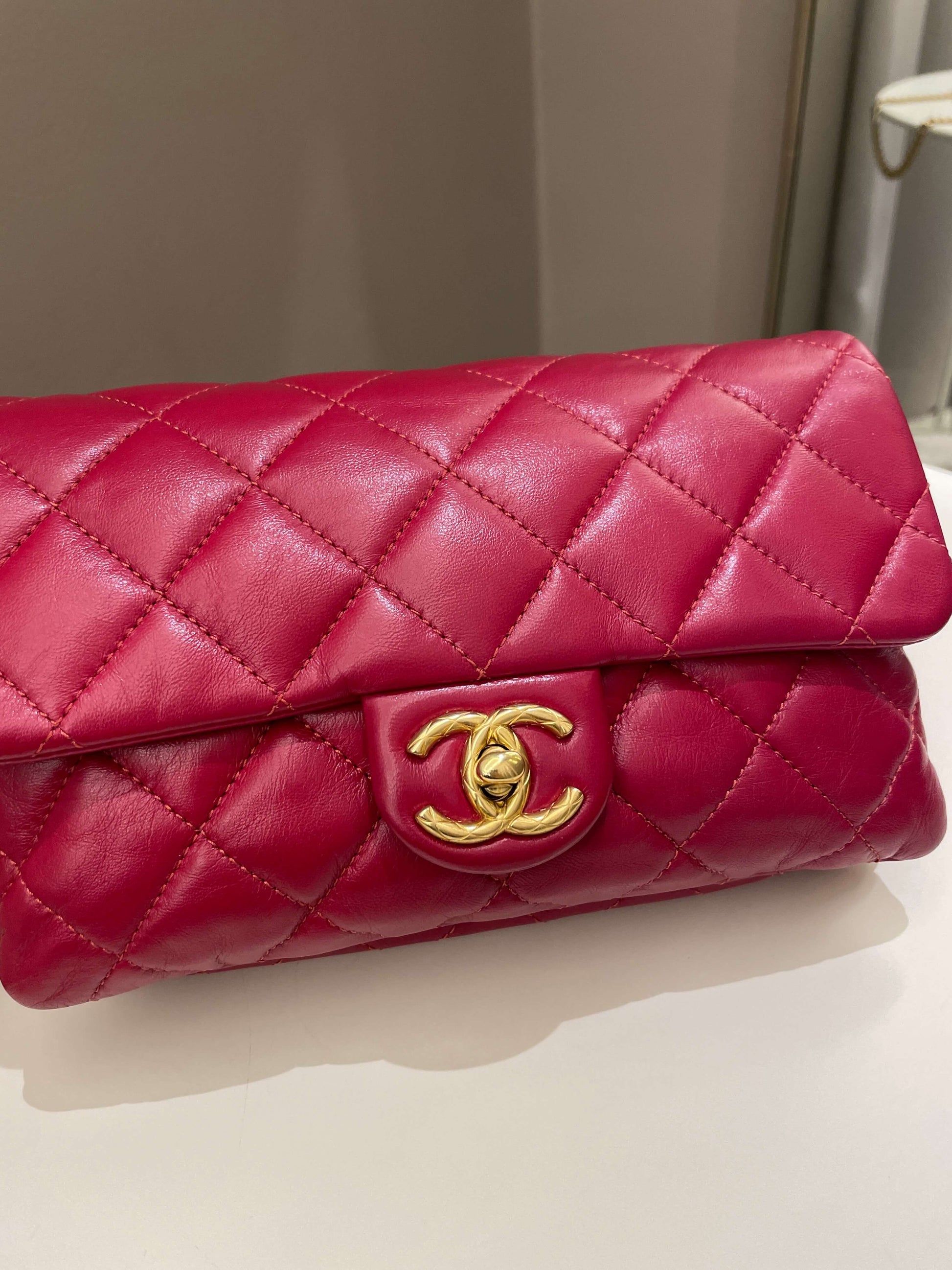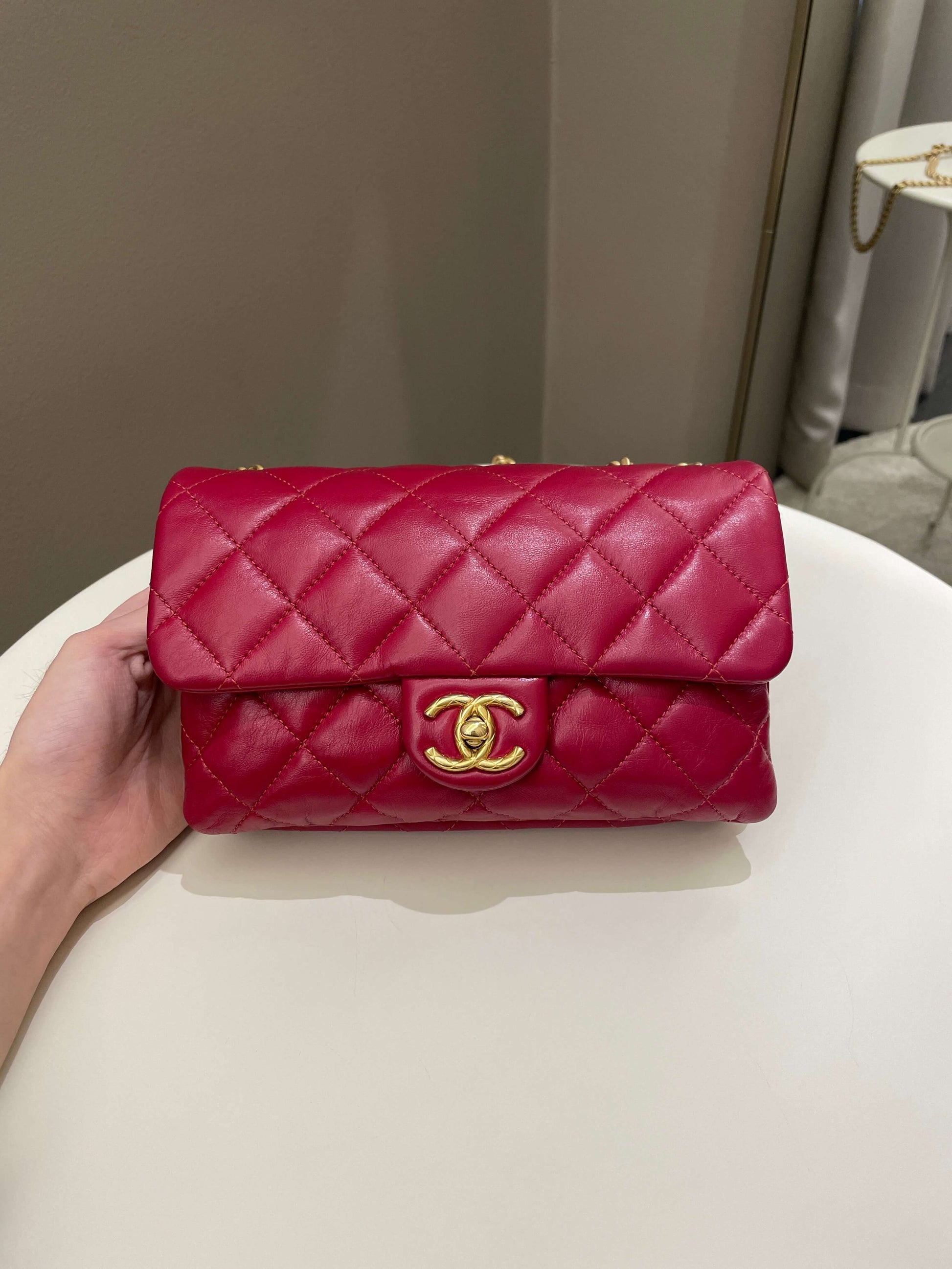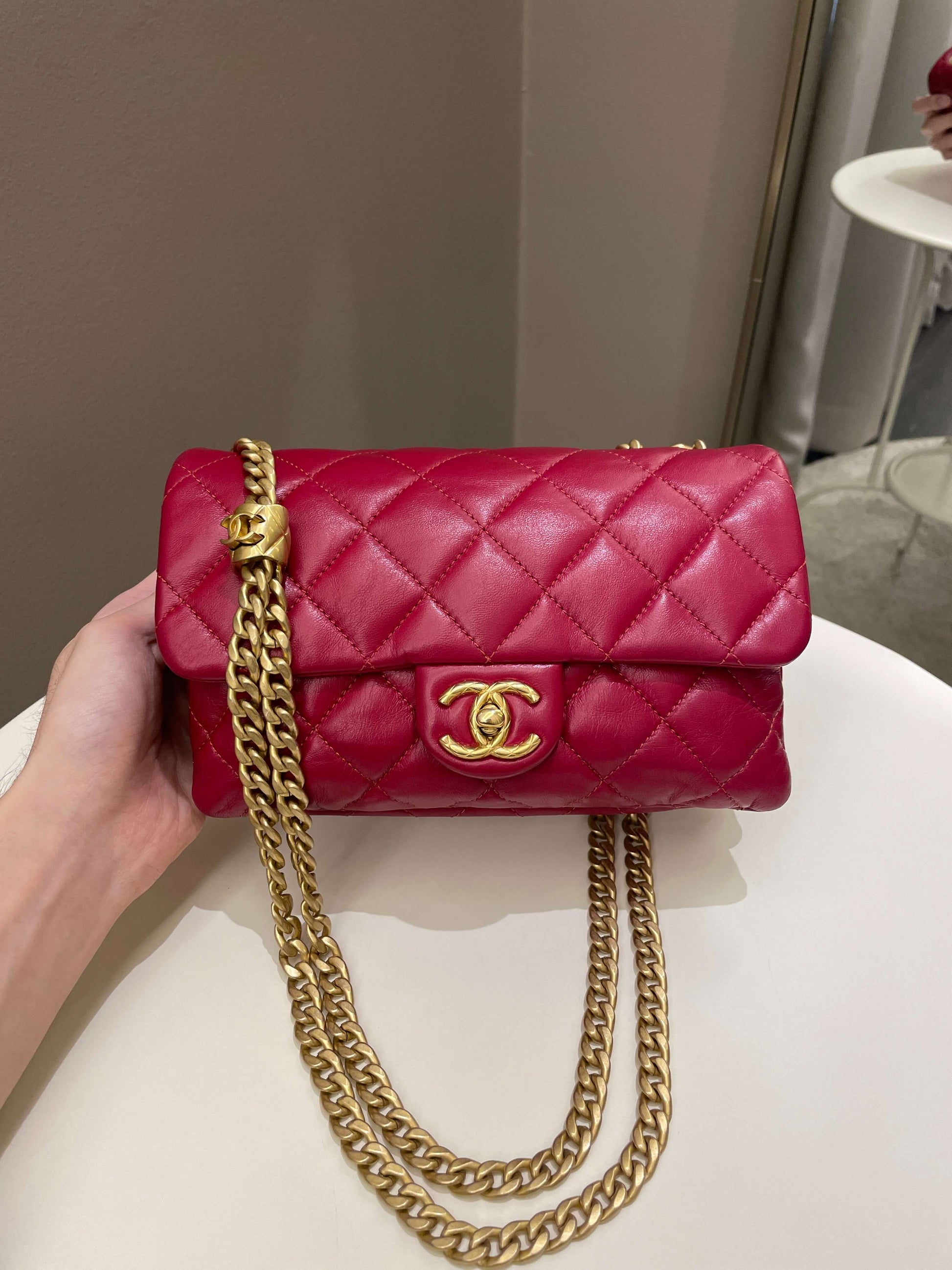 Chanel 22K Pearl Crush Flap Bag Red Aged