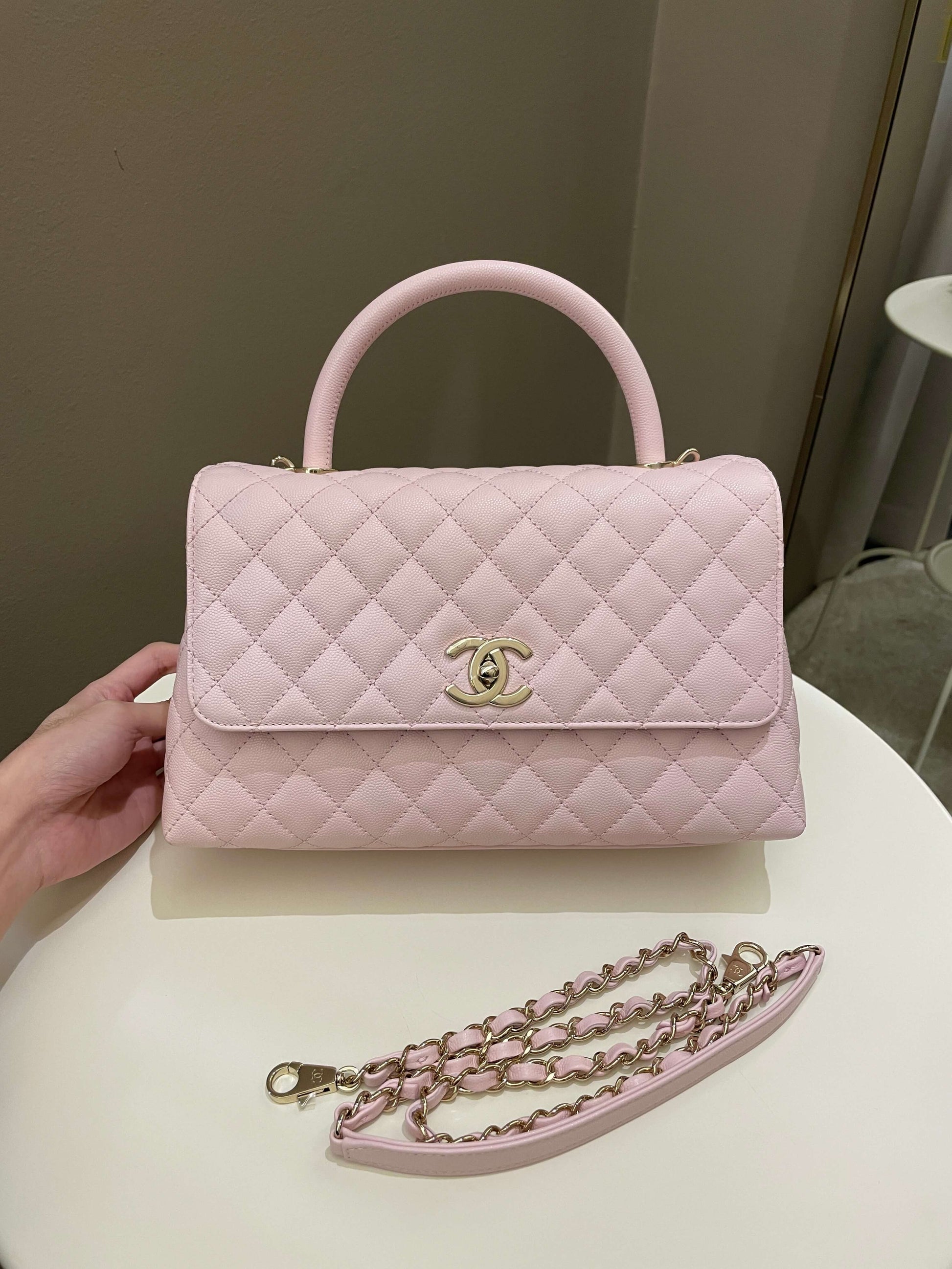 Chanel 22P Classic Quilted Coco Handle Rose Clair Lilac Caviar