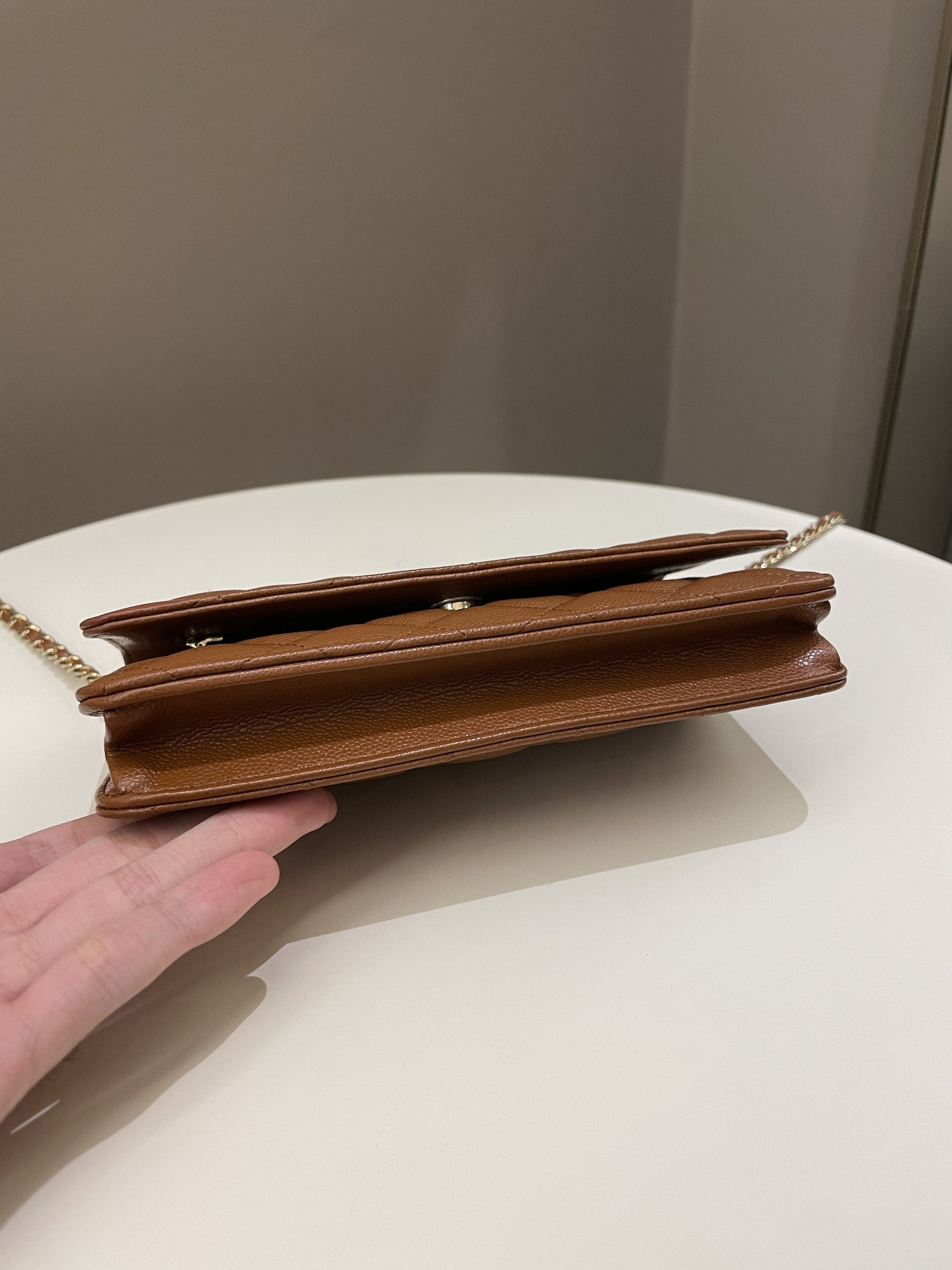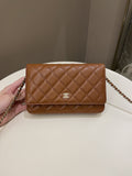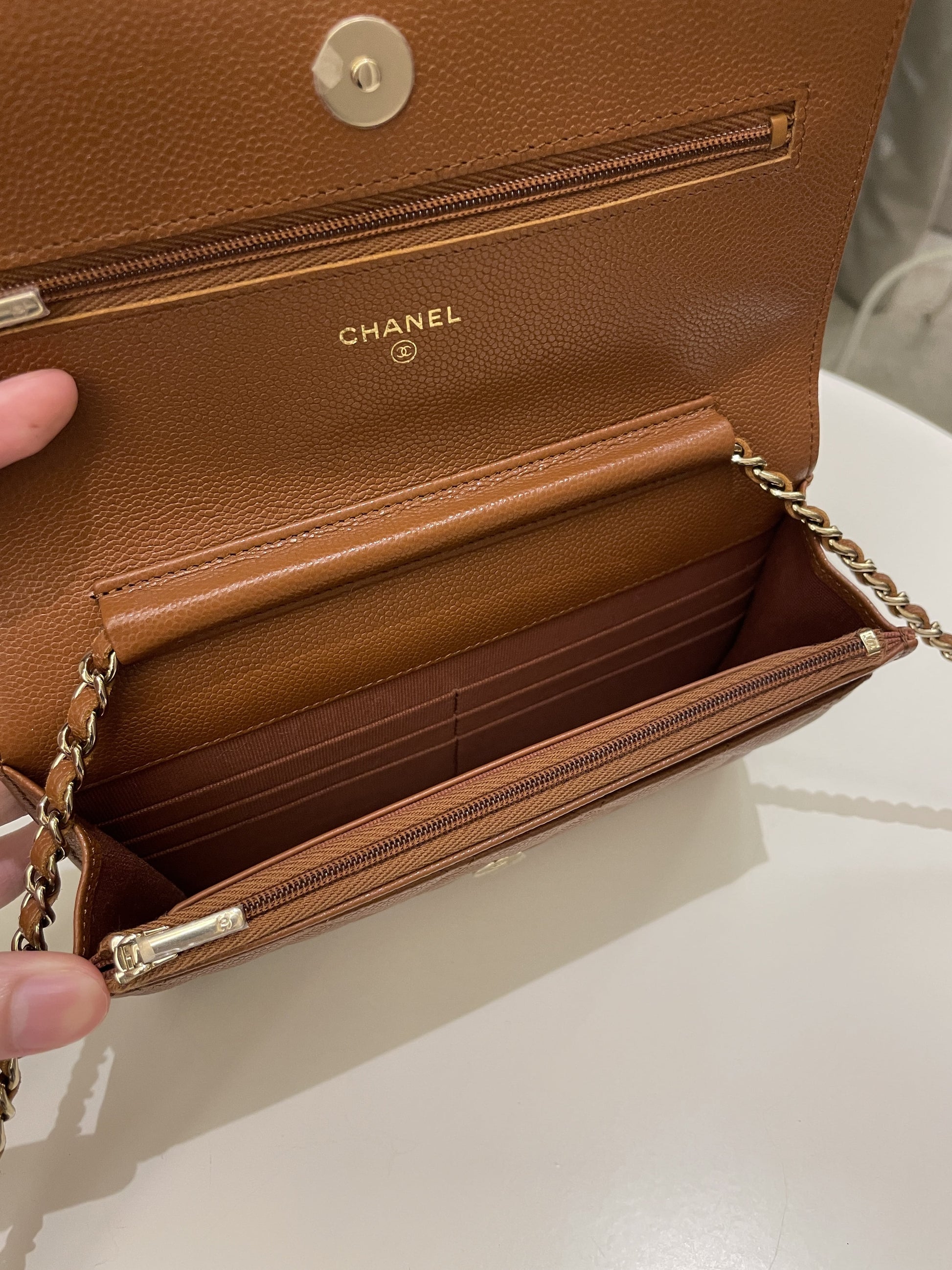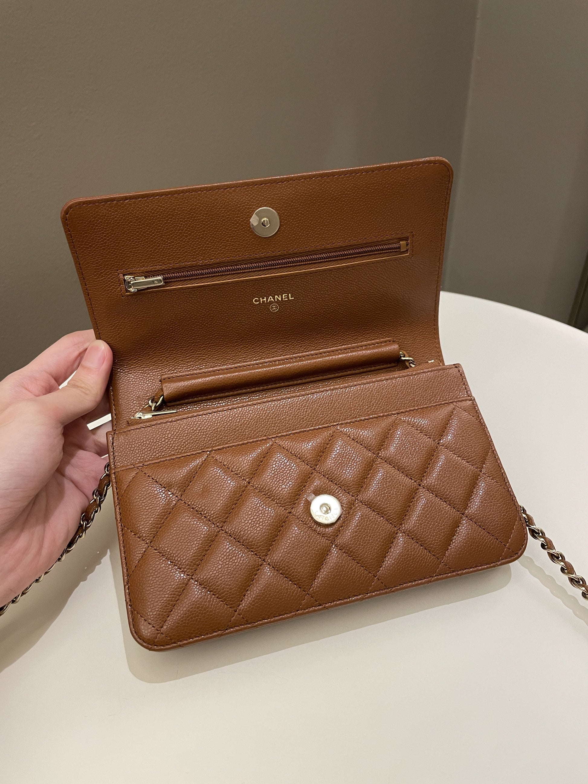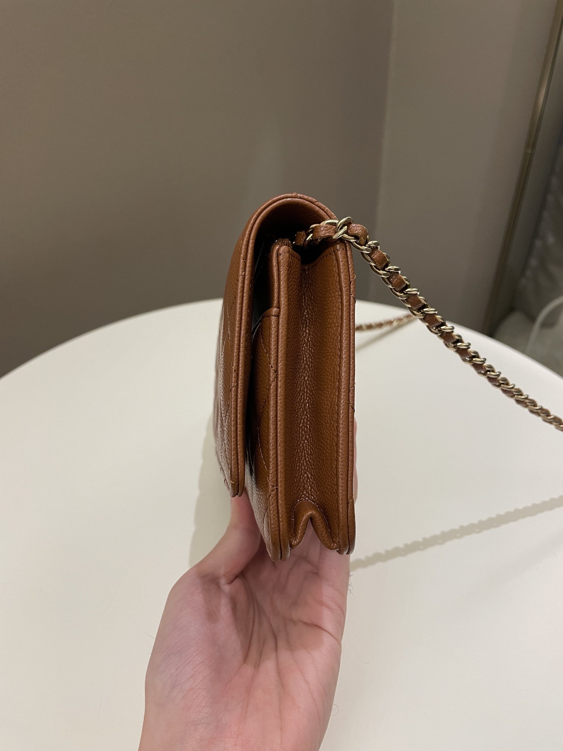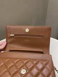 Chanel 23A Cc Quilted Wallet on Chain Tan Brown Caviar