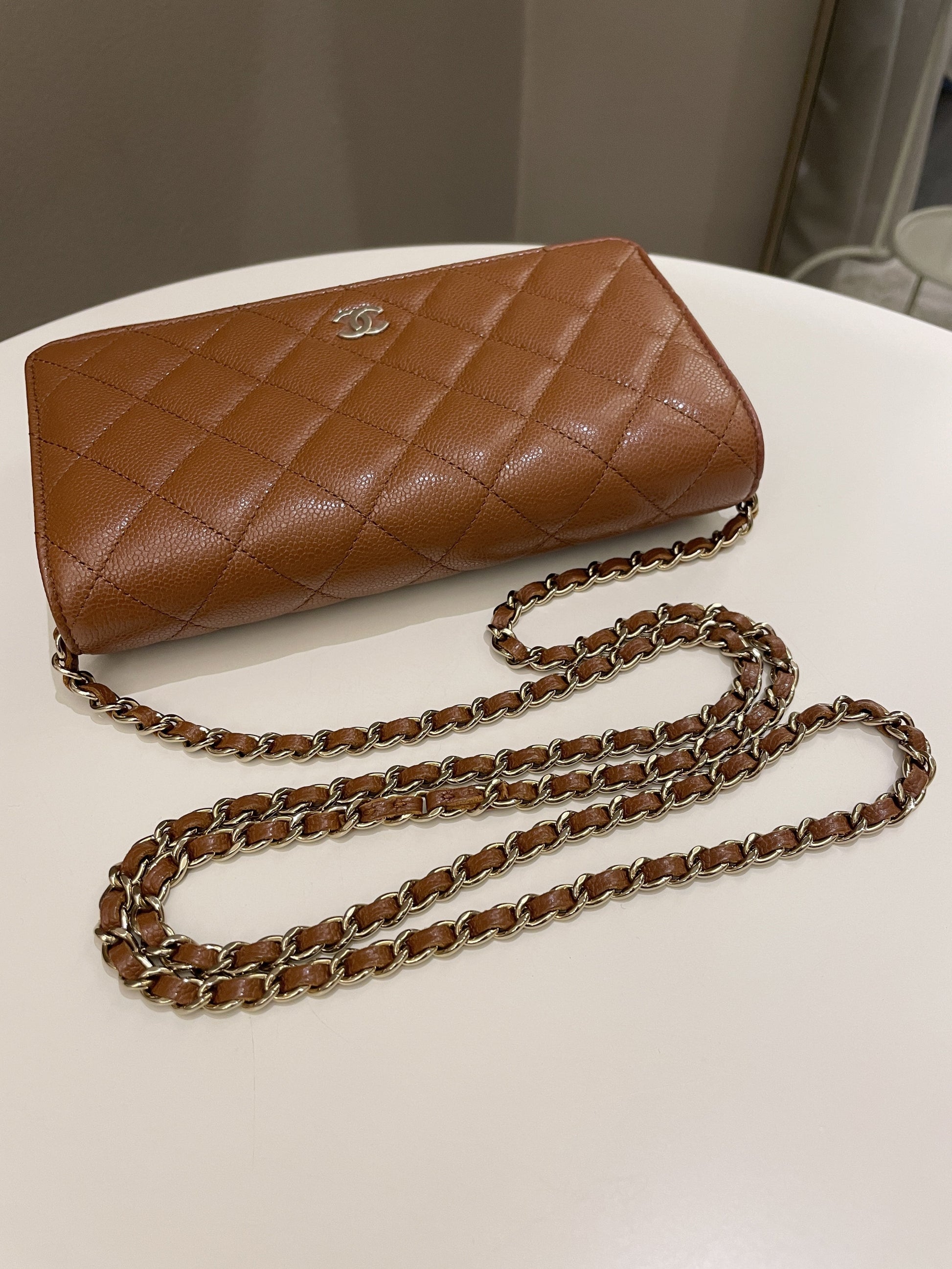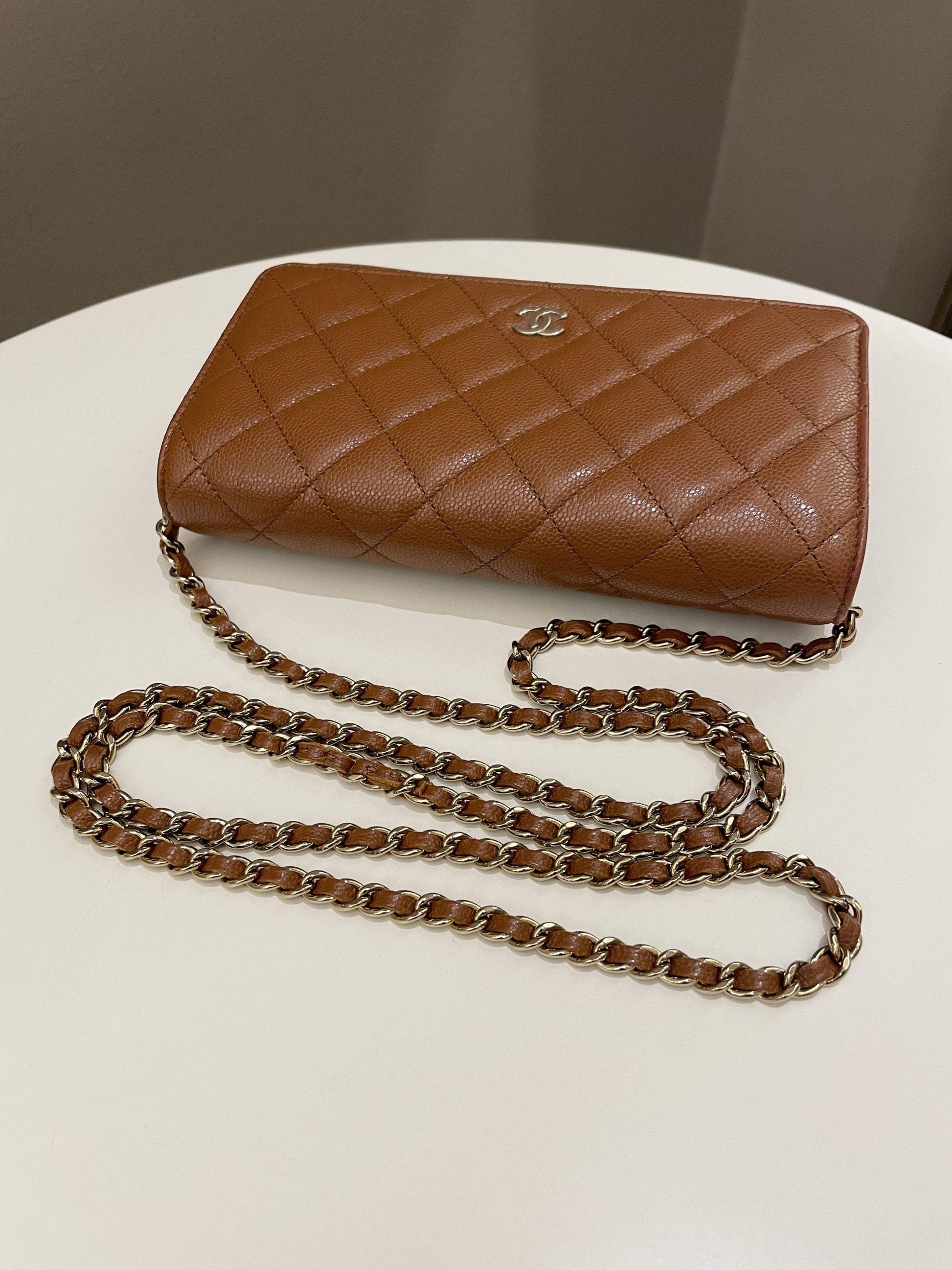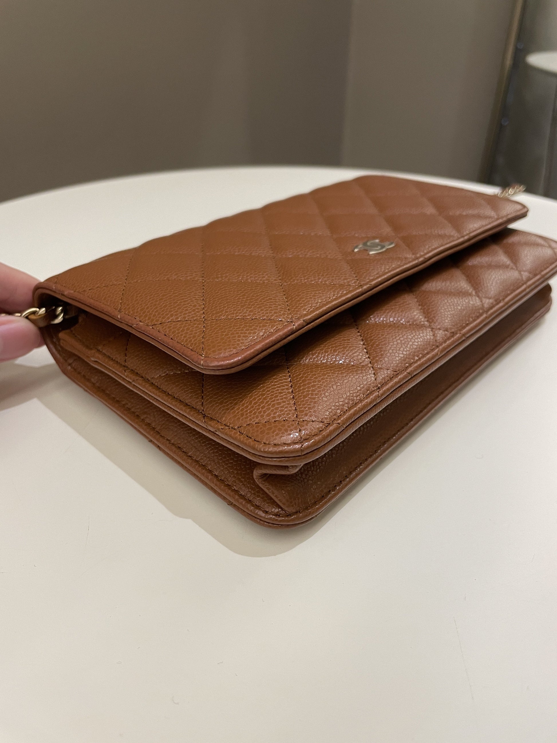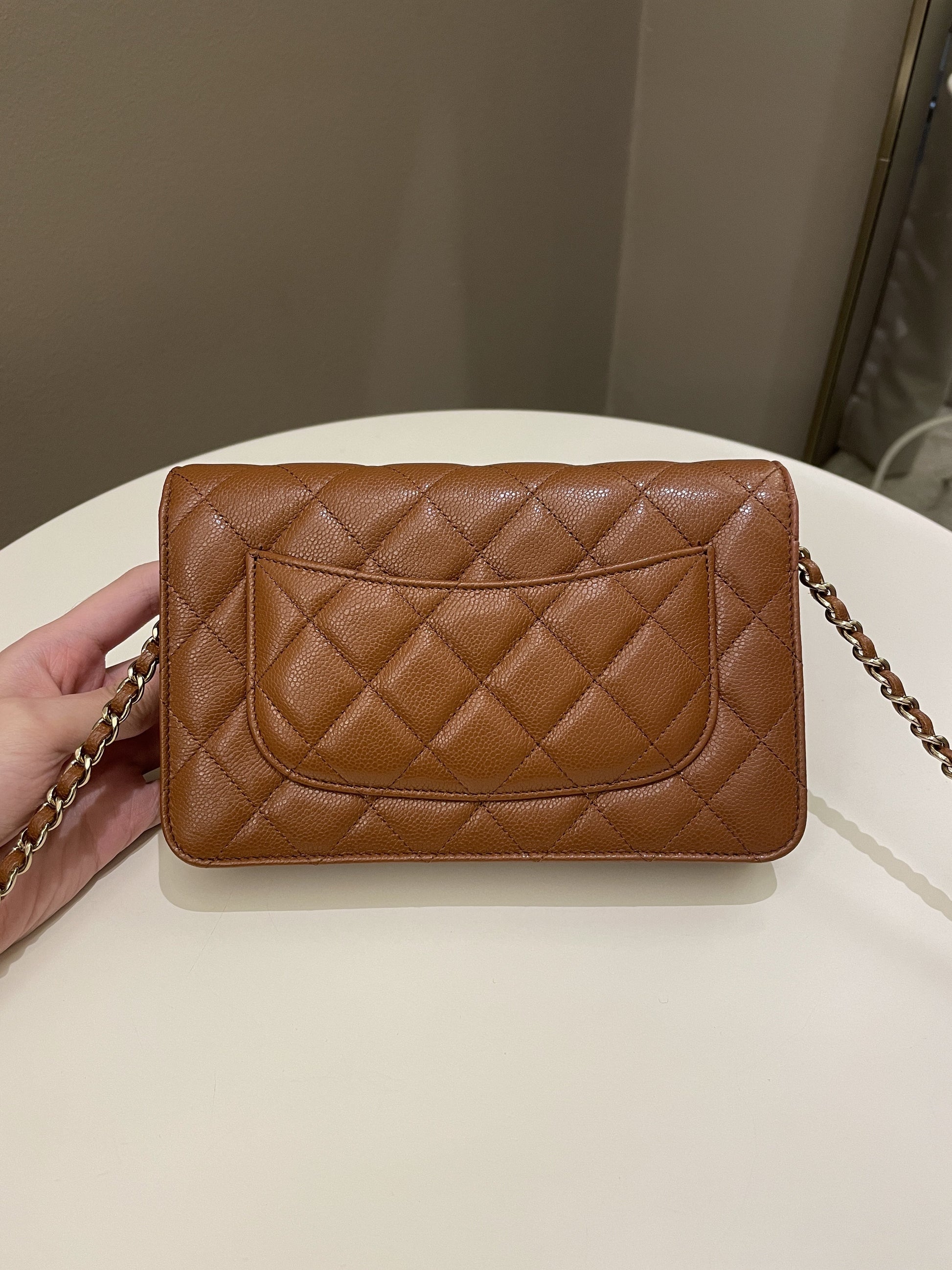 Chanel 23A Cc Quilted Wallet on Chain Tan Brown Caviar