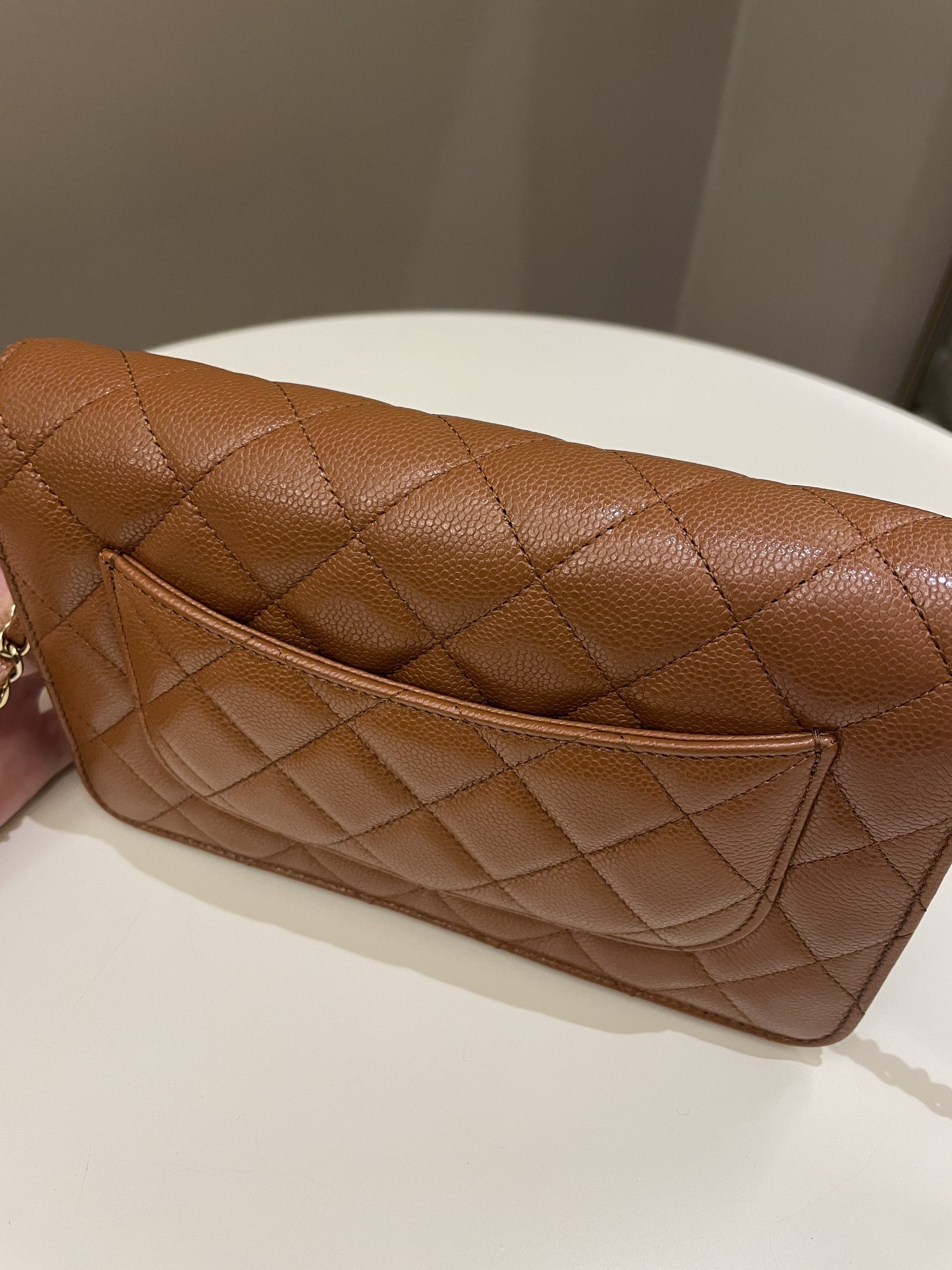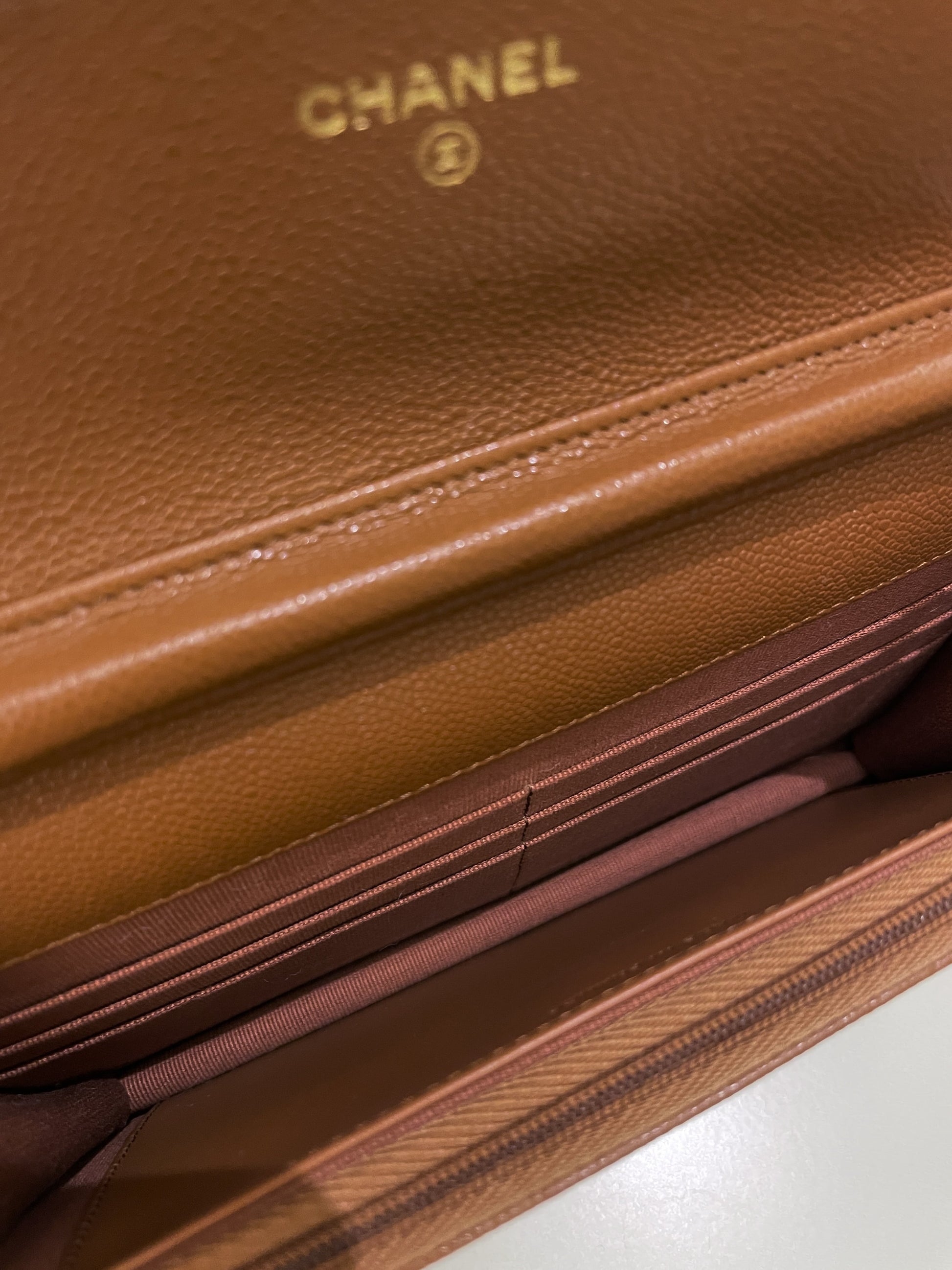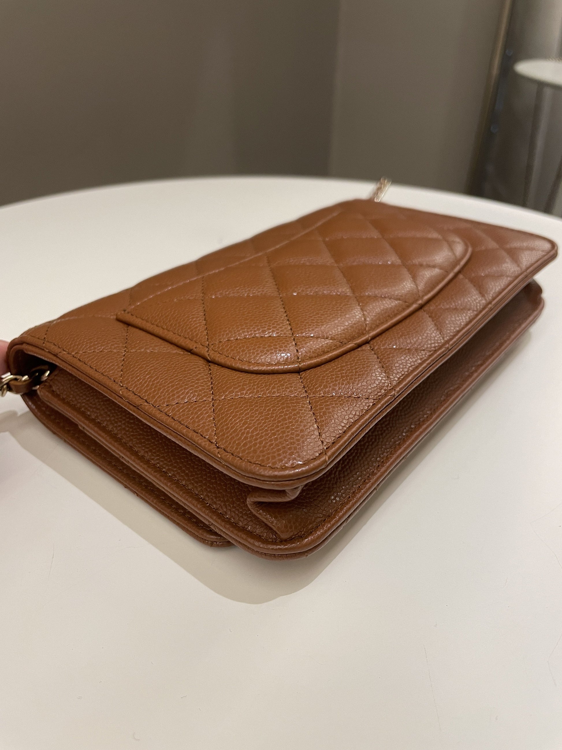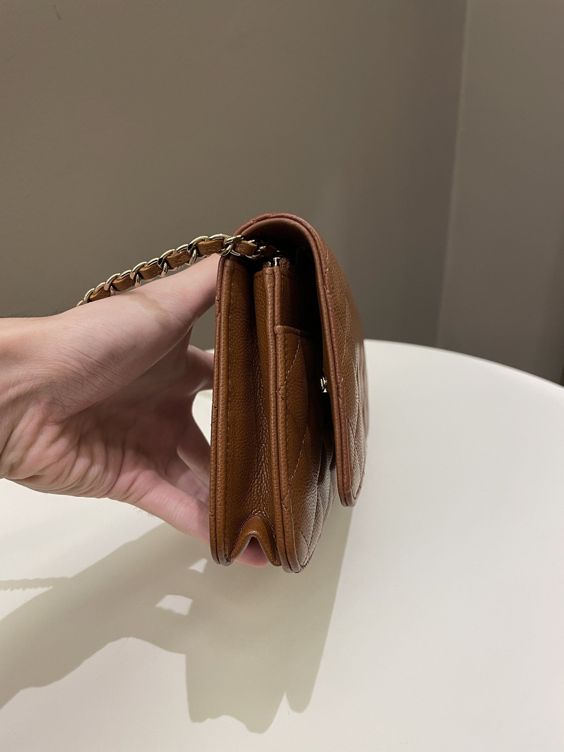 Chanel 23A Cc Quilted Wallet on Chain Tan Brown Caviar