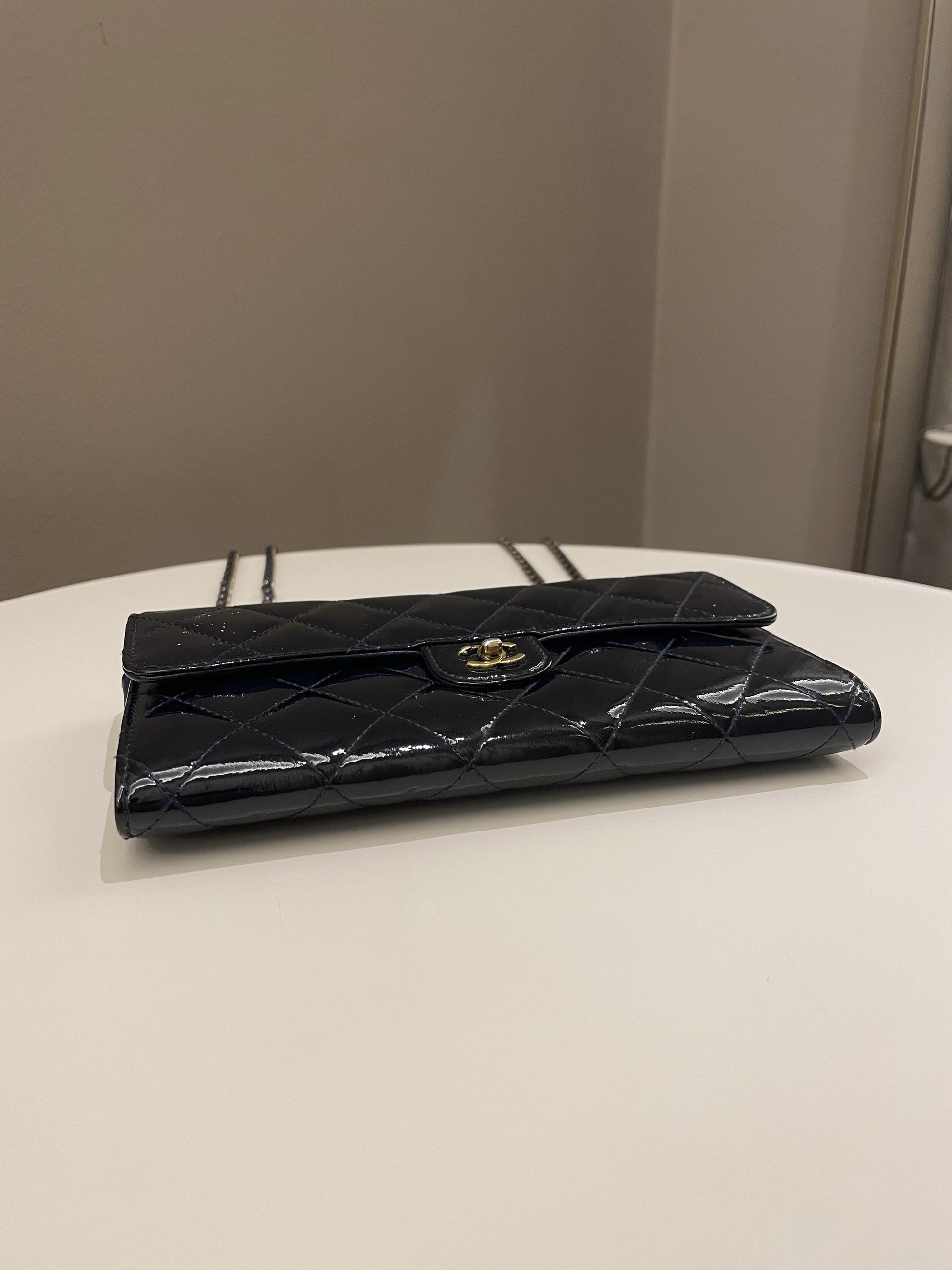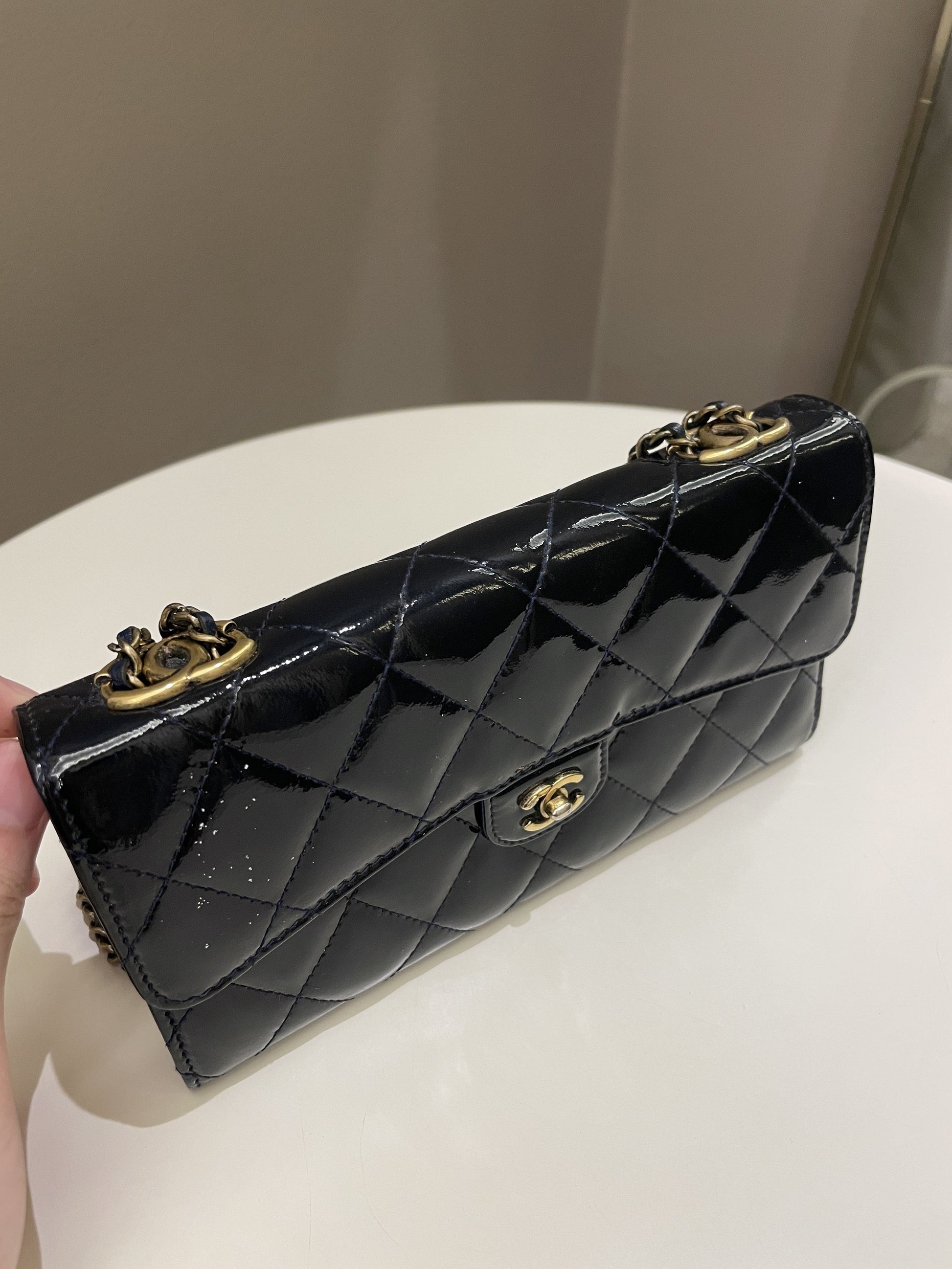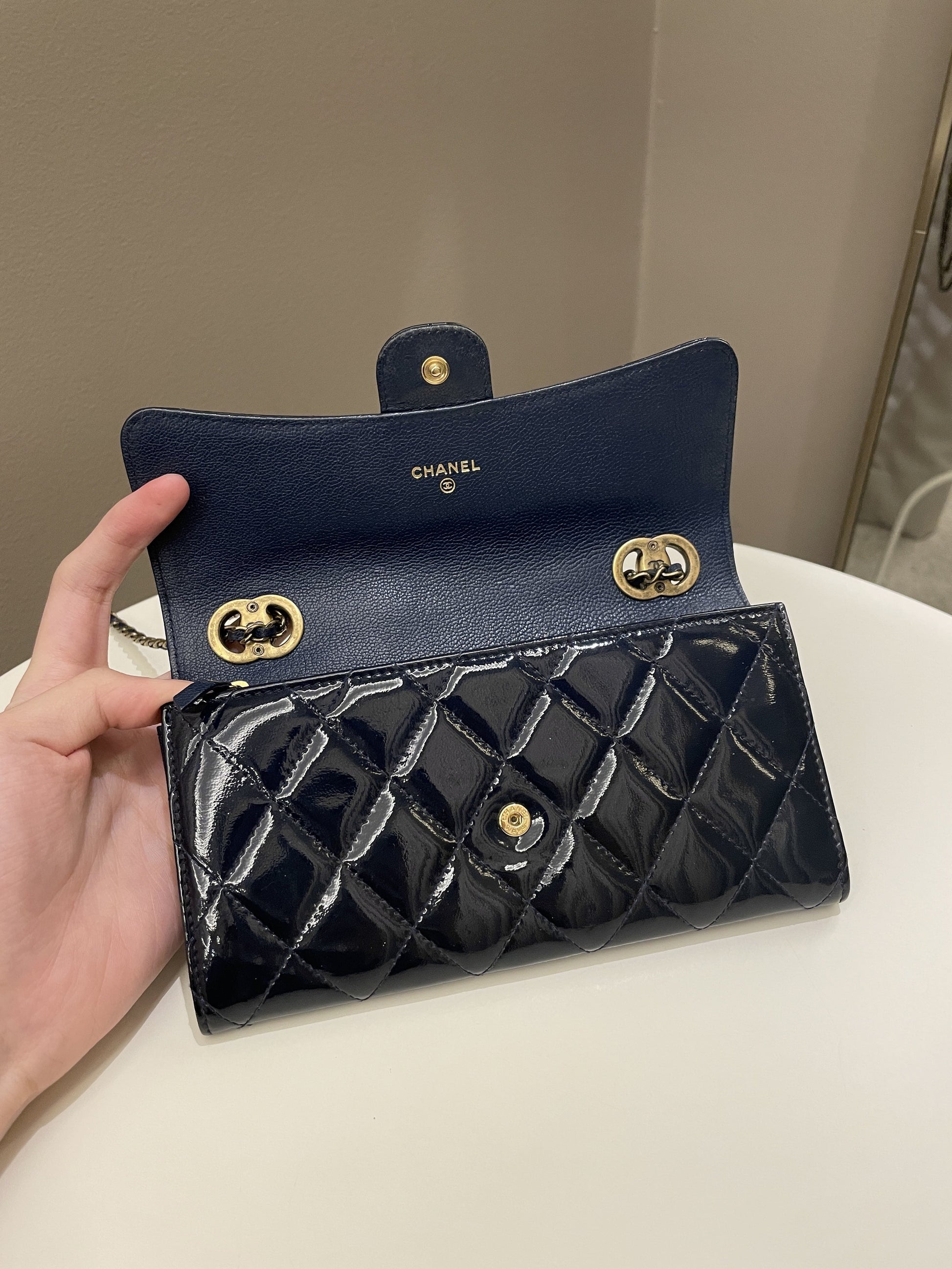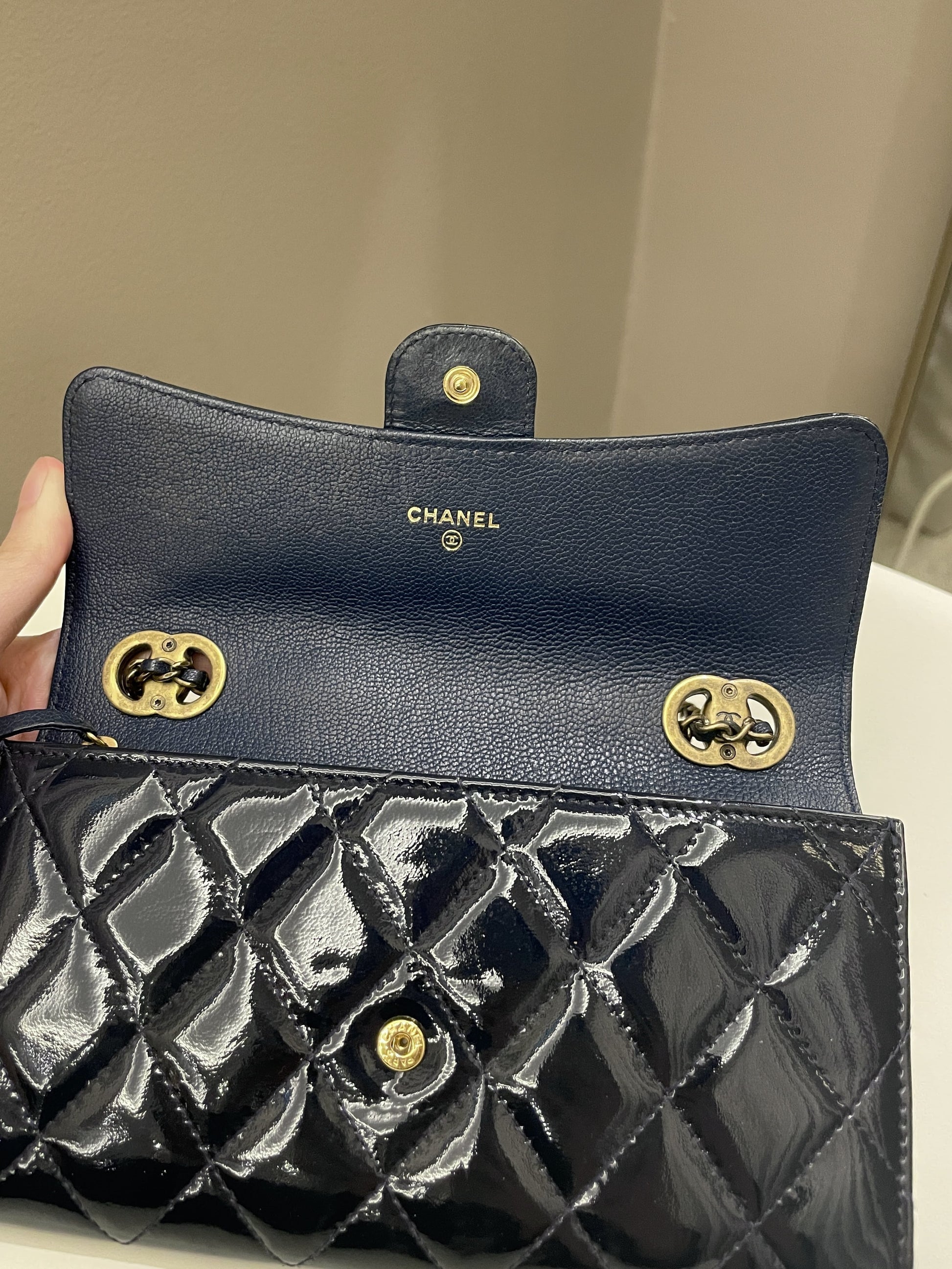 Chanel Double C Grommet Clutch On Chain Midnight Blue Patent