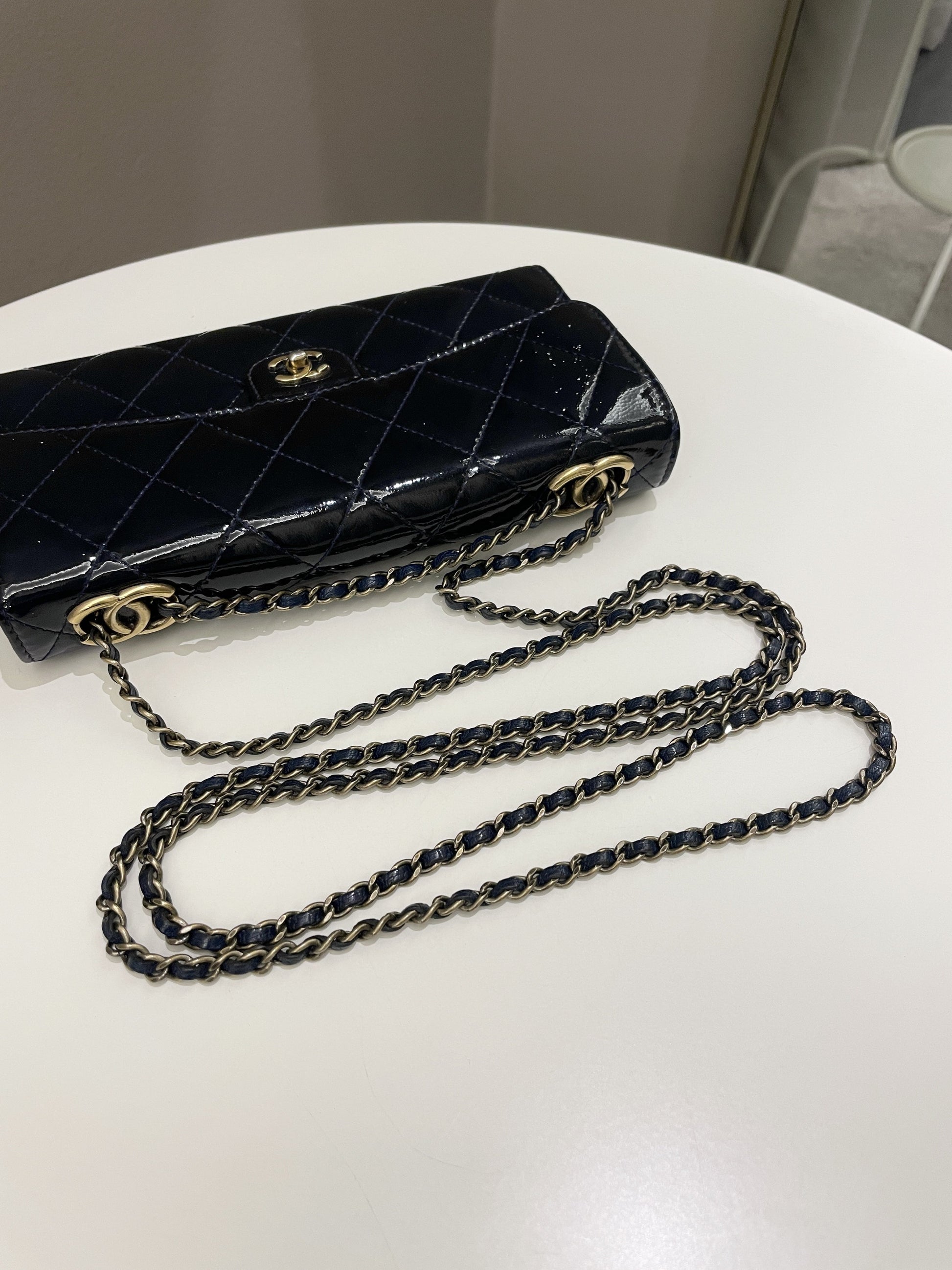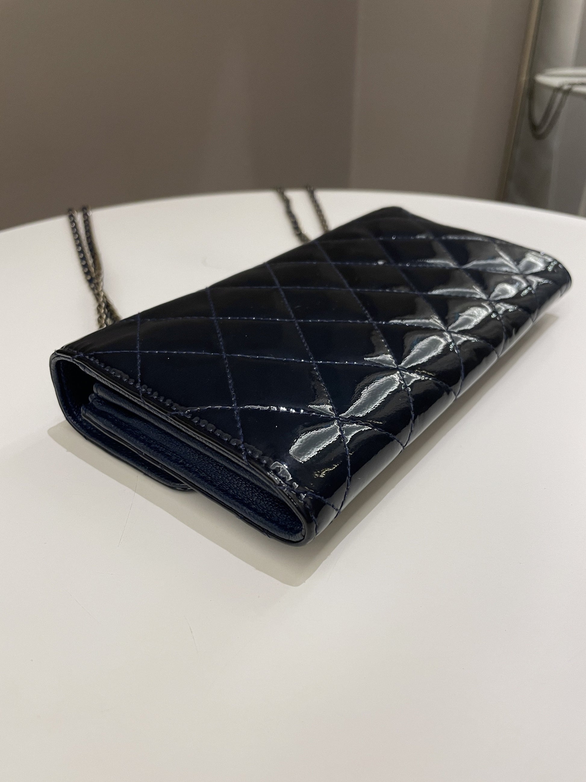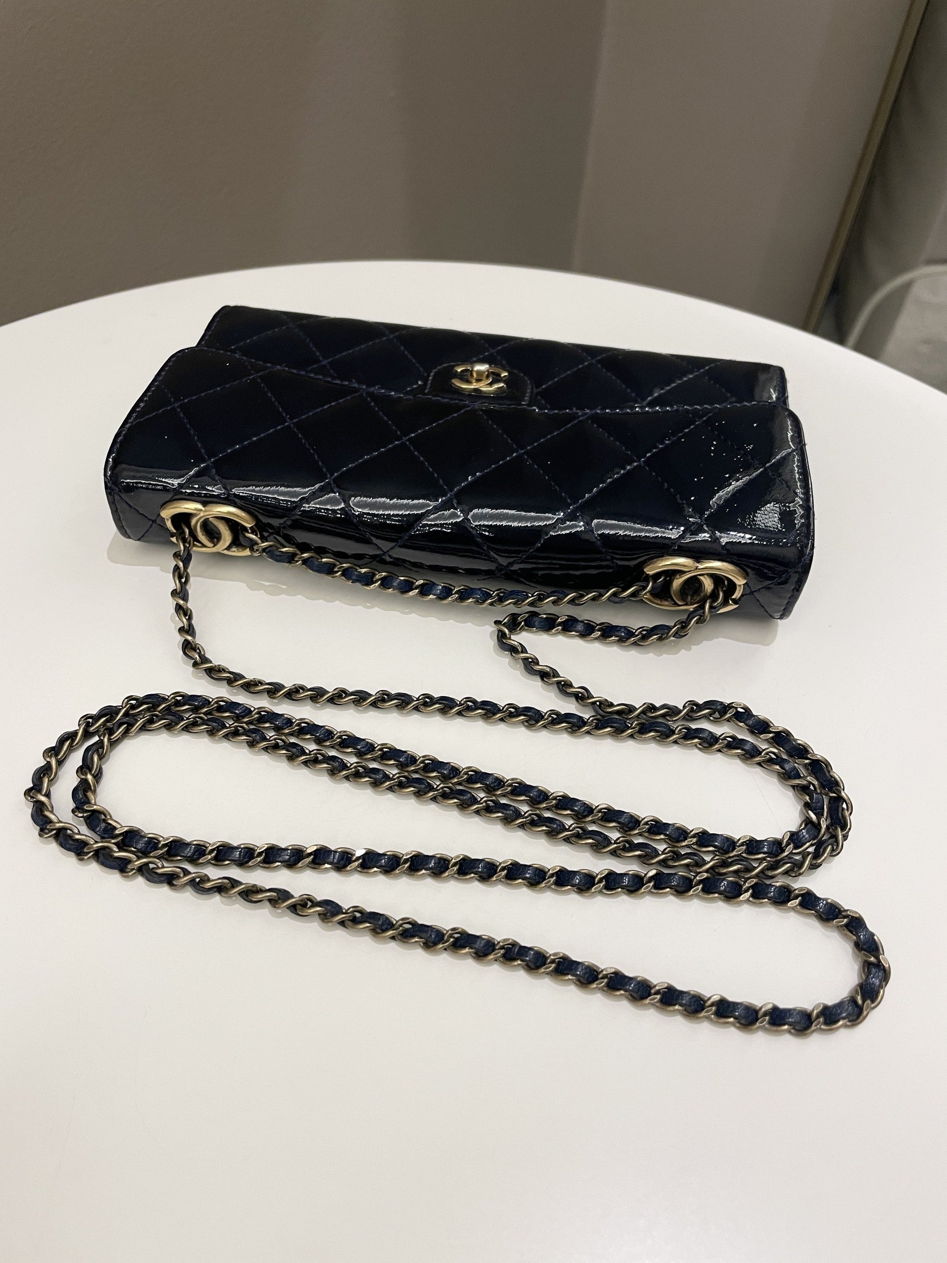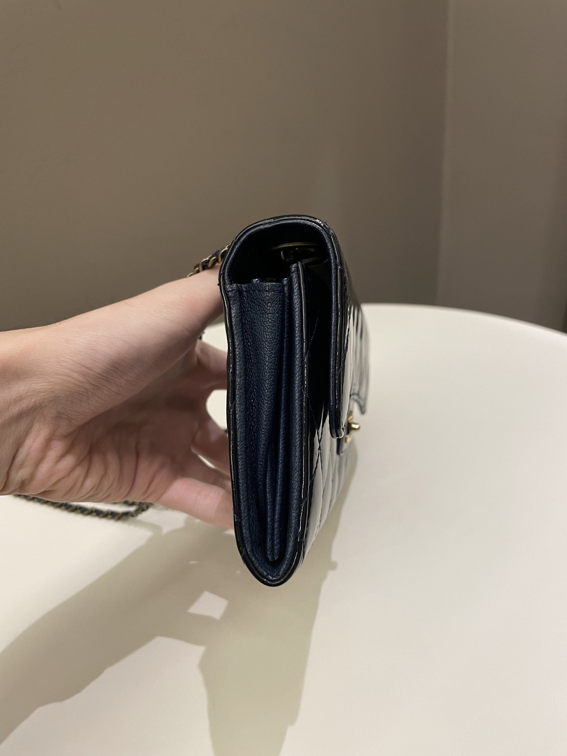 Chanel Double C Grommet Clutch On Chain Midnight Blue Patent