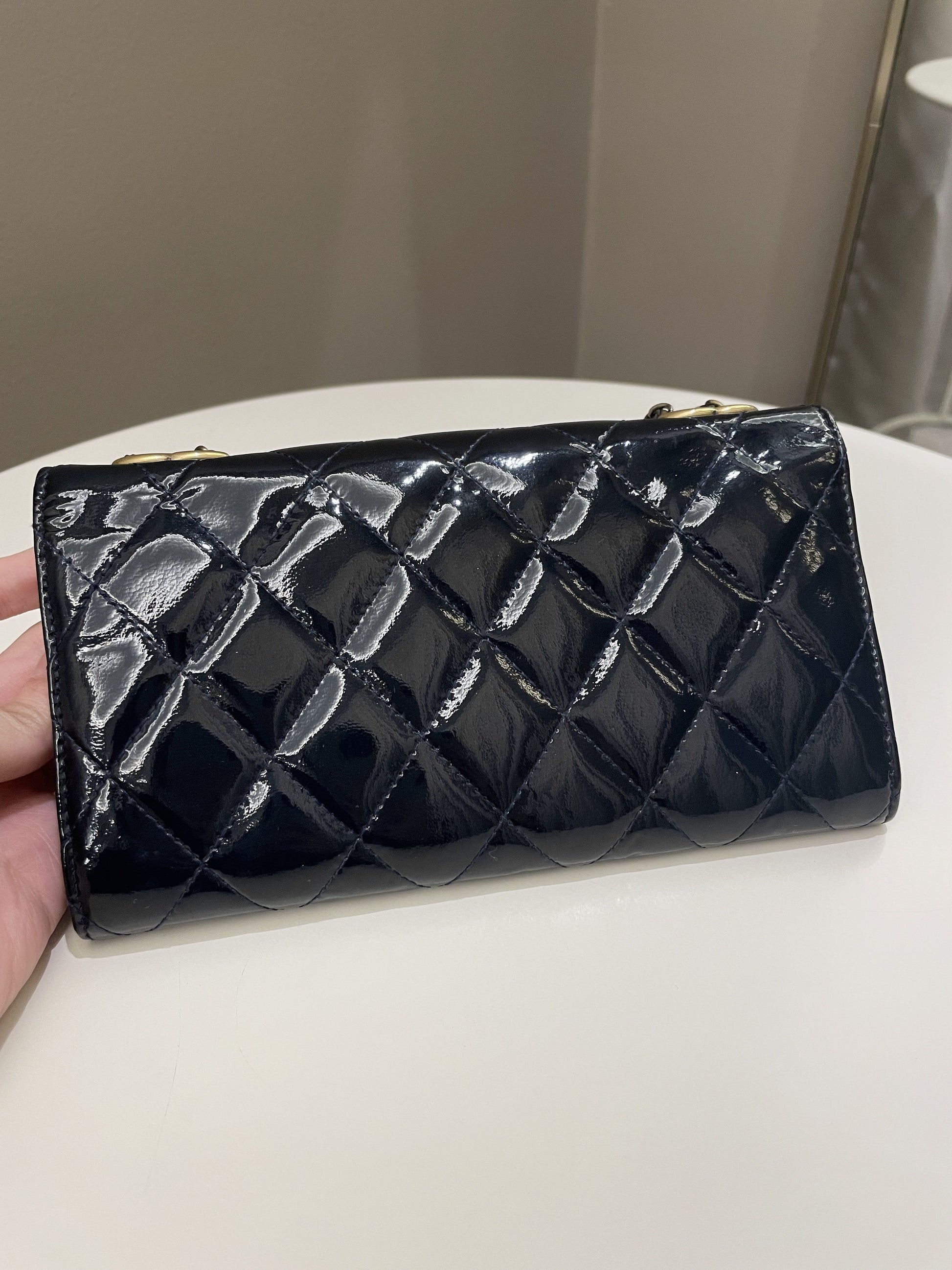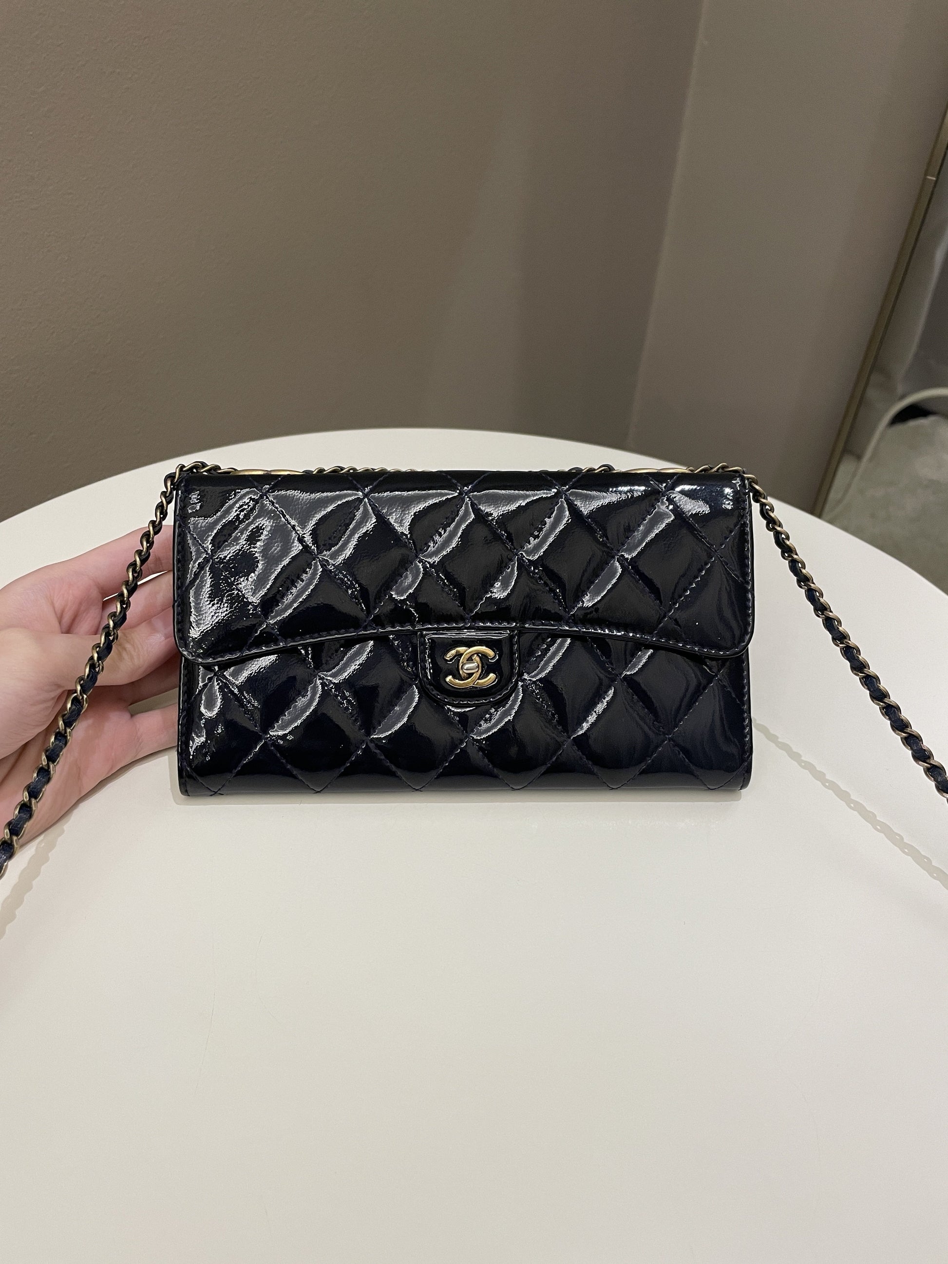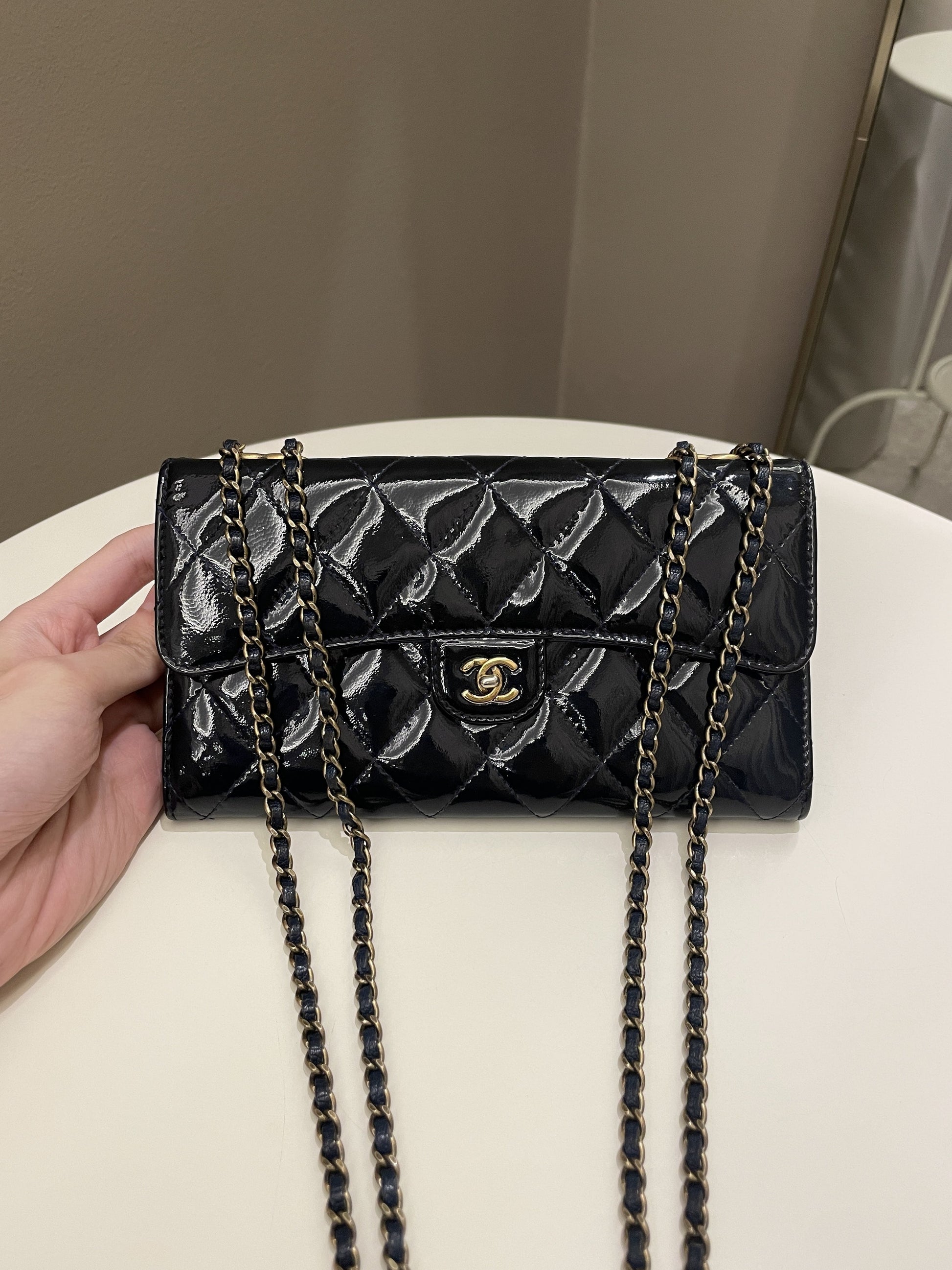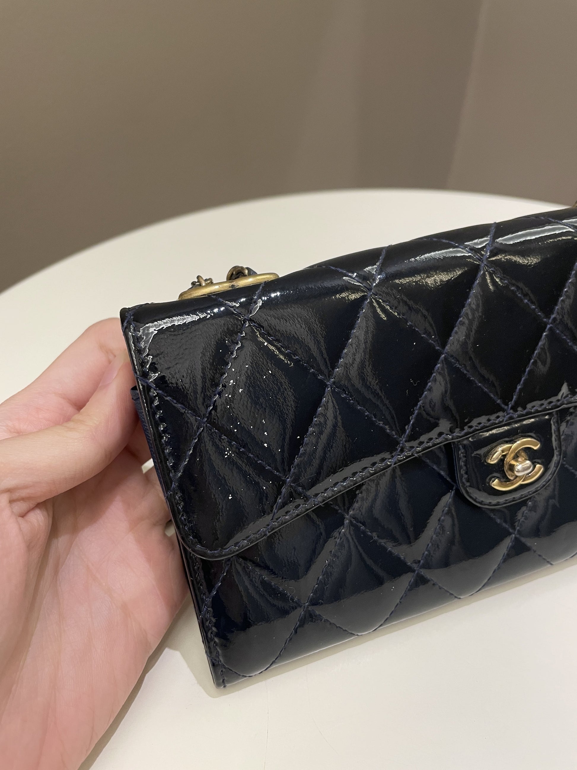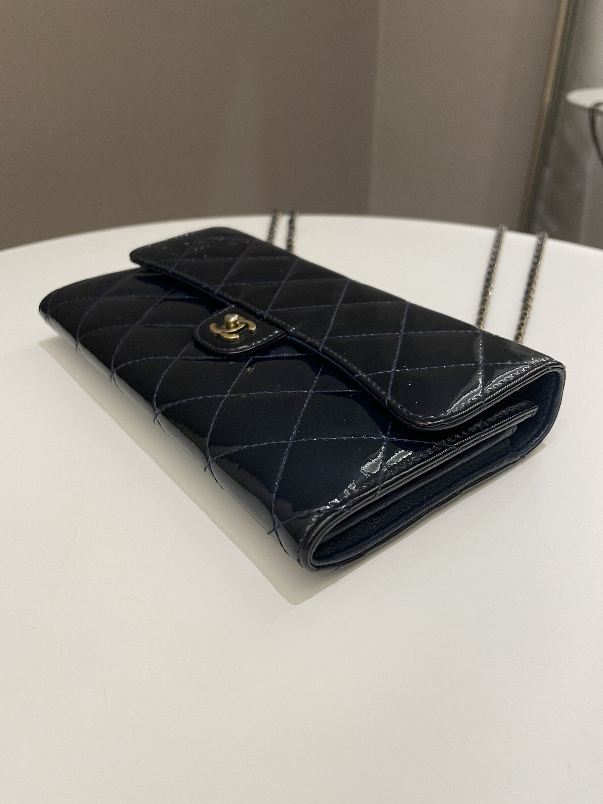 Chanel Double C Grommet Clutch On Chain Midnight Blue Patent