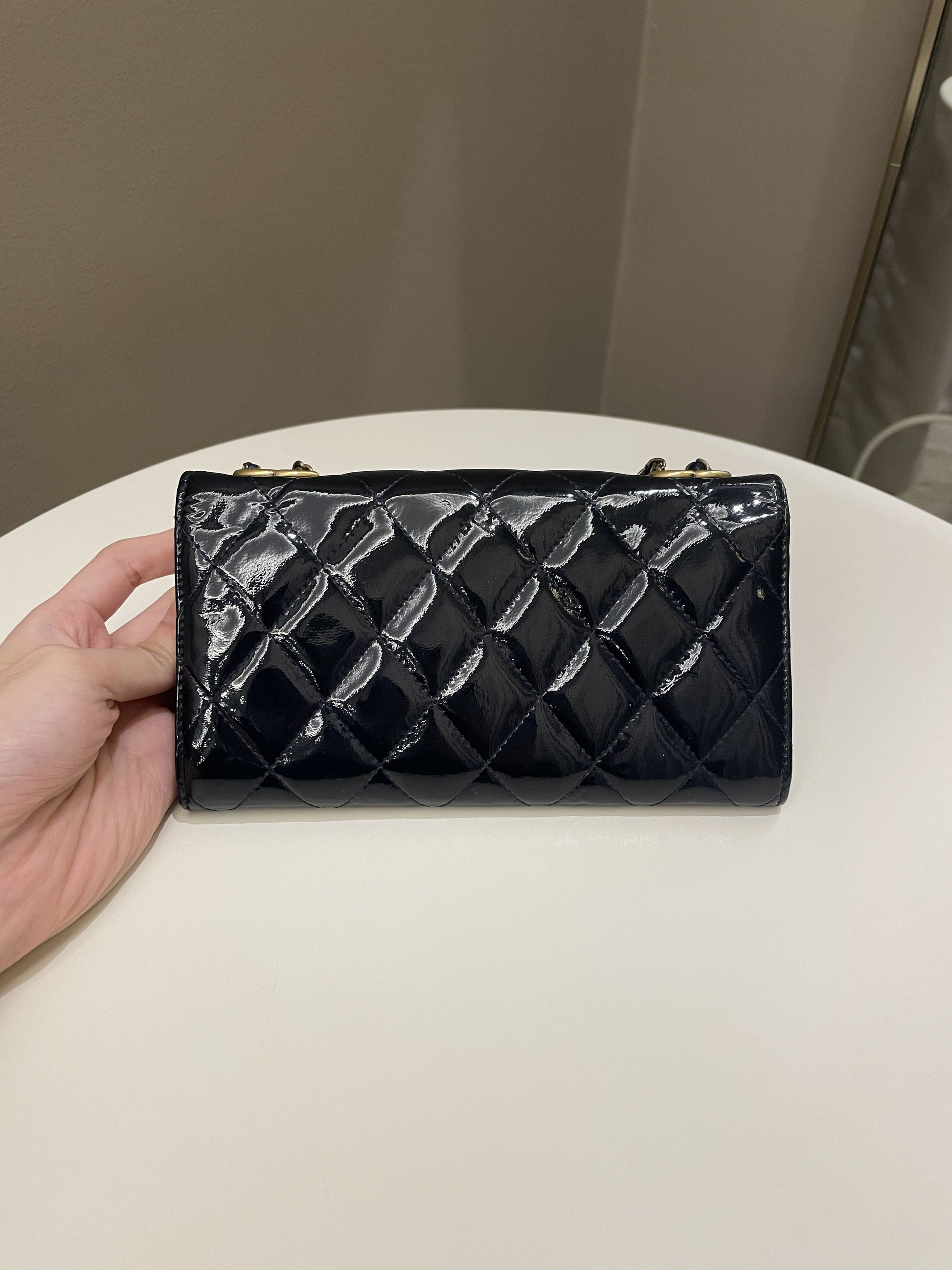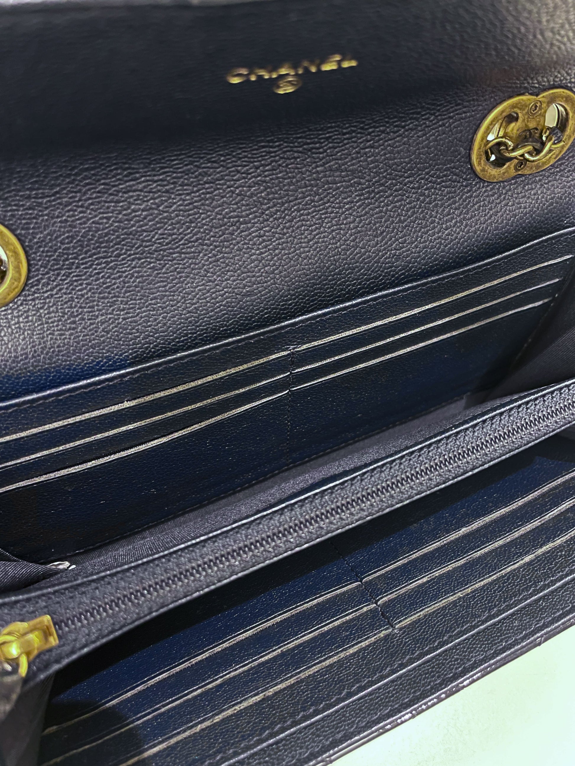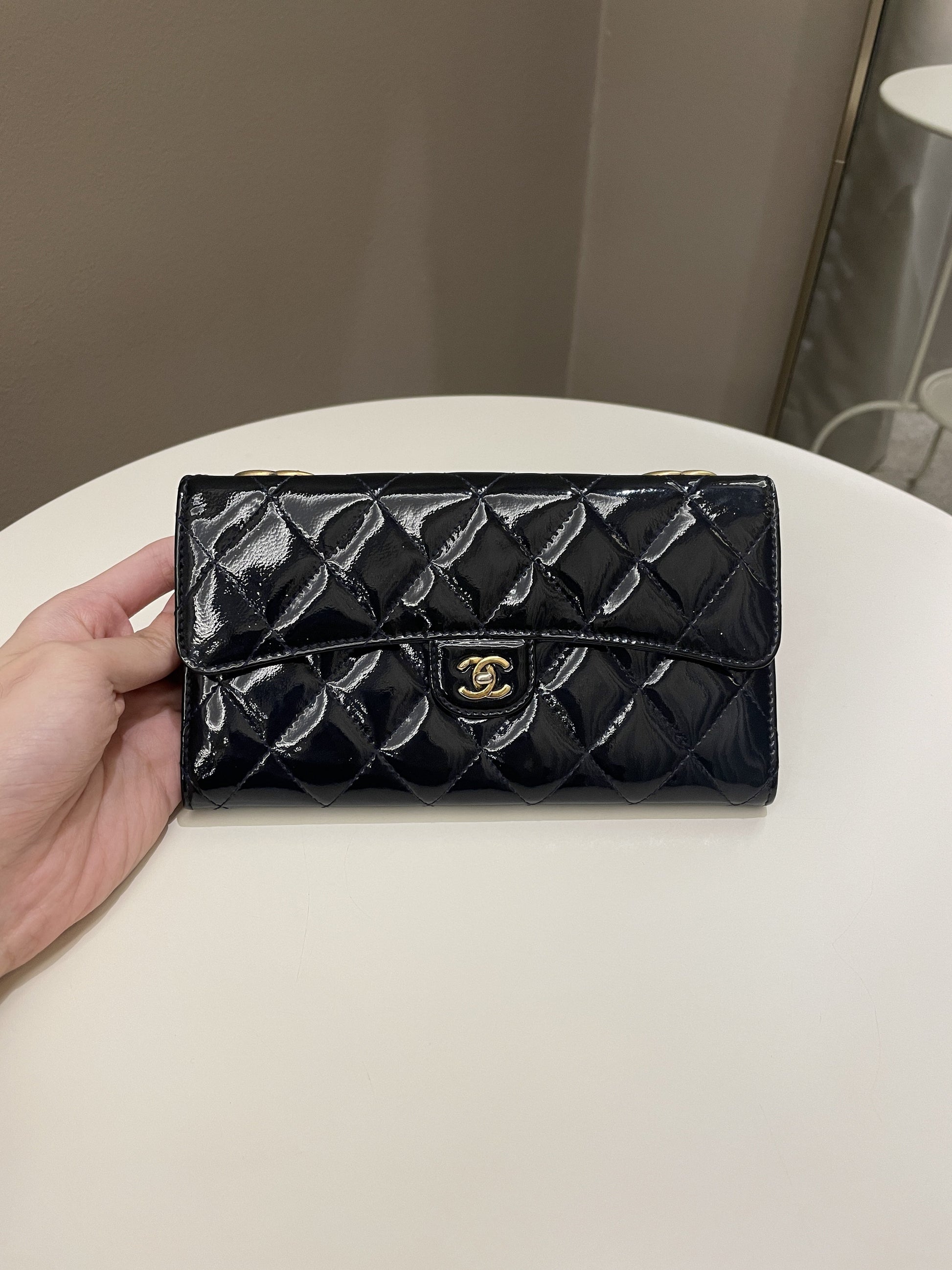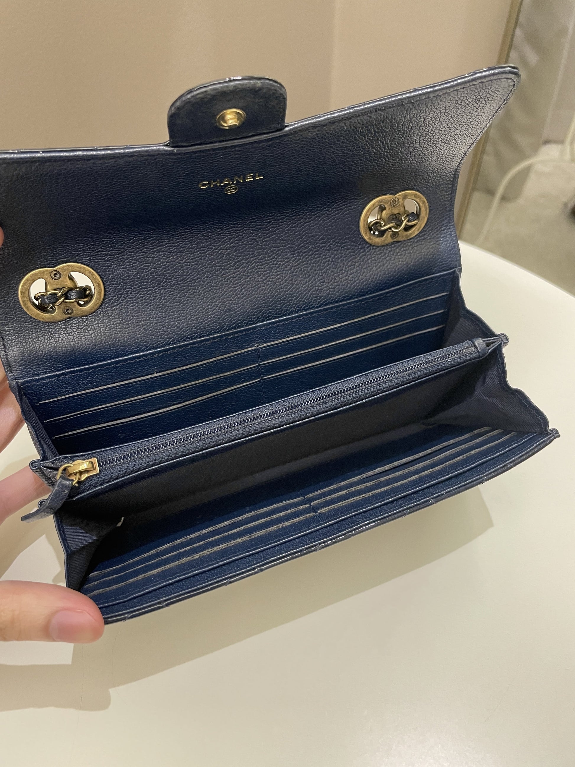 Chanel Double C Grommet Clutch On Chain Midnight Blue Patent