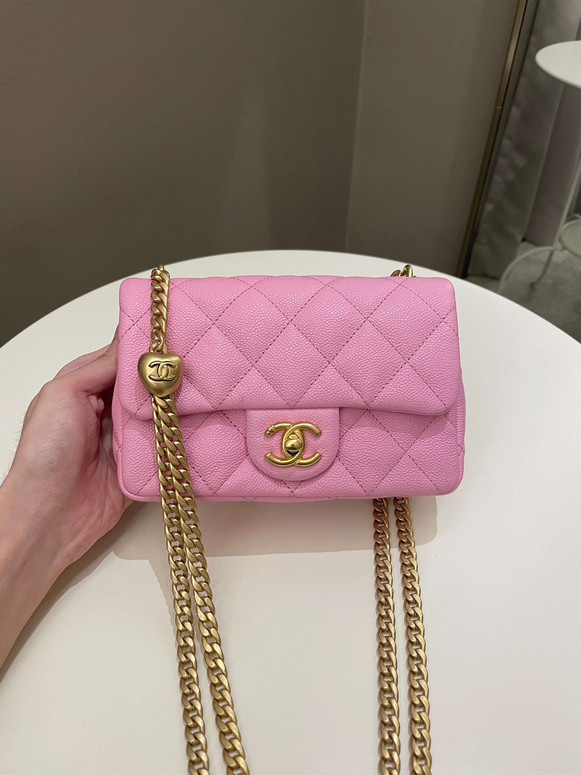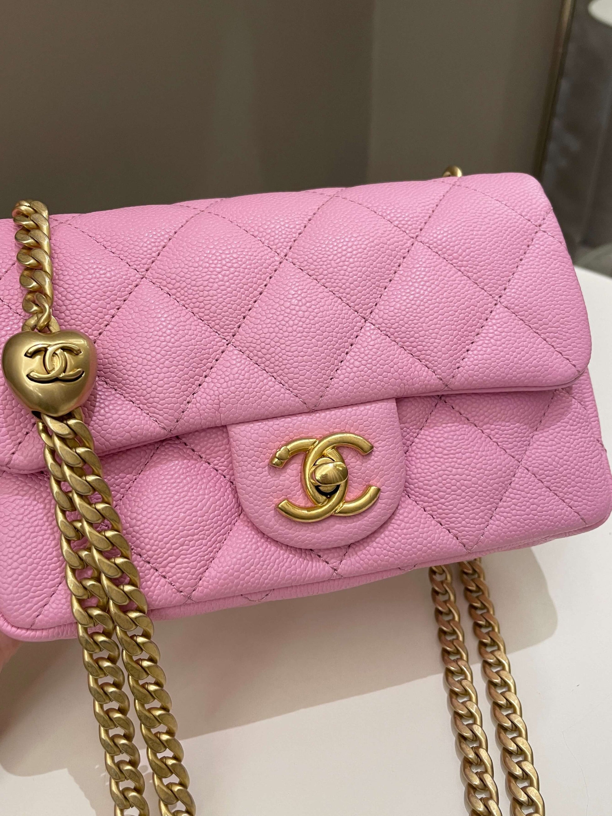 Chanel 23P Sweet Heart Mini Flap Candy Pink Caviar