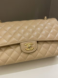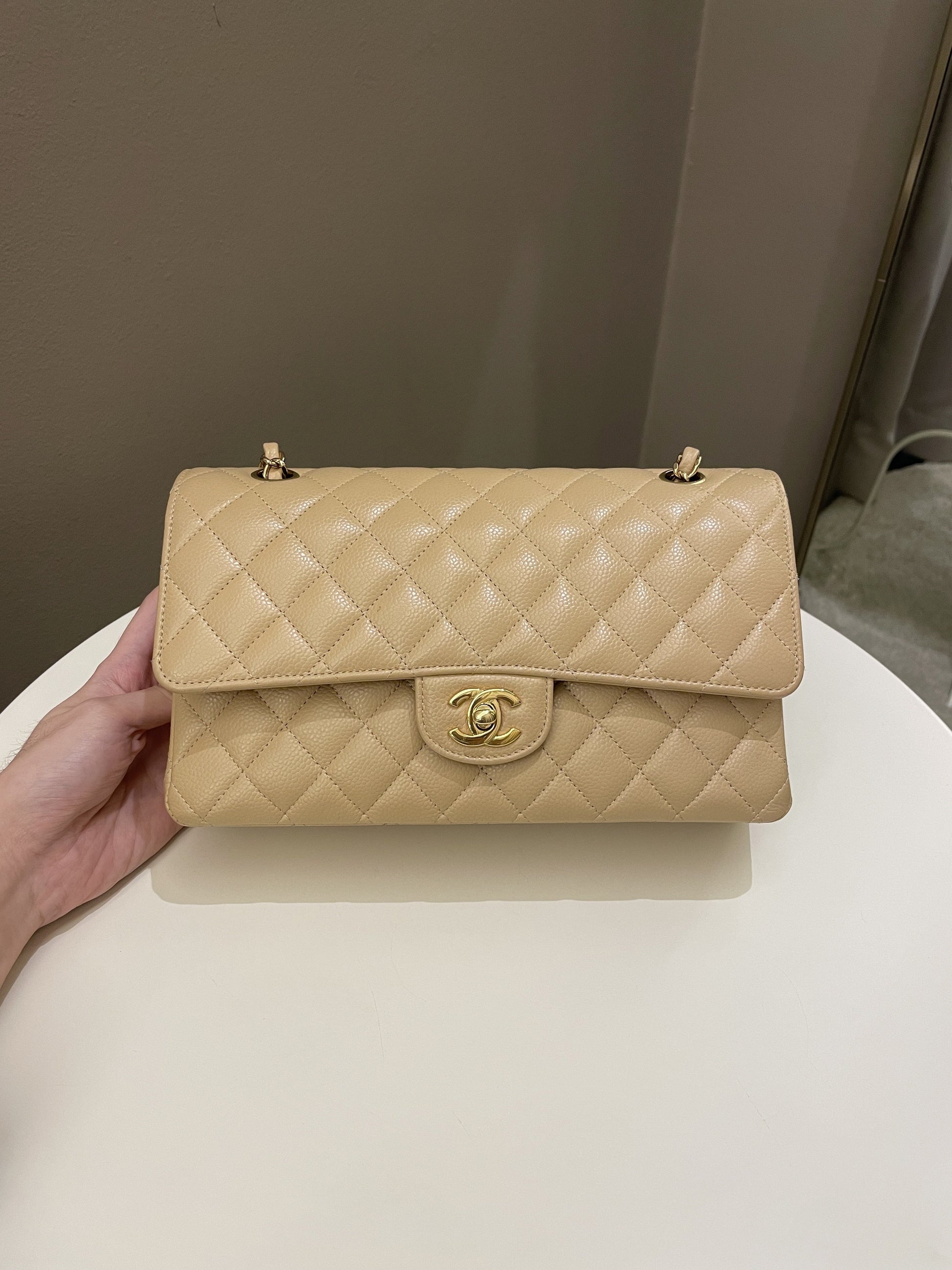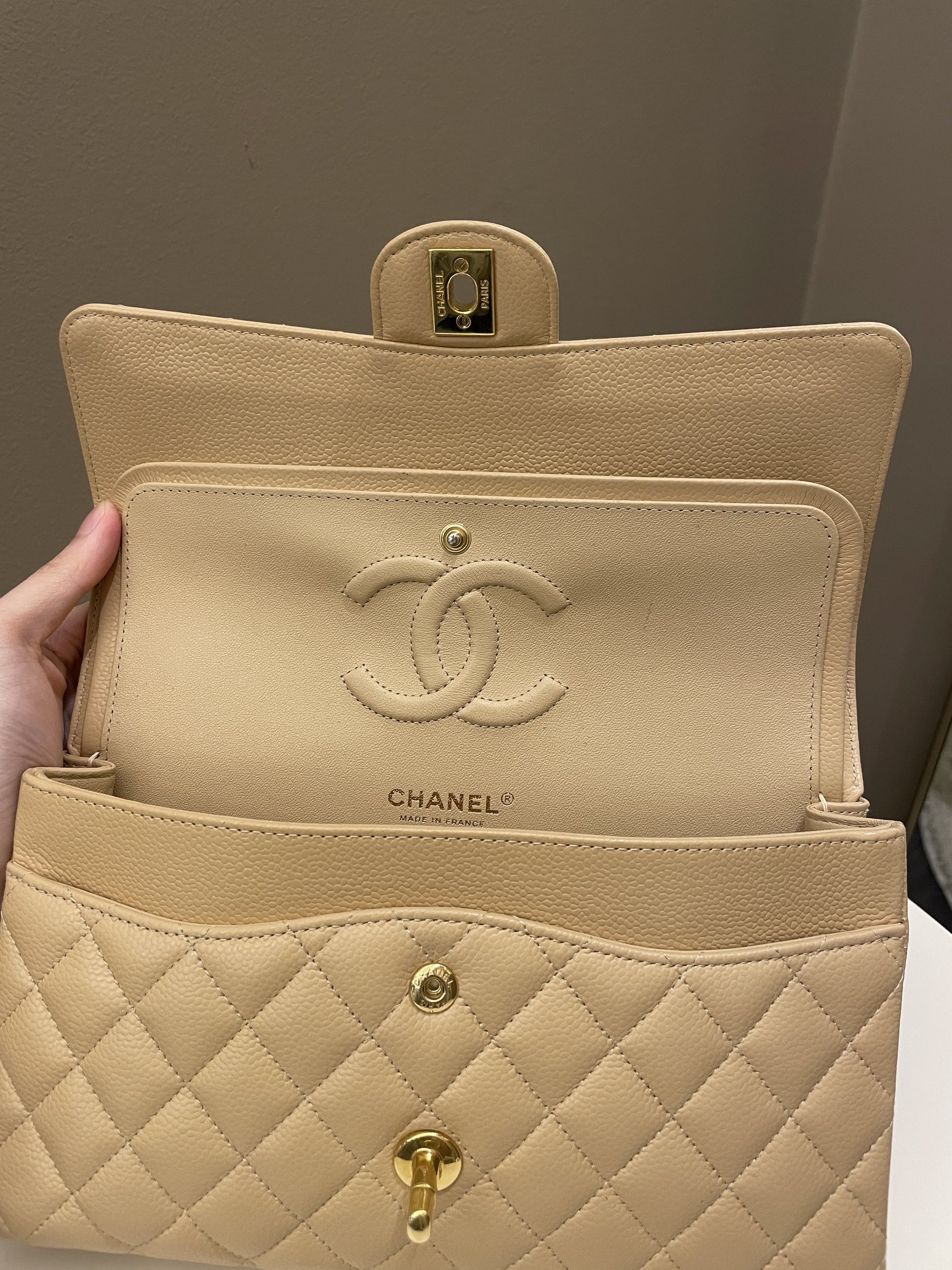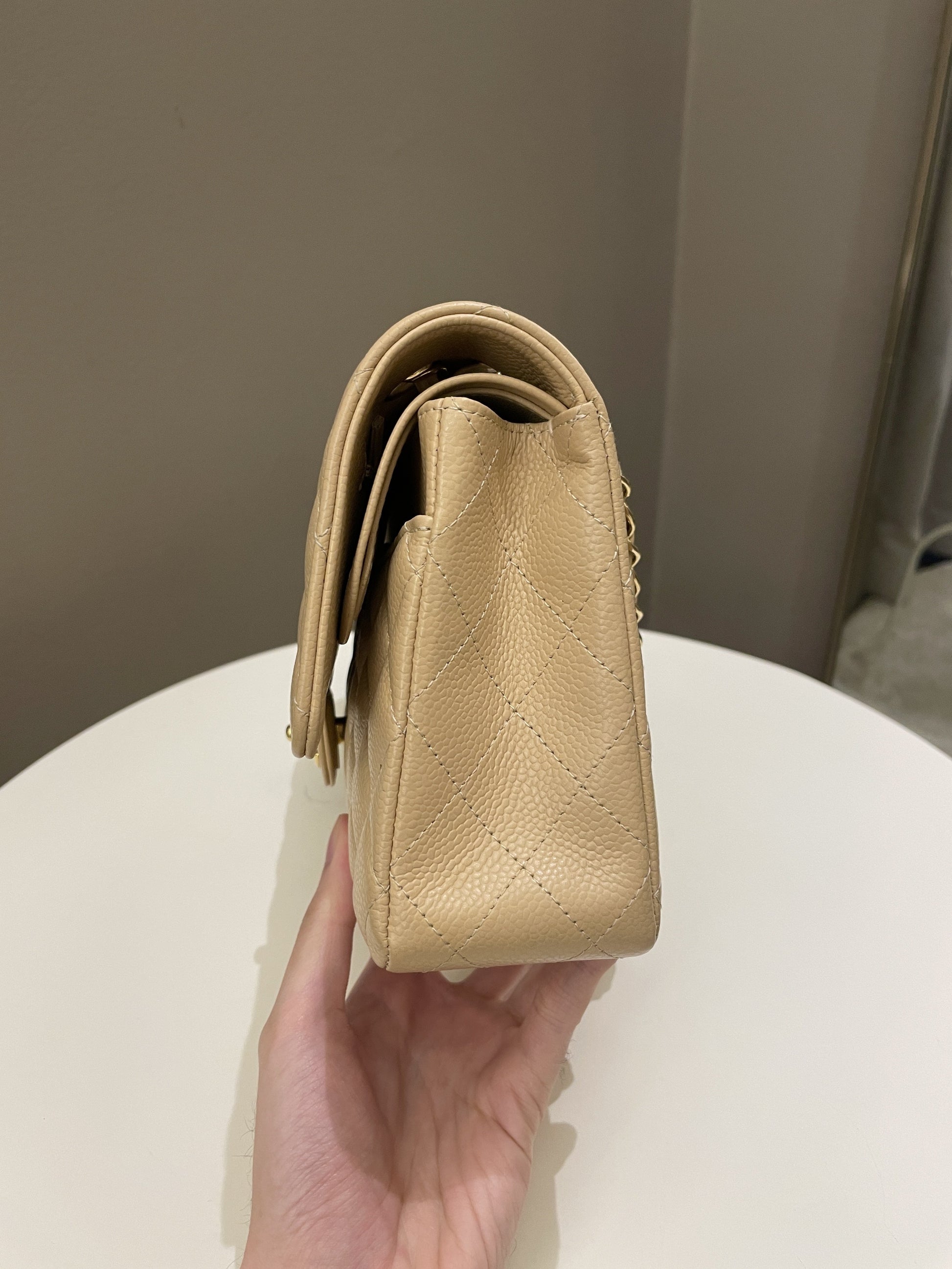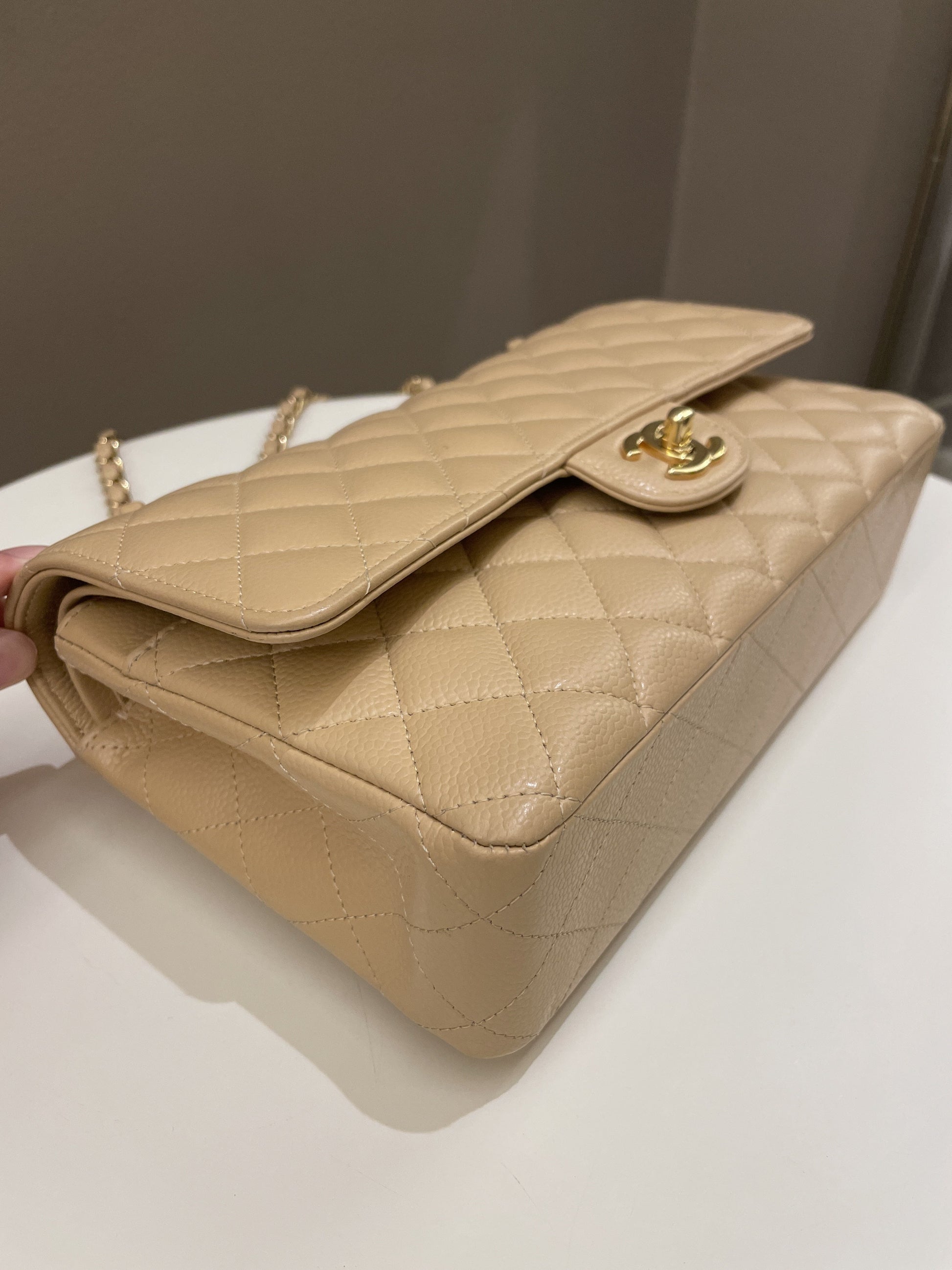 Chanel Classic Quilted Medium Double Flap Beige Claire Caviar