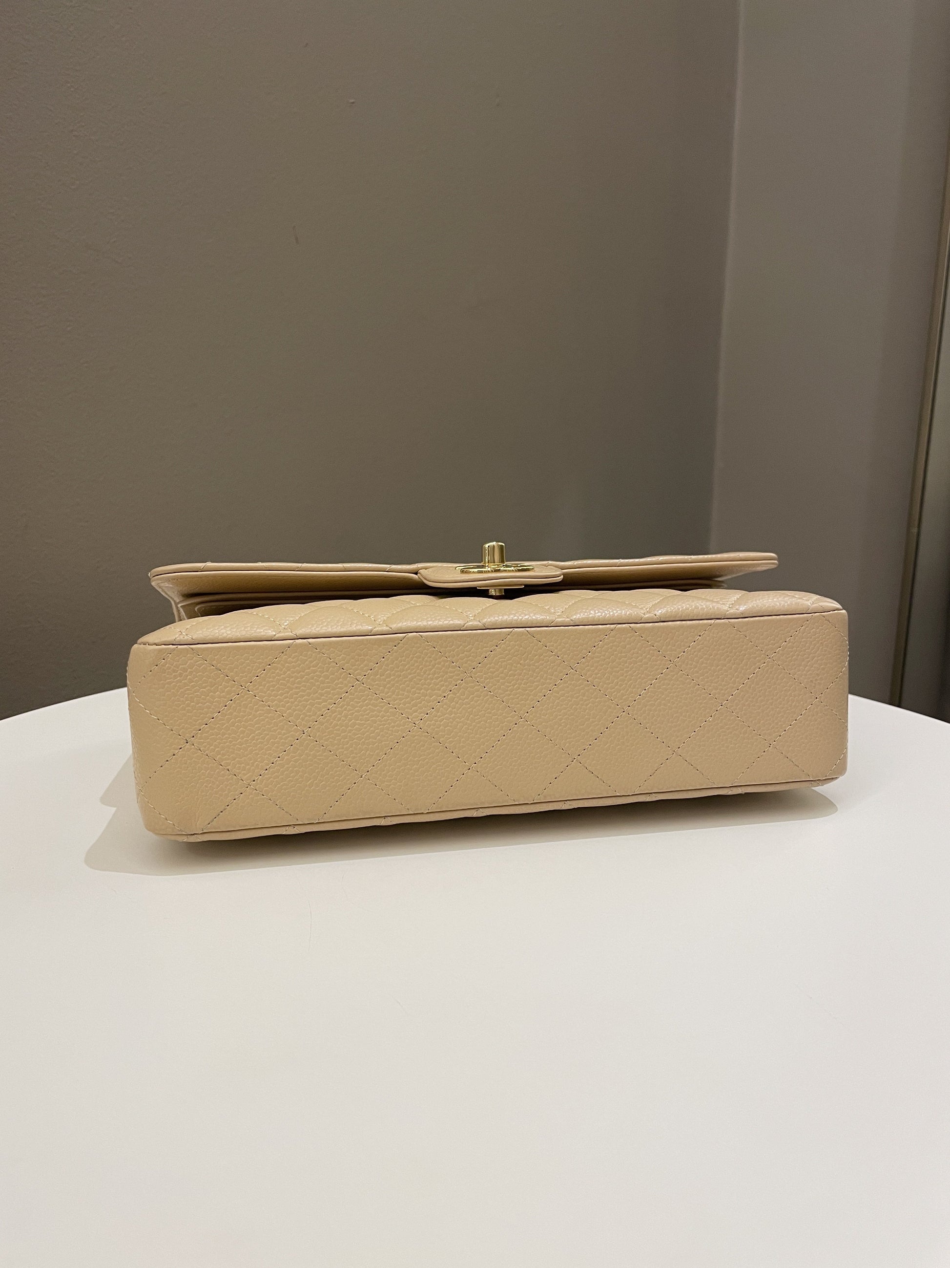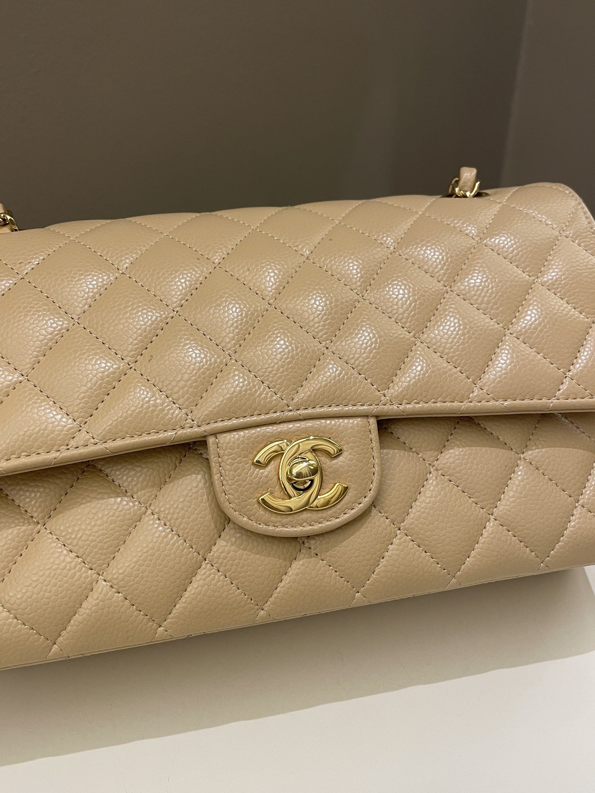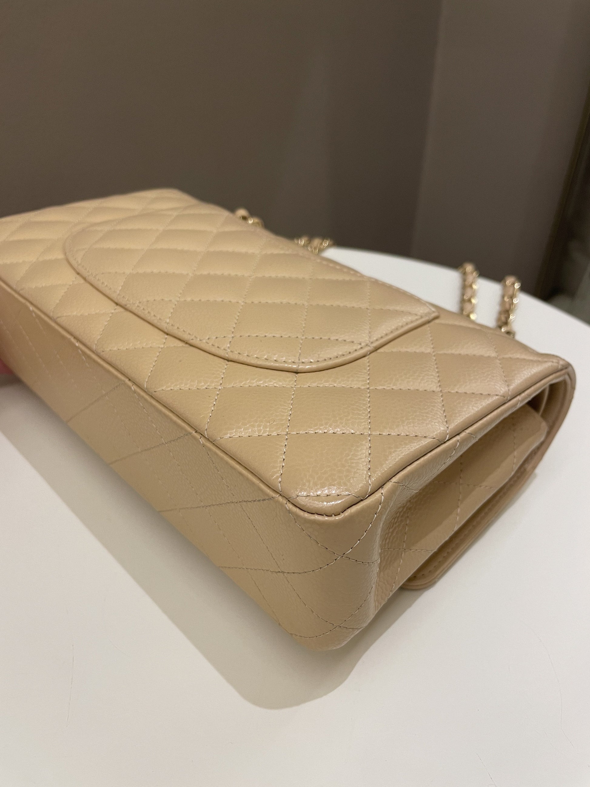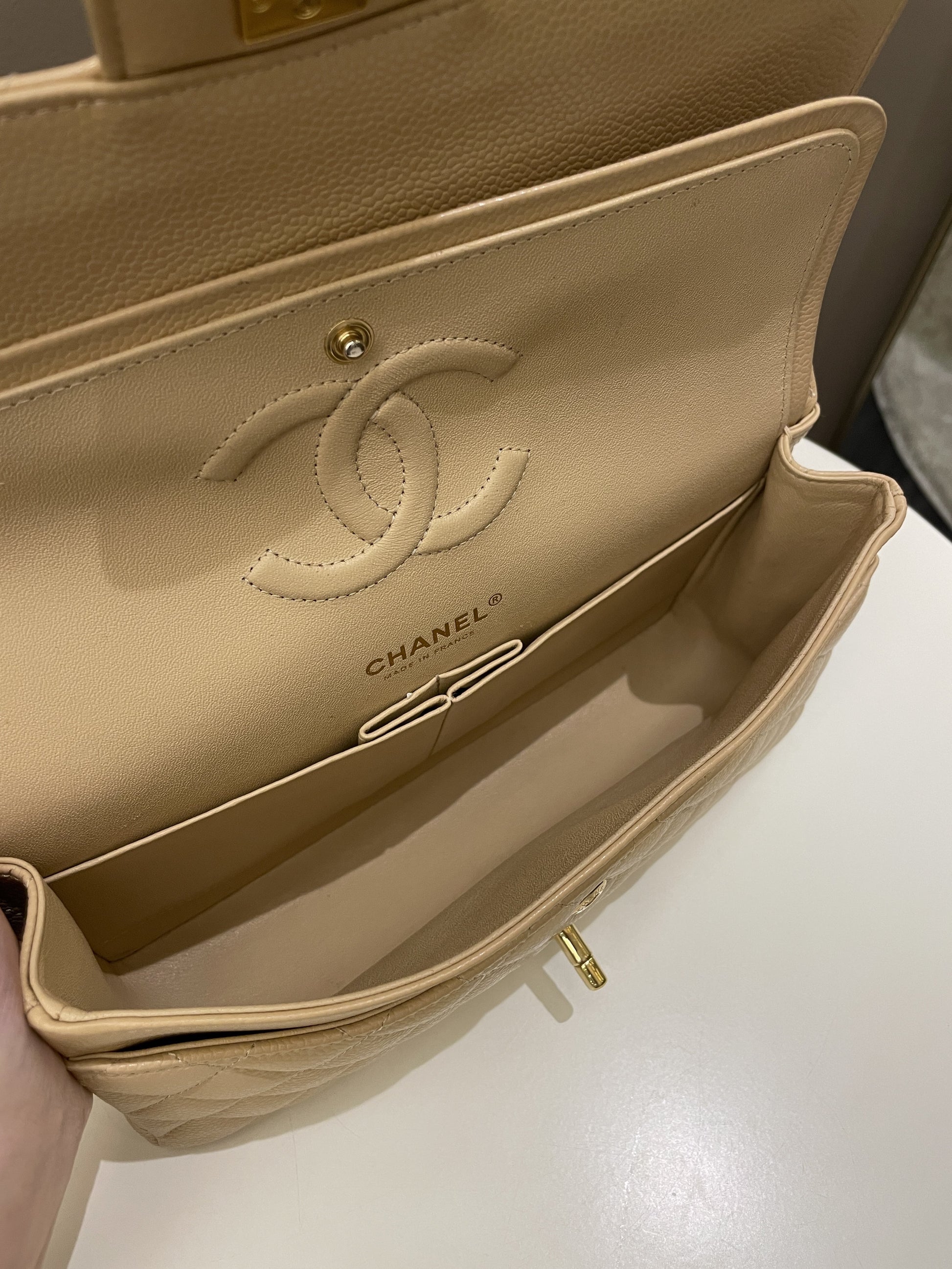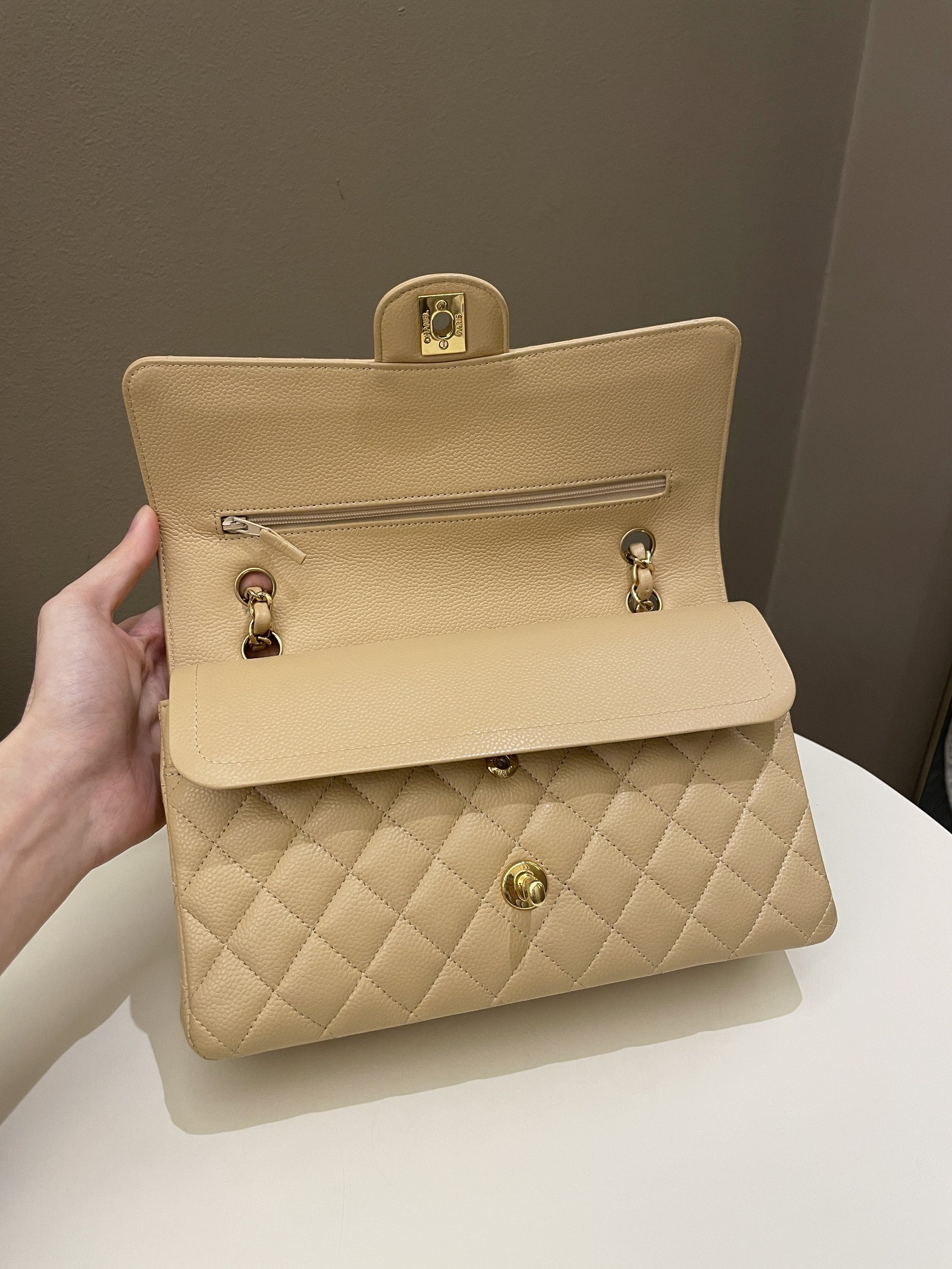 Chanel Classic Quilted Medium Double Flap Beige Claire Caviar