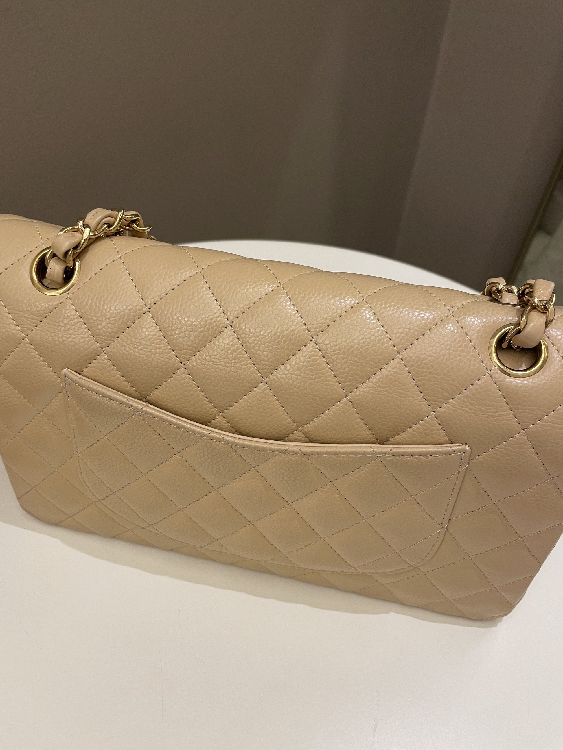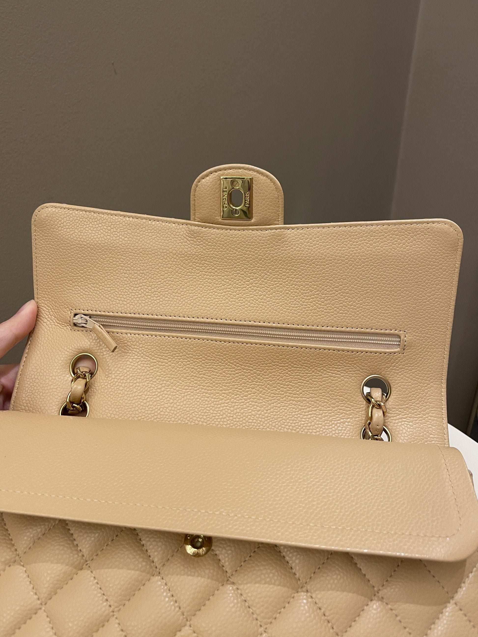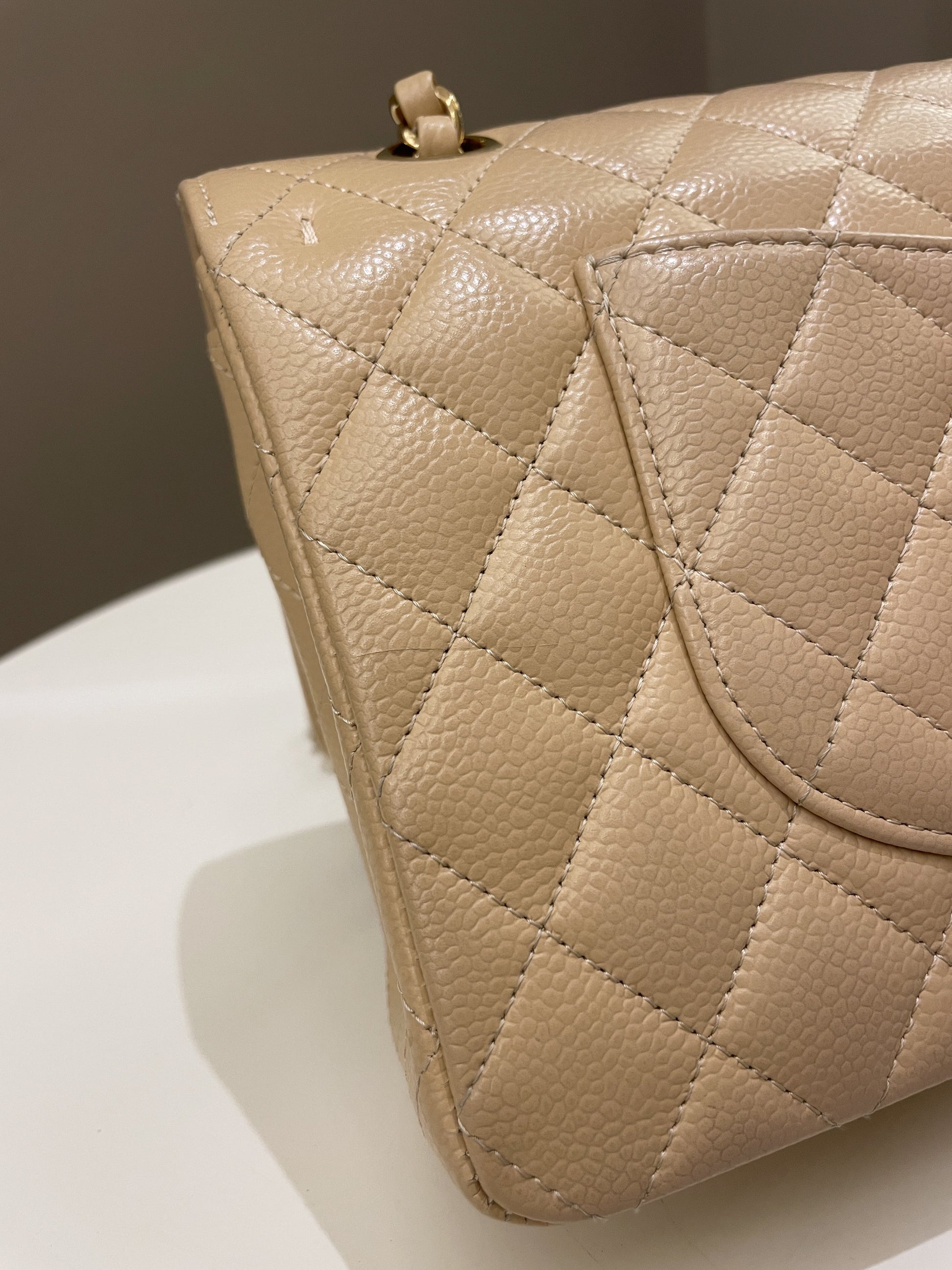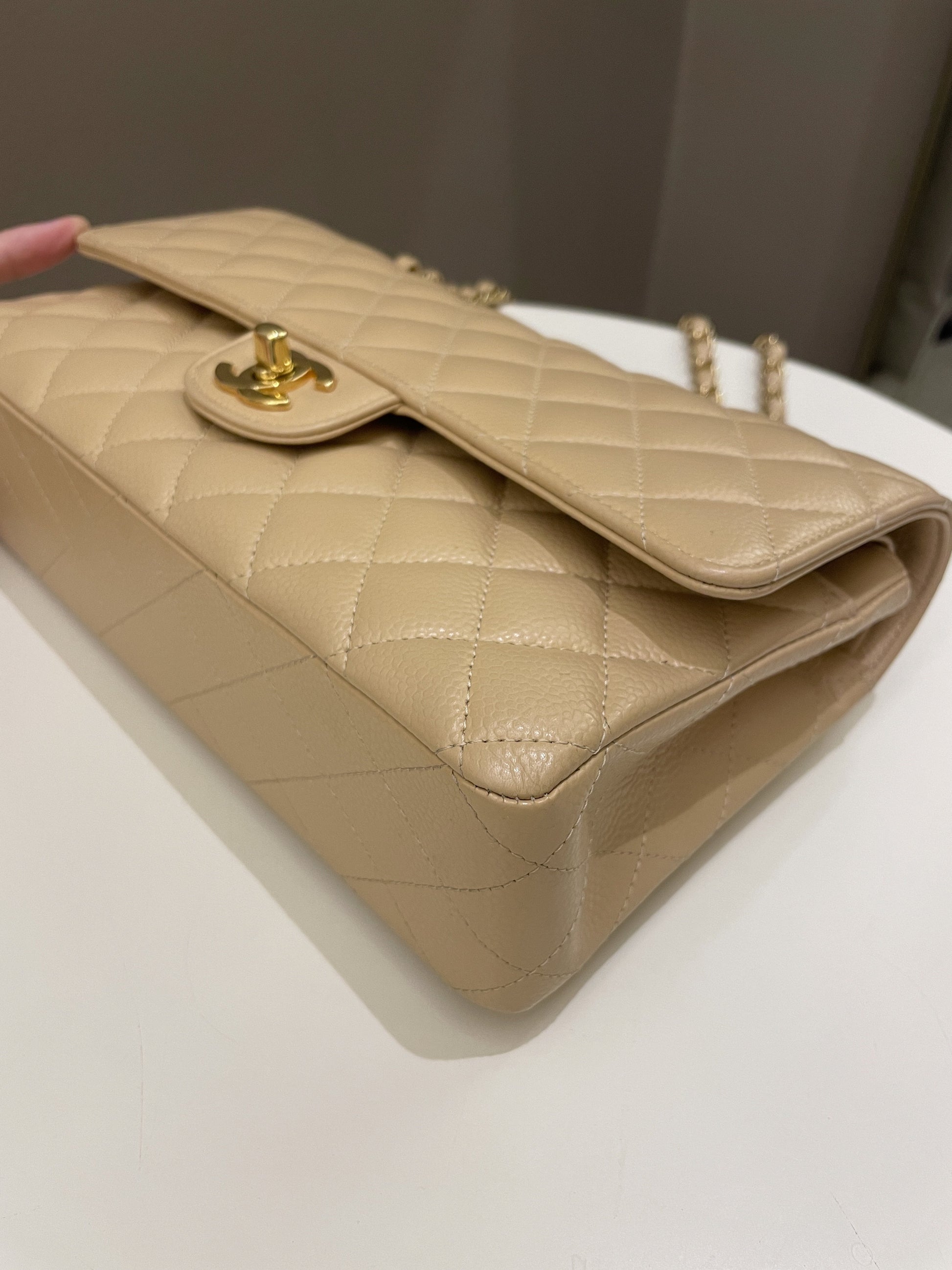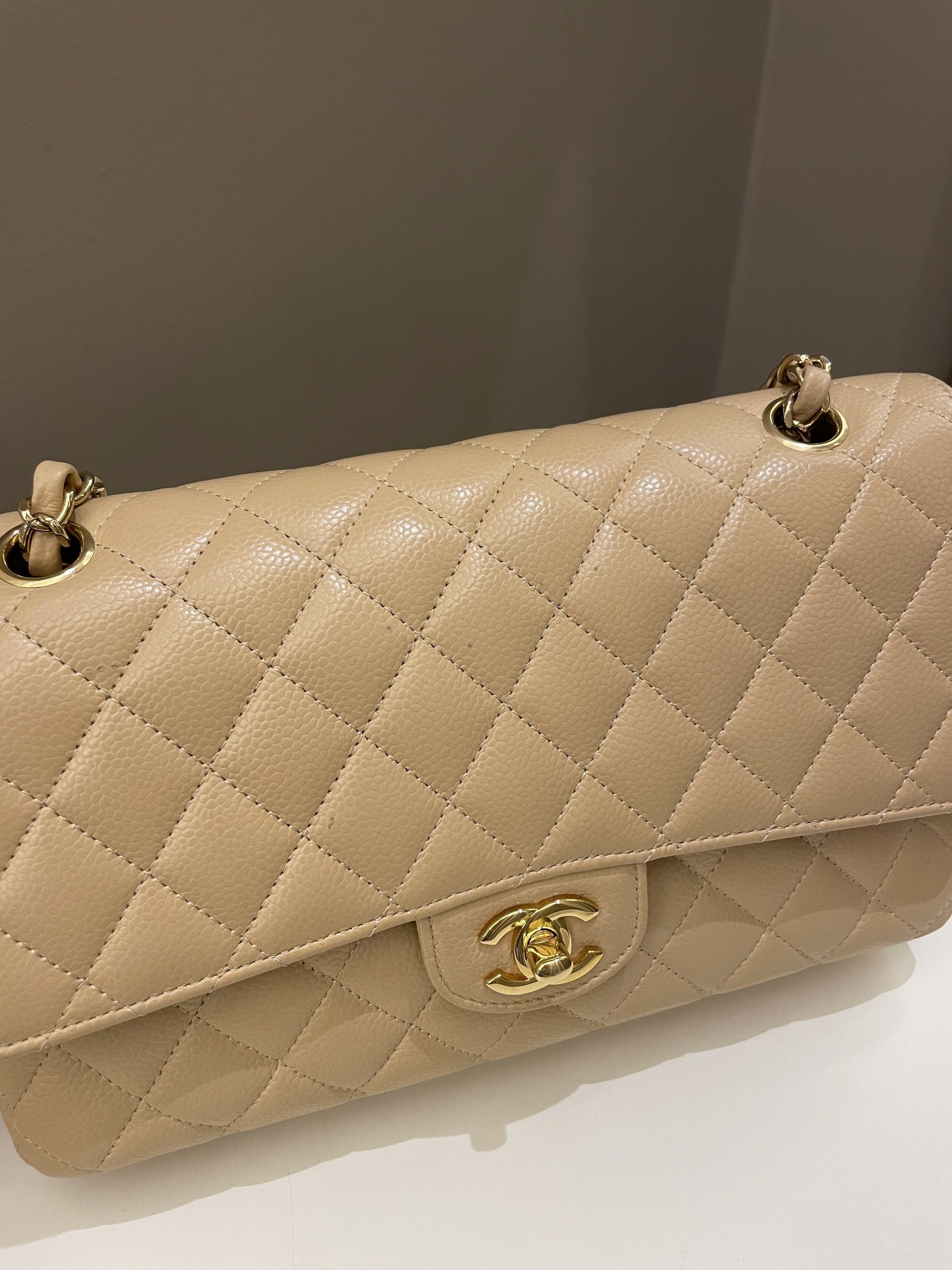 Chanel Classic Quilted Medium Double Flap Beige Claire Caviar