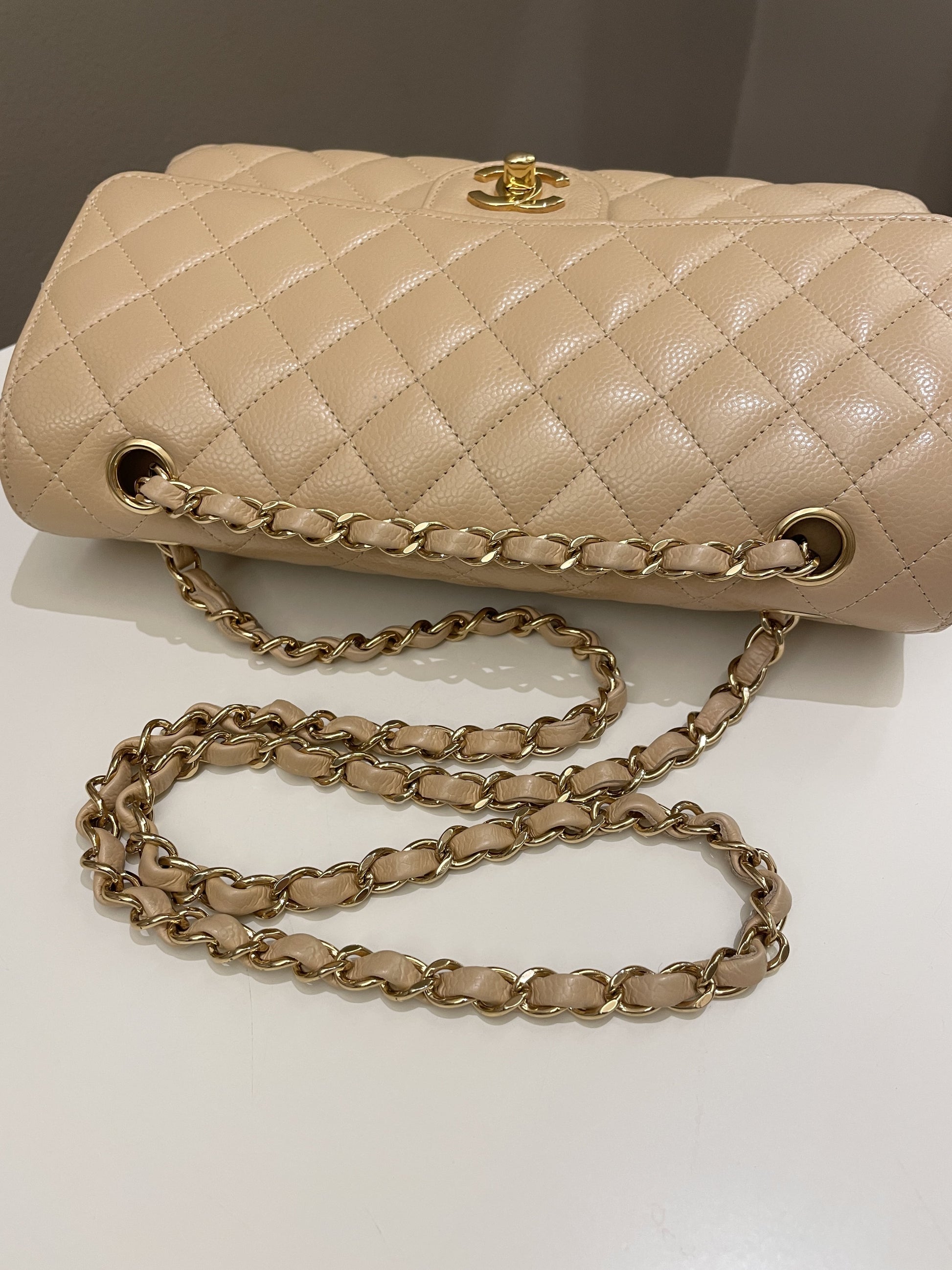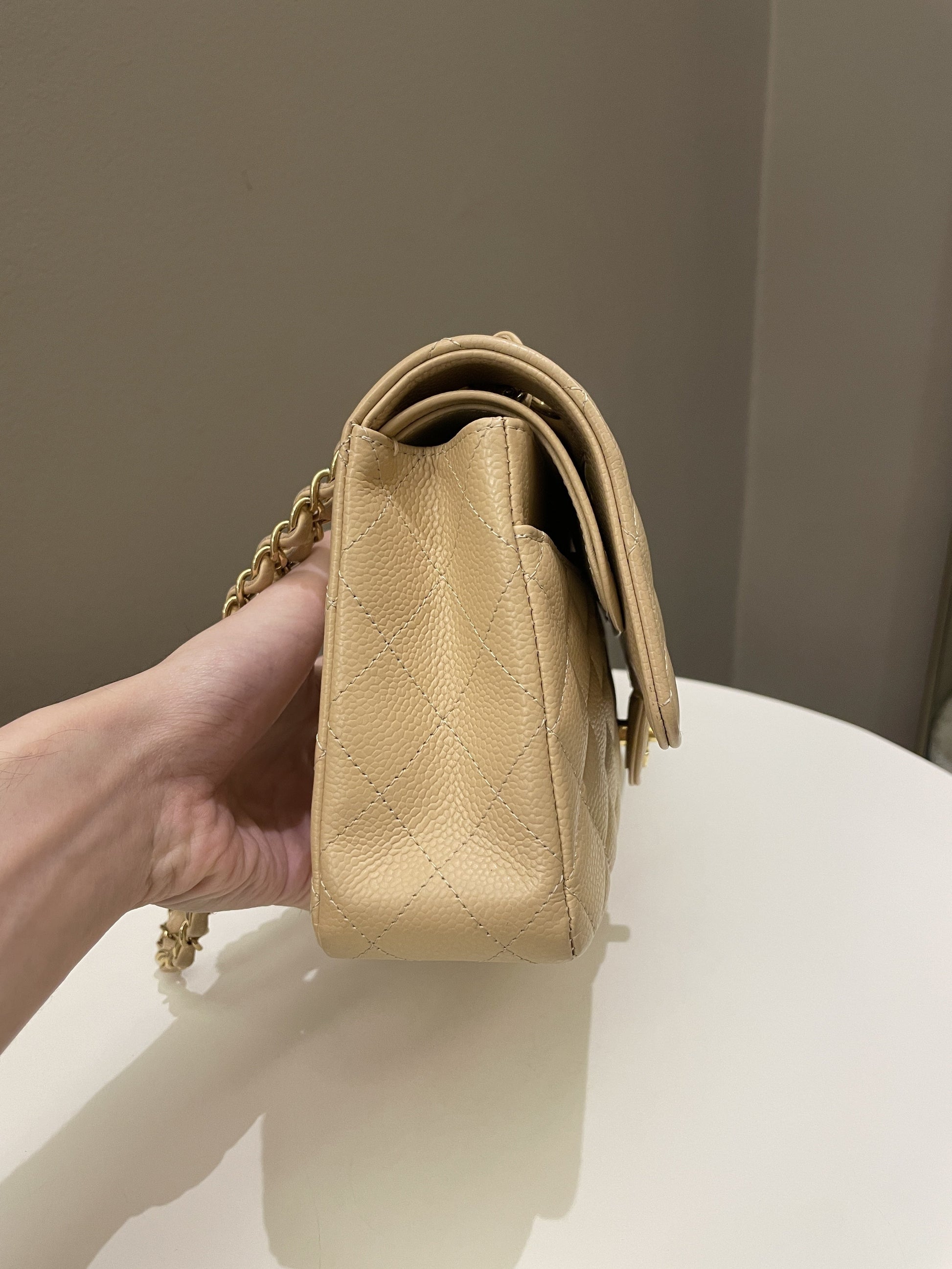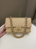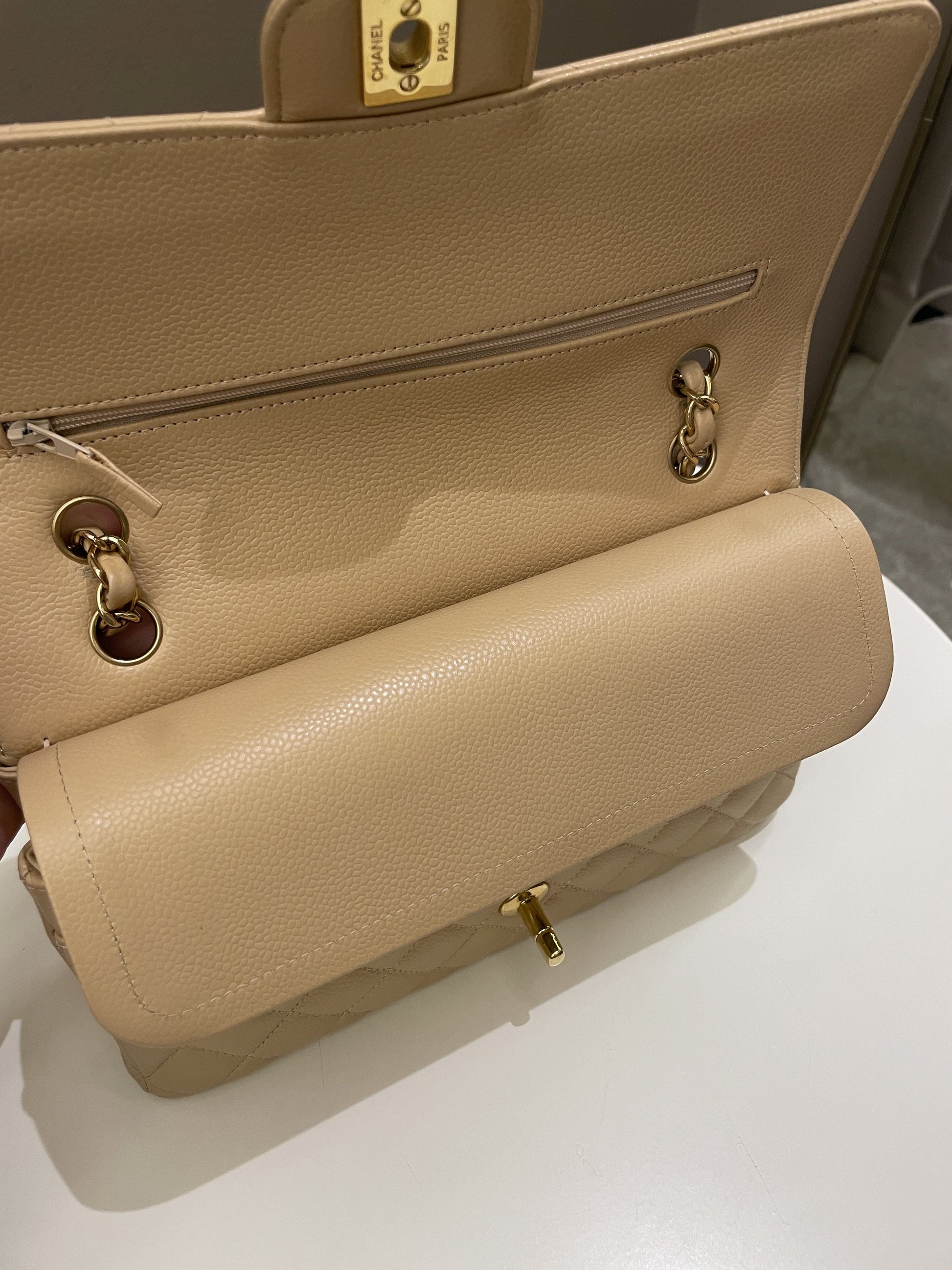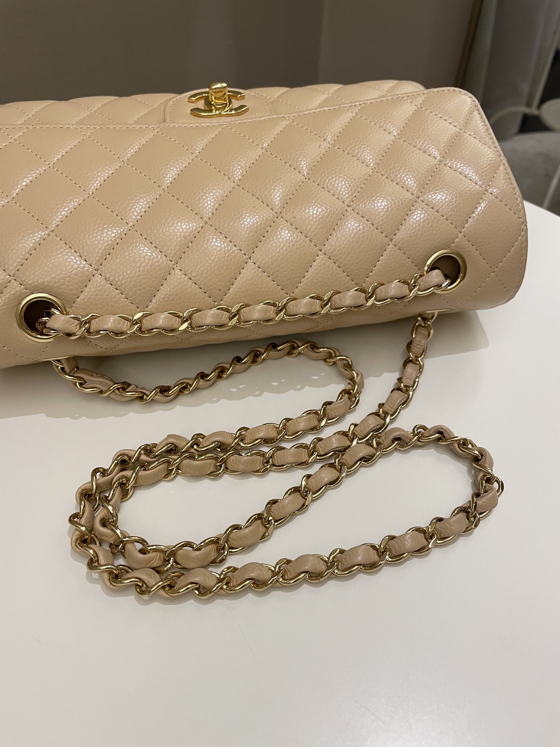 Chanel Classic Quilted Medium Double Flap Beige Claire Caviar