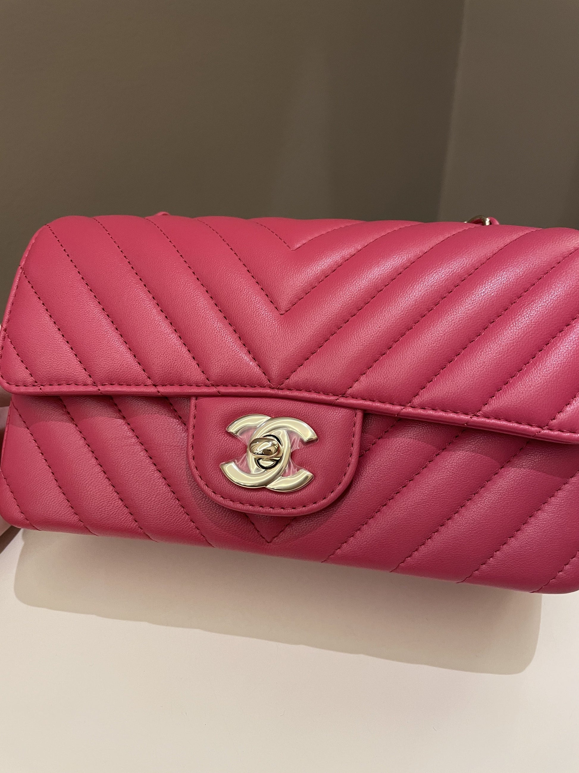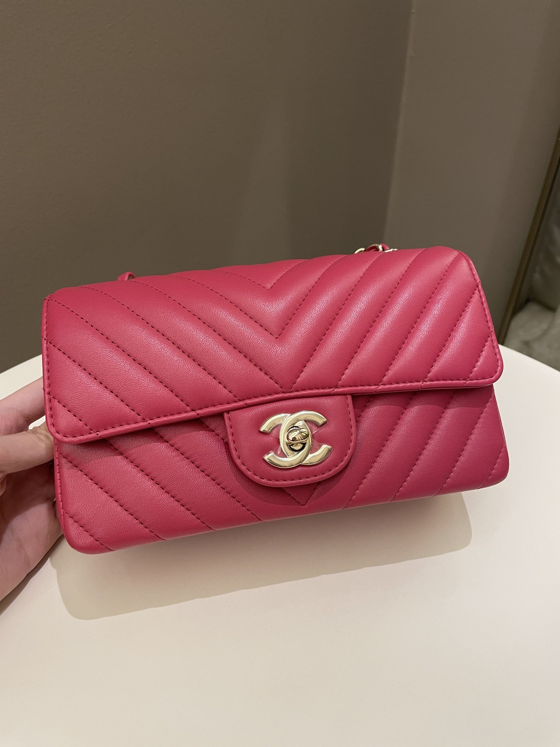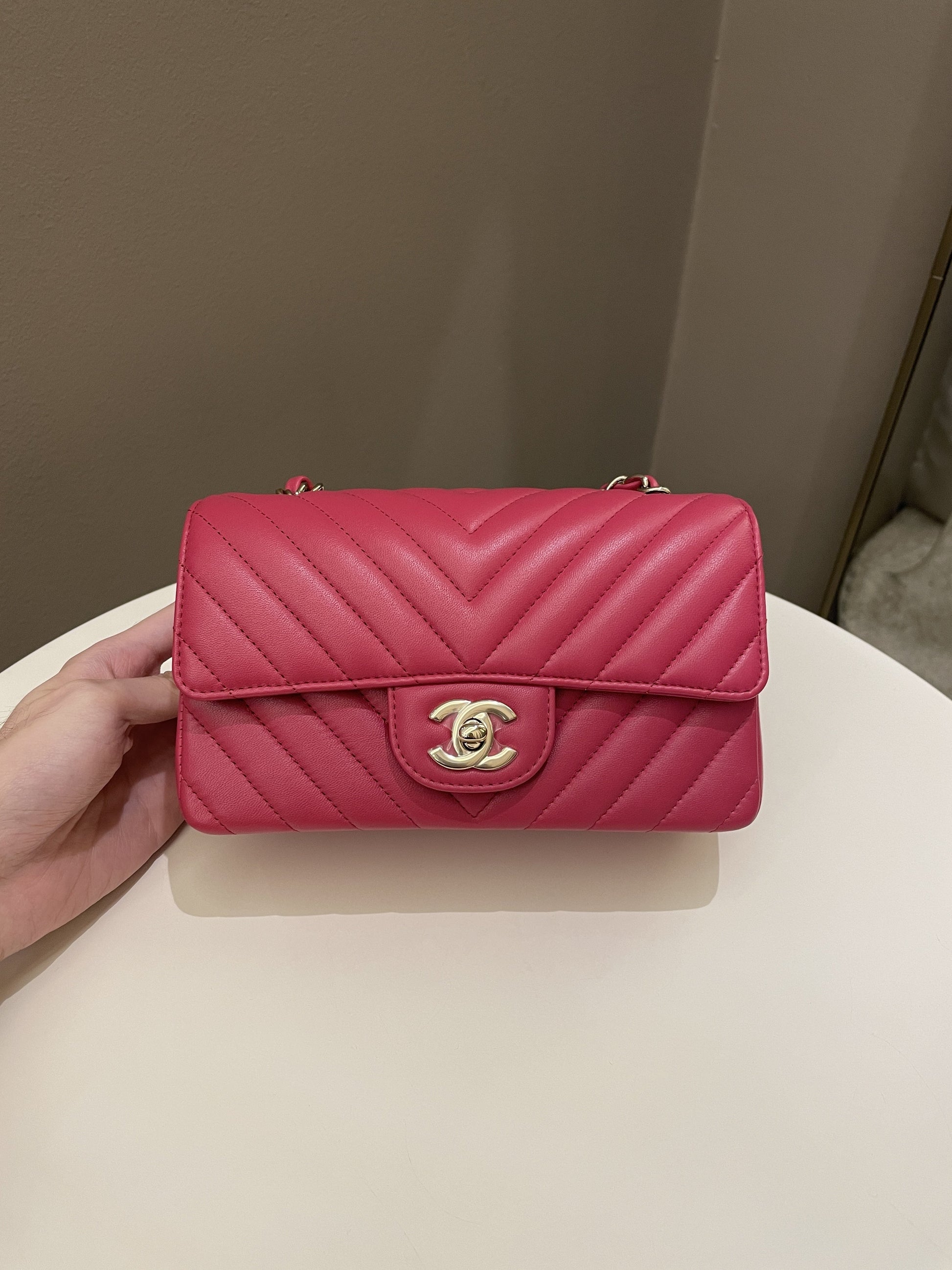 Chanel Classic Chevron Mini Rectangular Rose Fuchsia